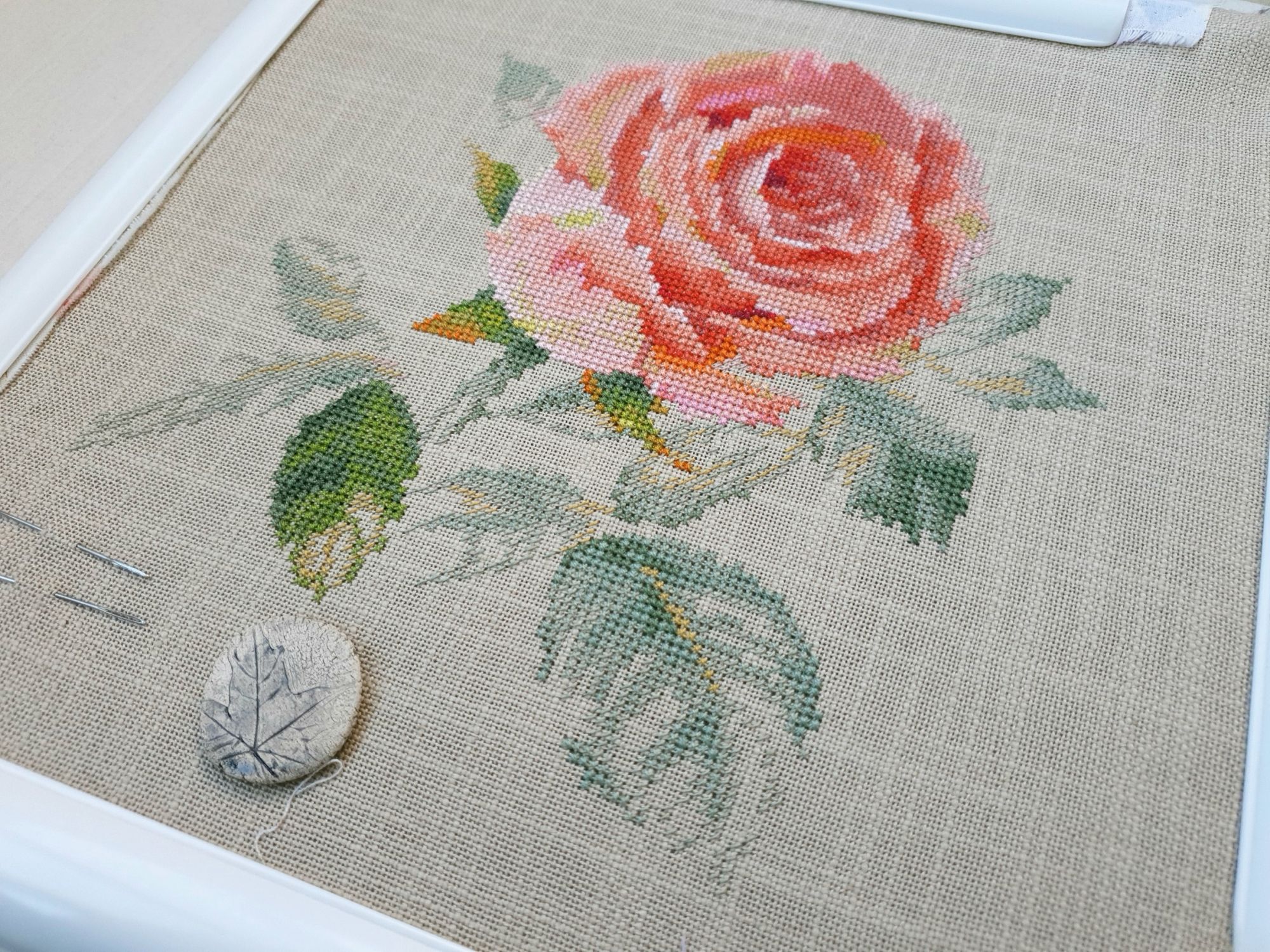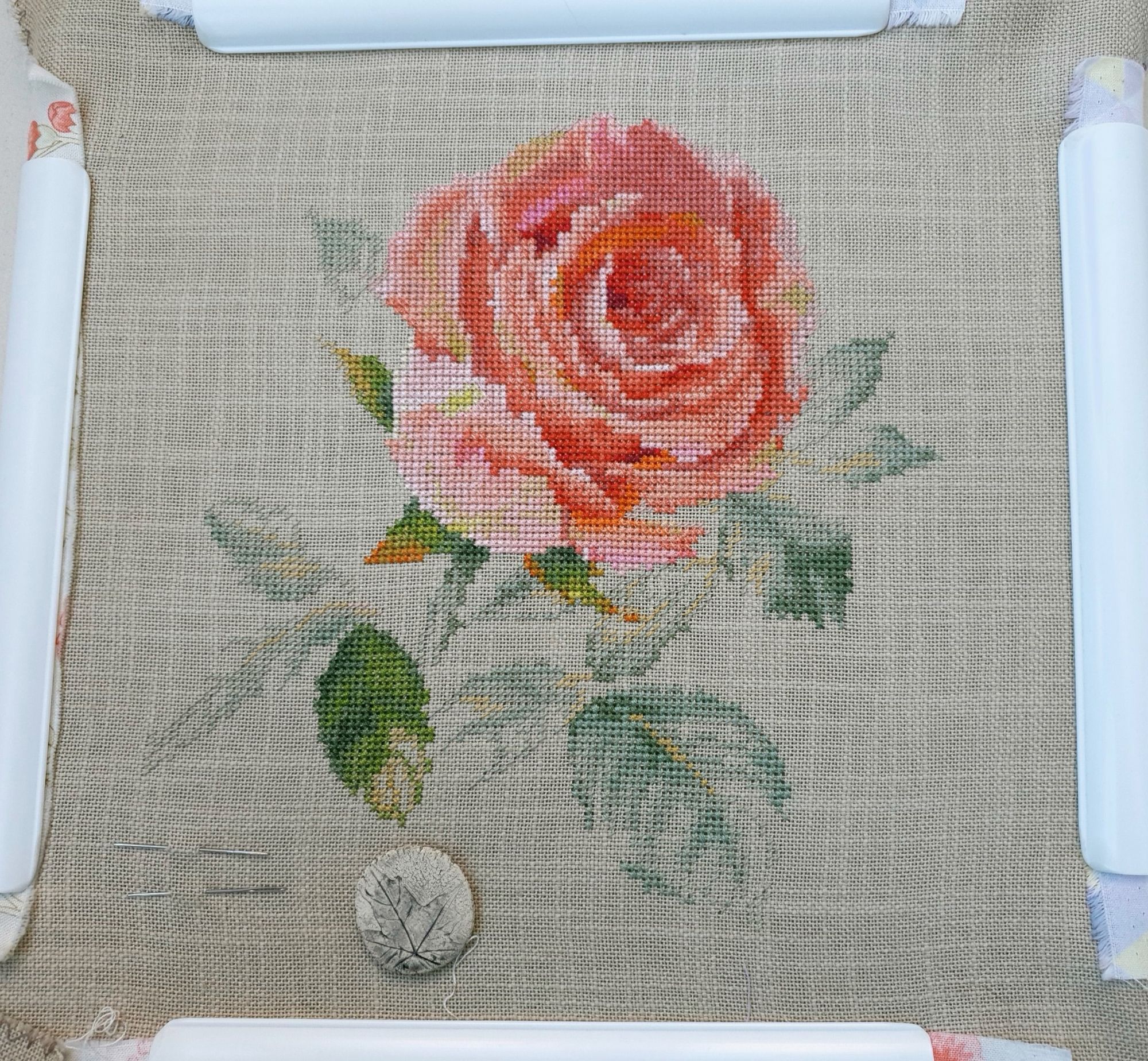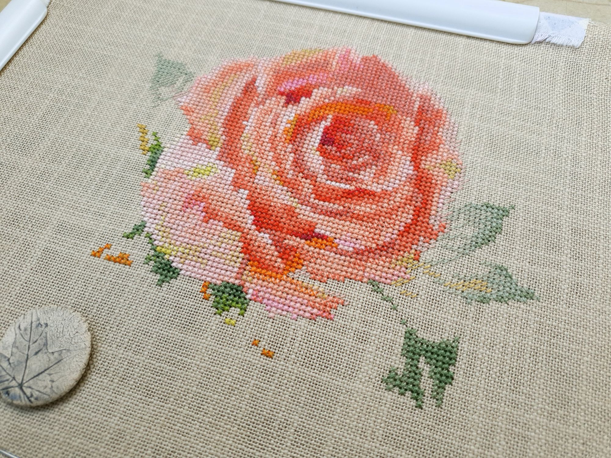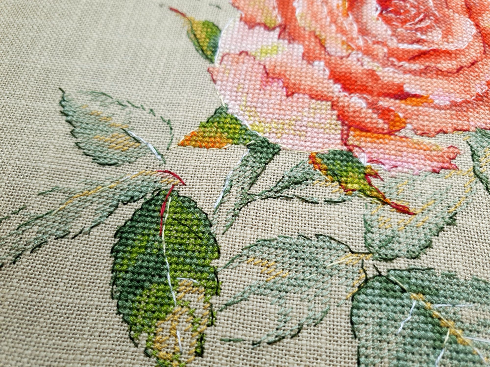 16 июня 2022 Всем ночной привет! Собиралась я написать отчет еще на прошлой неделе, но что-то пошло не так. Поэтому решила хотя бы частями, пусть и с задержкой показывать мое лето: вышивальное и не только. А то фотографии, которые непременно хочется показать, множатся с космической скоростью))) Итак, в прошлый раз я остановилась на том, что сирень по Ланкевич завершена, а сирень в городе едва расцветала. День за днем я ходила по улочкам и дворам, ожидая цветения. И вот воздух наполнился ароматом цветущей сирени. Правда подобраться к цветам с вышивкой оказалось не так просто: она в большинстве своем как-то высоко цветет)))) В общем, было много неудач. Мы даже съездили в Бот.сад МГУ, где словили "сиреневый передоз" как в самом саду, так и вокруг него))) (об этом расскажу в след.раз, там ооочень много фото). Но самыми удачными оказались самые первые фото. И еще пара из прочих. Вот как-то так вышло (не для гайки) В этих скитаниях по городу было, конечно, снято немало разного красивого. А в лесу тем временем коврами расцвели ландыши (фото сделаны на первой неделе июня), разнося по лесу чудесный, легкий, но хорошо заметный аромат (даже не представляю, как люди дома их ставят, я через пару часов и из леса-то вынуждена была ретироваться) Возвращаясь к вышивке. После усиленного вышивания сирени, я позволила себе "сладкую конфету" в виде очень давно желанного маленького процесса. И тут как по волшебству я наконец определилась с основой для него, хотя муками выбора маялась уже не один месяц (даже на ФР его рассматривала именно на предмет основы). И, забегая вперед, даже рамка для него нашлась тут же, как стали понятны размеры)! Ольга Князева, Желудь (эта) - старт и финиш! Мне так нравятся многие сюжеты этого дизайнера, что удивительно, что я еще ни одного до этого момента не вышила. Если честно, я немного побаивалась - было очевидно, что для подобной реалистичности при столь маленьких размерах (здесь 57*58 крестиков) потребуется часто менять нитку, а я не большой любитель данной процедуры)) Но вот что я вам скажу: я в полном восторге!!! Прямо вот так, с тремя восклицательными знаками)) Поставила бы и больше, если бы это явно не противоречило моим представлениям о синтаксисе пусть и не официальной речи В общем, вышился желудь на одном дыхании. Смена нити, конечно, есть, но не раздражает и исключительно оправданно. Логика схемы, цветов и блендов на 5+, результат реалистичный, объемный, живой и тд. и т.п. Бэк более чем вменяемый. В общем я с нетерпением выбираю следующий дизайн от Ольги, коих в закромах благодаря новогодним подаркам подруг еще имеется)) Теперь фото: Про основу забыла сказать. Я взяла Лукан от Цвейгарта, 32 каунт, цвет натурального льна (что-то среднее между 52м и 53м цветами Белфаста или Кашеля), но со специфической интересной фактурой. А рамка подоспела из мастерской Sunflowers House как раз к завершению процесса. Рамка деревянная. И более того, оцените совпадение, дубовая! Это судьба, не иначе))) Я влюблена в эту миниатюру от первого крестика до оформленной работы. А еще это самый быстрый мой процесс, если считать от начала вышивки до рамы, повешенной на стену)) И еще один процесс на сегодня. Весьма давний и тоже цветочный) Е.Волкова, Роза-восхищение - финиш! Когда-то давно я остановилась на том, что сам цветок был почти готов. По большей части. И напоминал очень сильно погрызенную гусеница