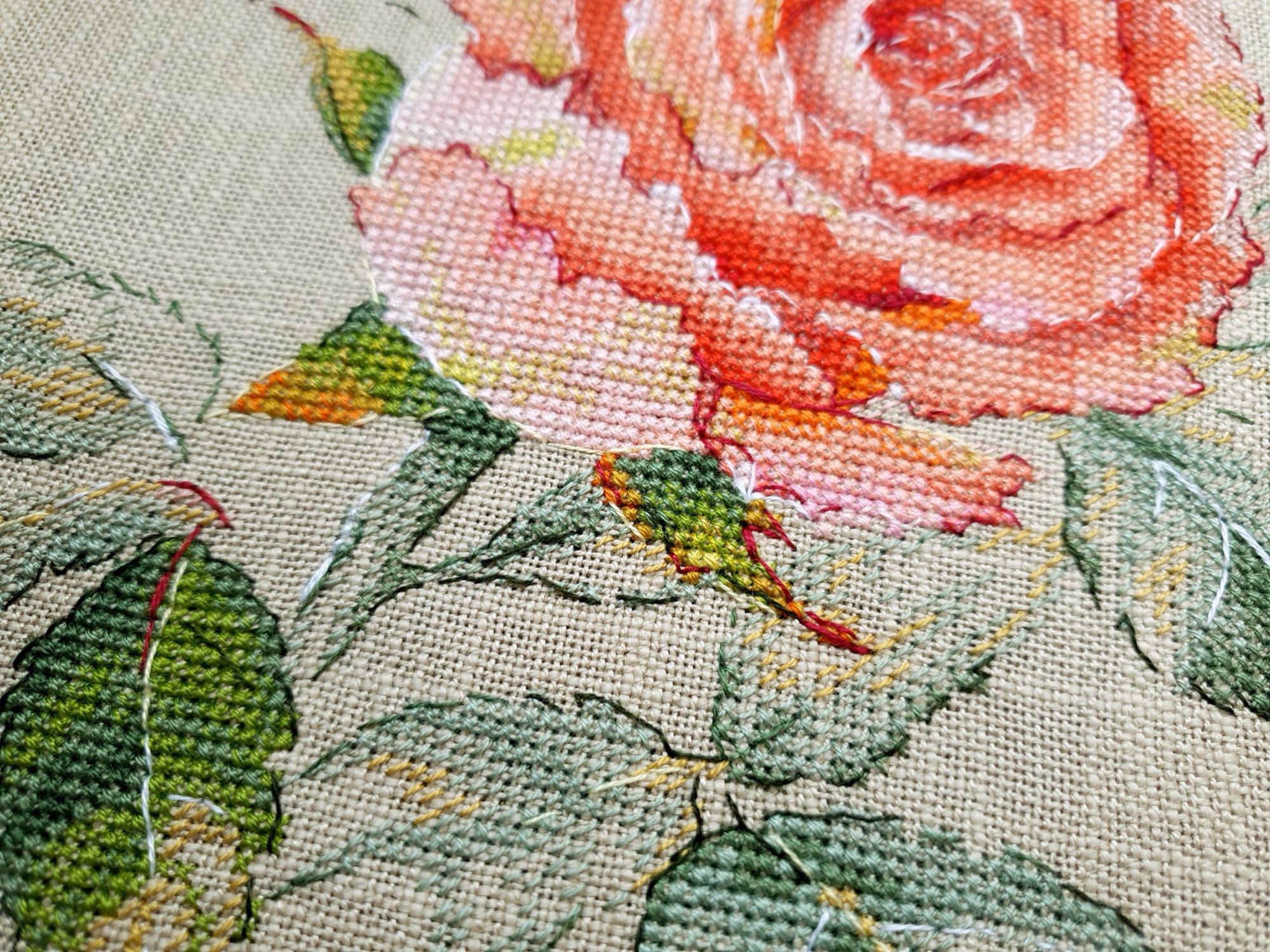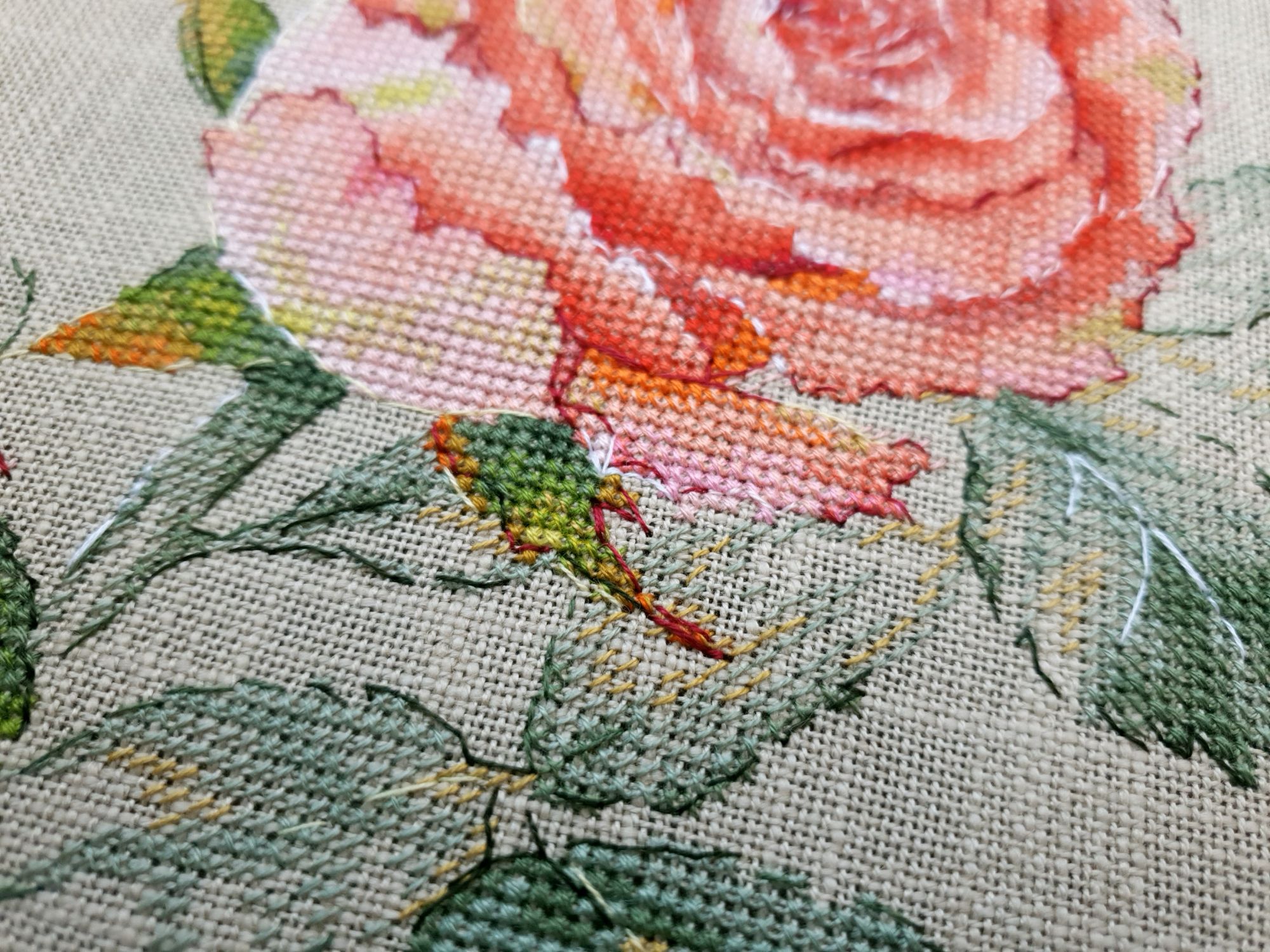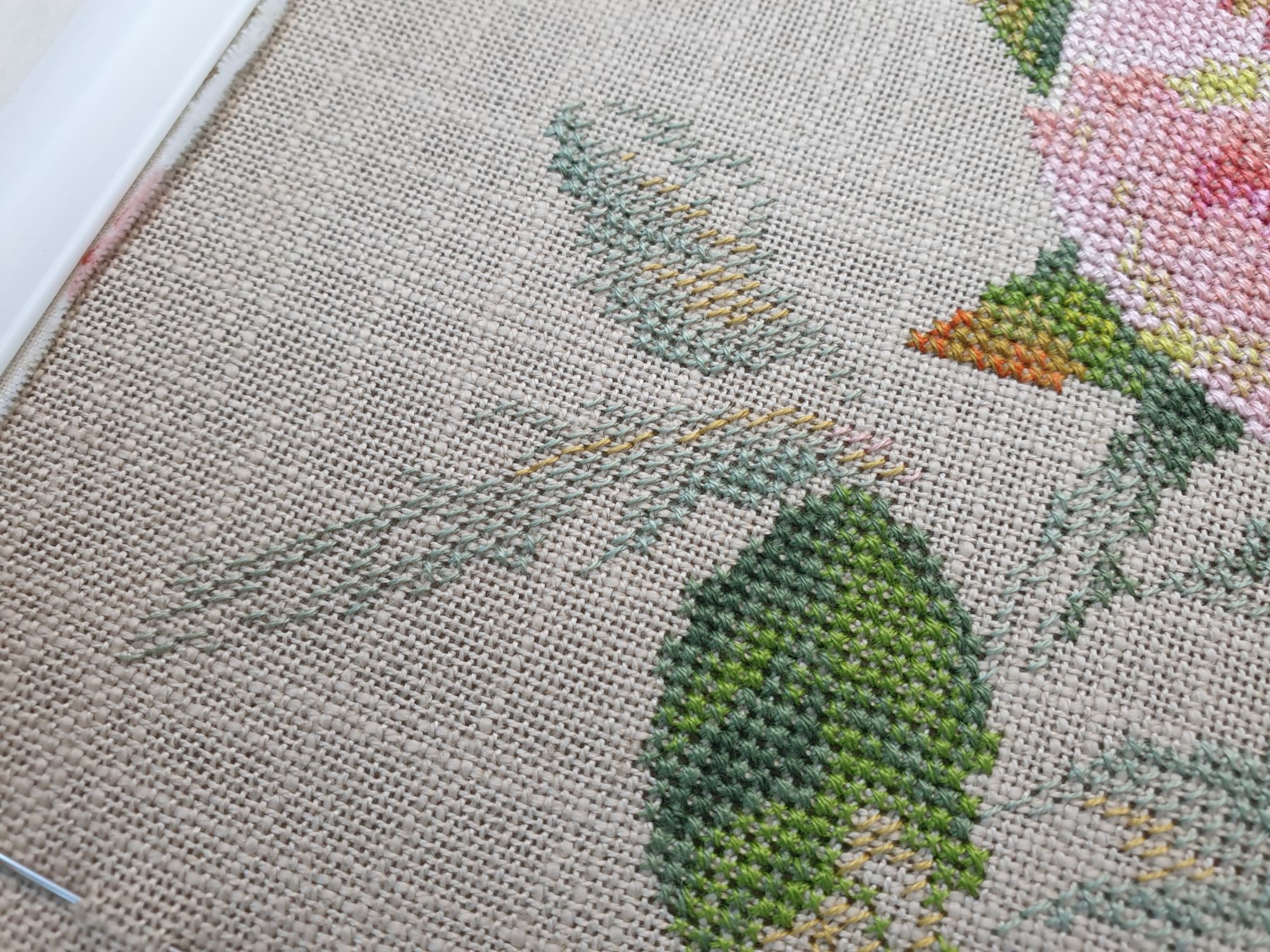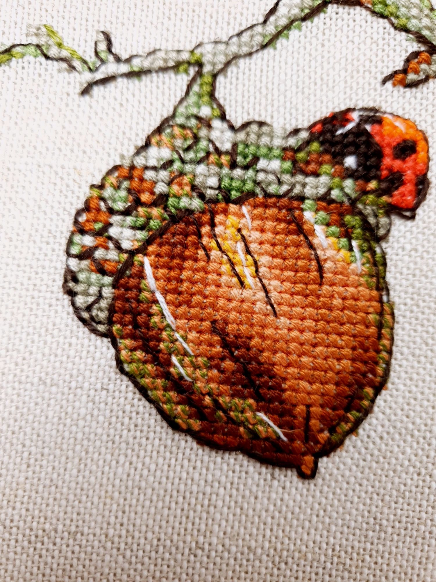16 июня 2022 Всем ночной привет! Собиралась я написать отчет еще на прошлой неделе, но что-то пошло не так. Поэтому решила хотя бы частями, пусть и с задержкой показывать мое лето: вышивальное и не только. А то фотографии, которые непременно хочется показать, множатся с космической скоростью))) Итак, в прошлый раз я остановилась на том, что сирень по Ланкевич завершена, а сирень в городе едва расцветала. День за днем я ходила по улочкам и дворам, ожидая цветения. И вот воздух наполнился ароматом цветущей сирени. Правда подобраться к цветам с вышивкой оказалось не так просто: она в большинстве своем как-то высоко цветет)))) В общем, было много неудач. Мы даже съездили в Бот.сад МГУ, где словили "сиреневый передоз" как в самом саду, так и вокруг него))) (об этом расскажу в след.раз, там ооочень много фото). Но самыми удачными оказались самые первые фото. И еще пара из прочих. Вот как-то так вышло (не для гайки) В этих скитаниях по городу было, конечно, снято немало разного красивого. А в лесу тем временем коврами расцвели ландыши (фото сделаны на первой неделе июня), разнося по лесу чудесный, легкий, но хорошо заметный аромат (даже не представляю, как люди дома их ставят, я через пару часов и из леса-то вынуждена была ретироваться) Возвращаясь к вышивке. После усиленного вышивания сирени, я позволила себе "сладкую конфету" в виде очень давно желанного маленького процесса. И тут как по волшебству я наконец определилась с основой для него, хотя муками выбора маялась уже не один месяц (даже на ФР его рассматривала именно на предмет основы). И, забегая вперед, даже рамка для него нашлась тут же, как стали понятны размеры)! Ольга Князева, Желудь (эта) - старт и финиш! Мне так нравятся многие сюжеты этого дизайнера, что удивительно, что я еще ни одного до этого момента не вышила. Если честно, я немного побаивалась - было очевидно, что для подобной реалистичности при столь маленьких размерах (здесь 57*58 крестиков) потребуется часто менять нитку, а я не большой любитель данной процедуры)) Но вот что я вам скажу: я в полном восторге!!! Прямо вот так, с тремя восклицательными знаками)) Поставила бы и больше, если бы это явно не противоречило моим представлениям о синтаксисе пусть и не официальной речи В общем, вышился желудь на одном дыхании. Смена нити, конечно, есть, но не раздражает и исключительно оправданно. Логика схемы, цветов и блендов на 5+, результат реалистичный, объемный, живой и тд. и т.п. Бэк более чем вменяемый. В общем я с нетерпением выбираю следующий дизайн от Ольги, коих в закромах благодаря новогодним подаркам подруг еще имеется)) Теперь фото: Про основу забыла сказать. Я взяла Лукан от Цвейгарта, 32 каунт, цвет натурального льна (что-то среднее между 52м и 53м цветами Белфаста или Кашеля), но со специфической интересной фактурой. А рамка подоспела из мастерской Sunflowers House как раз к завершению процесса. Рамка деревянная. И более того, оцените совпадение, дубовая! Это судьба, не иначе))) Я влюблена в эту миниатюру от первого крестика до оформленной работы. А еще это самый быстрый мой процесс, если считать от начала вышивки до рамы, повешенной на стену)) И еще один процесс на сегодня. Весьма давний и тоже цветочный) Е.Волкова, Роза-восхищение - финиш! Когда-то давно я остановилась на том, что сам цветок был почти готов. По большей части. И напоминал очень сильно погрызенную гусеница