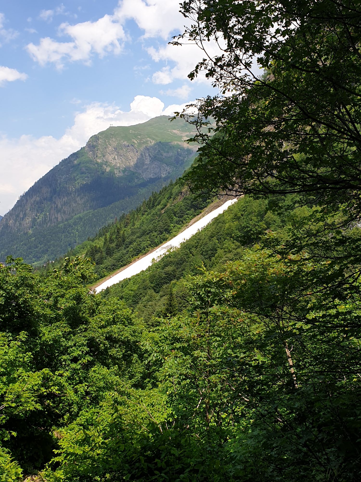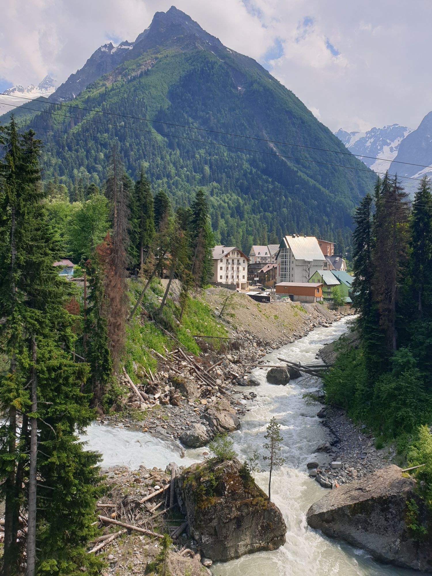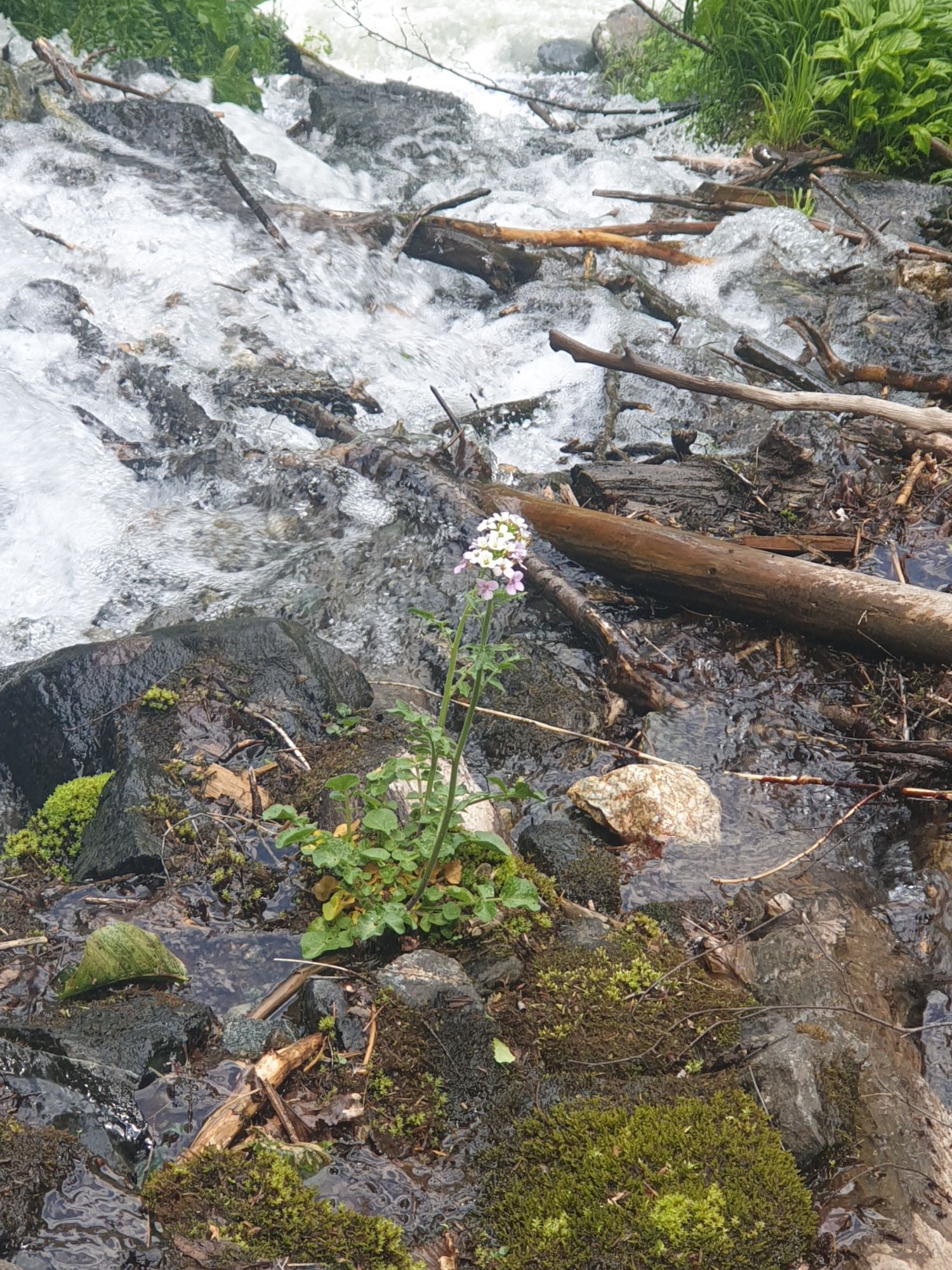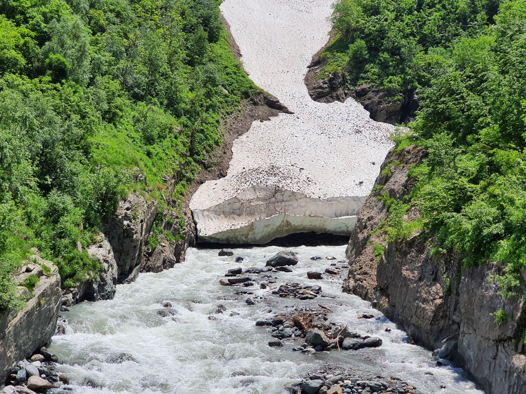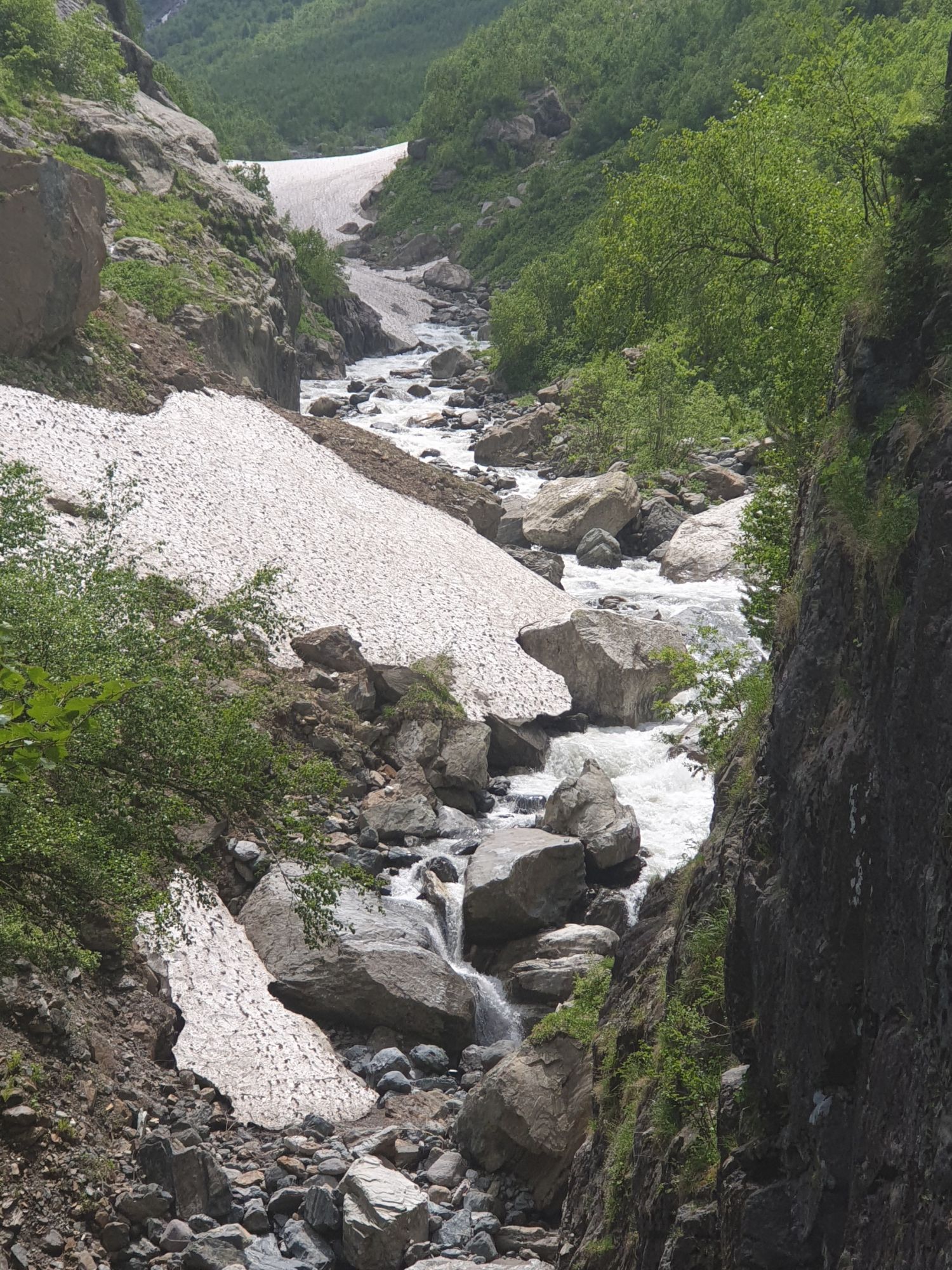 12 июля 2022 Продолжаю. Розы, значит... не отчет об отпуске, а какая-то исповедь получается. И я, вероятно, еще об этом пожалею. Совершенно точно пожалею. Что в очередной раз душу наизнанку. Но уж как есть. Значит так сейчас надо. В этой части про розы не будет. А будет про Домбай и обломы. А еще про равновесие. И про то, что порой судьба лучше нас знает, что нам надо, а чего не надо. На следующий день решено было ехать в Домбай. К высоте пообвыклись, ноги потихоньку пошли, прогноз погоды дает шанс. Правда яндекс говорил, что днем там максимум +9 будет, но +9 по-Домбайски оказались вполне себе жаркими в лесу и даже очень жаркими в поселке среди камня и асфальта. Выехали мы не слишком рано, не так рано как хотелось бы. Потому что вчерашние 20км давали о себе знать. (С чего бы это?). По совету Юли @Juliay через перевал Гум-Баши не поехали. Дорога там, конечно, красивая, но еще и в прошлом году была на минное поле похожа. Воспользовались другой дорогой: тоже немноголюдно, тоже перевал и серпантины, тоже красивые виды, а дорога очень и очень неплохая. И всего плюс 20-30 минут ко времени. А через 2.5 часа впереди замаячили заснеженные горы Тебердинского заповедника и Домбая Из разных вариантов маршрутов по заповеднику мы рассматривали на тот день два, оба к водопадам, но разным. И разной степени сложности. Финальный выбор отдала в руки домочадцев. Они выбрали более сложный. У меня вызывало это некоторые опасения, т.к. я не уверена была в своих силах. А еще читала, что в это время у водопада бывает снежник, по которому не всегда безопасно ходить. Но мои очень уж хотели. "Если что, издали посмотрим", - сказали они. Итак, было решено идти к Суфруджинским водопадам. Предполагаемая длина маршрута порядка 7 км в одну сторону, конечная точка на высоте более 2000м нум, погранзона с оформлением пропусков на кпп заповедника в начале маршрута. Там же, совсем недалеко от точки старта можно заглянуть на Чертову мельницу - любопытное место на реке Аманауз. И вот он, облом первый. Маршрут закрыт! Зимой и весной были сходы лавин и сейчас на маршруте еще куча снежников (это огромные такие снежные языки и скопления, толщиной зачастую больше метра, плотные в холодное время года, но в июне активно начинающие таять, поэтому совсем не безопасные для таких как мы) . Дойти можно только до Чертовой мельницы, дальше погранзона и пропуска в нее сейчас туристам не оформляют. А чертова мельница - это 700 метров всего. Вместо 7ми-то км! И время такое, что на второй маршрут мы уже не успеваем. Ну что ж, идем до Чертовой мельницы. Вы, конечно, понимаете, что я была бы не я, если бы не постаралась поскорее изничтожить свое разочарование и не радовалась бы каждой травинке, каждому ручью и каждому новому сюжету для кадра. Ущелье Аманауз известно как кухня погоды. Здесь часто зарождаются ураганы и метели, здесь часто сходят лавины и сели. В июне с приходом тепла повсюду в горах ледники и снежники начинают активно таять, реки становятся особенно полноводными и бурлящими, на склонах гор десятки безымянных водопадов больших и маленьких, снежные языки спускаются прямо в воду. И цветы... их бесконечно много. И на разной высоте будто разное время года. Вообще подъем в это время в горах сродни путешествию во времени: от лета к ранней весне на подъеме и обратно на спуске. А эти 700м... это между точками на карте. А на деле... перепад высоты на ма