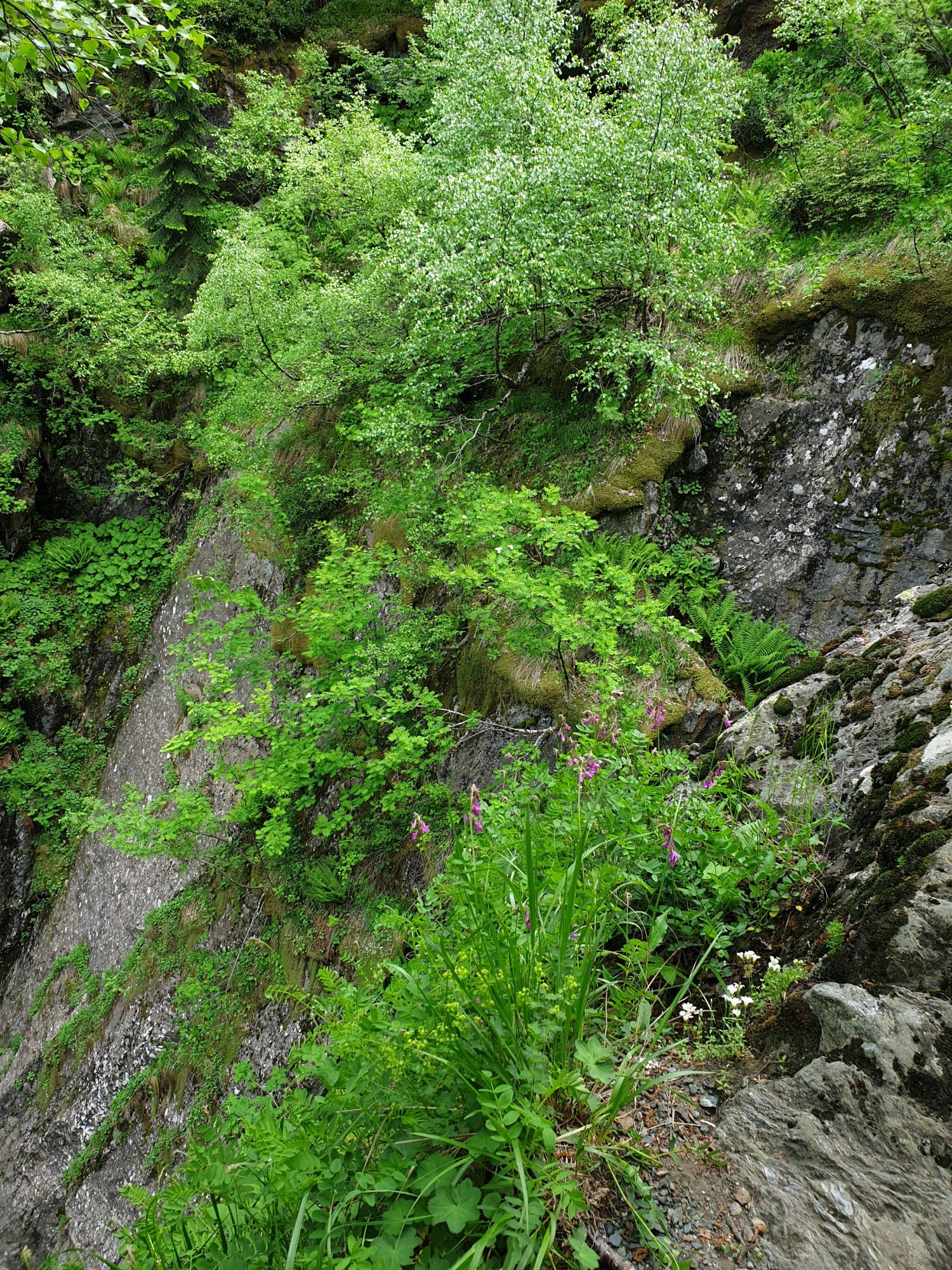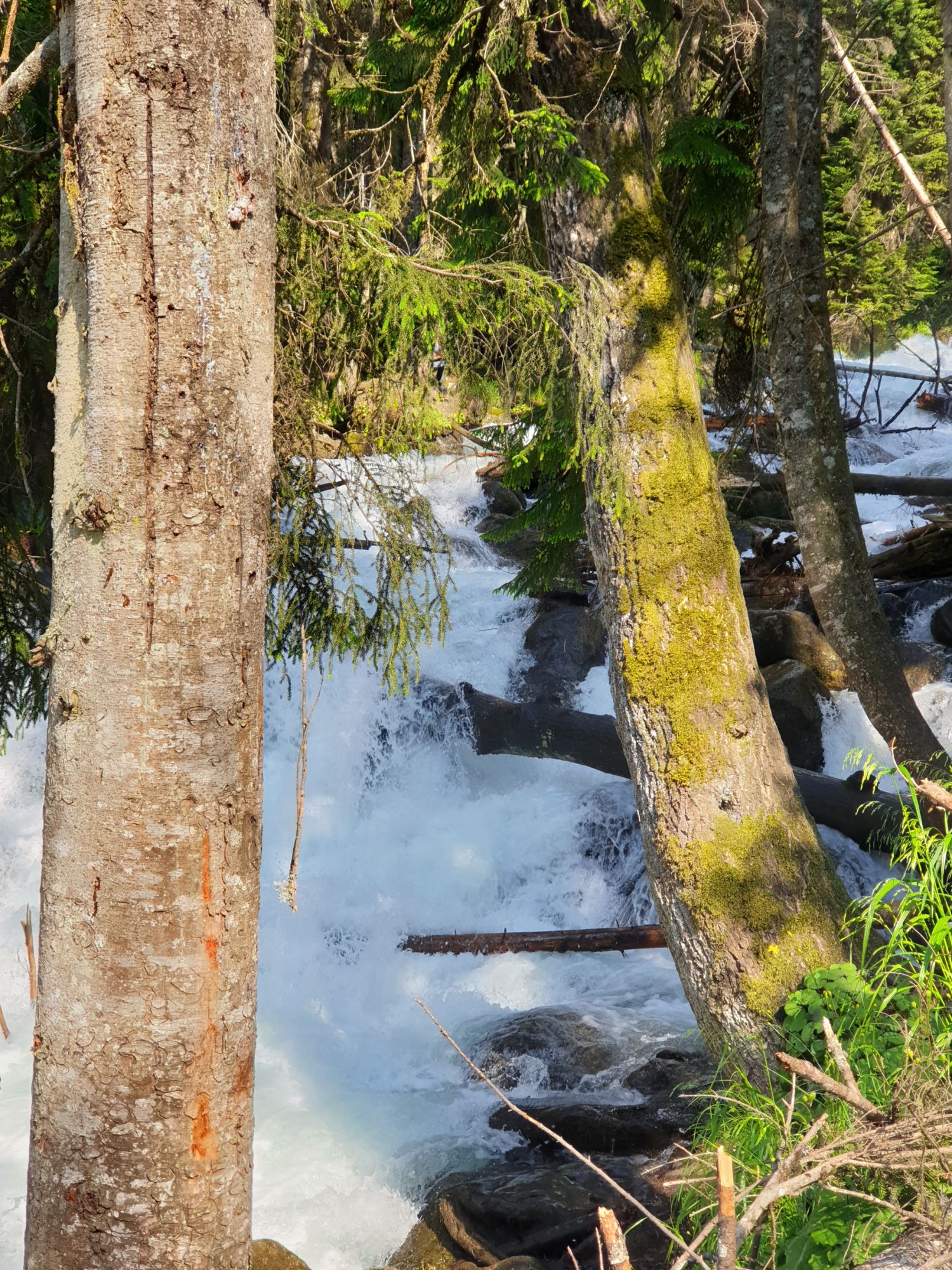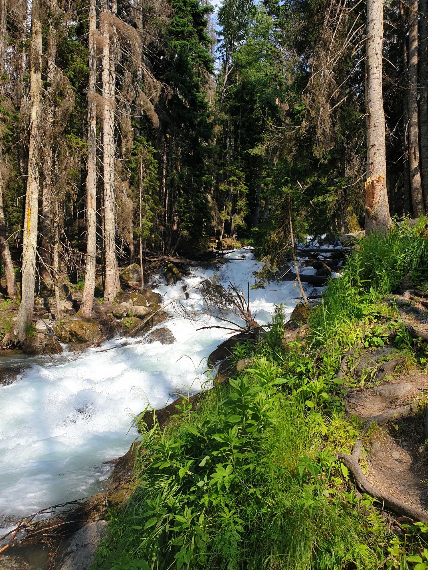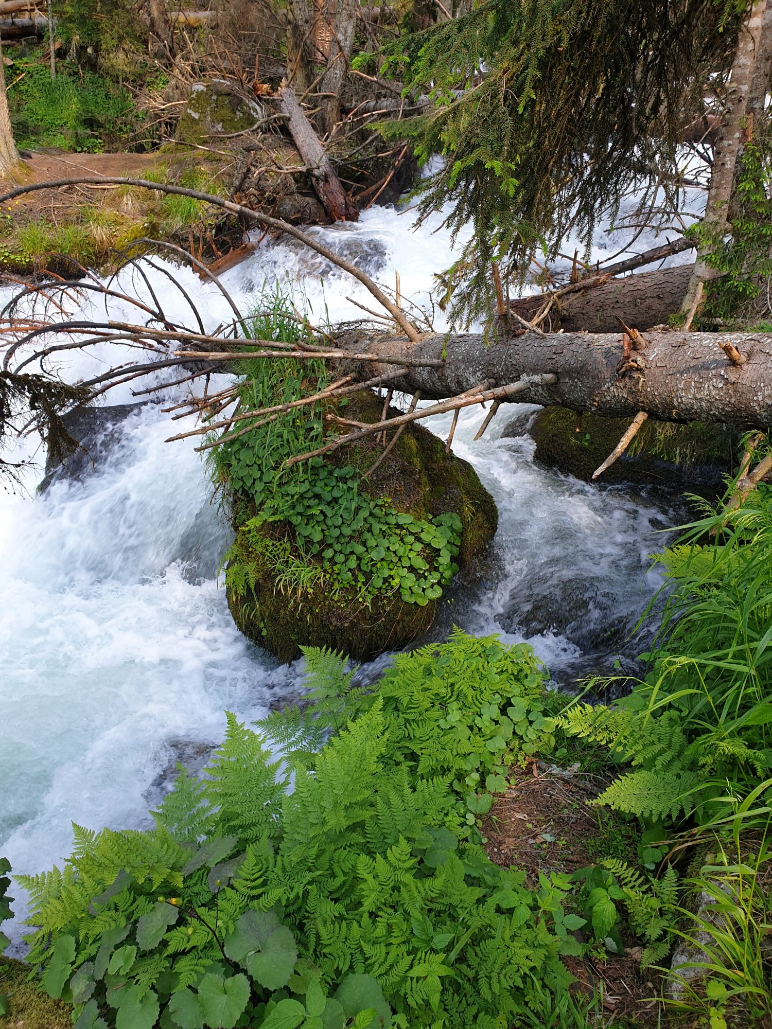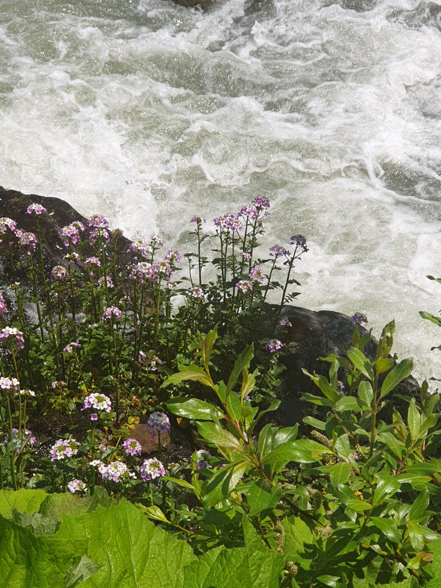 12 июля 2022 Продолжаю. Розы, значит... не отчет об отпуске, а какая-то исповедь получается. И я, вероятно, еще об этом пожалею. Совершенно точно пожалею. Что в очередной раз душу наизнанку. Но уж как есть. Значит так сейчас надо. В этой части про розы не будет. А будет про Домбай и обломы. А еще про равновесие. И про то, что порой судьба лучше нас знает, что нам надо, а чего не надо. На следующий день решено было ехать в Домбай. К высоте пообвыклись, ноги потихоньку пошли, прогноз погоды дает шанс. Правда яндекс говорил, что днем там максимум +9 будет, но +9 по-Домбайски оказались вполне себе жаркими в лесу и даже очень жаркими в поселке среди камня и асфальта. Выехали мы не слишком рано, не так рано как хотелось бы. Потому что вчерашние 20км давали о себе знать. (С чего бы это?). По совету Юли @Juliay через перевал Гум-Баши не поехали. Дорога там, конечно, красивая, но еще и в прошлом году была на минное поле похожа. Воспользовались другой дорогой: тоже немноголюдно, тоже перевал и серпантины, тоже красивые виды, а дорога очень и очень неплохая. И всего плюс 20-30 минут ко времени. А через 2.5 часа впереди замаячили заснеженные горы Тебердинского заповедника и Домбая Из разных вариантов маршрутов по заповеднику мы рассматривали на тот день два, оба к водопадам, но разным. И разной степени сложности. Финальный выбор отдала в руки домочадцев. Они выбрали более сложный. У меня вызывало это некоторые опасения, т.к. я не уверена была в своих силах. А еще читала, что в это время у водопада бывает снежник, по которому не всегда безопасно ходить. Но мои очень уж хотели. "Если что, издали посмотрим", - сказали они. Итак, было решено идти к Суфруджинским водопадам. Предполагаемая длина маршрута порядка 7 км в одну сторону, конечная точка на высоте более 2000м нум, погранзона с оформлением пропусков на кпп заповедника в начале маршрута. Там же, совсем недалеко от точки старта можно заглянуть на Чертову мельницу - любопытное место на реке Аманауз. И вот он, облом первый. Маршрут закрыт! Зимой и весной были сходы лавин и сейчас на маршруте еще куча снежников (это огромные такие снежные языки и скопления, толщиной зачастую больше метра, плотные в холодное время года, но в июне активно начинающие таять, поэтому совсем не безопасные для таких как мы) . Дойти можно только до Чертовой мельницы, дальше погранзона и пропуска в нее сейчас туристам не оформляют. А чертова мельница - это 700 метров всего. Вместо 7ми-то км! И время такое, что на второй маршрут мы уже не успеваем. Ну что ж, идем до Чертовой мельницы. Вы, конечно, понимаете, что я была бы не я, если бы не постаралась поскорее изничтожить свое разочарование и не радовалась бы каждой травинке, каждому ручью и каждому новому сюжету для кадра. Ущелье Аманауз известно как кухня погоды. Здесь часто зарождаются ураганы и метели, здесь часто сходят лавины и сели. В июне с приходом тепла повсюду в горах ледники и снежники начинают активно таять, реки становятся особенно полноводными и бурлящими, на склонах гор десятки безымянных водопадов больших и маленьких, снежные языки спускаются прямо в воду. И цветы... их бесконечно много. И на разной высоте будто разное время года. Вообще подъем в это время в горах сродни путешествию во времени: от лета к ранней весне на подъеме и обратно на спуске. А эти 700м... это между точками на карте. А на деле... перепад высоты на ма