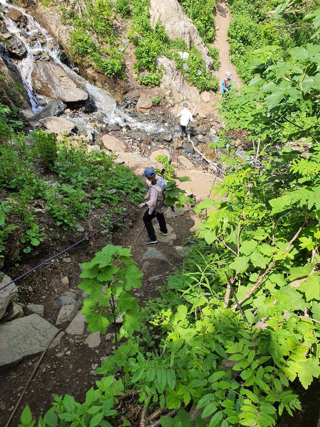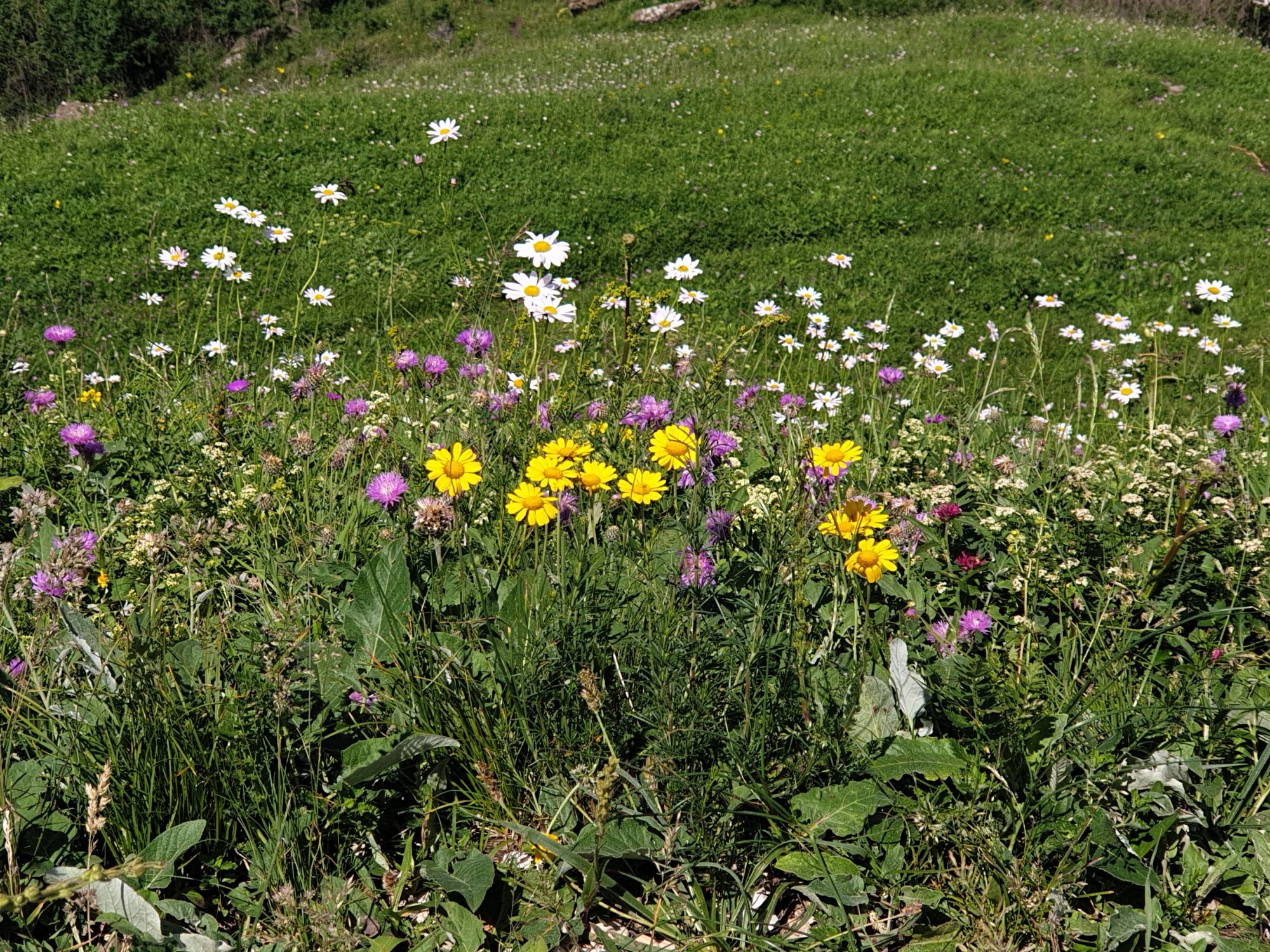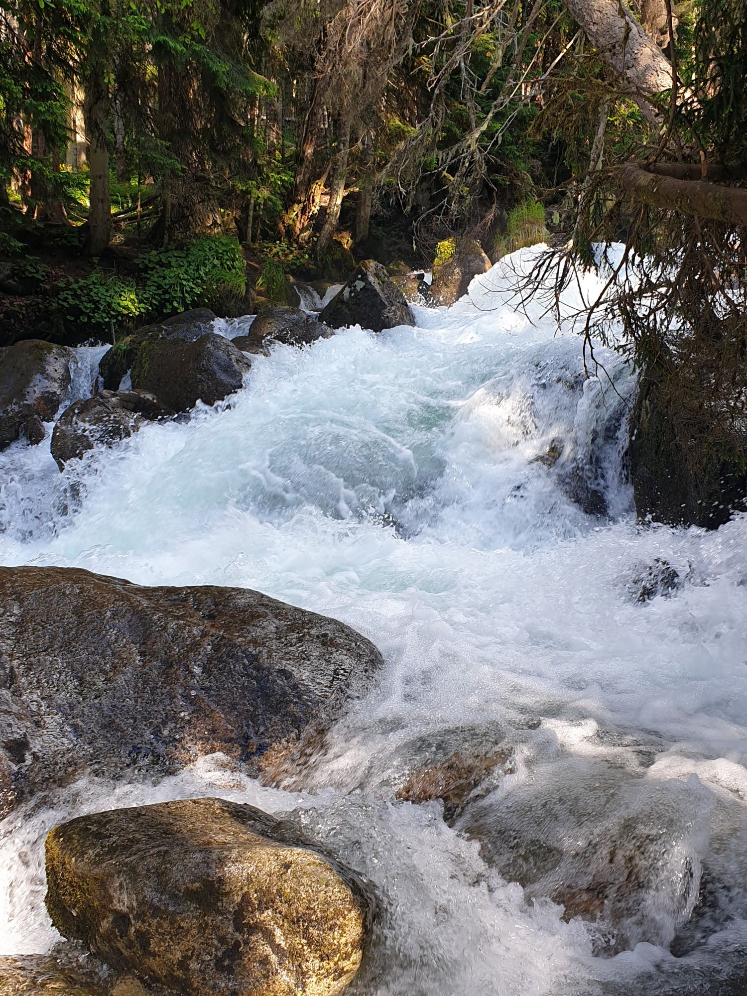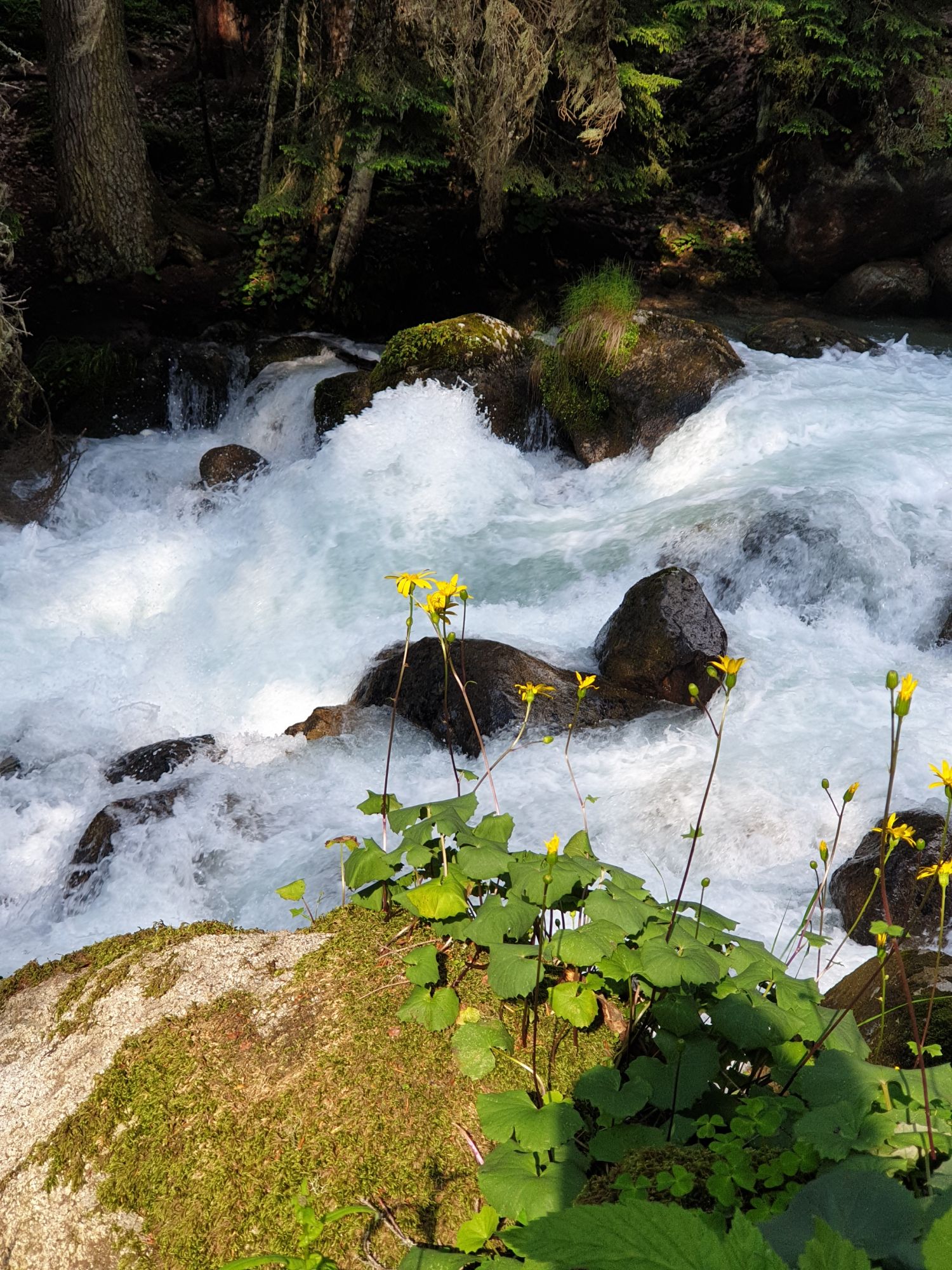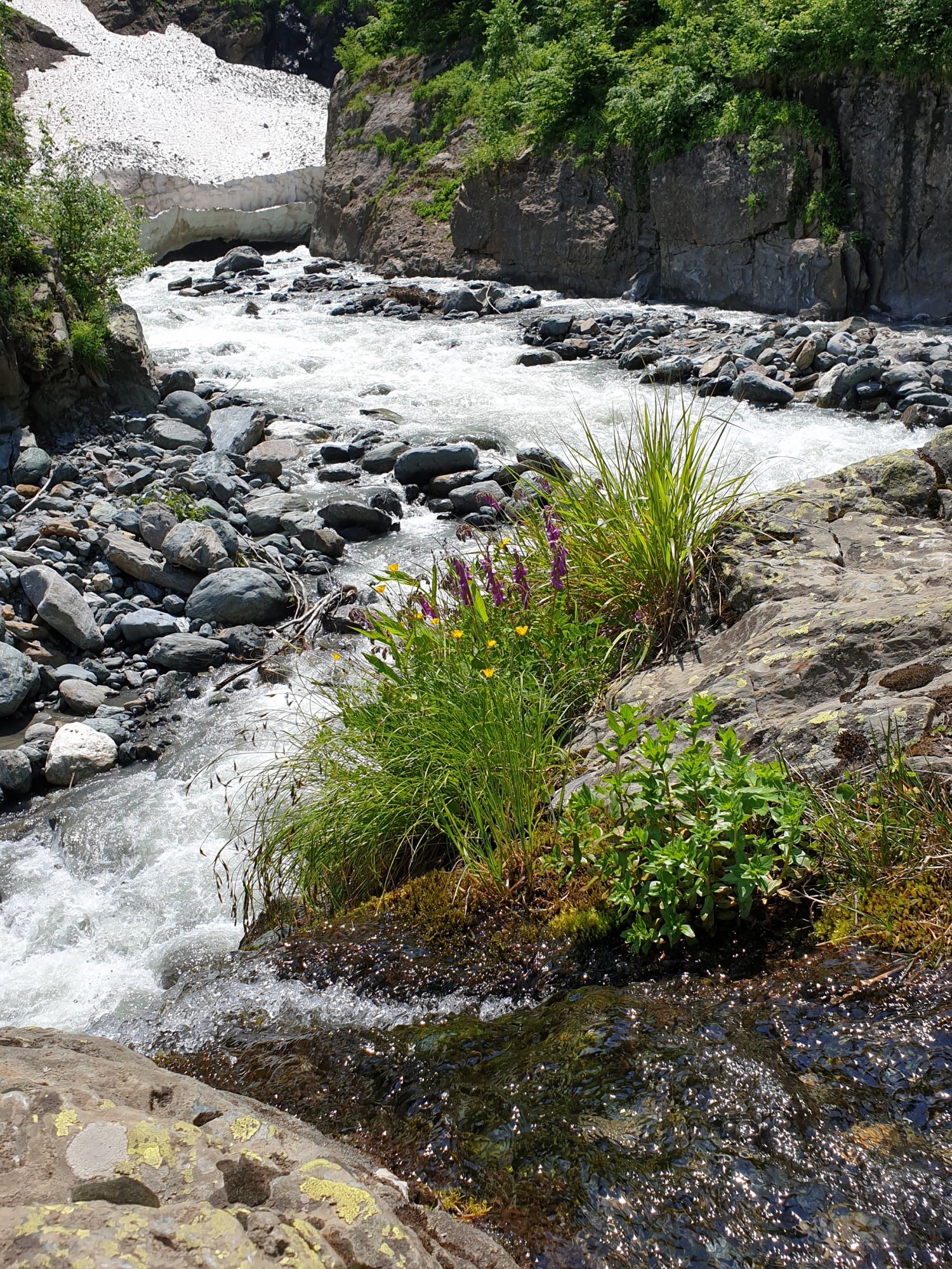 12 июля 2022 Продолжаю. Розы, значит... не отчет об отпуске, а какая-то исповедь получается. И я, вероятно, еще об этом пожалею. Совершенно точно пожалею. Что в очередной раз душу наизнанку. Но уж как есть. Значит так сейчас надо. В этой части про розы не будет. А будет про Домбай и обломы. А еще про равновесие. И про то, что порой судьба лучше нас знает, что нам надо, а чего не надо. На следующий день решено было ехать в Домбай. К высоте пообвыклись, ноги потихоньку пошли, прогноз погоды дает шанс. Правда яндекс говорил, что днем там максимум +9 будет, но +9 по-Домбайски оказались вполне себе жаркими в лесу и даже очень жаркими в поселке среди камня и асфальта. Выехали мы не слишком рано, не так рано как хотелось бы. Потому что вчерашние 20км давали о себе знать. (С чего бы это?). По совету Юли @Juliay через перевал Гум-Баши не поехали. Дорога там, конечно, красивая, но еще и в прошлом году была на минное поле похожа. Воспользовались другой дорогой: тоже немноголюдно, тоже перевал и серпантины, тоже красивые виды, а дорога очень и очень неплохая. И всего плюс 20-30 минут ко времени. А через 2.5 часа впереди замаячили заснеженные горы Тебердинского заповедника и Домбая Из разных вариантов маршрутов по заповеднику мы рассматривали на тот день два, оба к водопадам, но разным. И разной степени сложности. Финальный выбор отдала в руки домочадцев. Они выбрали более сложный. У меня вызывало это некоторые опасения, т.к. я не уверена была в своих силах. А еще читала, что в это время у водопада бывает снежник, по которому не всегда безопасно ходить. Но мои очень уж хотели. "Если что, издали посмотрим", - сказали они. Итак, было решено идти к Суфруджинским водопадам. Предполагаемая длина маршрута порядка 7 км в одну сторону, конечная точка на высоте более 2000м нум, погранзона с оформлением пропусков на кпп заповедника в начале маршрута. Там же, совсем недалеко от точки старта можно заглянуть на Чертову мельницу - любопытное место на реке Аманауз. И вот он, облом первый. Маршрут закрыт! Зимой и весной были сходы лавин и сейчас на маршруте еще куча снежников (это огромные такие снежные языки и скопления, толщиной зачастую больше метра, плотные в холодное время года, но в июне активно начинающие таять, поэтому совсем не безопасные для таких как мы) . Дойти можно только до Чертовой мельницы, дальше погранзона и пропуска в нее сейчас туристам не оформляют. А чертова мельница - это 700 метров всего. Вместо 7ми-то км! И время такое, что на второй маршрут мы уже не успеваем. Ну что ж, идем до Чертовой мельницы. Вы, конечно, понимаете, что я была бы не я, если бы не постаралась поскорее изничтожить свое разочарование и не радовалась бы каждой травинке, каждому ручью и каждому новому сюжету для кадра. Ущелье Аманауз известно как кухня погоды. Здесь часто зарождаются ураганы и метели, здесь часто сходят лавины и сели. В июне с приходом тепла повсюду в горах ледники и снежники начинают активно таять, реки становятся особенно полноводными и бурлящими, на склонах гор десятки безымянных водопадов больших и маленьких, снежные языки спускаются прямо в воду. И цветы... их бесконечно много. И на разной высоте будто разное время года. Вообще подъем в это время в горах сродни путешествию во времени: от лета к ранней весне на подъеме и обратно на спуске. А эти 700м... это между точками на карте. А на деле... перепад высоты на ма