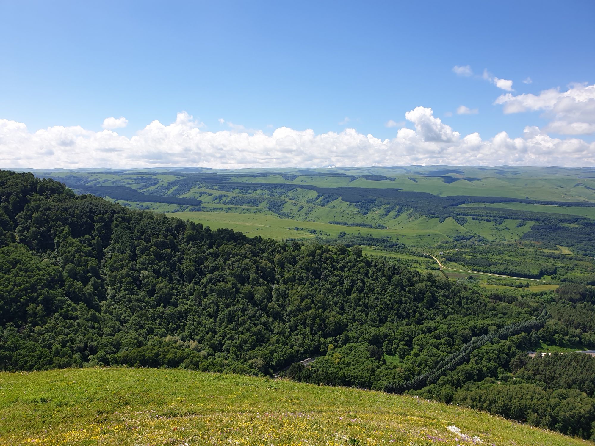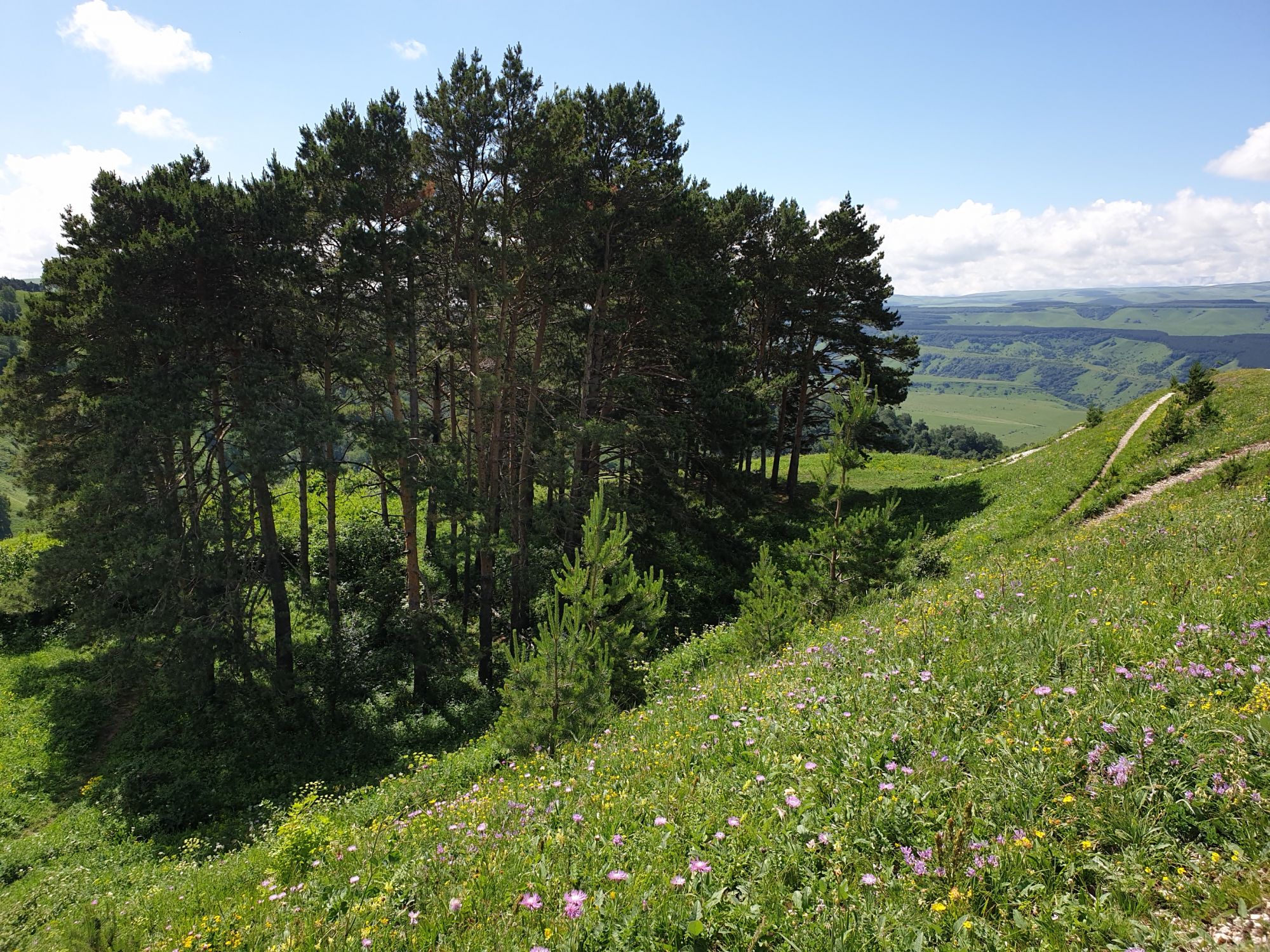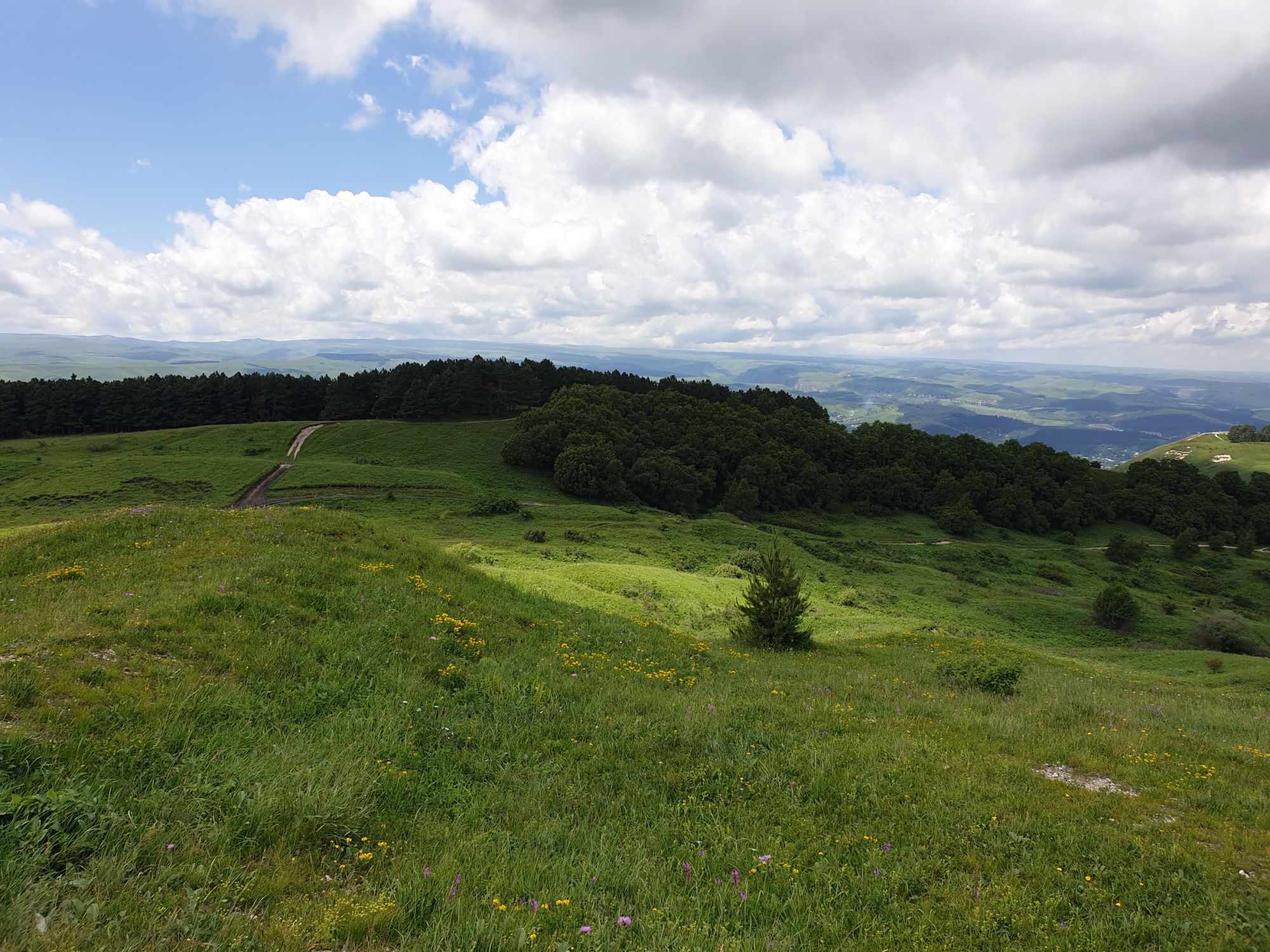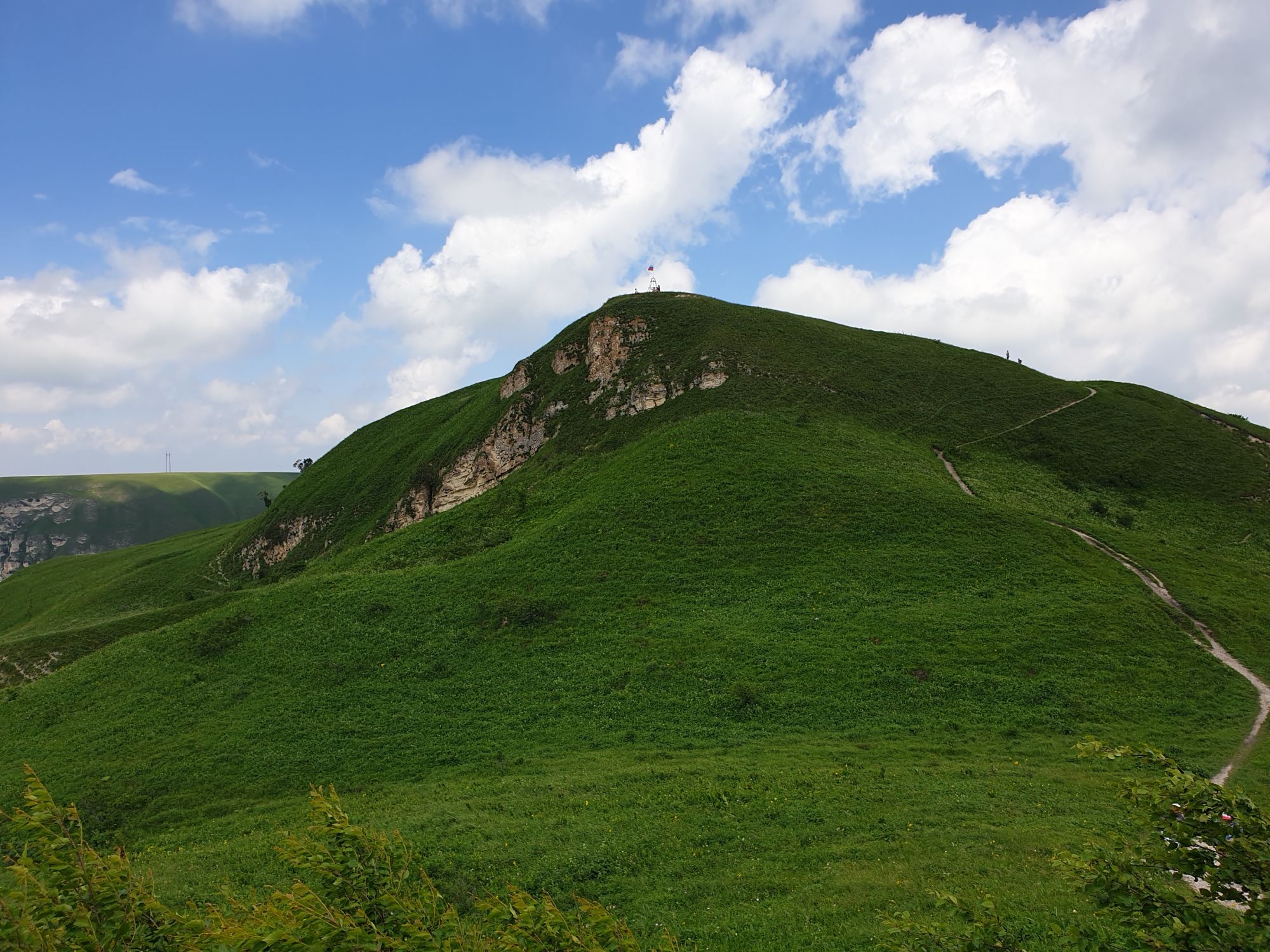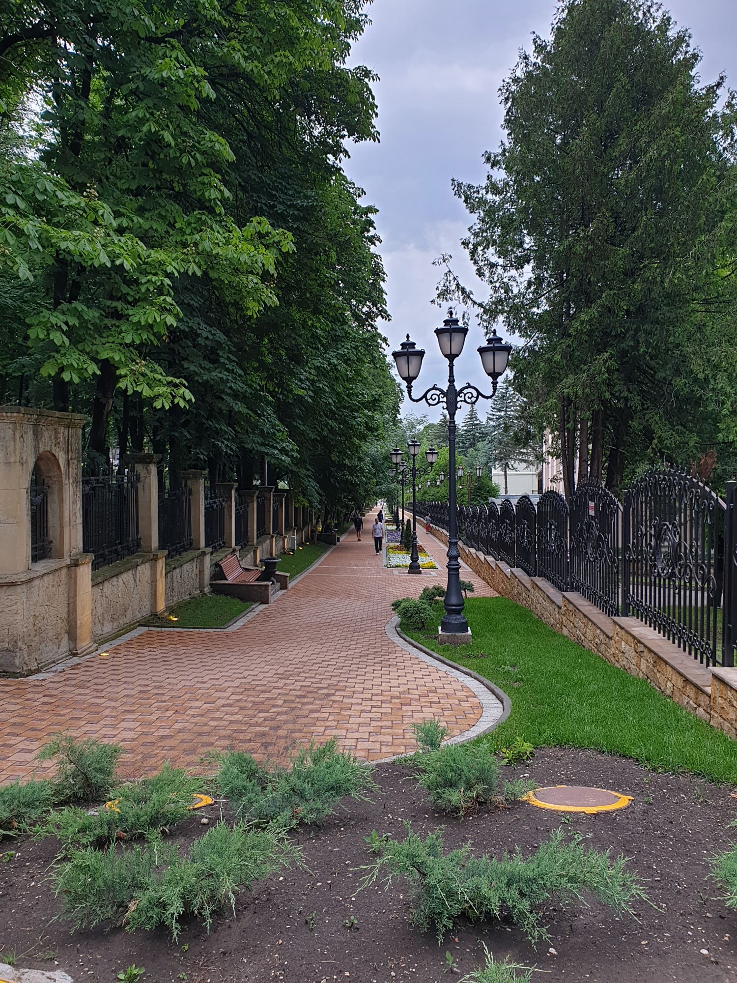 12 июля 2022 Продолжаю про отпуск. В этот раз на нашем пути встало два значимых препятствия. Первое - это дождь. Мы его в принципе не боимся и в курсе, что это время здесь условно называют "сезоном дождей", но в этот раз все было особенно бесперспективно. Увидеть тот же Эльбрус было ну совершенно без шансов: даже в солнечные окна горизонт был плотно затянут этими хорошо взбитыми подушками - облаками. Нам приходилось лавировать между дождями разной степени интенсивности (а ливней было немало) и носить с собой полный комплект экипировки: куртки + дождевики (но это в общем-то самая незначительная трудность). И второе - физическая форма. Карантинные 2020 и 2021 вкупе с не самым активным образом жизни и не желающим уменьшаться возрастом дали о себе знать. Тем более последний год по здоровью выдался у меня сложным. И вот мы наконец там, где дорожек и тропинок бесчисленное количество, равно как и подъемов и спусков разной степени крутизны и продолжительности. Я знала, что будет непросто, но надеялась, что вместе в любимым парком и местным нарзаном мы таки сумеем "включить" мой организм. Первые пару дней было сложно, болели суставы, мышцы, казалось, что я не справлюсь. Километраж в те дни был 12-16 км с максимальной высотой 1100м (средняя высота Кисловодска 700-900 метров нум). В те дни были розы в огромном количестве, много живности от вездесущих белок до редкого зеленого дятла, цветущие кусты чубушника, относящие меня своим ароматом в детство, дорожки и тропинки любимого парка и немножко города. И еще один закрытый "гельштадт": сколько раз смотрела с Каскадной лестницы на "красивый храм вдалеке", ни ни разу не довелось побывать вблизи. Сделано! Хоть и не с первого раза удалось найти к нему проход)) Однажды, гуляя по туристической тропе, я подбила своих на то, чтобы залезть таки в пещеру "хобот", что возвышается над тропой недалеко от ее начала. А то все издалека да издалека: так и не особенно понятно, почему так зовут)) Забрались) Сверху сразу понятно, откуда прозвище. Не знаю, как на фото, а живьем сразу видишь голову слова с хоботом-колонной, что поддерживает свод пещеры)) пещера в конце вот этой тропки-подъема: а вот и хобот) и череда небольших гротов на этом же уступе На третий день я практически полетела. И, о эйфория!, я решила, что готова идти "на пробу" на маршрут посерьезней: к Малому и (хотелось бы) Большому седлу (это 1300 и 1400м с чередой подъемов и спусков). И на 4й день мы пошли туда. И именно в этот день я попала в функциональную яму. Первые км 10 мне каждый шаг давался с трудом, я чуть не плакала внутри, но шла, зная что других способов нет. Медленно, через себя, останавливаясь на самых крутых подъемах чуть ли не через каждые 5 шагов... и упорство таки было вознаграждено. Вторую половину (а в тот день по gps трекеру было порядка 20 км) я шла вполне бодро. А уж внутреннее ликование от "живого организма" было безгранично! И это помимо того, что виды были бесконечно волнующими сердце.. Шиповник! Как же его много здесь на высоте! Кусты разбросаны тут и там и усыпаны нежными, трогательными цветами от белого до нежно-розового. Иногда однотонные, иногда с градиентом цвета цветы на фоне этих бескрайних зеленых просторов волновали до слез. И кто после них рискнет сказать, что не любит розовый цвет? А помимо шиповника все склоны усыпаны цветущими травами. Ромашки (которые нивяник) белые и розовы