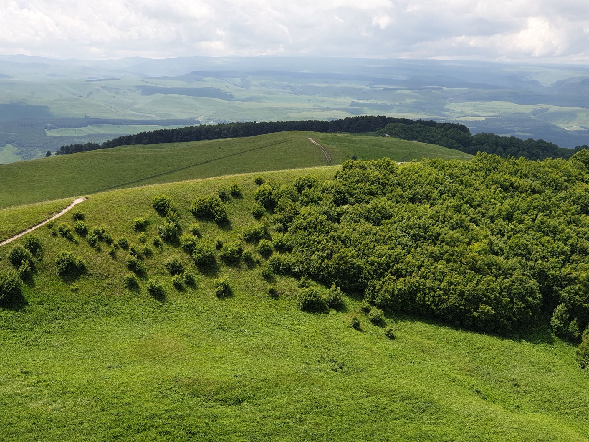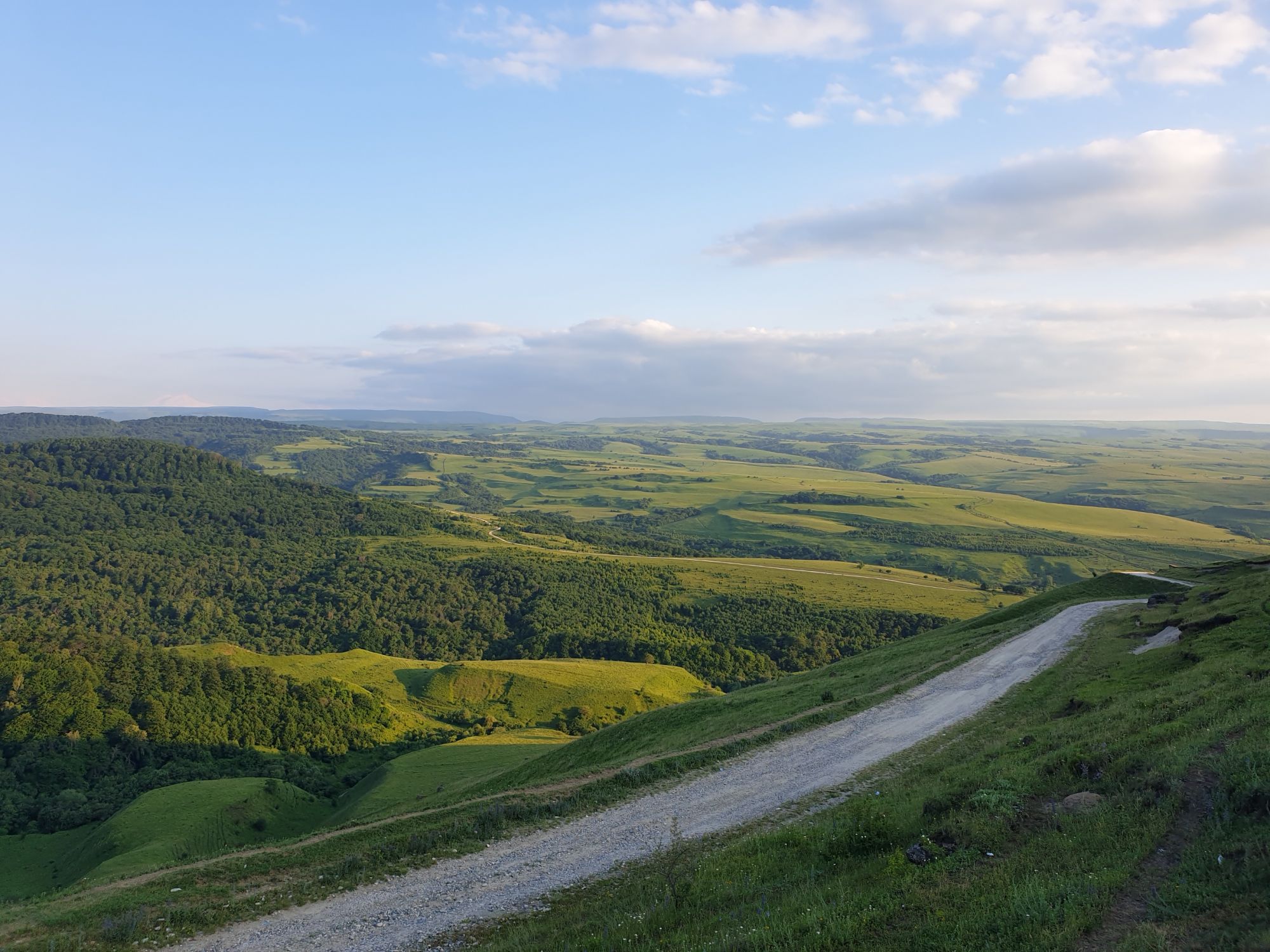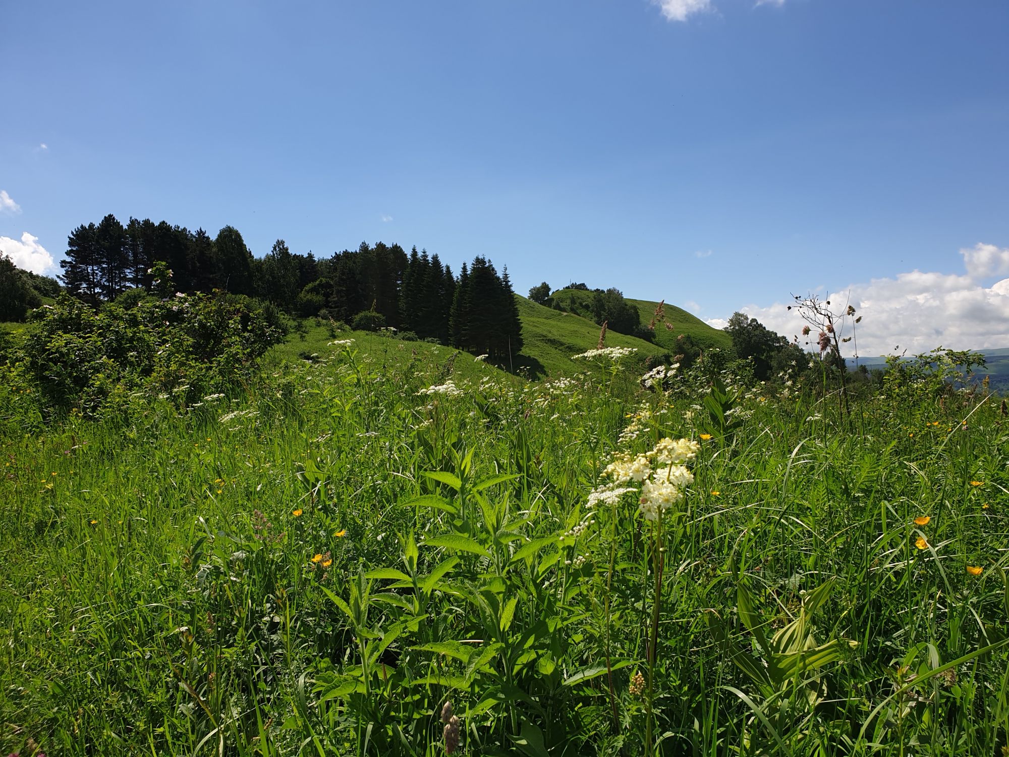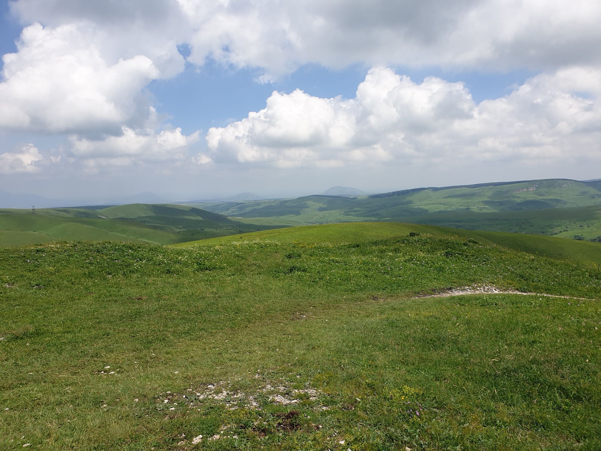 12 июля 2022 Продолжаю про отпуск. В этот раз на нашем пути встало два значимых препятствия. Первое - это дождь. Мы его в принципе не боимся и в курсе, что это время здесь условно называют "сезоном дождей", но в этот раз все было особенно бесперспективно. Увидеть тот же Эльбрус было ну совершенно без шансов: даже в солнечные окна горизонт был плотно затянут этими хорошо взбитыми подушками - облаками. Нам приходилось лавировать между дождями разной степени интенсивности (а ливней было немало) и носить с собой полный комплект экипировки: куртки + дождевики (но это в общем-то самая незначительная трудность). И второе - физическая форма. Карантинные 2020 и 2021 вкупе с не самым активным образом жизни и не желающим уменьшаться возрастом дали о себе знать. Тем более последний год по здоровью выдался у меня сложным. И вот мы наконец там, где дорожек и тропинок бесчисленное количество, равно как и подъемов и спусков разной степени крутизны и продолжительности. Я знала, что будет непросто, но надеялась, что вместе в любимым парком и местным нарзаном мы таки сумеем "включить" мой организм. Первые пару дней было сложно, болели суставы, мышцы, казалось, что я не справлюсь. Километраж в те дни был 12-16 км с максимальной высотой 1100м (средняя высота Кисловодска 700-900 метров нум). В те дни были розы в огромном количестве, много живности от вездесущих белок до редкого зеленого дятла, цветущие кусты чубушника, относящие меня своим ароматом в детство, дорожки и тропинки любимого парка и немножко города. И еще один закрытый "гельштадт": сколько раз смотрела с Каскадной лестницы на "красивый храм вдалеке", ни ни разу не довелось побывать вблизи. Сделано! Хоть и не с первого раза удалось найти к нему проход)) Однажды, гуляя по туристической тропе, я подбила своих на то, чтобы залезть таки в пещеру "хобот", что возвышается над тропой недалеко от ее начала. А то все издалека да издалека: так и не особенно понятно, почему так зовут)) Забрались) Сверху сразу понятно, откуда прозвище. Не знаю, как на фото, а живьем сразу видишь голову слова с хоботом-колонной, что поддерживает свод пещеры)) пещера в конце вот этой тропки-подъема: а вот и хобот) и череда небольших гротов на этом же уступе На третий день я практически полетела. И, о эйфория!, я решила, что готова идти "на пробу" на маршрут посерьезней: к Малому и (хотелось бы) Большому седлу (это 1300 и 1400м с чередой подъемов и спусков). И на 4й день мы пошли туда. И именно в этот день я попала в функциональную яму. Первые км 10 мне каждый шаг давался с трудом, я чуть не плакала внутри, но шла, зная что других способов нет. Медленно, через себя, останавливаясь на самых крутых подъемах чуть ли не через каждые 5 шагов... и упорство таки было вознаграждено. Вторую половину (а в тот день по gps трекеру было порядка 20 км) я шла вполне бодро. А уж внутреннее ликование от "живого организма" было безгранично! И это помимо того, что виды были бесконечно волнующими сердце.. Шиповник! Как же его много здесь на высоте! Кусты разбросаны тут и там и усыпаны нежными, трогательными цветами от белого до нежно-розового. Иногда однотонные, иногда с градиентом цвета цветы на фоне этих бескрайних зеленых просторов волновали до слез. И кто после них рискнет сказать, что не любит розовый цвет? А помимо шиповника все склоны усыпаны цветущими травами. Ромашки (которые нивяник) белые и розовы