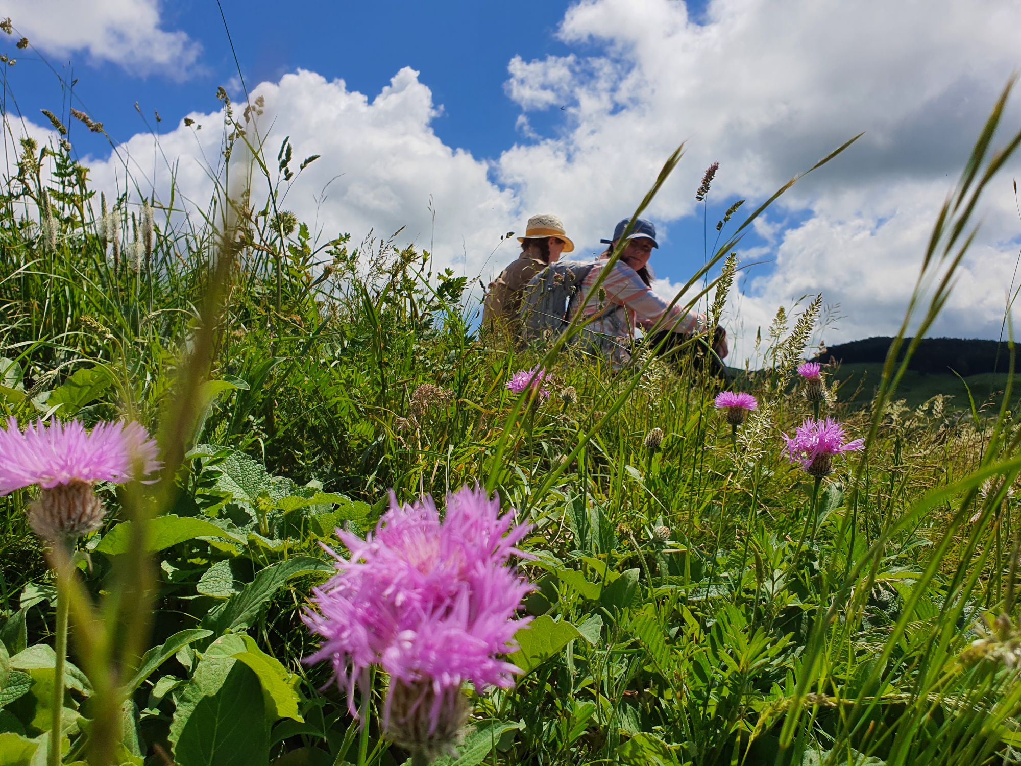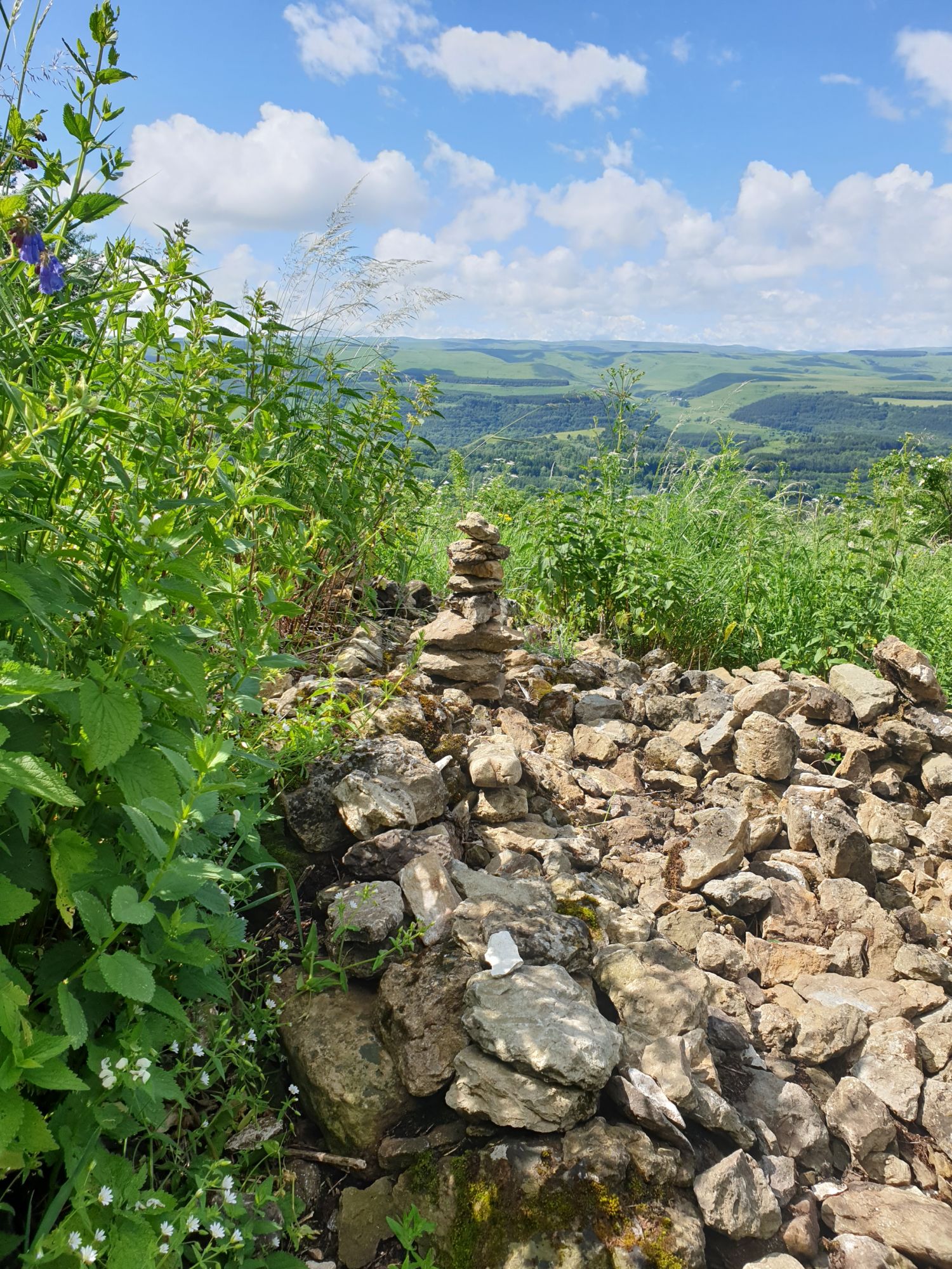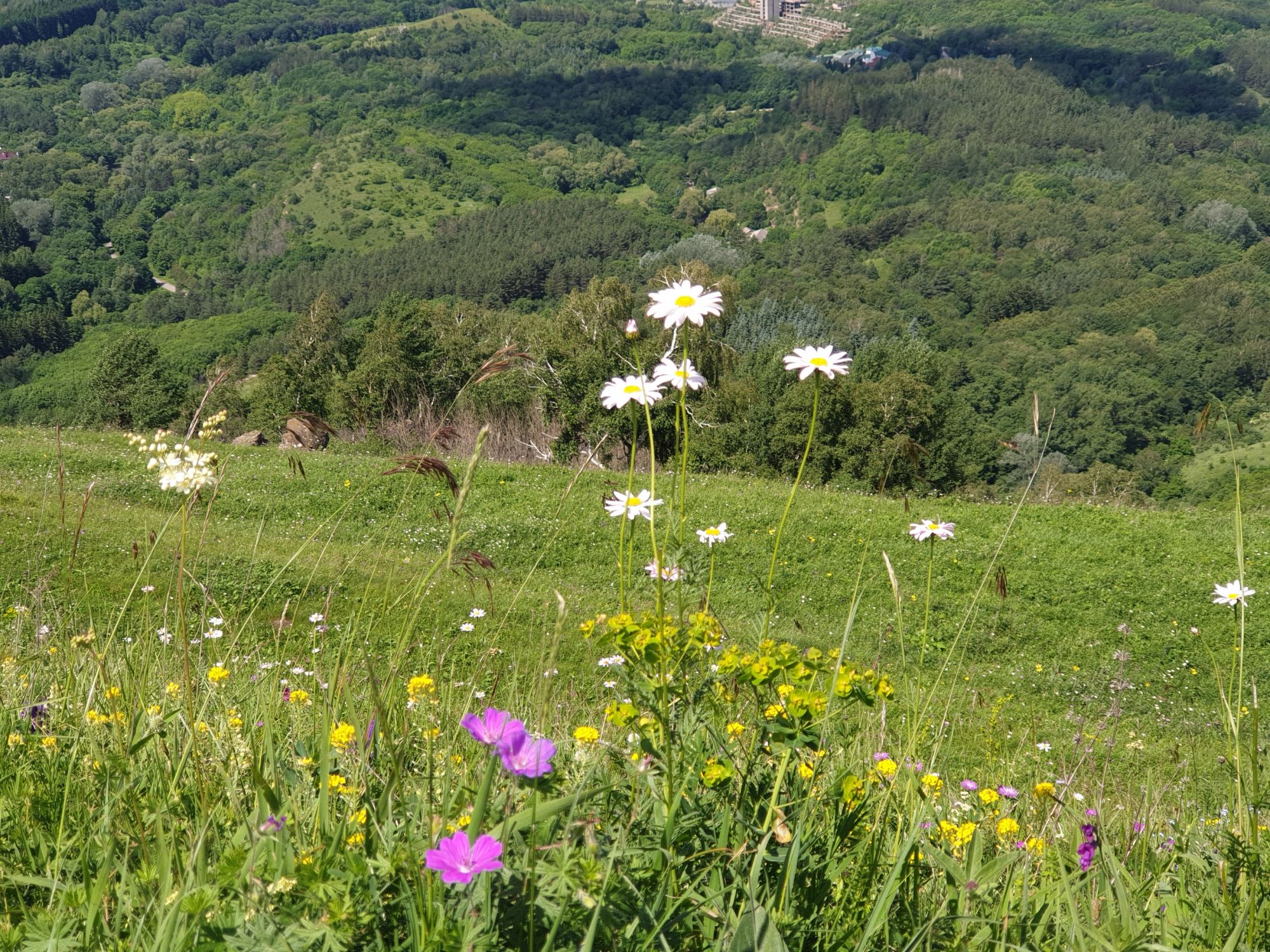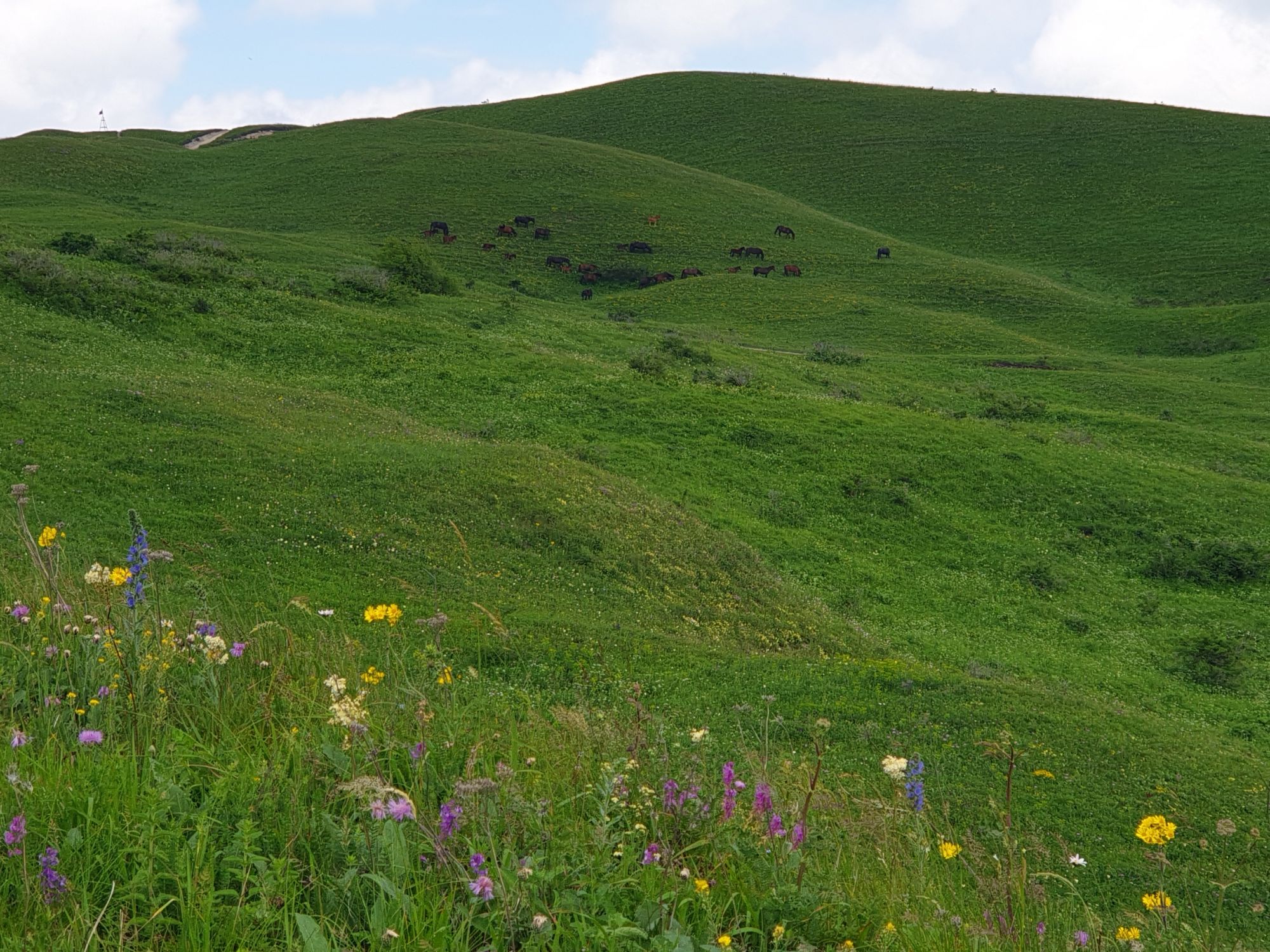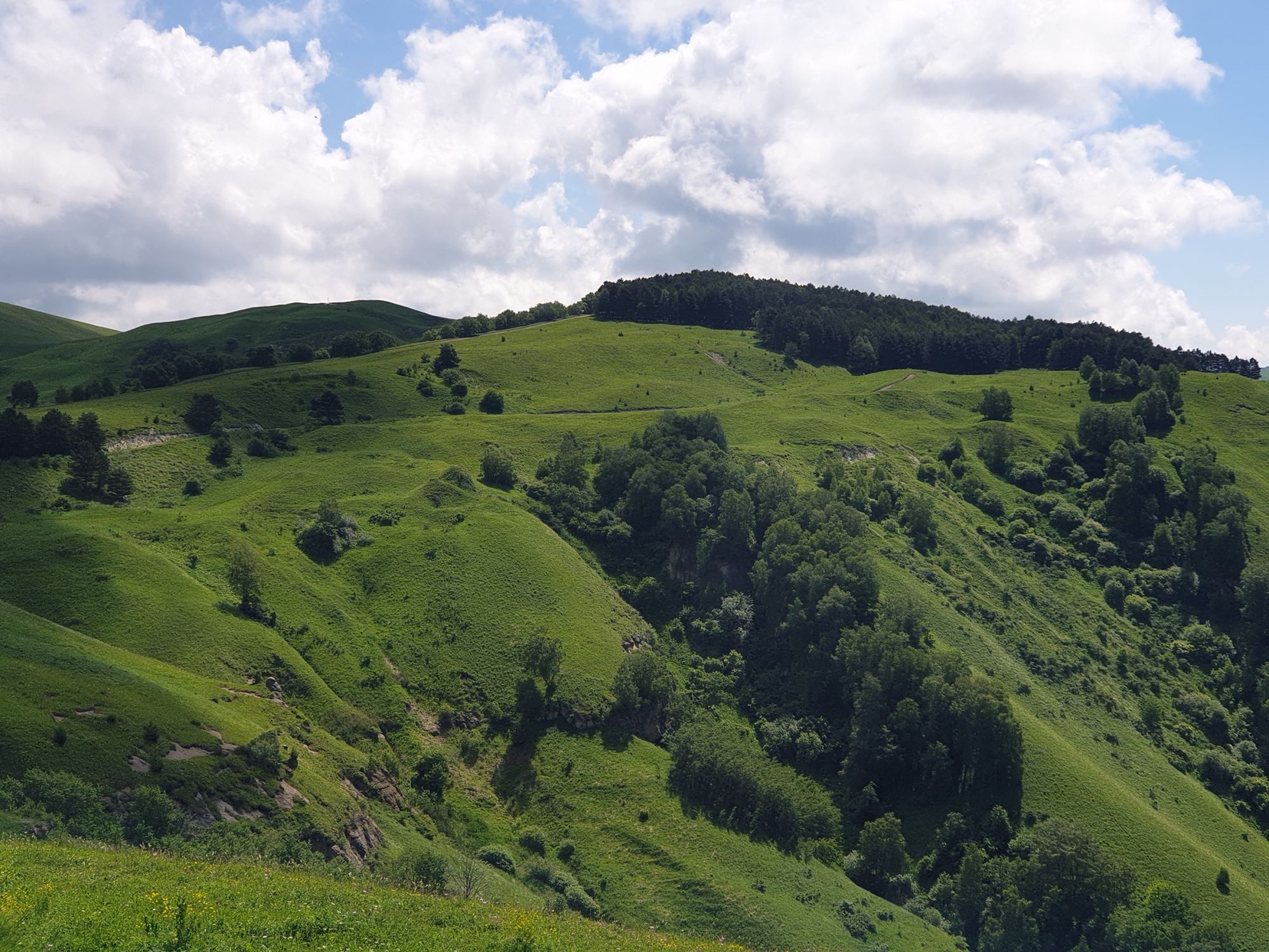 12 июля 2022 Продолжаю про отпуск. В этот раз на нашем пути встало два значимых препятствия. Первое - это дождь. Мы его в принципе не боимся и в курсе, что это время здесь условно называют "сезоном дождей", но в этот раз все было особенно бесперспективно. Увидеть тот же Эльбрус было ну совершенно без шансов: даже в солнечные окна горизонт был плотно затянут этими хорошо взбитыми подушками - облаками. Нам приходилось лавировать между дождями разной степени интенсивности (а ливней было немало) и носить с собой полный комплект экипировки: куртки + дождевики (но это в общем-то самая незначительная трудность). И второе - физическая форма. Карантинные 2020 и 2021 вкупе с не самым активным образом жизни и не желающим уменьшаться возрастом дали о себе знать. Тем более последний год по здоровью выдался у меня сложным. И вот мы наконец там, где дорожек и тропинок бесчисленное количество, равно как и подъемов и спусков разной степени крутизны и продолжительности. Я знала, что будет непросто, но надеялась, что вместе в любимым парком и местным нарзаном мы таки сумеем "включить" мой организм. Первые пару дней было сложно, болели суставы, мышцы, казалось, что я не справлюсь. Километраж в те дни был 12-16 км с максимальной высотой 1100м (средняя высота Кисловодска 700-900 метров нум). В те дни были розы в огромном количестве, много живности от вездесущих белок до редкого зеленого дятла, цветущие кусты чубушника, относящие меня своим ароматом в детство, дорожки и тропинки любимого парка и немножко города. И еще один закрытый "гельштадт": сколько раз смотрела с Каскадной лестницы на "красивый храм вдалеке", ни ни разу не довелось побывать вблизи. Сделано! Хоть и не с первого раза удалось найти к нему проход)) Однажды, гуляя по туристической тропе, я подбила своих на то, чтобы залезть таки в пещеру "хобот", что возвышается над тропой недалеко от ее начала. А то все издалека да издалека: так и не особенно понятно, почему так зовут)) Забрались) Сверху сразу понятно, откуда прозвище. Не знаю, как на фото, а живьем сразу видишь голову слова с хоботом-колонной, что поддерживает свод пещеры)) пещера в конце вот этой тропки-подъема: а вот и хобот) и череда небольших гротов на этом же уступе На третий день я практически полетела. И, о эйфория!, я решила, что готова идти "на пробу" на маршрут посерьезней: к Малому и (хотелось бы) Большому седлу (это 1300 и 1400м с чередой подъемов и спусков). И на 4й день мы пошли туда. И именно в этот день я попала в функциональную яму. Первые км 10 мне каждый шаг давался с трудом, я чуть не плакала внутри, но шла, зная что других способов нет. Медленно, через себя, останавливаясь на самых крутых подъемах чуть ли не через каждые 5 шагов... и упорство таки было вознаграждено. Вторую половину (а в тот день по gps трекеру было порядка 20 км) я шла вполне бодро. А уж внутреннее ликование от "живого организма" было безгранично! И это помимо того, что виды были бесконечно волнующими сердце.. Шиповник! Как же его много здесь на высоте! Кусты разбросаны тут и там и усыпаны нежными, трогательными цветами от белого до нежно-розового. Иногда однотонные, иногда с градиентом цвета цветы на фоне этих бескрайних зеленых просторов волновали до слез. И кто после них рискнет сказать, что не любит розовый цвет? А помимо шиповника все склоны усыпаны цветущими травами. Ромашки (которые нивяник) белые и розовы