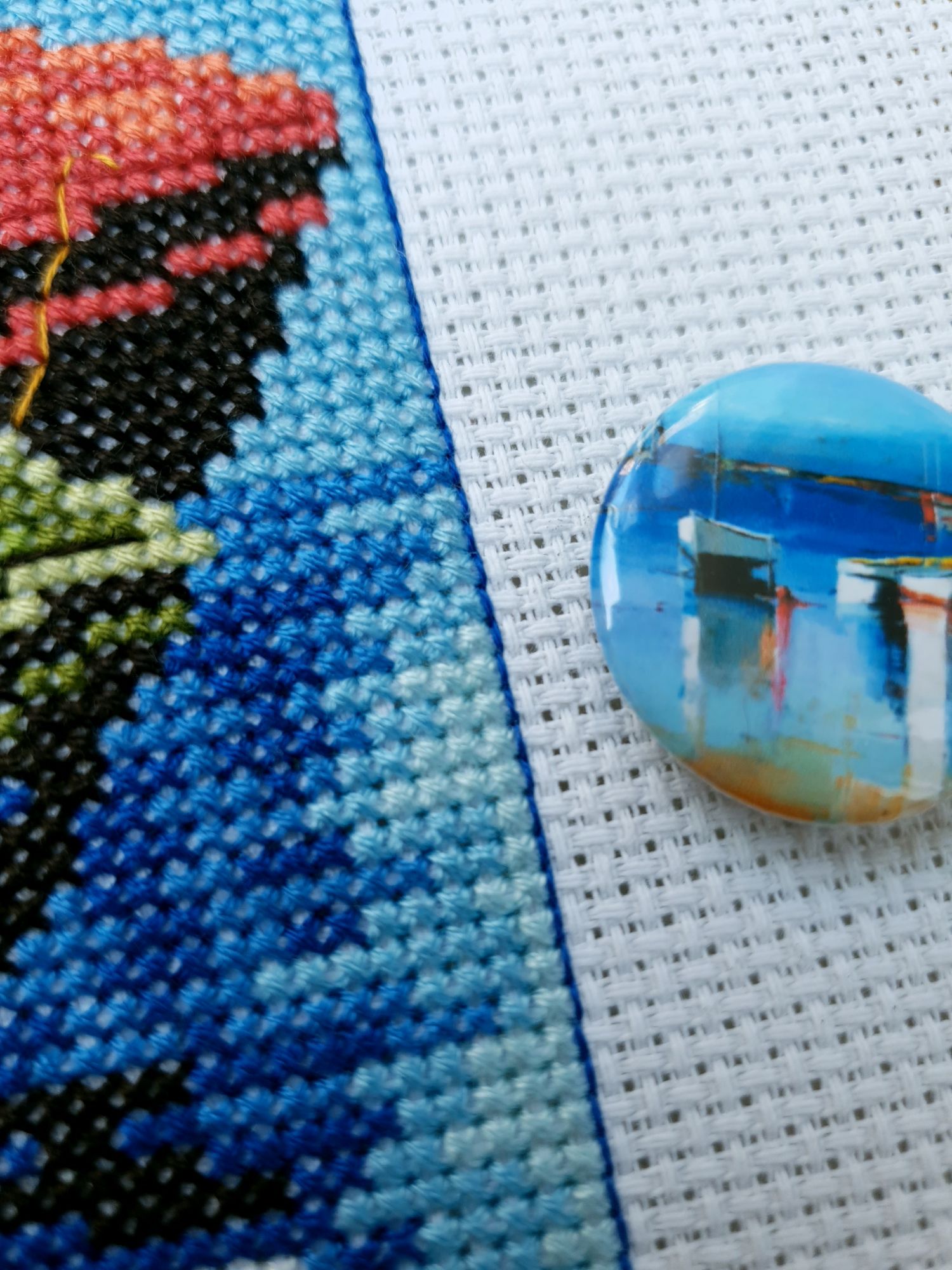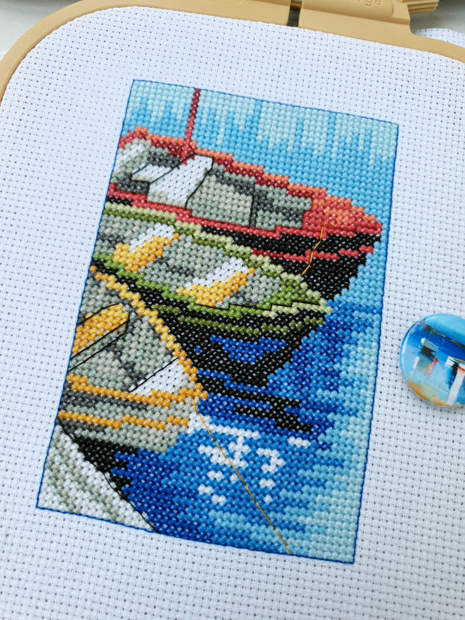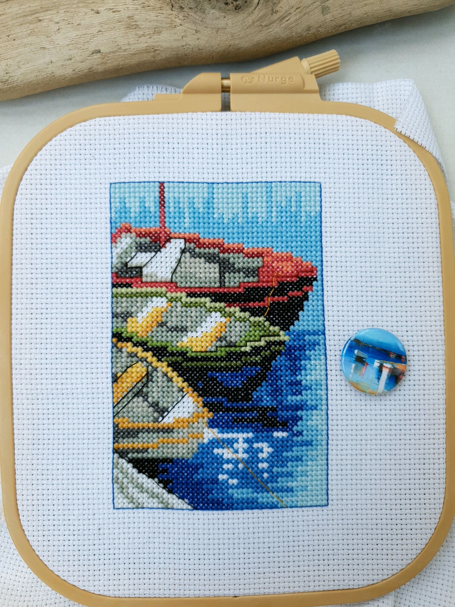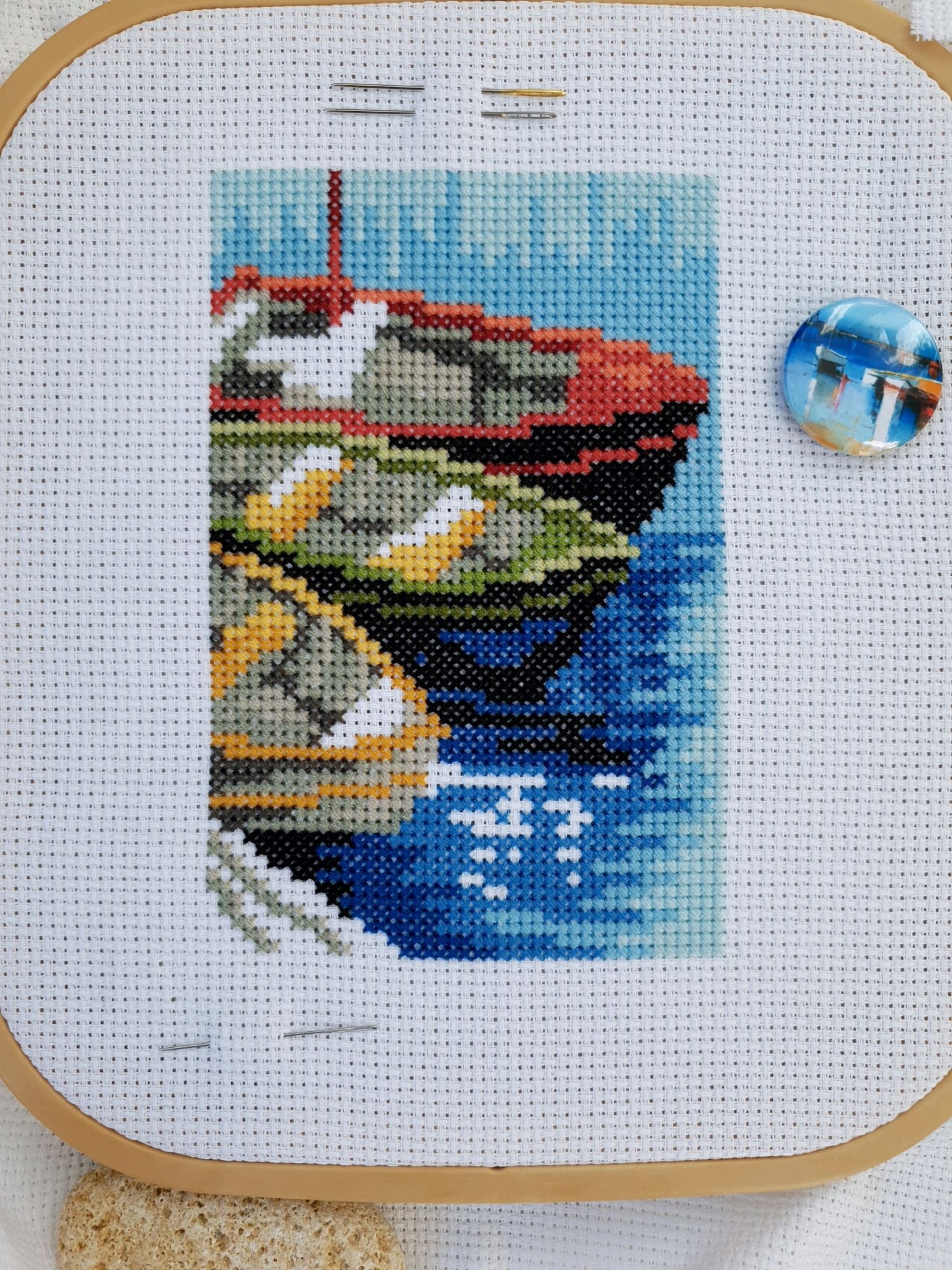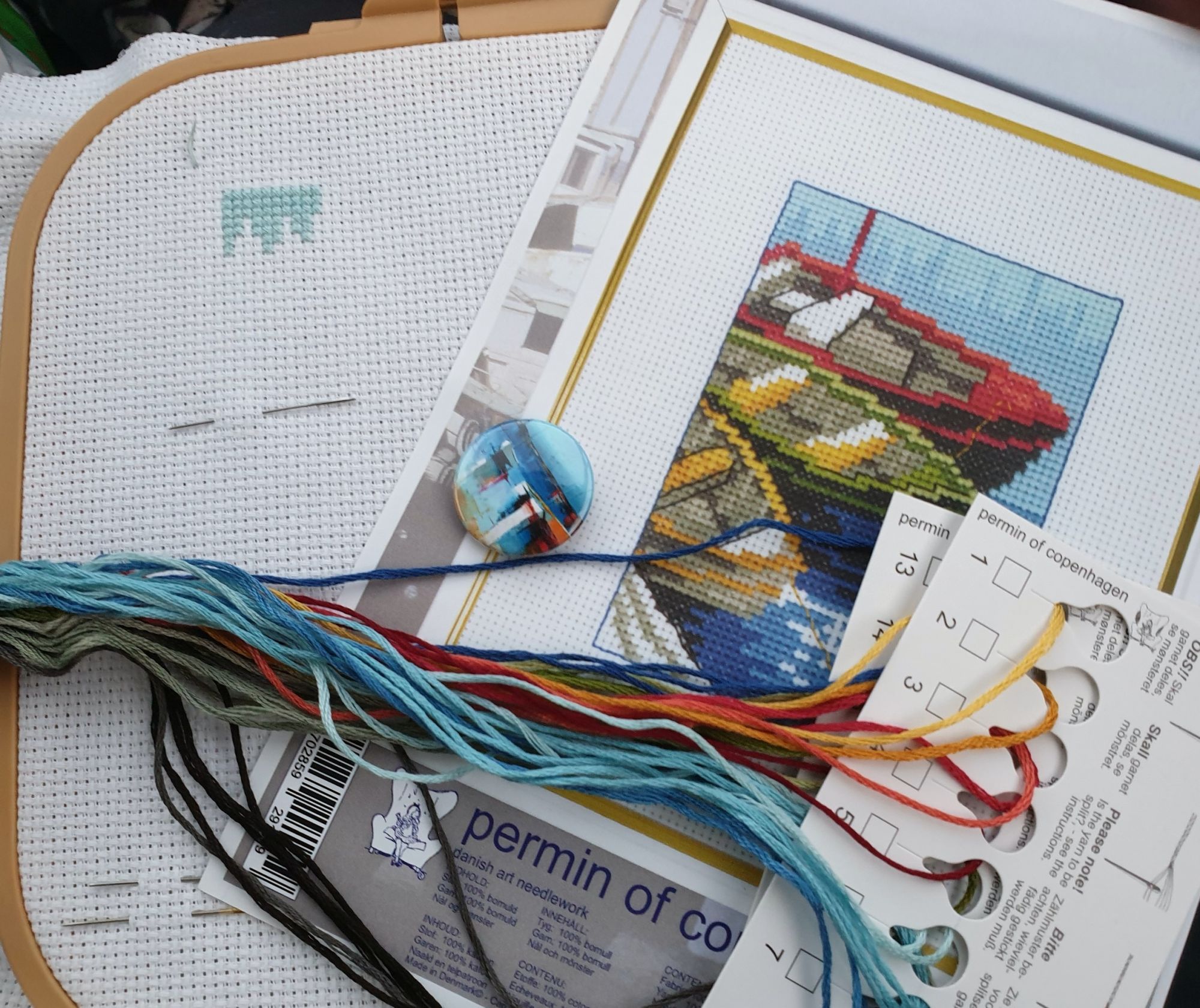 22 июля 2022 Вечер добрый! Наконец-то вышивальный отчет. Получается, что он почти за весь июль и даже немного за конец июня И куда только бежит время?! По традиции, сначала часть невышивальная. В этот раз безо всякой конкретики, просто хроника этого июля: от цветущих болотных ирисов и до ночного порта, котолапок и неожиданного цветущего подарка на подоконнике)) Нам, вышивальщицам, подвластно расширение пространства, мы можем бывать в двух разных местах одновременно. Вот так и я, отправляясь в отпуск в горы, в качестве дорожного процесса взяла миниатюру в освежающе-синей водной гамме и тематике))) Permin 92-9161, 3 boats (этот) - новый процесс и финиш! Миниатюра 14*18 см, да еще и на 14й аиде подошла для вышивания в отпуске в целом, и в машине в частности, идеально. А потому, отпуск начался с первыми крестиками, а закончился с финальными. Мне оставалось только бэк доделать. Ну и решить один мучивший меня вопрос, о котором дальше. Я вообще Пермин уважаю. У них есть свой шарм. И море они, как жители северных морей, чувствуют и передают в своих дизайнах очень точно. Мне близко это настроение. Хотя порой и чуточку не хватает немного "мягкости" переходов. Здесь все было супер, пока я не осознала, что белые участки - это незашитое пространство. В целом мне этот прием не раз попадался и выглядело все норм. Но тут маленький размер, крупная канва и кругом только крест в 2 нити... Я ничего не предпринимала до последнего крестика по схеме. Потому что знаю, как может все изменить один единственный крестик. Но вот пора приступать к бэку, а у меня есть ощущение проплешин. А моя вышивка не должна раздражать, причем именно меня)) Поэтому я вооружилась картой цветов, выбрала самые светлые оттенки в растяжках соответствующих цветов и зашила эти проплешины в 1 нить: полукрестом во "внутренностях лодок" и крестом на остальных участках. Теперь мне все нравится Осталось придумать какое-нибудь классное применение этим лодкам: хочется, чтобы они и впредь со мной путешествовали в виде какого-нибудь полезного аксессуара)) - На этих последних фото хорошо видны "проплешины", по схеме они не зашиваются вовсе. И мой результат: Дальше опять про лодки. Только уже процесс из стареньких) О.Ланкевич, Голландский порт - финиш! Я это сделала! Результат классный, процесс интересный, но завершение далось непросто. Подозреваю, что дело в цветовой гамме: летом, да еще и после такого яркого по цветам отпуска было непросто шить темными и серо-зелеными оттенками. Мешала их с вышивкой корпуса и парусов. Почему то именно сейчас невероятно хотелось закончить этот процесс. Отражения волшебные: как же круто они сделаны. А уж как я тянула снасти на лодках, выгребая среди бесконечно пересекающихся длинных линий. Но я молодец, не отложила и доделала! Горда собой и рада результату. Классный он. Вот правда)) И итоговый фотосет: Чтобы разбавить мир процесс с портом яркими красками, я распаковала еще один маленький летний наборчик. Из недавних совсем. С маяком! И с бисером! Ага, все правильно, мне очень захотелось попробовать новую серию "Бисер и пуговки" от Марьи Искусницы на вкус))) Марья Искусница, 13.003.13, Маяк (этот) - новый процесс и финиш! Миниатюра 14*14 см, 14 аида, нитки, 4 цвета бисера и 2 шармика. Тут есть два нюанса. Во-первых, нитки не разобраны по номерам, они в едином пучке, в а ключе только словесные названия цветов. Я честно призна
