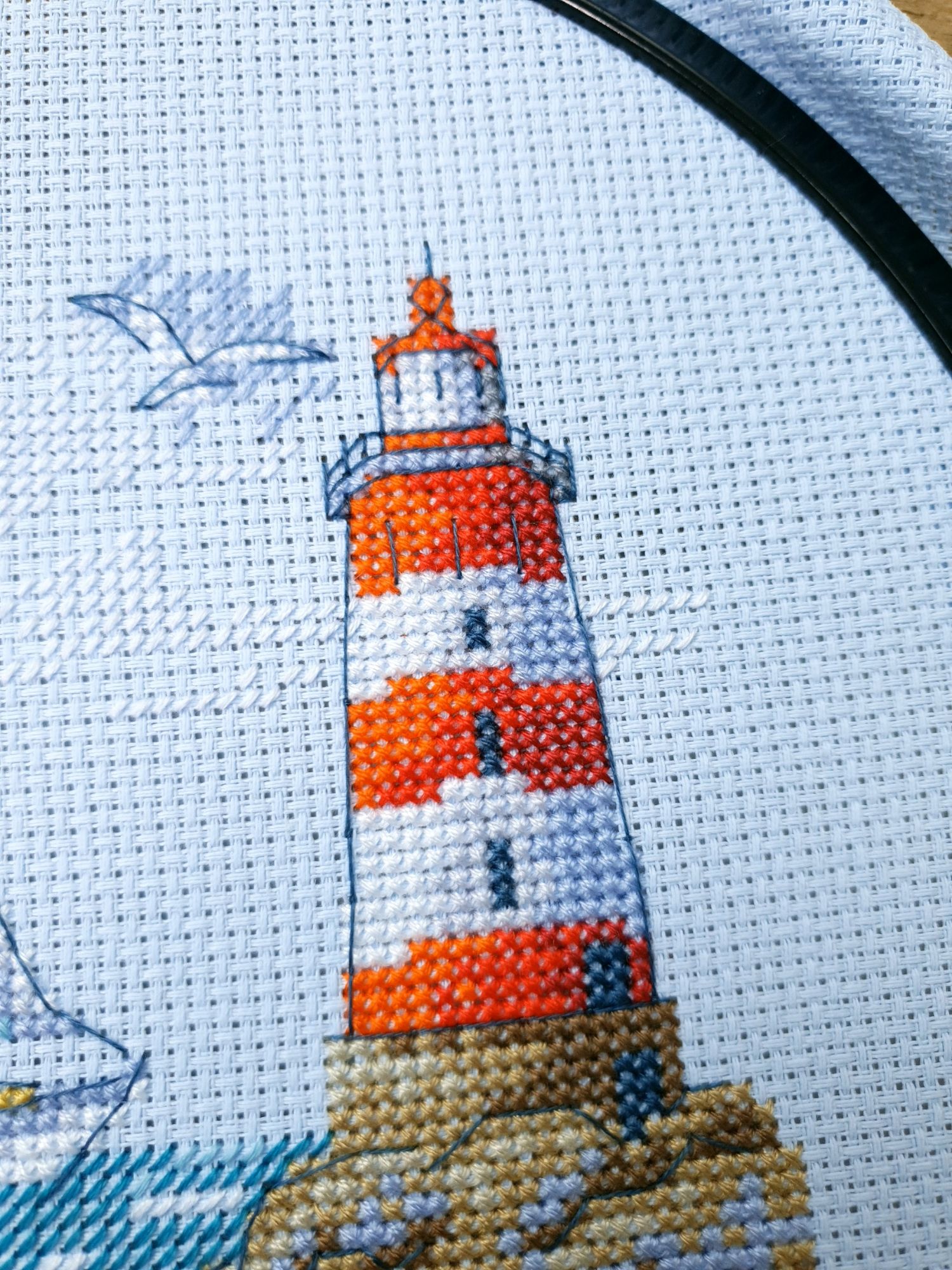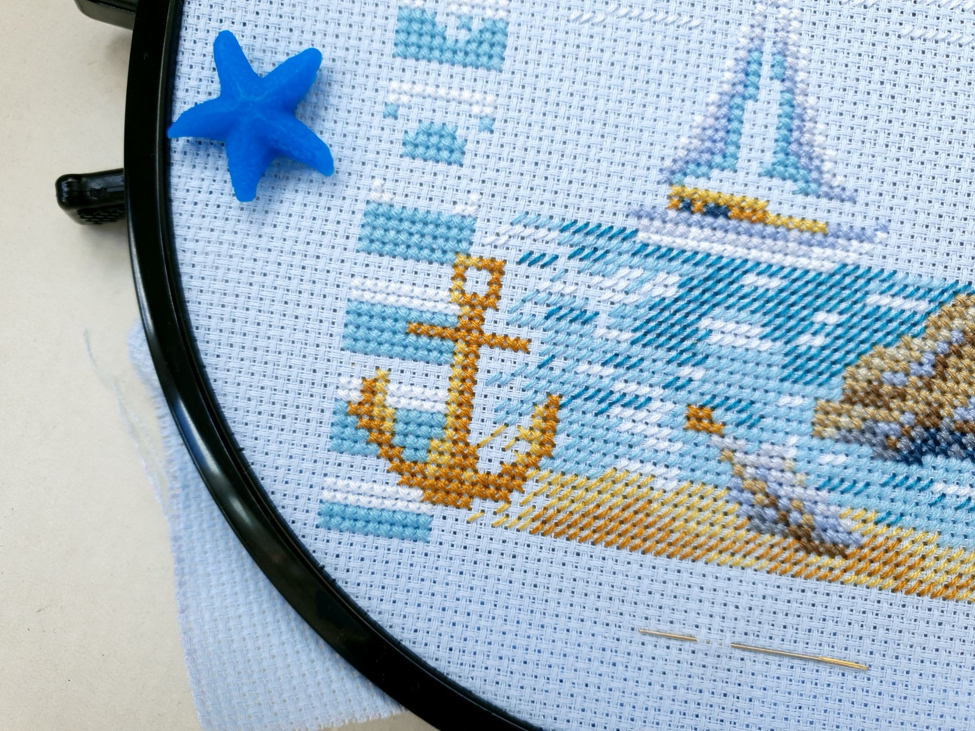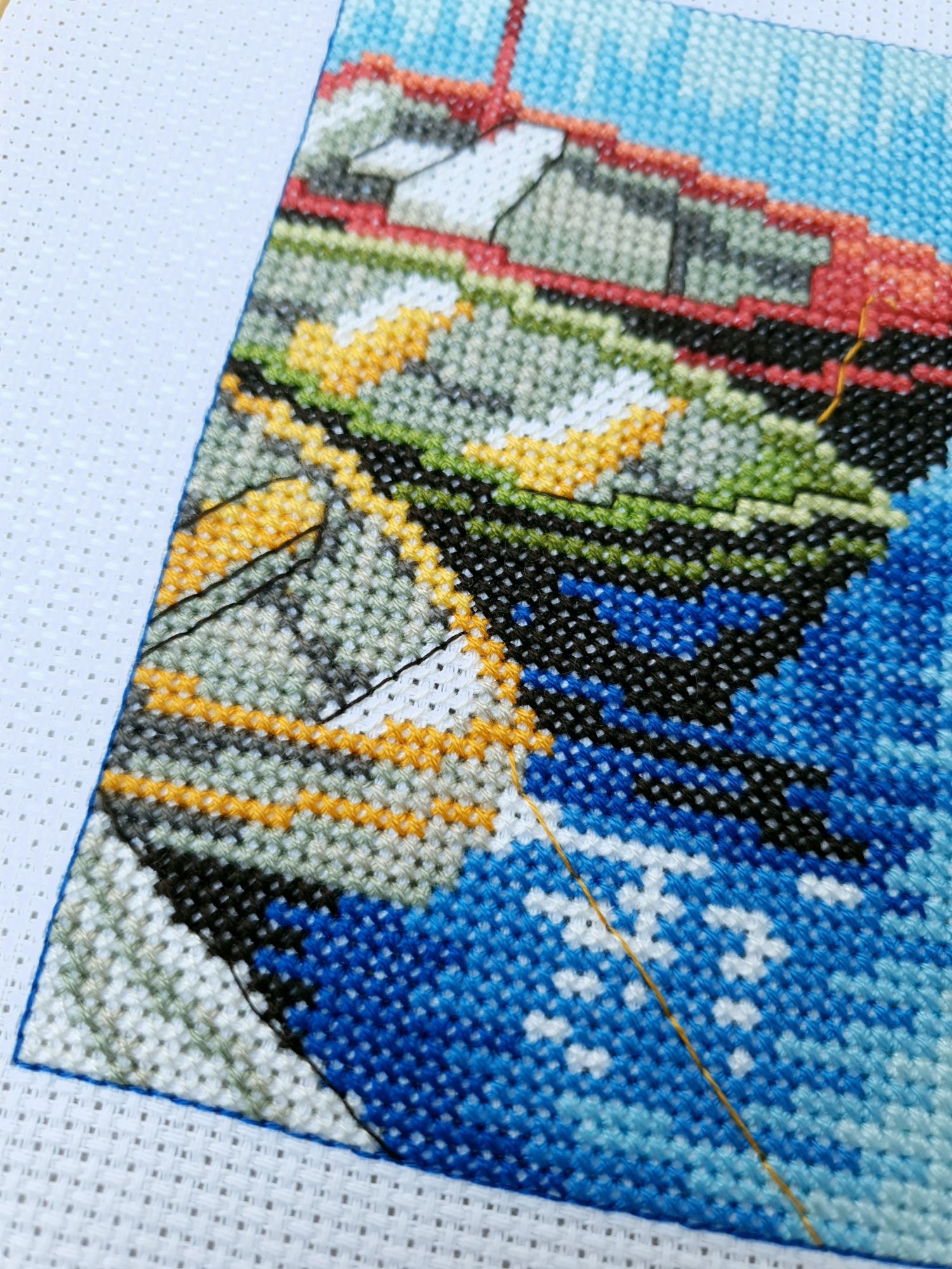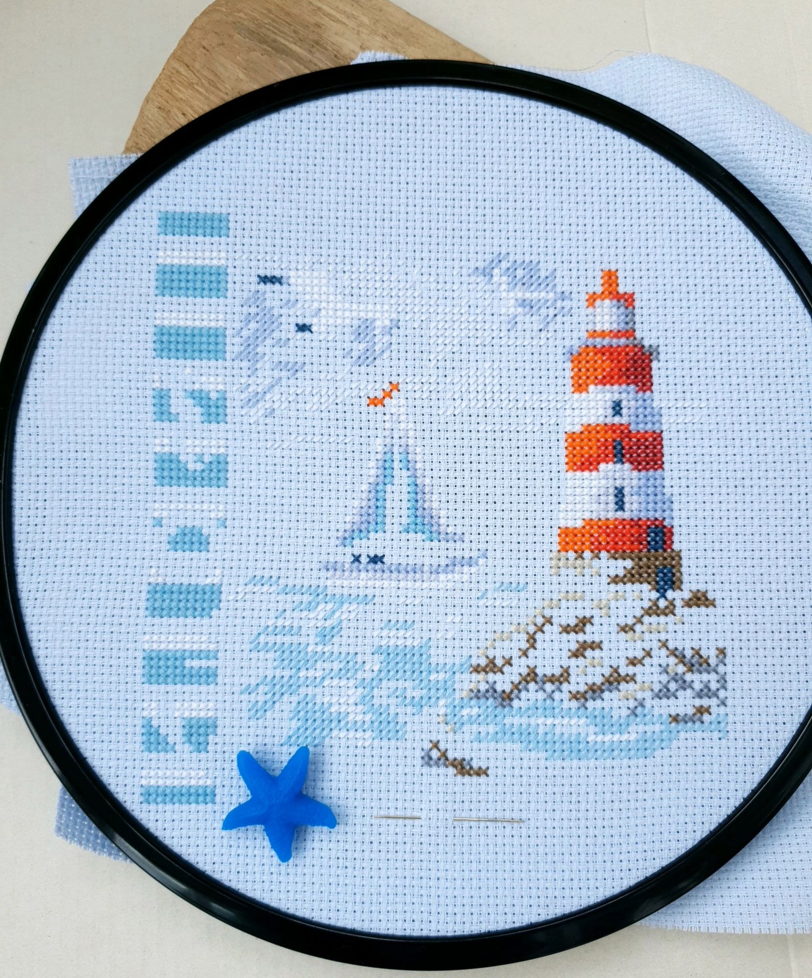 22 июля 2022 Вечер добрый! Наконец-то вышивальный отчет. Получается, что он почти за весь июль и даже немного за конец июня И куда только бежит время?! По традиции, сначала часть невышивальная. В этот раз безо всякой конкретики, просто хроника этого июля: от цветущих болотных ирисов и до ночного порта, котолапок и неожиданного цветущего подарка на подоконнике)) Нам, вышивальщицам, подвластно расширение пространства, мы можем бывать в двух разных местах одновременно. Вот так и я, отправляясь в отпуск в горы, в качестве дорожного процесса взяла миниатюру в освежающе-синей водной гамме и тематике))) Permin 92-9161, 3 boats (этот) - новый процесс и финиш! Миниатюра 14*18 см, да еще и на 14й аиде подошла для вышивания в отпуске в целом, и в машине в частности, идеально. А потому, отпуск начался с первыми крестиками, а закончился с финальными. Мне оставалось только бэк доделать. Ну и решить один мучивший меня вопрос, о котором дальше. Я вообще Пермин уважаю. У них есть свой шарм. И море они, как жители северных морей, чувствуют и передают в своих дизайнах очень точно. Мне близко это настроение. Хотя порой и чуточку не хватает немного "мягкости" переходов. Здесь все было супер, пока я не осознала, что белые участки - это незашитое пространство. В целом мне этот прием не раз попадался и выглядело все норм. Но тут маленький размер, крупная канва и кругом только крест в 2 нити... Я ничего не предпринимала до последнего крестика по схеме. Потому что знаю, как может все изменить один единственный крестик. Но вот пора приступать к бэку, а у меня есть ощущение проплешин. А моя вышивка не должна раздражать, причем именно меня)) Поэтому я вооружилась картой цветов, выбрала самые светлые оттенки в растяжках соответствующих цветов и зашила эти проплешины в 1 нить: полукрестом во "внутренностях лодок" и крестом на остальных участках. Теперь мне все нравится Осталось придумать какое-нибудь классное применение этим лодкам: хочется, чтобы они и впредь со мной путешествовали в виде какого-нибудь полезного аксессуара)) - На этих последних фото хорошо видны "проплешины", по схеме они не зашиваются вовсе. И мой результат: Дальше опять про лодки. Только уже процесс из стареньких) О.Ланкевич, Голландский порт - финиш! Я это сделала! Результат классный, процесс интересный, но завершение далось непросто. Подозреваю, что дело в цветовой гамме: летом, да еще и после такого яркого по цветам отпуска было непросто шить темными и серо-зелеными оттенками. Мешала их с вышивкой корпуса и парусов. Почему то именно сейчас невероятно хотелось закончить этот процесс. Отражения волшебные: как же круто они сделаны. А уж как я тянула снасти на лодках, выгребая среди бесконечно пересекающихся длинных линий. Но я молодец, не отложила и доделала! Горда собой и рада результату. Классный он. Вот правда)) И итоговый фотосет: Чтобы разбавить мир процесс с портом яркими красками, я распаковала еще один маленький летний наборчик. Из недавних совсем. С маяком! И с бисером! Ага, все правильно, мне очень захотелось попробовать новую серию "Бисер и пуговки" от Марьи Искусницы на вкус))) Марья Искусница, 13.003.13, Маяк (этот) - новый процесс и финиш! Миниатюра 14*14 см, 14 аида, нитки, 4 цвета бисера и 2 шармика. Тут есть два нюанса. Во-первых, нитки не разобраны по номерам, они в едином пучке, в а ключе только словесные названия цветов. Я честно призна