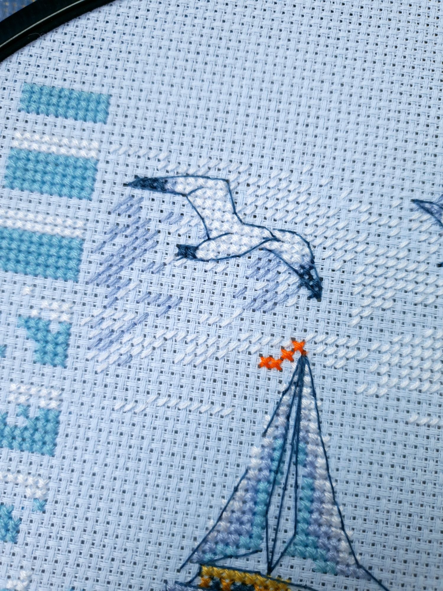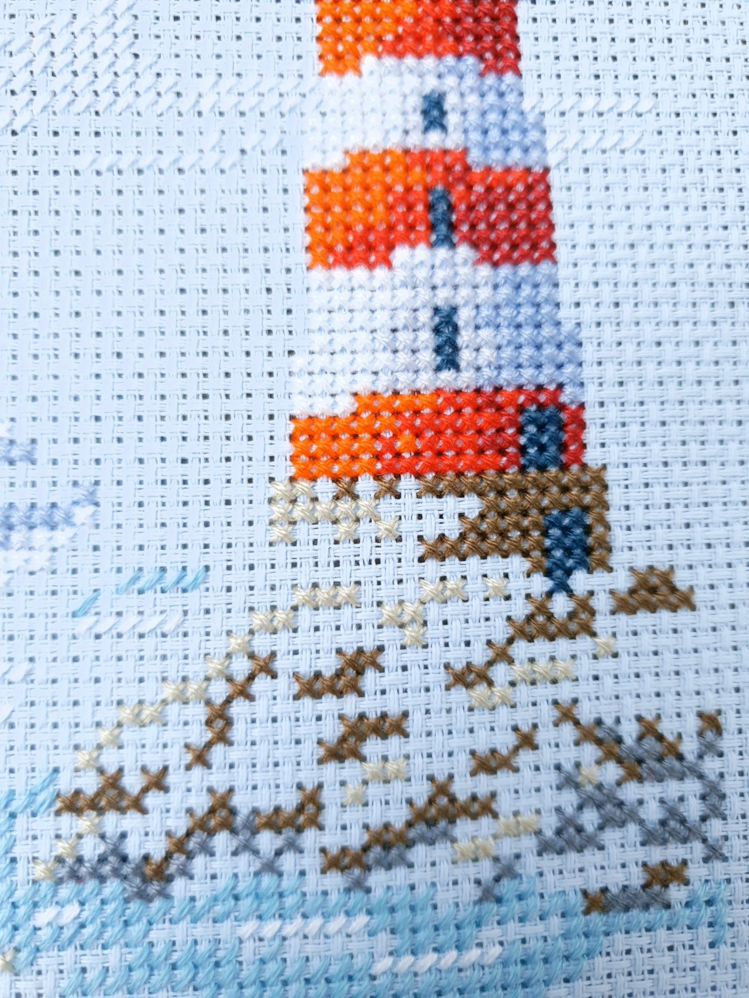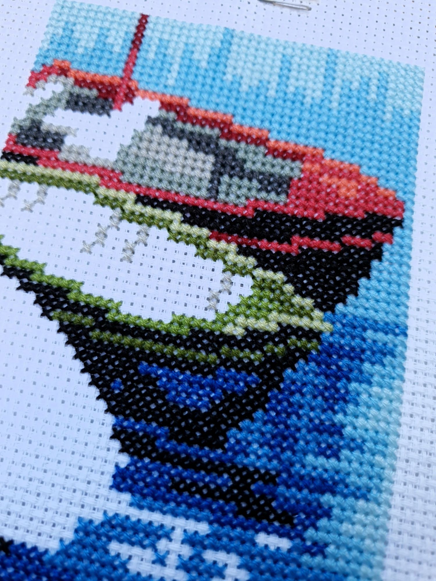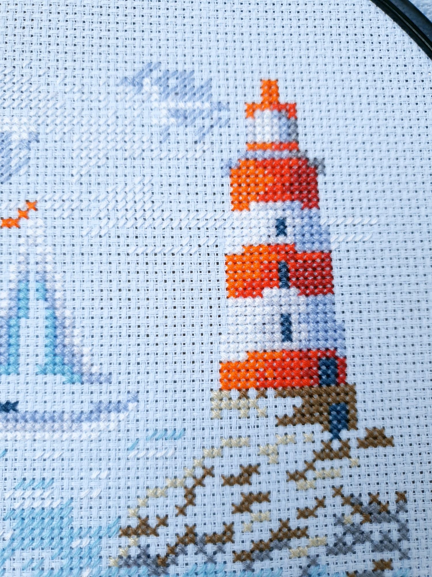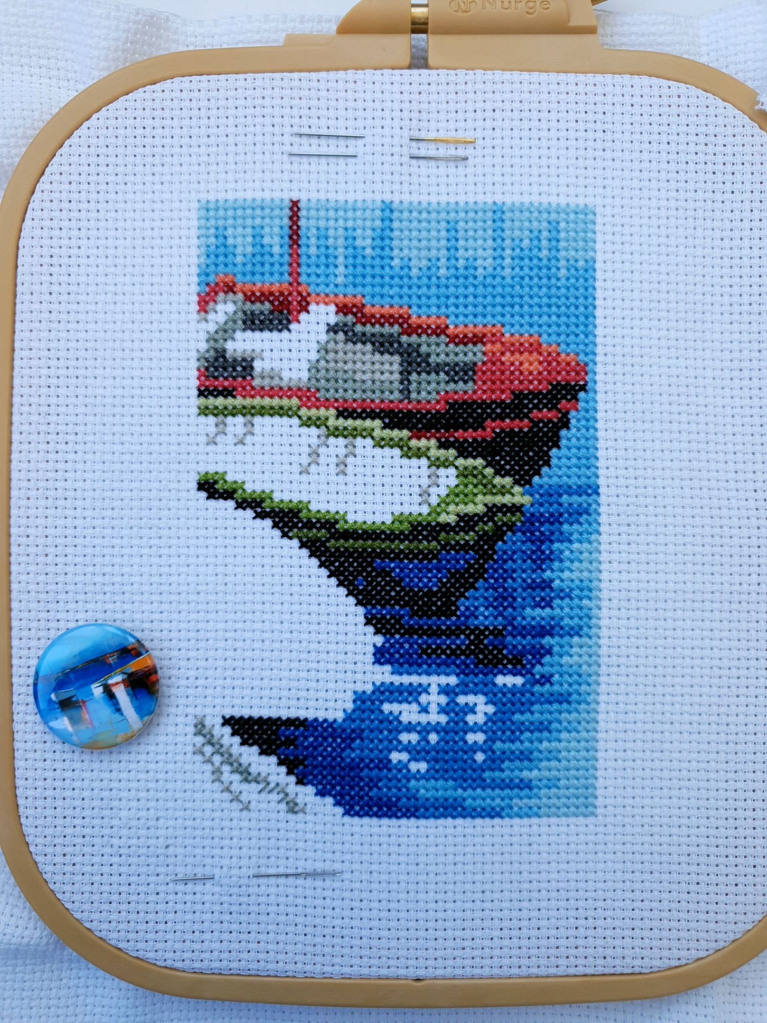 22 июля 2022 Вечер добрый! Наконец-то вышивальный отчет. Получается, что он почти за весь июль и даже немного за конец июня И куда только бежит время?! По традиции, сначала часть невышивальная. В этот раз безо всякой конкретики, просто хроника этого июля: от цветущих болотных ирисов и до ночного порта, котолапок и неожиданного цветущего подарка на подоконнике)) Нам, вышивальщицам, подвластно расширение пространства, мы можем бывать в двух разных местах одновременно. Вот так и я, отправляясь в отпуск в горы, в качестве дорожного процесса взяла миниатюру в освежающе-синей водной гамме и тематике))) Permin 92-9161, 3 boats (этот) - новый процесс и финиш! Миниатюра 14*18 см, да еще и на 14й аиде подошла для вышивания в отпуске в целом, и в машине в частности, идеально. А потому, отпуск начался с первыми крестиками, а закончился с финальными. Мне оставалось только бэк доделать. Ну и решить один мучивший меня вопрос, о котором дальше. Я вообще Пермин уважаю. У них есть свой шарм. И море они, как жители северных морей, чувствуют и передают в своих дизайнах очень точно. Мне близко это настроение. Хотя порой и чуточку не хватает немного "мягкости" переходов. Здесь все было супер, пока я не осознала, что белые участки - это незашитое пространство. В целом мне этот прием не раз попадался и выглядело все норм. Но тут маленький размер, крупная канва и кругом только крест в 2 нити... Я ничего не предпринимала до последнего крестика по схеме. Потому что знаю, как может все изменить один единственный крестик. Но вот пора приступать к бэку, а у меня есть ощущение проплешин. А моя вышивка не должна раздражать, причем именно меня)) Поэтому я вооружилась картой цветов, выбрала самые светлые оттенки в растяжках соответствующих цветов и зашила эти проплешины в 1 нить: полукрестом во "внутренностях лодок" и крестом на остальных участках. Теперь мне все нравится Осталось придумать какое-нибудь классное применение этим лодкам: хочется, чтобы они и впредь со мной путешествовали в виде какого-нибудь полезного аксессуара)) - На этих последних фото хорошо видны "проплешины", по схеме они не зашиваются вовсе. И мой результат: Дальше опять про лодки. Только уже процесс из стареньких) О.Ланкевич, Голландский порт - финиш! Я это сделала! Результат классный, процесс интересный, но завершение далось непросто. Подозреваю, что дело в цветовой гамме: летом, да еще и после такого яркого по цветам отпуска было непросто шить темными и серо-зелеными оттенками. Мешала их с вышивкой корпуса и парусов. Почему то именно сейчас невероятно хотелось закончить этот процесс. Отражения волшебные: как же круто они сделаны. А уж как я тянула снасти на лодках, выгребая среди бесконечно пересекающихся длинных линий. Но я молодец, не отложила и доделала! Горда собой и рада результату. Классный он. Вот правда)) И итоговый фотосет: Чтобы разбавить мир процесс с портом яркими красками, я распаковала еще один маленький летний наборчик. Из недавних совсем. С маяком! И с бисером! Ага, все правильно, мне очень захотелось попробовать новую серию "Бисер и пуговки" от Марьи Искусницы на вкус))) Марья Искусница, 13.003.13, Маяк (этот) - новый процесс и финиш! Миниатюра 14*14 см, 14 аида, нитки, 4 цвета бисера и 2 шармика. Тут есть два нюанса. Во-первых, нитки не разобраны по номерам, они в едином пучке, в а ключе только словесные названия цветов. Я честно призна