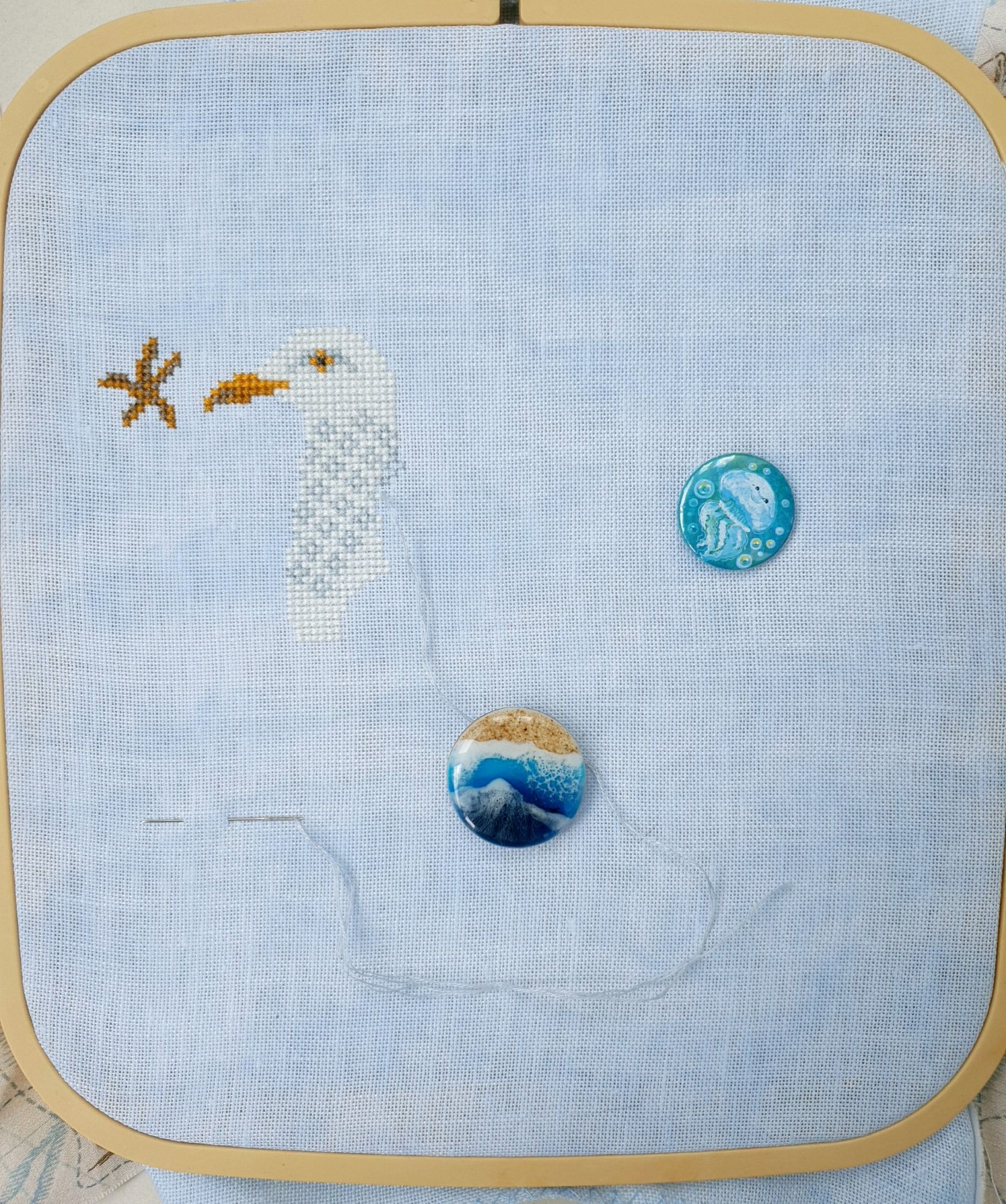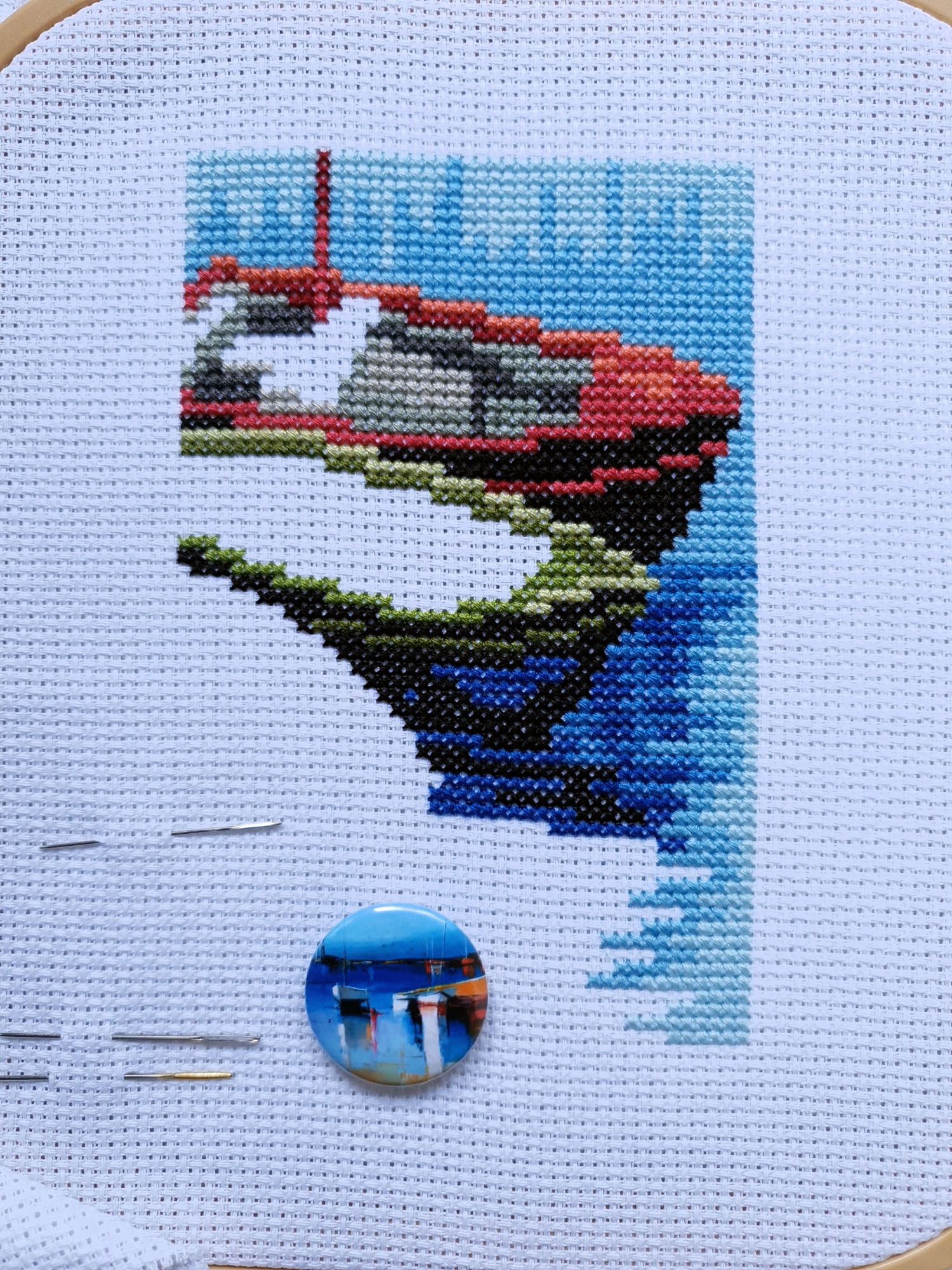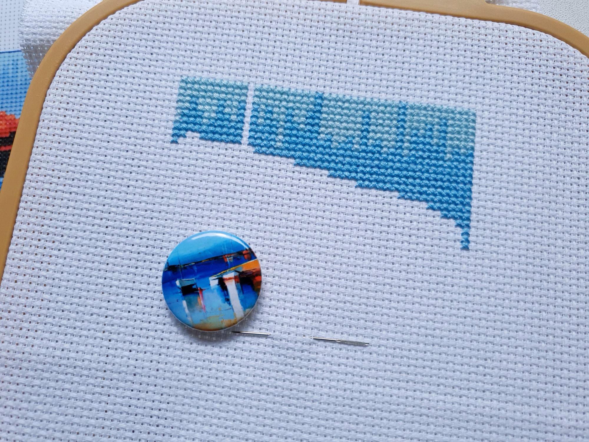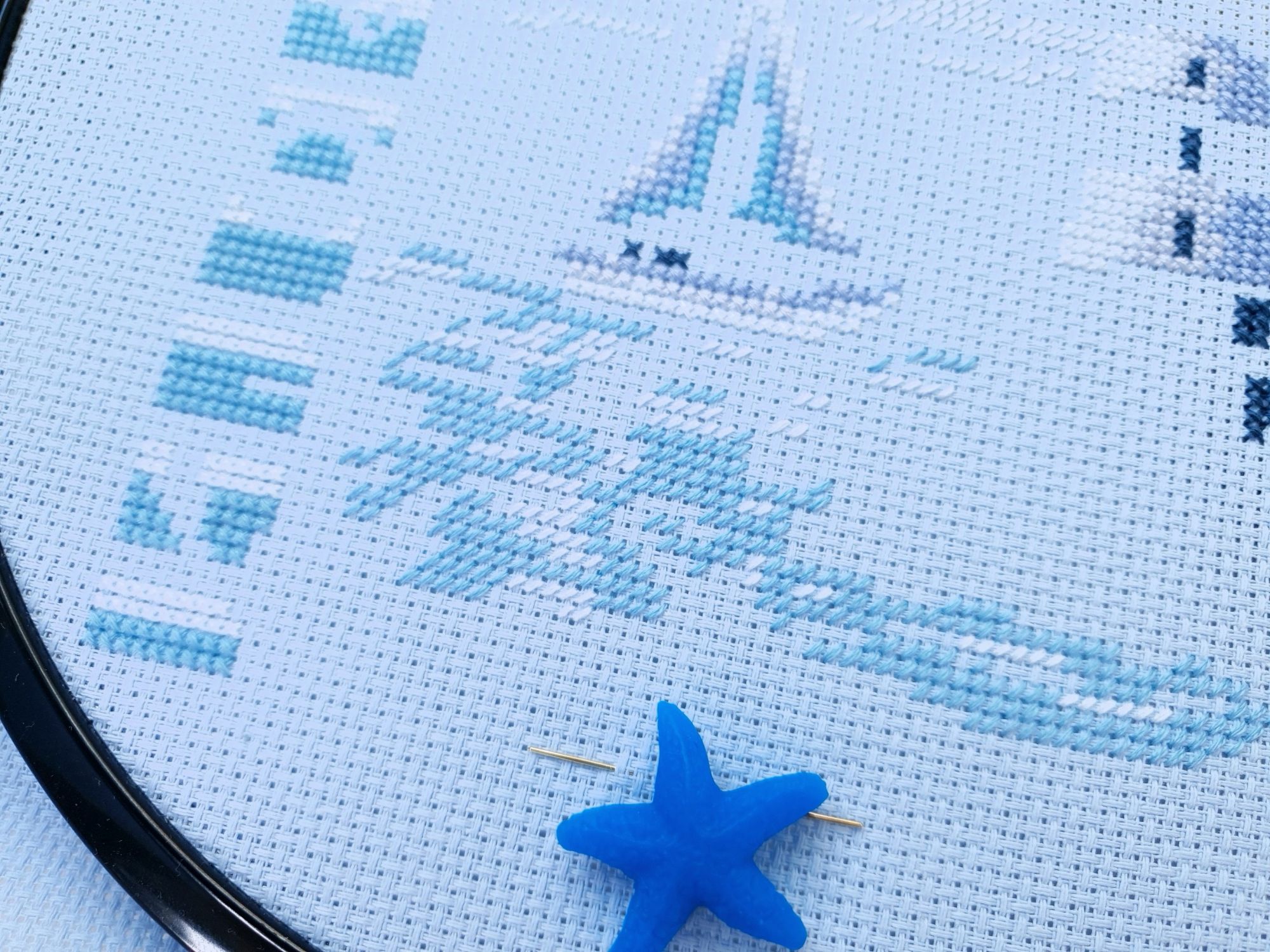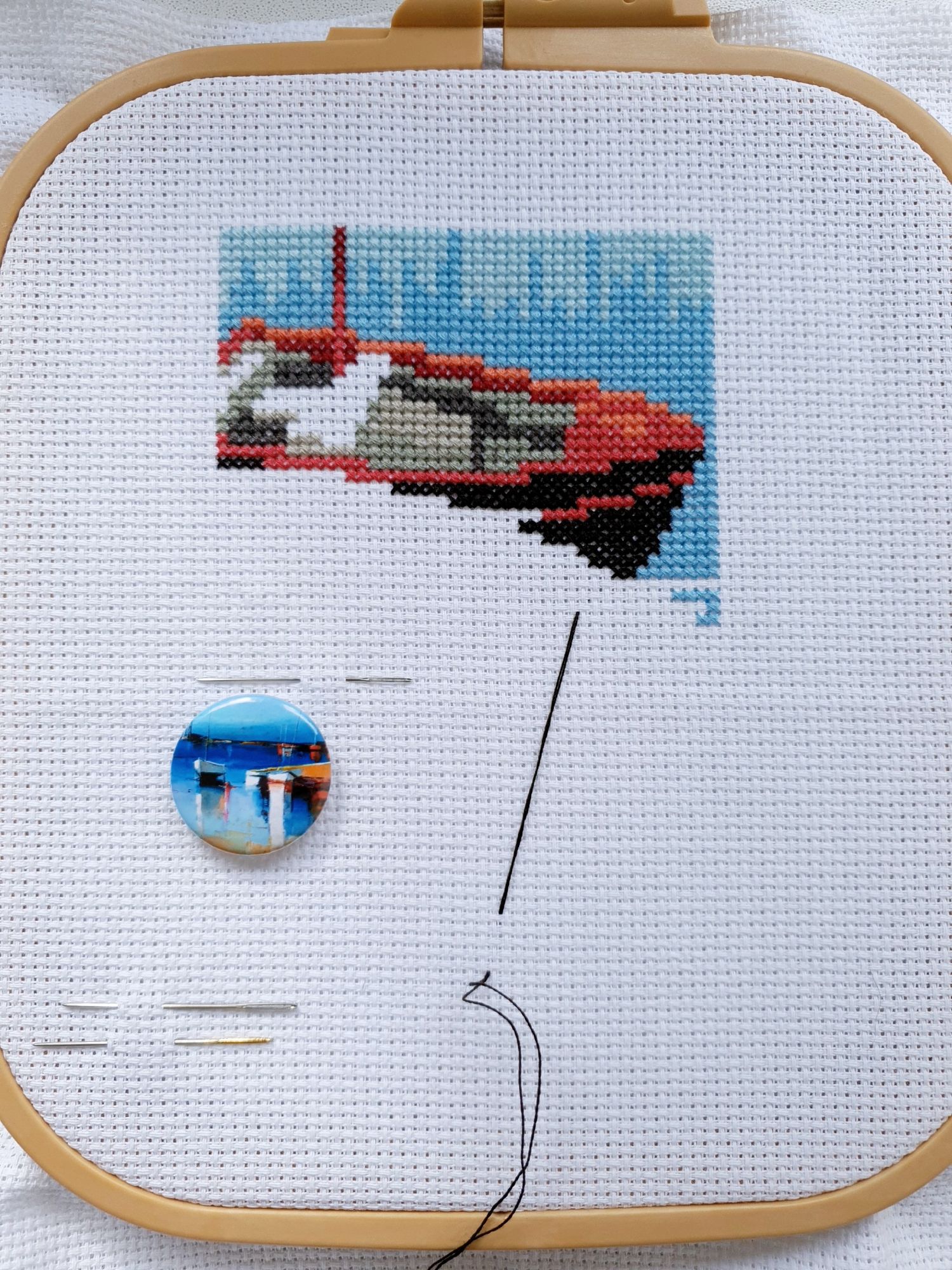 22 июля 2022 Вечер добрый! Наконец-то вышивальный отчет. Получается, что он почти за весь июль и даже немного за конец июня И куда только бежит время?! По традиции, сначала часть невышивальная. В этот раз безо всякой конкретики, просто хроника этого июля: от цветущих болотных ирисов и до ночного порта, котолапок и неожиданного цветущего подарка на подоконнике)) Нам, вышивальщицам, подвластно расширение пространства, мы можем бывать в двух разных местах одновременно. Вот так и я, отправляясь в отпуск в горы, в качестве дорожного процесса взяла миниатюру в освежающе-синей водной гамме и тематике))) Permin 92-9161, 3 boats (этот) - новый процесс и финиш! Миниатюра 14*18 см, да еще и на 14й аиде подошла для вышивания в отпуске в целом, и в машине в частности, идеально. А потому, отпуск начался с первыми крестиками, а закончился с финальными. Мне оставалось только бэк доделать. Ну и решить один мучивший меня вопрос, о котором дальше. Я вообще Пермин уважаю. У них есть свой шарм. И море они, как жители северных морей, чувствуют и передают в своих дизайнах очень точно. Мне близко это настроение. Хотя порой и чуточку не хватает немного "мягкости" переходов. Здесь все было супер, пока я не осознала, что белые участки - это незашитое пространство. В целом мне этот прием не раз попадался и выглядело все норм. Но тут маленький размер, крупная канва и кругом только крест в 2 нити... Я ничего не предпринимала до последнего крестика по схеме. Потому что знаю, как может все изменить один единственный крестик. Но вот пора приступать к бэку, а у меня есть ощущение проплешин. А моя вышивка не должна раздражать, причем именно меня)) Поэтому я вооружилась картой цветов, выбрала самые светлые оттенки в растяжках соответствующих цветов и зашила эти проплешины в 1 нить: полукрестом во "внутренностях лодок" и крестом на остальных участках. Теперь мне все нравится Осталось придумать какое-нибудь классное применение этим лодкам: хочется, чтобы они и впредь со мной путешествовали в виде какого-нибудь полезного аксессуара)) - На этих последних фото хорошо видны "проплешины", по схеме они не зашиваются вовсе. И мой результат: Дальше опять про лодки. Только уже процесс из стареньких) О.Ланкевич, Голландский порт - финиш! Я это сделала! Результат классный, процесс интересный, но завершение далось непросто. Подозреваю, что дело в цветовой гамме: летом, да еще и после такого яркого по цветам отпуска было непросто шить темными и серо-зелеными оттенками. Мешала их с вышивкой корпуса и парусов. Почему то именно сейчас невероятно хотелось закончить этот процесс. Отражения волшебные: как же круто они сделаны. А уж как я тянула снасти на лодках, выгребая среди бесконечно пересекающихся длинных линий. Но я молодец, не отложила и доделала! Горда собой и рада результату. Классный он. Вот правда)) И итоговый фотосет: Чтобы разбавить мир процесс с портом яркими красками, я распаковала еще один маленький летний наборчик. Из недавних совсем. С маяком! И с бисером! Ага, все правильно, мне очень захотелось попробовать новую серию "Бисер и пуговки" от Марьи Искусницы на вкус))) Марья Искусница, 13.003.13, Маяк (этот) - новый процесс и финиш! Миниатюра 14*14 см, 14 аида, нитки, 4 цвета бисера и 2 шармика. Тут есть два нюанса. Во-первых, нитки не разобраны по номерам, они в едином пучке, в а ключе только словесные названия цветов. Я честно призна