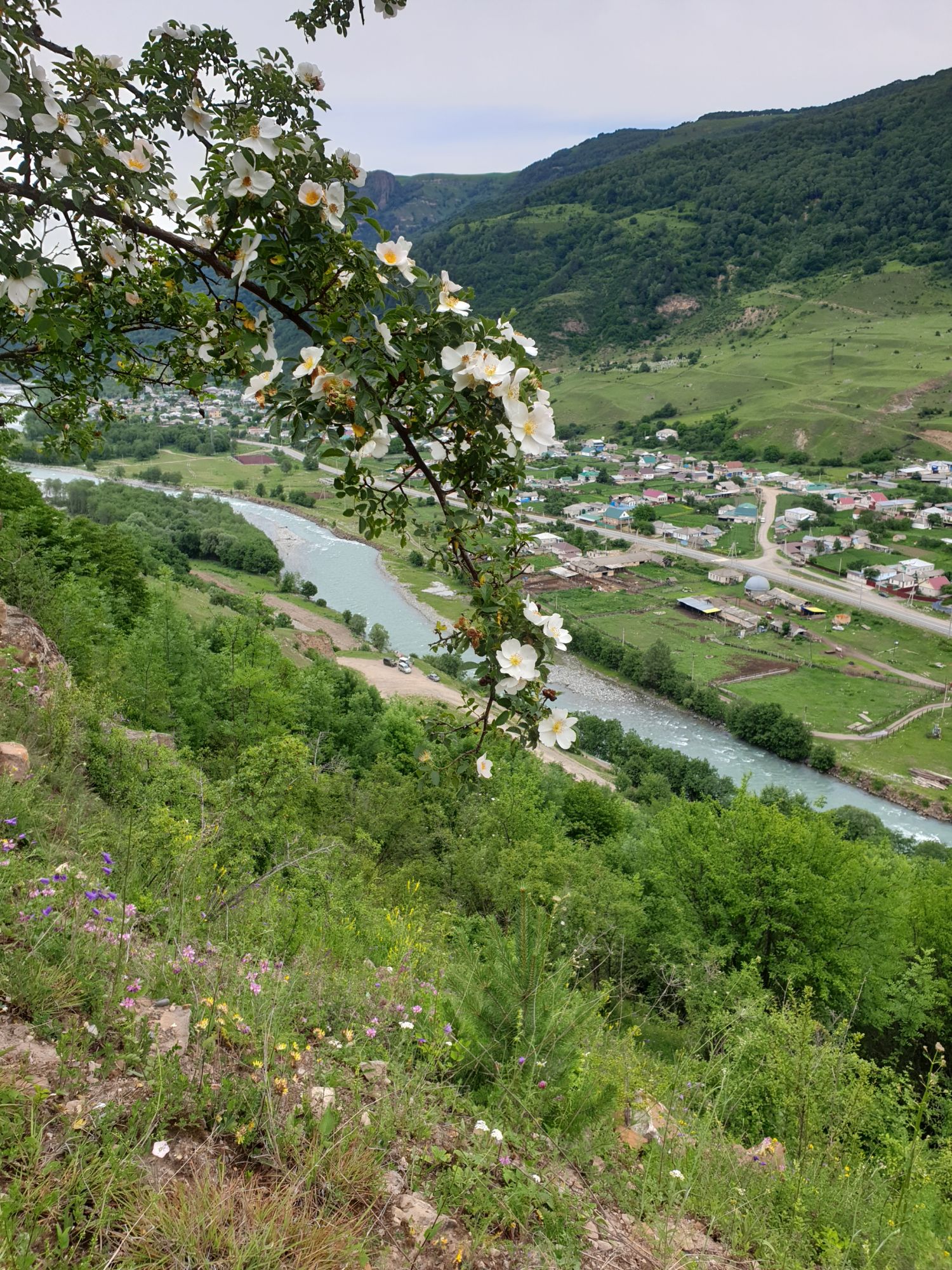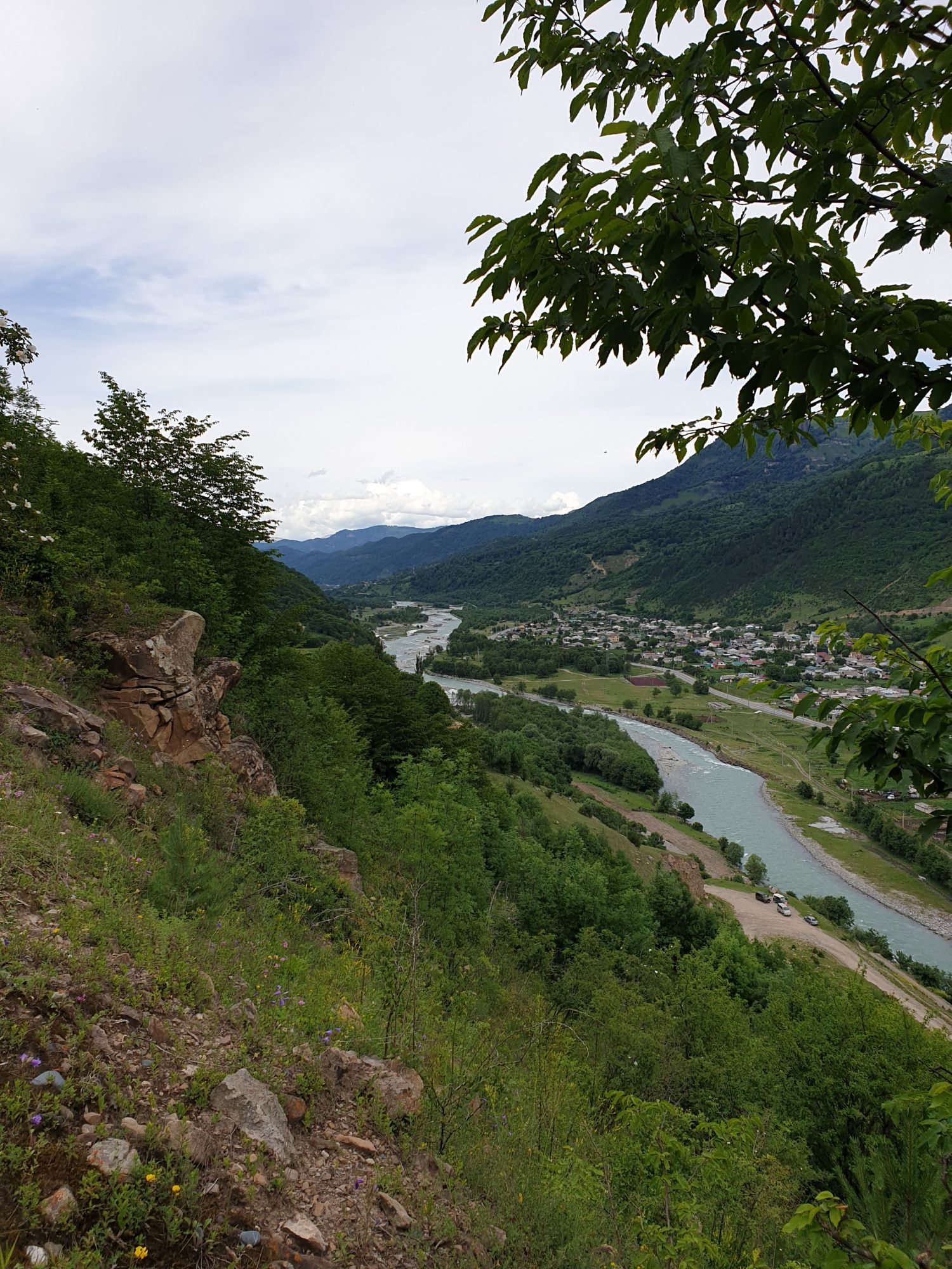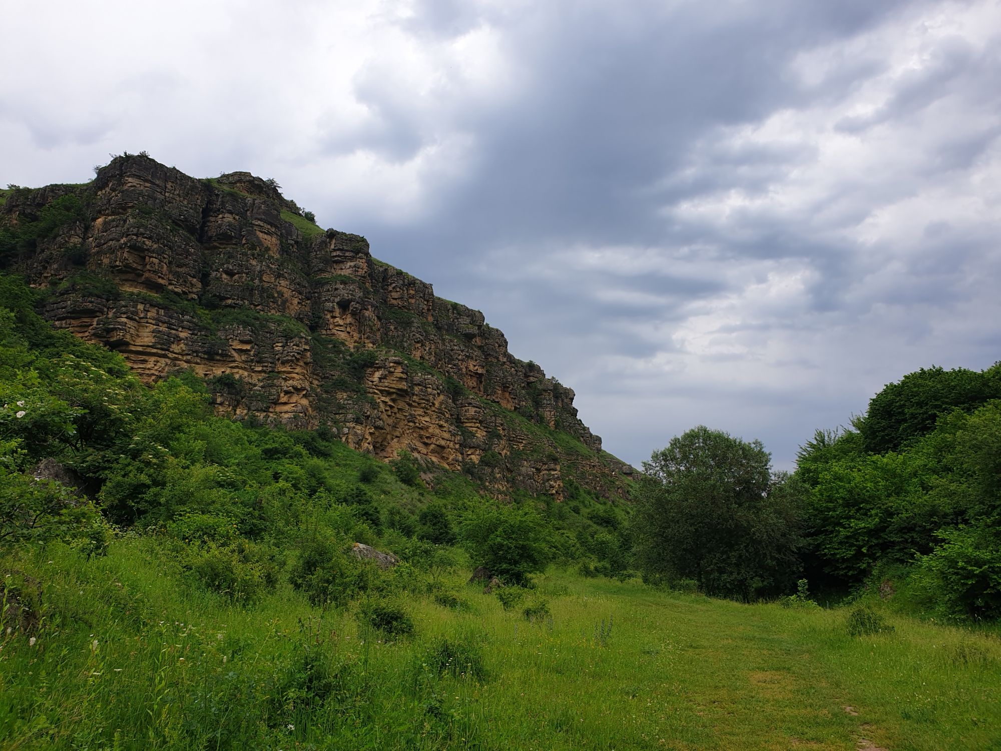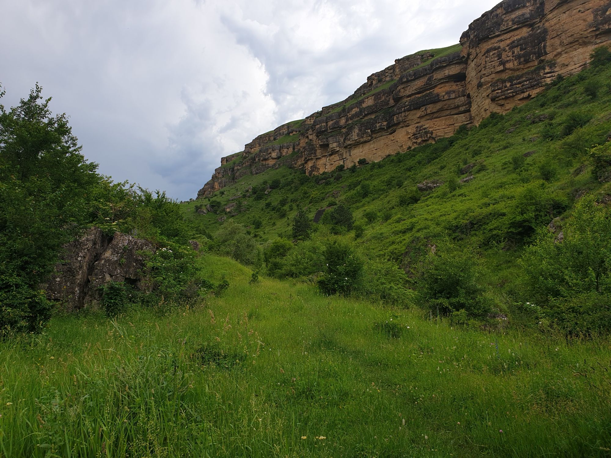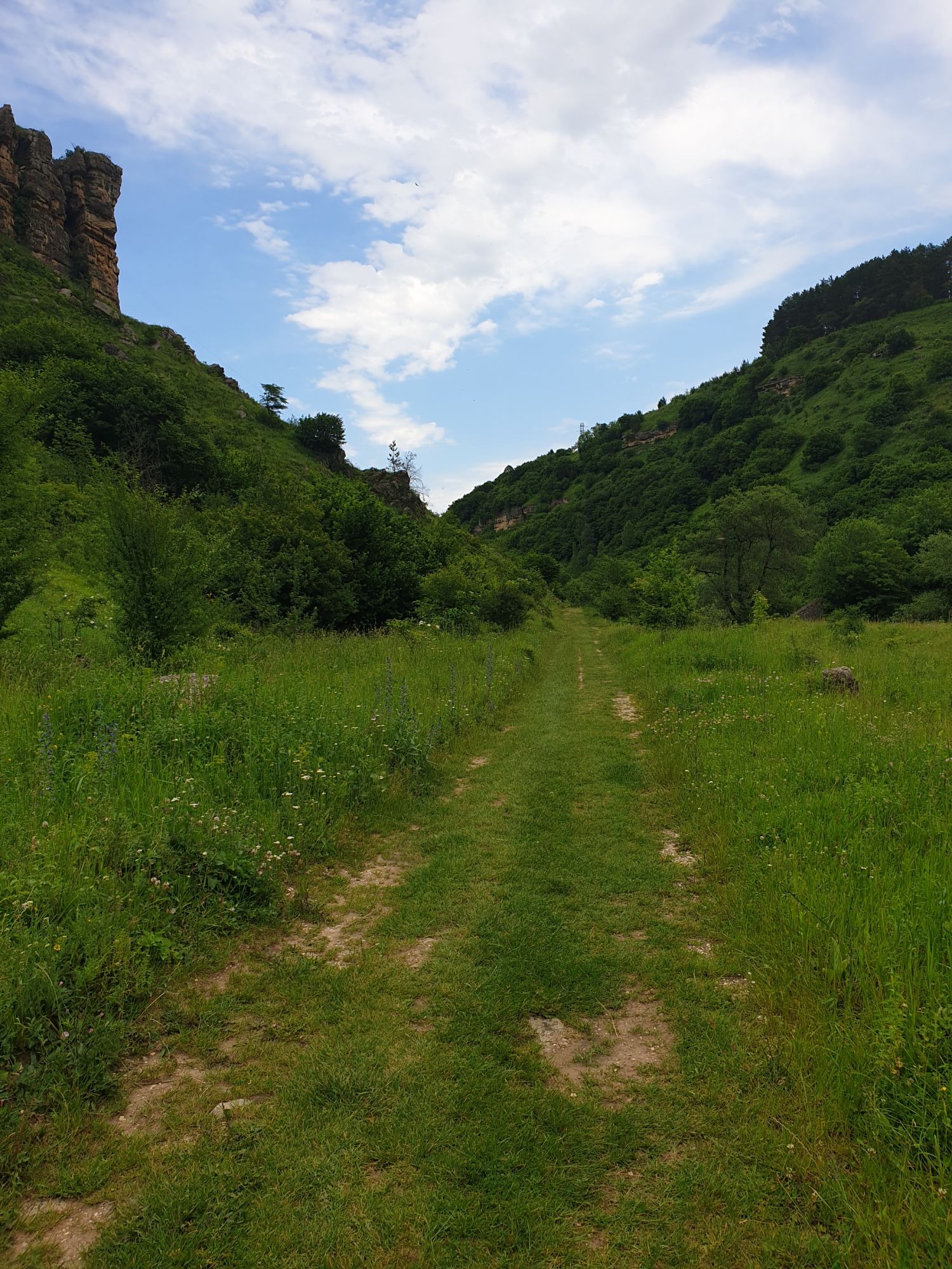 18 июля 2022 Вылазка первая. Березовское ущелье. Место очень красивое. И совсем-совсем близко, машина останется сегодня отдыхать. Одно но: обещали очень жаркий день, а спрятаться от солнца там почти негде. Но мы после Домбая злые и очень упертые. Решаем идти, а там как карта ляжет. До входа в ущелье стараемся выбирать тенистые дорожки и улочки. И вот оно, ущелье. Оно особенно тем, что довольно узкое и скалы здесь практически сразу начинают подниматься отвесно вверх на приличную высоту. Здесь шумит речка Березовка, здесь зелень и цветущий шиповник, здесь какое-то сумасшедшее число "скальных лиц": ветер и вода здесь особенно успешно потрудились. А еще петляющая тропинка, которая постоянно выводит к броду, коих здесь десятки - ущелье действительно узкое и отвесное. И живут орлы... И все это практически сразу, как заходишь в ущелье. Миновав небольшую жилую часть в самом начале ущелья, мы немножко побродили по ледяной воде, чтобы остудиться и настроиться, а потом пошли вперед... Но что удивляло и немного настораживало: вдалеке впереди небо не было таким уж солнечным, а предвещало совсем иные природные катаклизмы. Сначала мы с удовольствием избавились от рубашек, защищавших от солнца, потому что оно скрылось за тучками, потом перестали изнывать от жары и бодренько и с удовольствием пошли вперед, любуясь пейзажами и не забывая регулярно разуваться, чтобы в очередной раз перейти реку)) И только настойчивый гром немного нарушал идиллию В какой-то момент дождь начался. Точнее он из приятной прохладной водяной пыли стал дождиком, от которого мы предпочли укрыться под деревьями и спрятать технику и документы понадежнее)) Заодно тут же перекусили и отдохнули. А на противоположном берегу тем временем мирно паслись коровы: в КЧР это вообще норма, они по всем ущельям свободно гуляют. А мы, судя по карте и плохо работающему здесь GPS, как раз подходили к теоретической границе между Ставропольем и Карачаево-Черкессией))) Тут перед нами встала дилемма. С одной стороны дождь и прогноз неутешительный: затягивало и грохотало все сильнее. А с другой стороны я очень хотела прогуляться по ущелью подальше. И это было принципиально: мы в первую поездку здесь уже гуляли, но тогда прошли совсем немного, т.к. был уже вечер. Сейчас мы уже были прилично дальше, но... но мы же, напоминаю, были прилично злые после Домбая и решительно хотели все исправить... Я металась между здравым смыслом и желанием идти дальше. Не буду описывать все перепетии, но видно такое было у меня выражение лица, что муж принимает решение идти дальше. Что мы теряем в сущности?! Промокнем? Ну и ладно, все равно тепло, - была его аргументация. И я ему очень за то решение благодарна, я бы на здравый смысл повелась)))) В общем, мы отправились дальше, переждав сильный заряд дождя. Дальше фотографии будут чуток замыленные, потому что мелкий дождик не переставал почти все время. Но он практически не доставлял неудобств, лишь избавлял от жары и заставлял периодически прятать камеру. Мы дошли чуть дальше смотровой площадки, что нависает над ущельем у села Элькуш. Помимо прочего нам попалась черепушка, живописно надетая на огромный камень, несколько ржавеющих остовов машин в том месте, где над ущельем село - печальное напоминание о том, почему не нужно подъезжать к краю обрывов, особенно в горах и в плохую погоду, заросли так