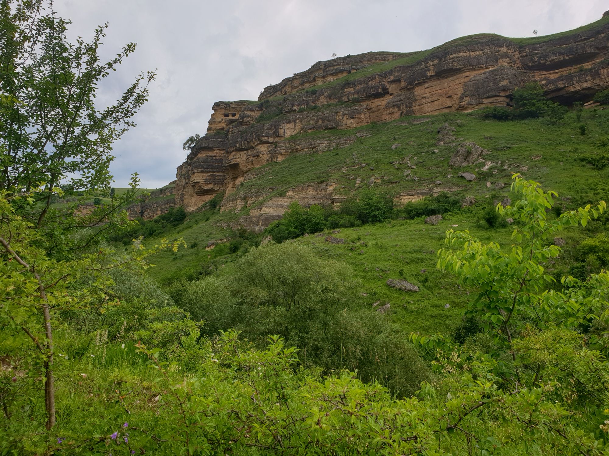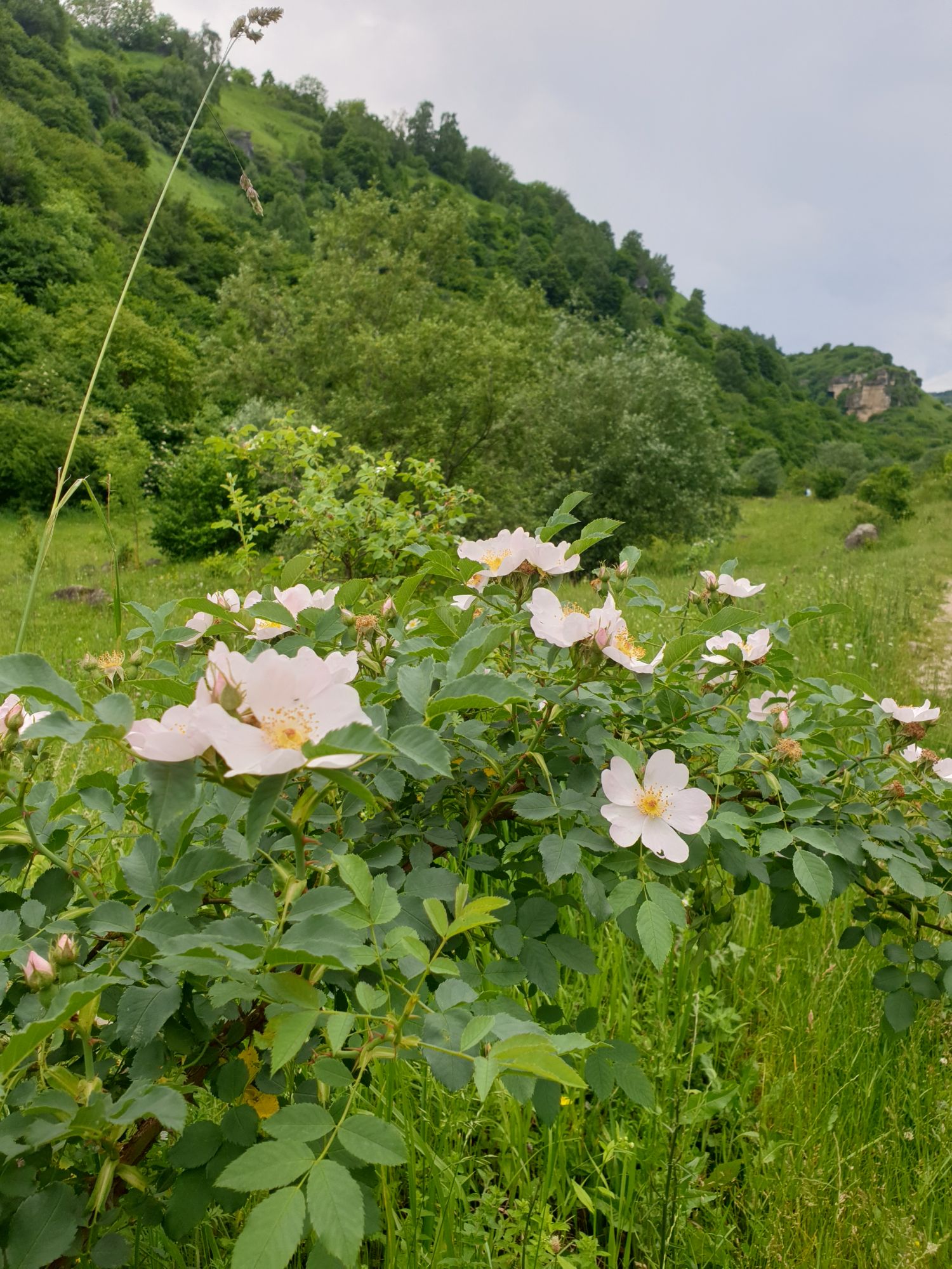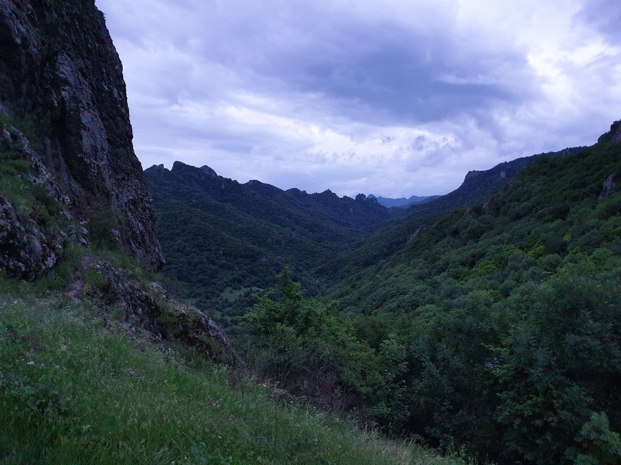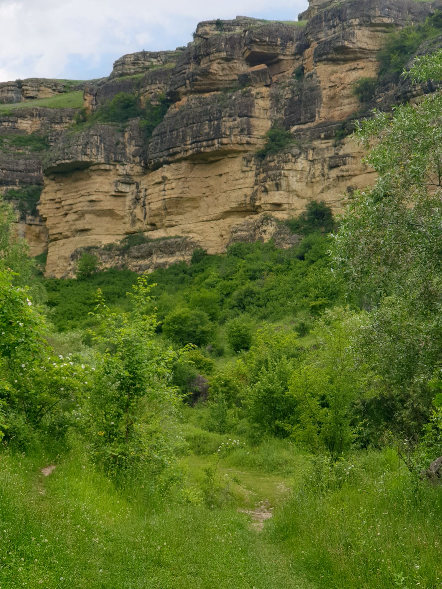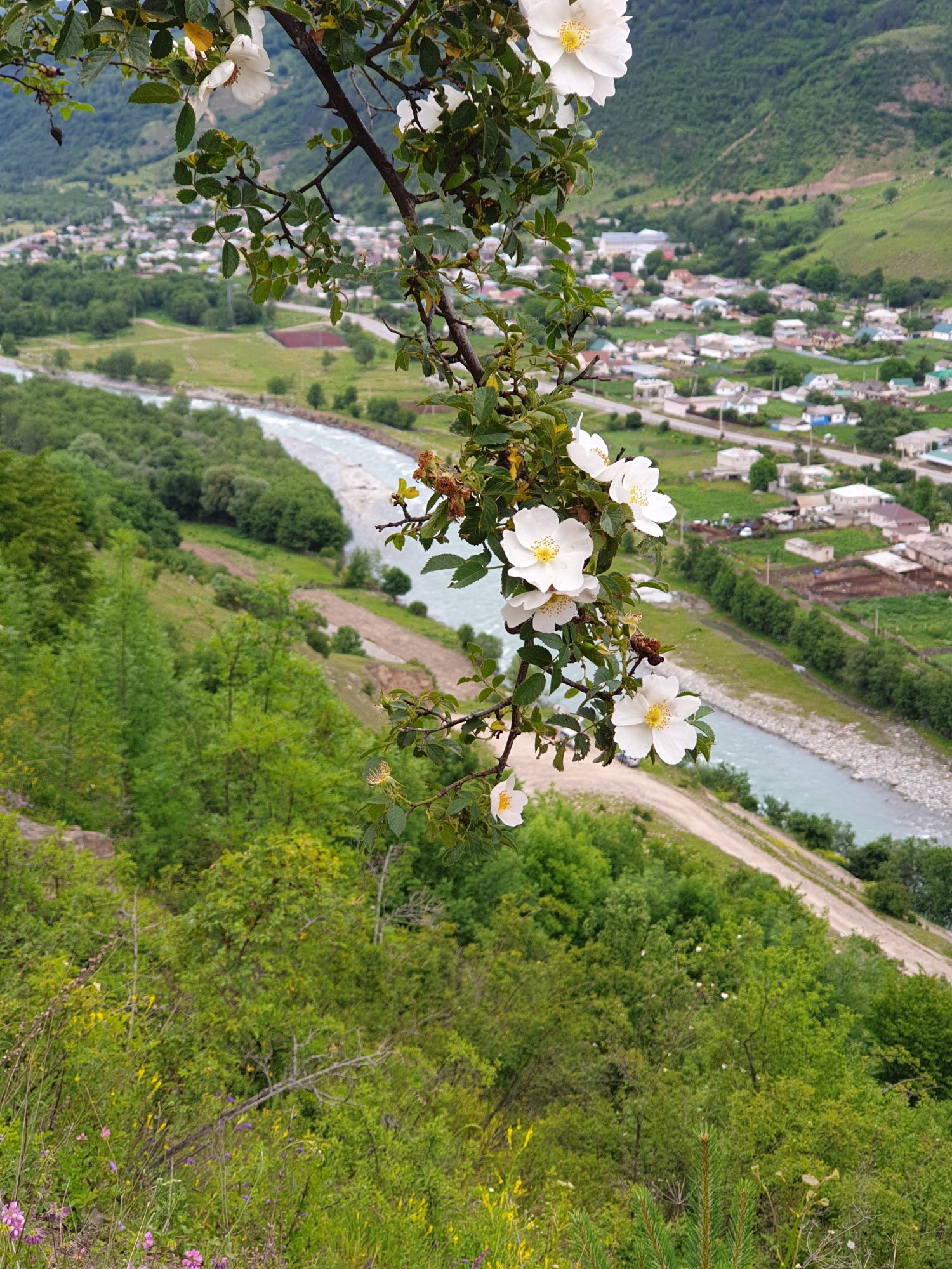 18 июля 2022 Вылазка первая. Березовское ущелье. Место очень красивое. И совсем-совсем близко, машина останется сегодня отдыхать. Одно но: обещали очень жаркий день, а спрятаться от солнца там почти негде. Но мы после Домбая злые и очень упертые. Решаем идти, а там как карта ляжет. До входа в ущелье стараемся выбирать тенистые дорожки и улочки. И вот оно, ущелье. Оно особенно тем, что довольно узкое и скалы здесь практически сразу начинают подниматься отвесно вверх на приличную высоту. Здесь шумит речка Березовка, здесь зелень и цветущий шиповник, здесь какое-то сумасшедшее число "скальных лиц": ветер и вода здесь особенно успешно потрудились. А еще петляющая тропинка, которая постоянно выводит к броду, коих здесь десятки - ущелье действительно узкое и отвесное. И живут орлы... И все это практически сразу, как заходишь в ущелье. Миновав небольшую жилую часть в самом начале ущелья, мы немножко побродили по ледяной воде, чтобы остудиться и настроиться, а потом пошли вперед... Но что удивляло и немного настораживало: вдалеке впереди небо не было таким уж солнечным, а предвещало совсем иные природные катаклизмы. Сначала мы с удовольствием избавились от рубашек, защищавших от солнца, потому что оно скрылось за тучками, потом перестали изнывать от жары и бодренько и с удовольствием пошли вперед, любуясь пейзажами и не забывая регулярно разуваться, чтобы в очередной раз перейти реку)) И только настойчивый гром немного нарушал идиллию В какой-то момент дождь начался. Точнее он из приятной прохладной водяной пыли стал дождиком, от которого мы предпочли укрыться под деревьями и спрятать технику и документы понадежнее)) Заодно тут же перекусили и отдохнули. А на противоположном берегу тем временем мирно паслись коровы: в КЧР это вообще норма, они по всем ущельям свободно гуляют. А мы, судя по карте и плохо работающему здесь GPS, как раз подходили к теоретической границе между Ставропольем и Карачаево-Черкессией))) Тут перед нами встала дилемма. С одной стороны дождь и прогноз неутешительный: затягивало и грохотало все сильнее. А с другой стороны я очень хотела прогуляться по ущелью подальше. И это было принципиально: мы в первую поездку здесь уже гуляли, но тогда прошли совсем немного, т.к. был уже вечер. Сейчас мы уже были прилично дальше, но... но мы же, напоминаю, были прилично злые после Домбая и решительно хотели все исправить... Я металась между здравым смыслом и желанием идти дальше. Не буду описывать все перепетии, но видно такое было у меня выражение лица, что муж принимает решение идти дальше. Что мы теряем в сущности?! Промокнем? Ну и ладно, все равно тепло, - была его аргументация. И я ему очень за то решение благодарна, я бы на здравый смысл повелась)))) В общем, мы отправились дальше, переждав сильный заряд дождя. Дальше фотографии будут чуток замыленные, потому что мелкий дождик не переставал почти все время. Но он практически не доставлял неудобств, лишь избавлял от жары и заставлял периодически прятать камеру. Мы дошли чуть дальше смотровой площадки, что нависает над ущельем у села Элькуш. Помимо прочего нам попалась черепушка, живописно надетая на огромный камень, несколько ржавеющих остовов машин в том месте, где над ущельем село - печальное напоминание о том, почему не нужно подъезжать к краю обрывов, особенно в горах и в плохую погоду, заросли так