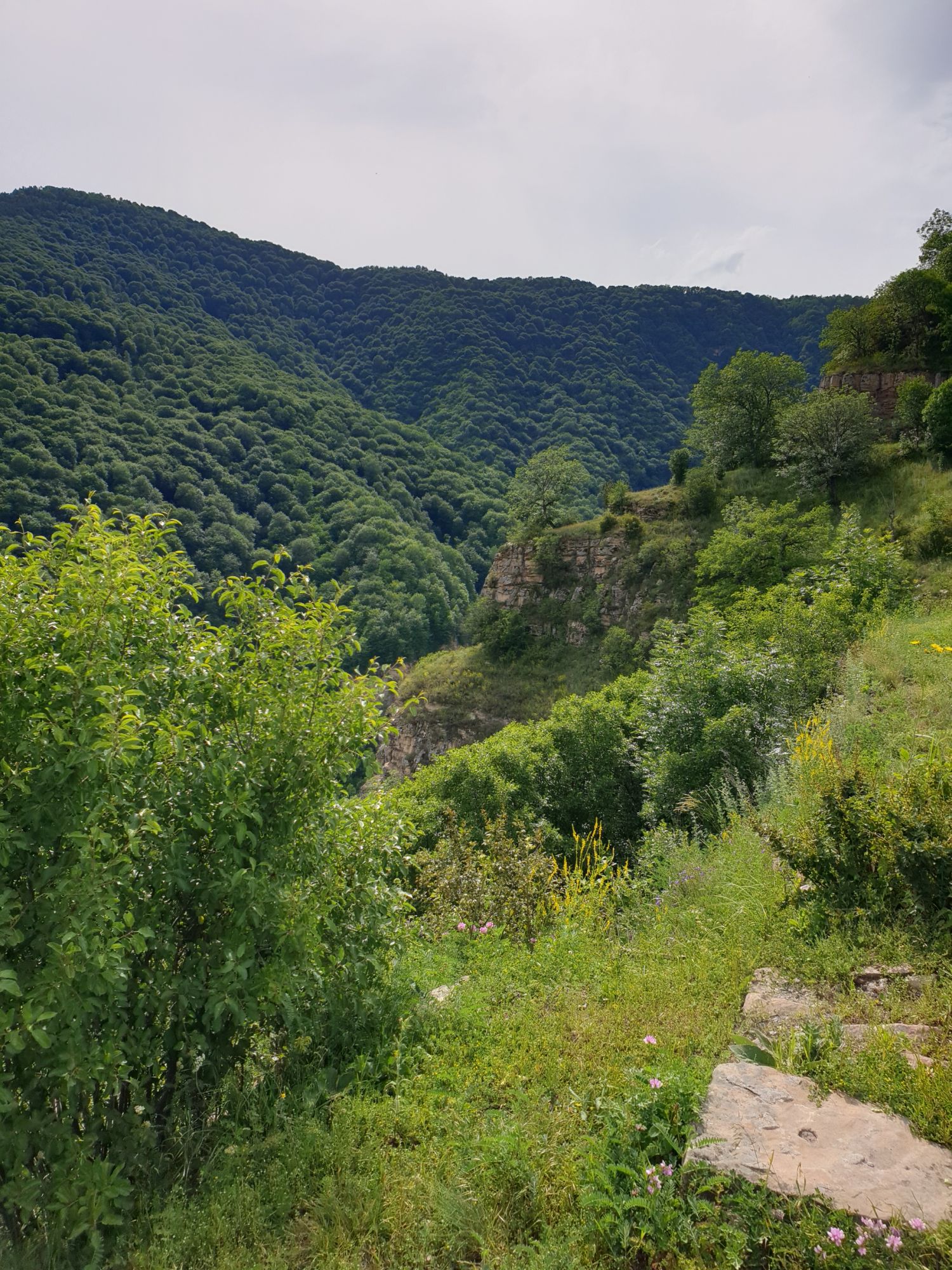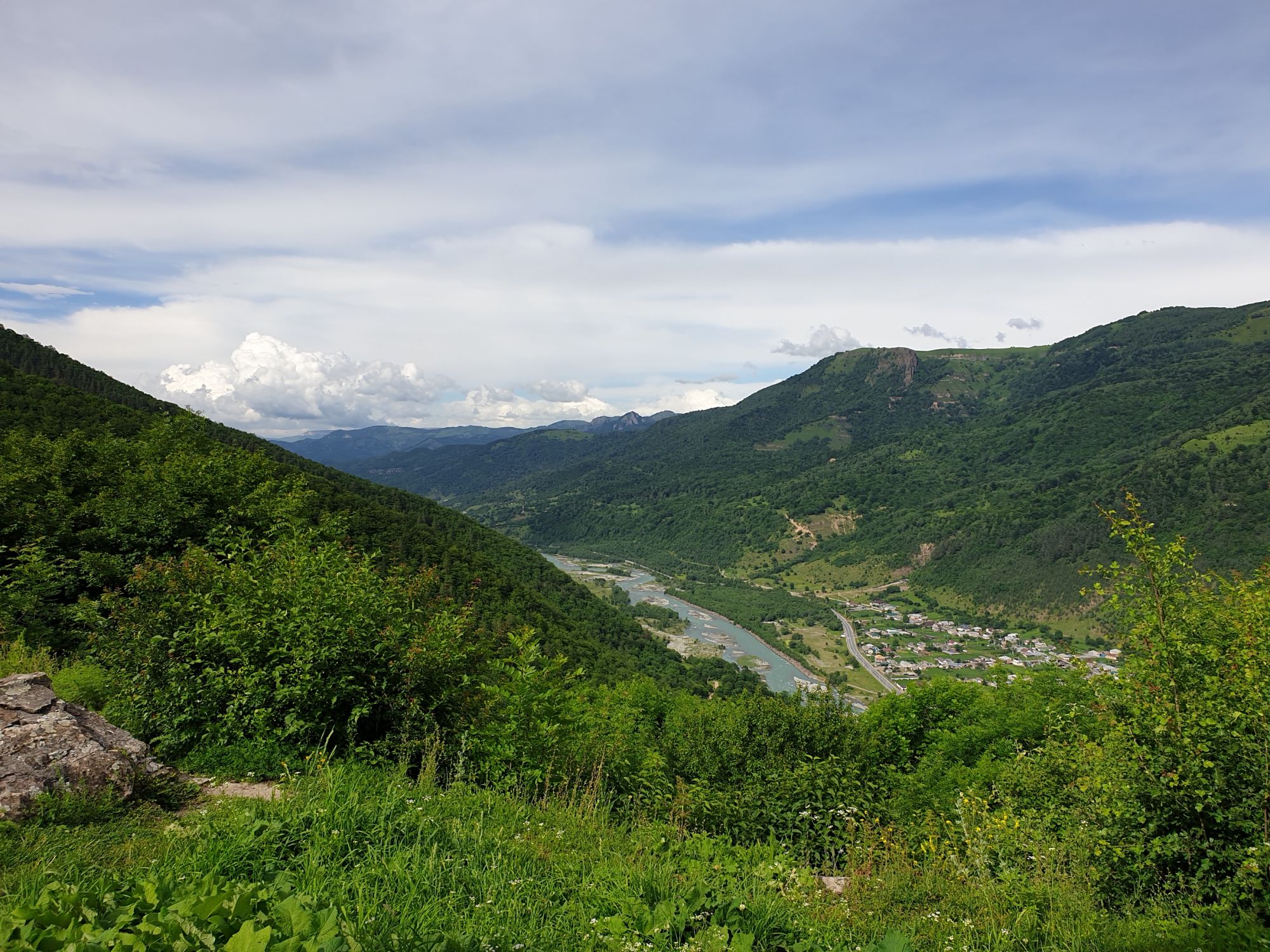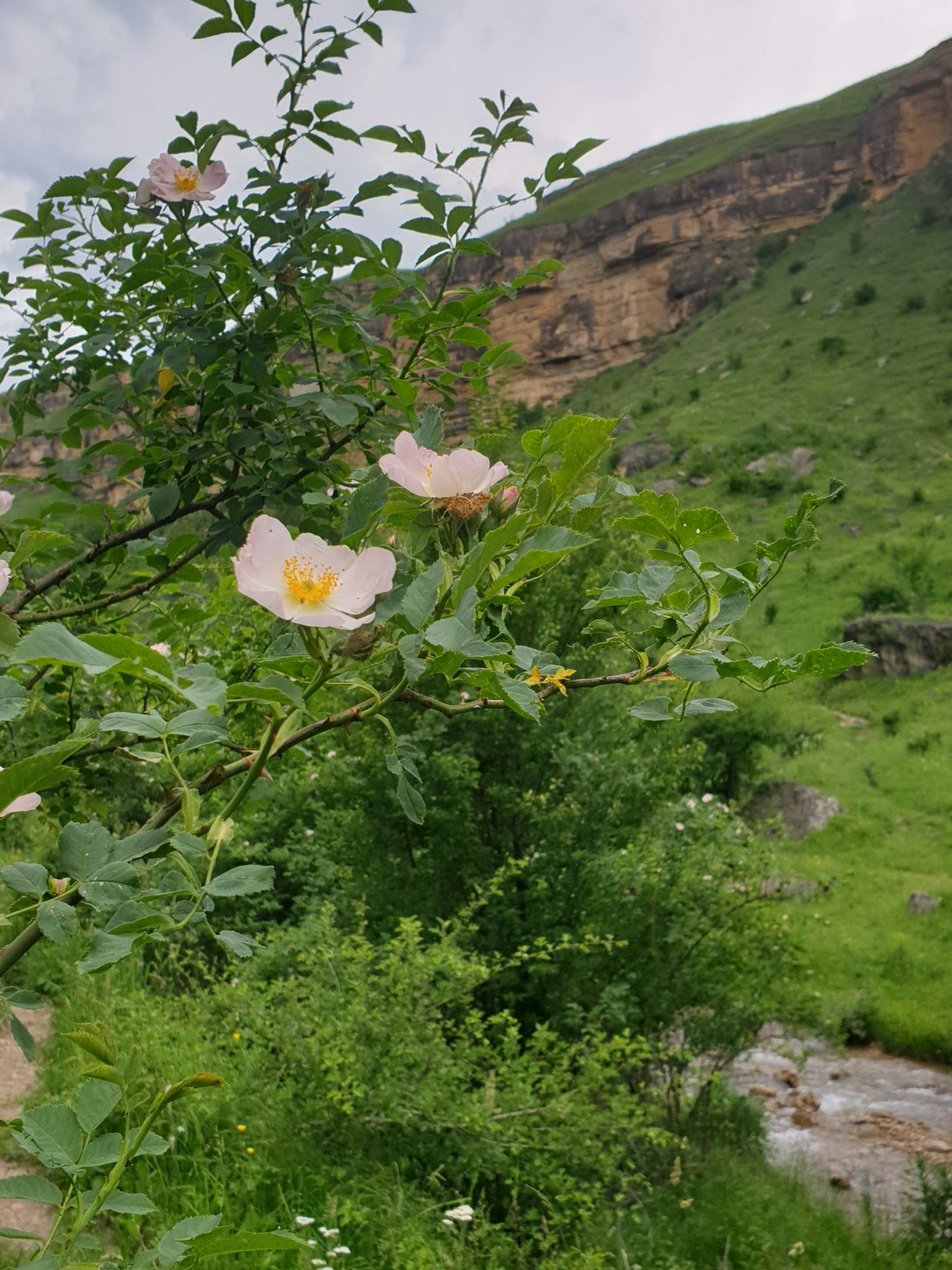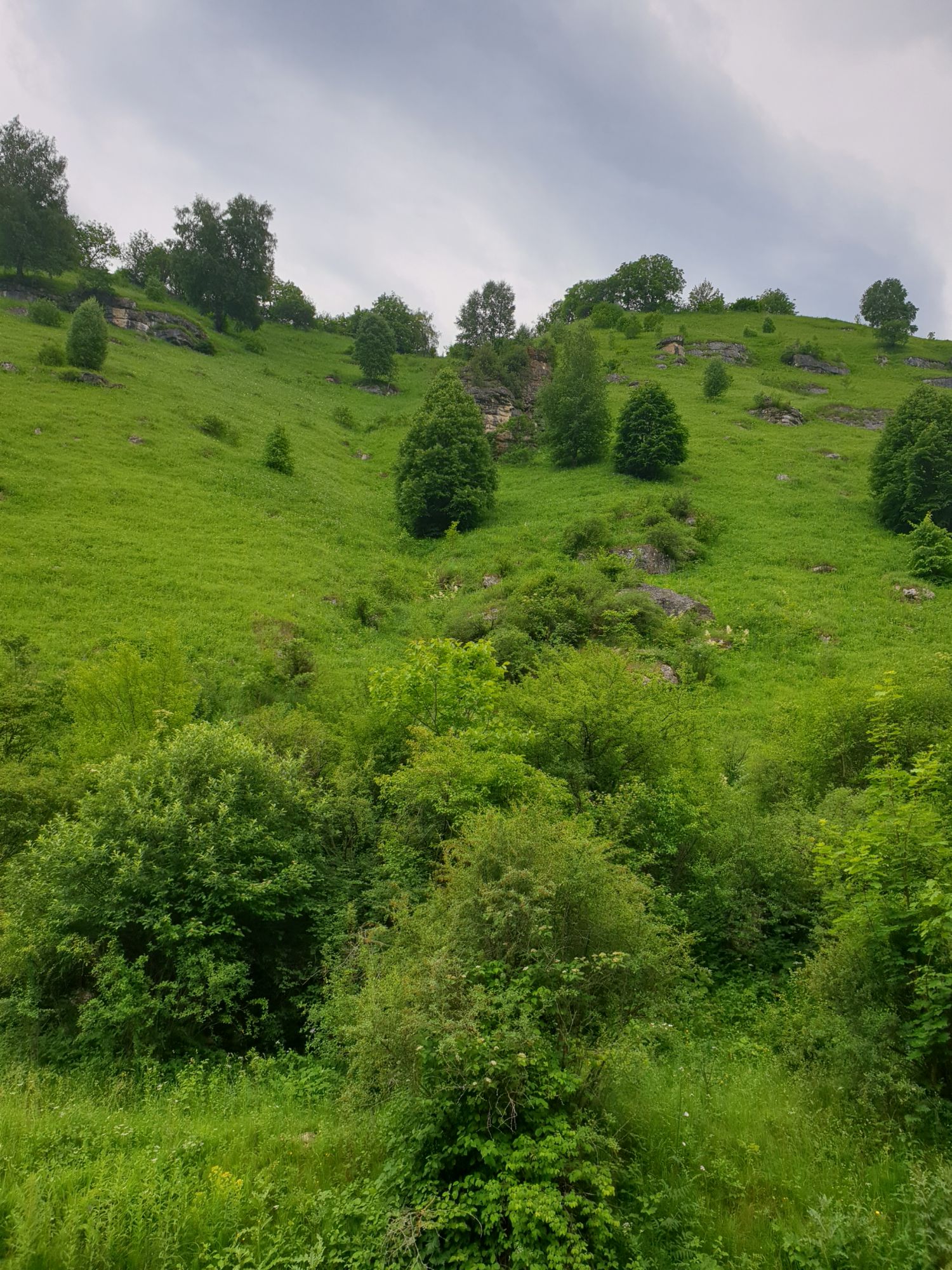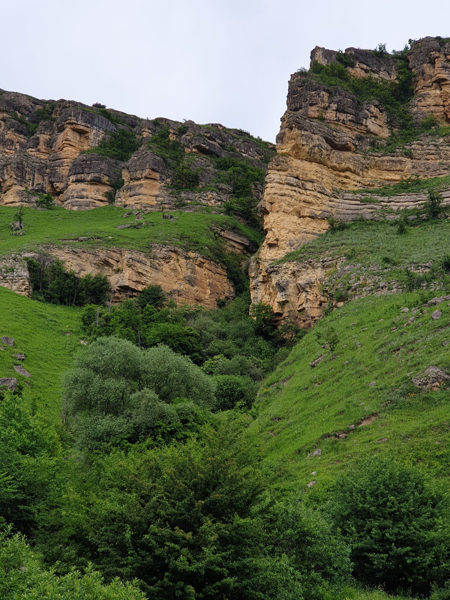 18 июля 2022 Вылазка первая. Березовское ущелье. Место очень красивое. И совсем-совсем близко, машина останется сегодня отдыхать. Одно но: обещали очень жаркий день, а спрятаться от солнца там почти негде. Но мы после Домбая злые и очень упертые. Решаем идти, а там как карта ляжет. До входа в ущелье стараемся выбирать тенистые дорожки и улочки. И вот оно, ущелье. Оно особенно тем, что довольно узкое и скалы здесь практически сразу начинают подниматься отвесно вверх на приличную высоту. Здесь шумит речка Березовка, здесь зелень и цветущий шиповник, здесь какое-то сумасшедшее число "скальных лиц": ветер и вода здесь особенно успешно потрудились. А еще петляющая тропинка, которая постоянно выводит к броду, коих здесь десятки - ущелье действительно узкое и отвесное. И живут орлы... И все это практически сразу, как заходишь в ущелье. Миновав небольшую жилую часть в самом начале ущелья, мы немножко побродили по ледяной воде, чтобы остудиться и настроиться, а потом пошли вперед... Но что удивляло и немного настораживало: вдалеке впереди небо не было таким уж солнечным, а предвещало совсем иные природные катаклизмы. Сначала мы с удовольствием избавились от рубашек, защищавших от солнца, потому что оно скрылось за тучками, потом перестали изнывать от жары и бодренько и с удовольствием пошли вперед, любуясь пейзажами и не забывая регулярно разуваться, чтобы в очередной раз перейти реку)) И только настойчивый гром немного нарушал идиллию В какой-то момент дождь начался. Точнее он из приятной прохладной водяной пыли стал дождиком, от которого мы предпочли укрыться под деревьями и спрятать технику и документы понадежнее)) Заодно тут же перекусили и отдохнули. А на противоположном берегу тем временем мирно паслись коровы: в КЧР это вообще норма, они по всем ущельям свободно гуляют. А мы, судя по карте и плохо работающему здесь GPS, как раз подходили к теоретической границе между Ставропольем и Карачаево-Черкессией))) Тут перед нами встала дилемма. С одной стороны дождь и прогноз неутешительный: затягивало и грохотало все сильнее. А с другой стороны я очень хотела прогуляться по ущелью подальше. И это было принципиально: мы в первую поездку здесь уже гуляли, но тогда прошли совсем немного, т.к. был уже вечер. Сейчас мы уже были прилично дальше, но... но мы же, напоминаю, были прилично злые после Домбая и решительно хотели все исправить... Я металась между здравым смыслом и желанием идти дальше. Не буду описывать все перепетии, но видно такое было у меня выражение лица, что муж принимает решение идти дальше. Что мы теряем в сущности?! Промокнем? Ну и ладно, все равно тепло, - была его аргументация. И я ему очень за то решение благодарна, я бы на здравый смысл повелась)))) В общем, мы отправились дальше, переждав сильный заряд дождя. Дальше фотографии будут чуток замыленные, потому что мелкий дождик не переставал почти все время. Но он практически не доставлял неудобств, лишь избавлял от жары и заставлял периодически прятать камеру. Мы дошли чуть дальше смотровой площадки, что нависает над ущельем у села Элькуш. Помимо прочего нам попалась черепушка, живописно надетая на огромный камень, несколько ржавеющих остовов машин в том месте, где над ущельем село - печальное напоминание о том, почему не нужно подъезжать к краю обрывов, особенно в горах и в плохую погоду, заросли так