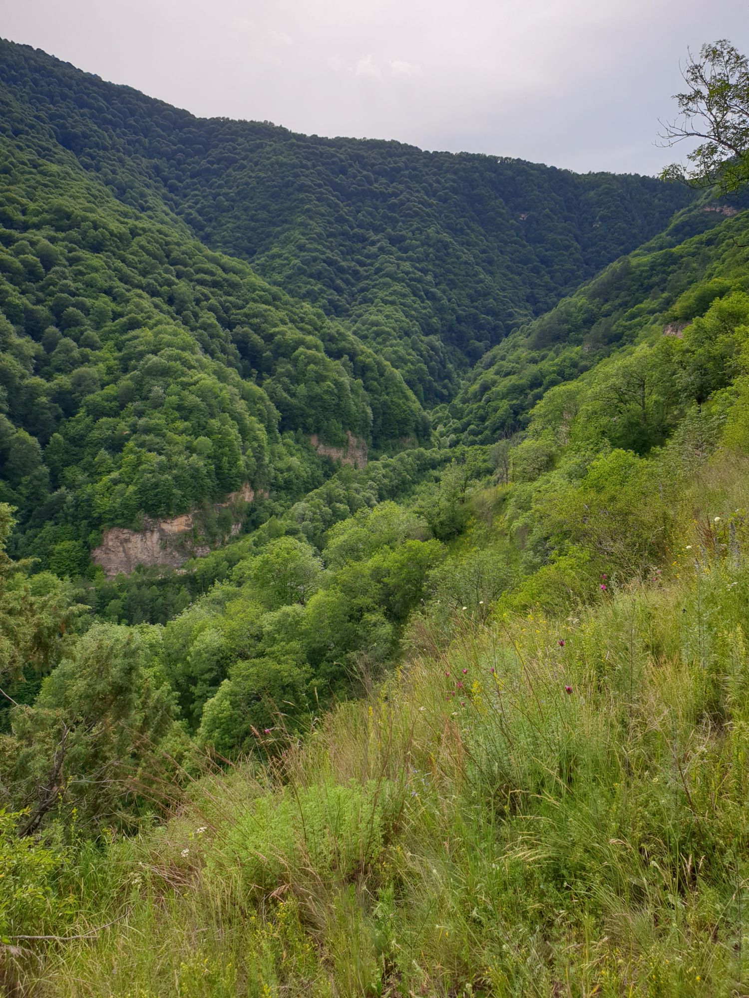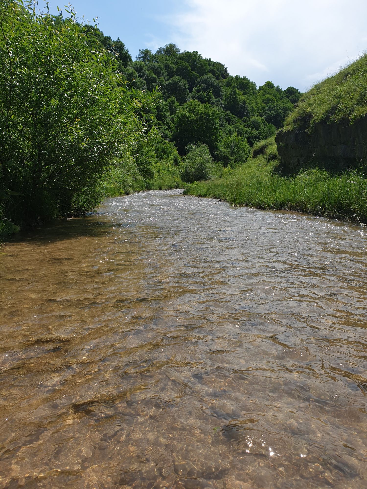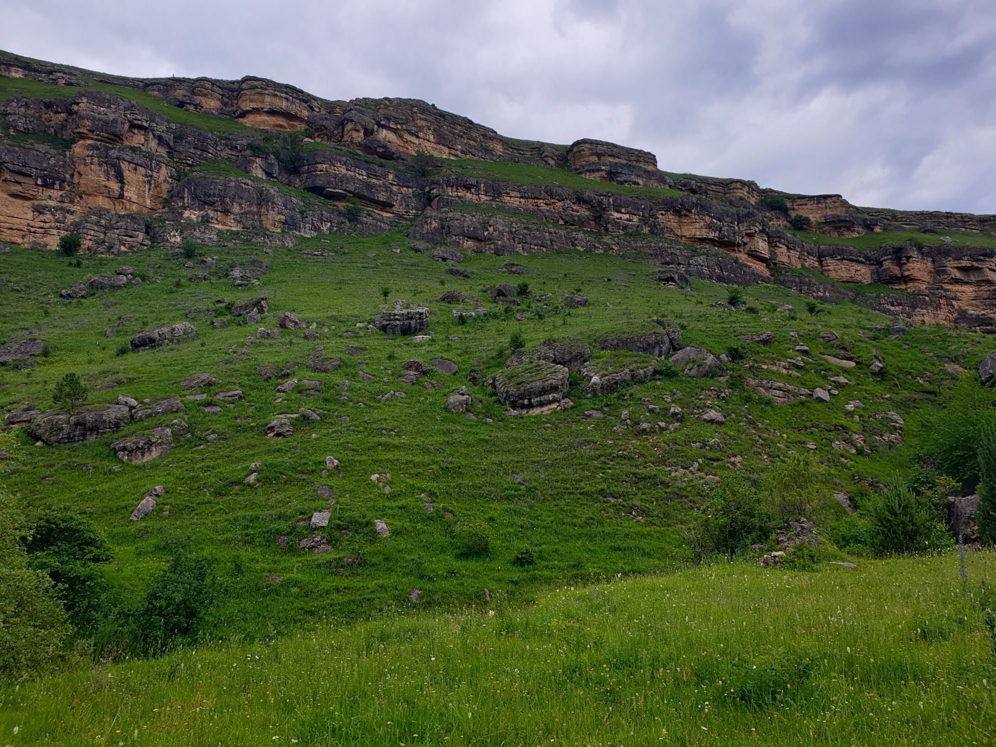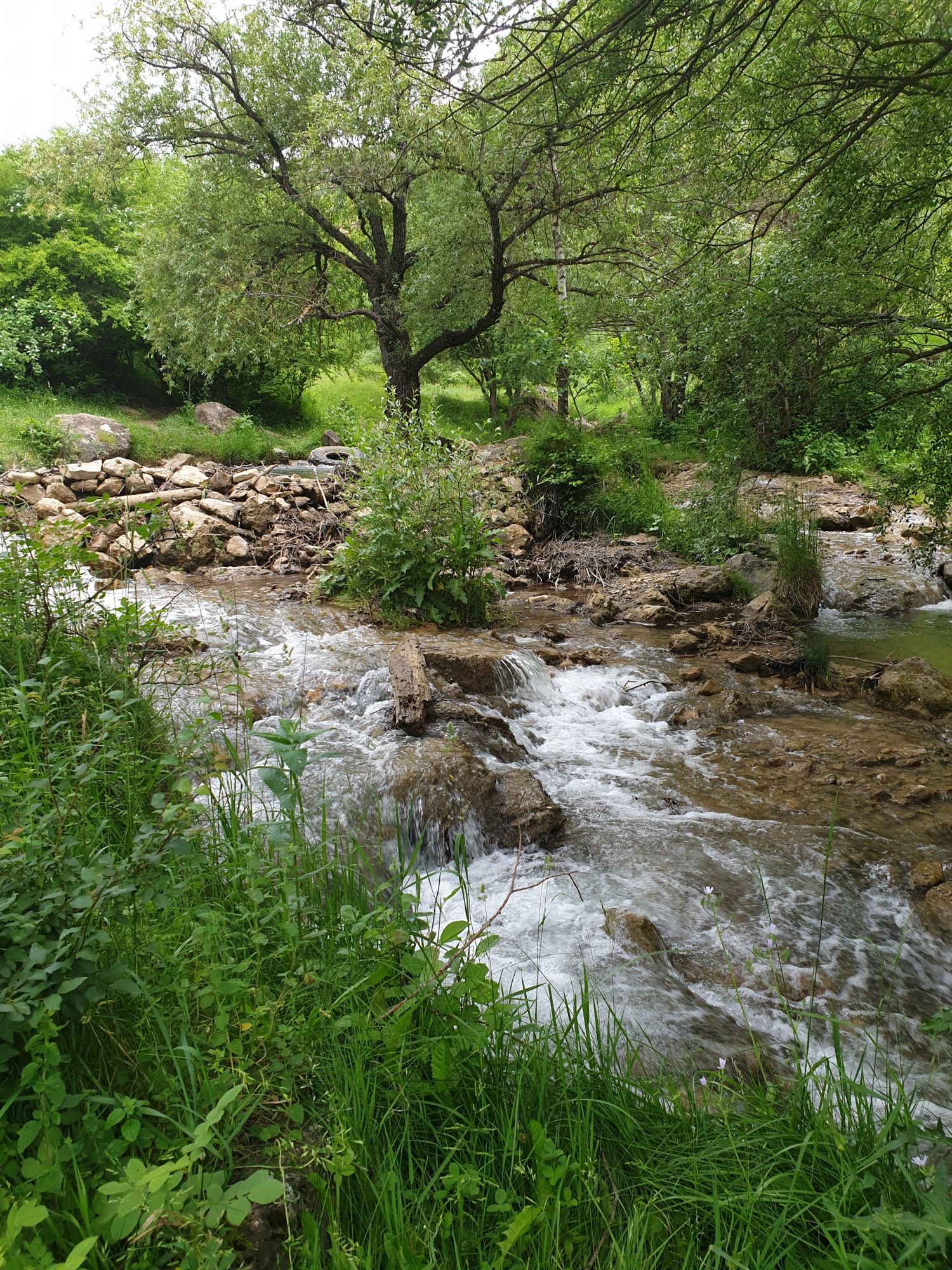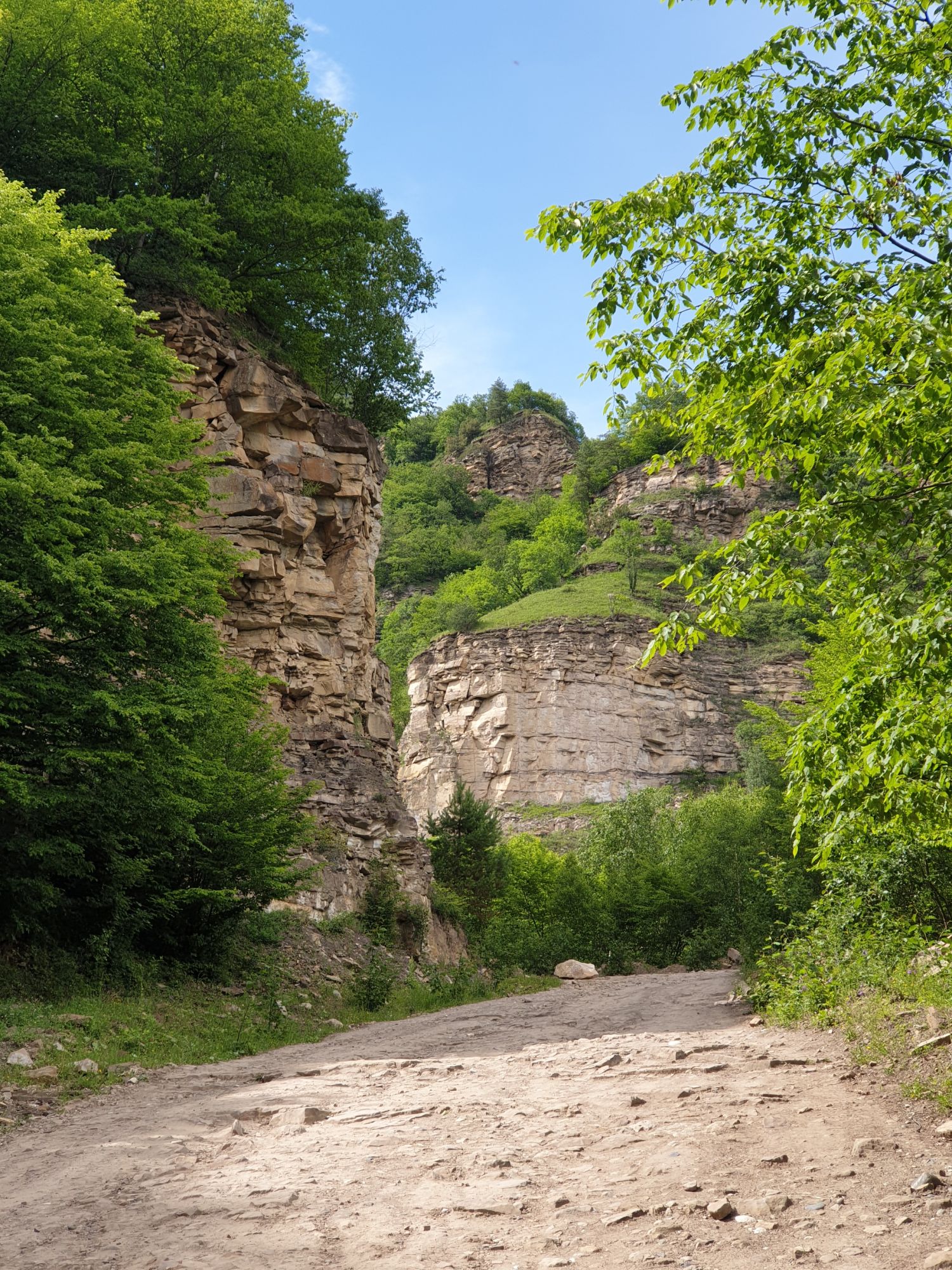18 июля 2022 Вылазка первая. Березовское ущелье. Место очень красивое. И совсем-совсем близко, машина останется сегодня отдыхать. Одно но: обещали очень жаркий день, а спрятаться от солнца там почти негде. Но мы после Домбая злые и очень упертые. Решаем идти, а там как карта ляжет. До входа в ущелье стараемся выбирать тенистые дорожки и улочки. И вот оно, ущелье. Оно особенно тем, что довольно узкое и скалы здесь практически сразу начинают подниматься отвесно вверх на приличную высоту. Здесь шумит речка Березовка, здесь зелень и цветущий шиповник, здесь какое-то сумасшедшее число "скальных лиц": ветер и вода здесь особенно успешно потрудились. А еще петляющая тропинка, которая постоянно выводит к броду, коих здесь десятки - ущелье действительно узкое и отвесное. И живут орлы... И все это практически сразу, как заходишь в ущелье. Миновав небольшую жилую часть в самом начале ущелья, мы немножко побродили по ледяной воде, чтобы остудиться и настроиться, а потом пошли вперед... Но что удивляло и немного настораживало: вдалеке впереди небо не было таким уж солнечным, а предвещало совсем иные природные катаклизмы. Сначала мы с удовольствием избавились от рубашек, защищавших от солнца, потому что оно скрылось за тучками, потом перестали изнывать от жары и бодренько и с удовольствием пошли вперед, любуясь пейзажами и не забывая регулярно разуваться, чтобы в очередной раз перейти реку)) И только настойчивый гром немного нарушал идиллию В какой-то момент дождь начался. Точнее он из приятной прохладной водяной пыли стал дождиком, от которого мы предпочли укрыться под деревьями и спрятать технику и документы понадежнее)) Заодно тут же перекусили и отдохнули. А на противоположном берегу тем временем мирно паслись коровы: в КЧР это вообще норма, они по всем ущельям свободно гуляют. А мы, судя по карте и плохо работающему здесь GPS, как раз подходили к теоретической границе между Ставропольем и Карачаево-Черкессией))) Тут перед нами встала дилемма. С одной стороны дождь и прогноз неутешительный: затягивало и грохотало все сильнее. А с другой стороны я очень хотела прогуляться по ущелью подальше. И это было принципиально: мы в первую поездку здесь уже гуляли, но тогда прошли совсем немного, т.к. был уже вечер. Сейчас мы уже были прилично дальше, но... но мы же, напоминаю, были прилично злые после Домбая и решительно хотели все исправить... Я металась между здравым смыслом и желанием идти дальше. Не буду описывать все перепетии, но видно такое было у меня выражение лица, что муж принимает решение идти дальше. Что мы теряем в сущности?! Промокнем? Ну и ладно, все равно тепло, - была его аргументация. И я ему очень за то решение благодарна, я бы на здравый смысл повелась)))) В общем, мы отправились дальше, переждав сильный заряд дождя. Дальше фотографии будут чуток замыленные, потому что мелкий дождик не переставал почти все время. Но он практически не доставлял неудобств, лишь избавлял от жары и заставлял периодически прятать камеру. Мы дошли чуть дальше смотровой площадки, что нависает над ущельем у села Элькуш. Помимо прочего нам попалась черепушка, живописно надетая на огромный камень, несколько ржавеющих остовов машин в том месте, где над ущельем село - печальное напоминание о том, почему не нужно подъезжать к краю обрывов, особенно в горах и в плохую погоду, заросли так