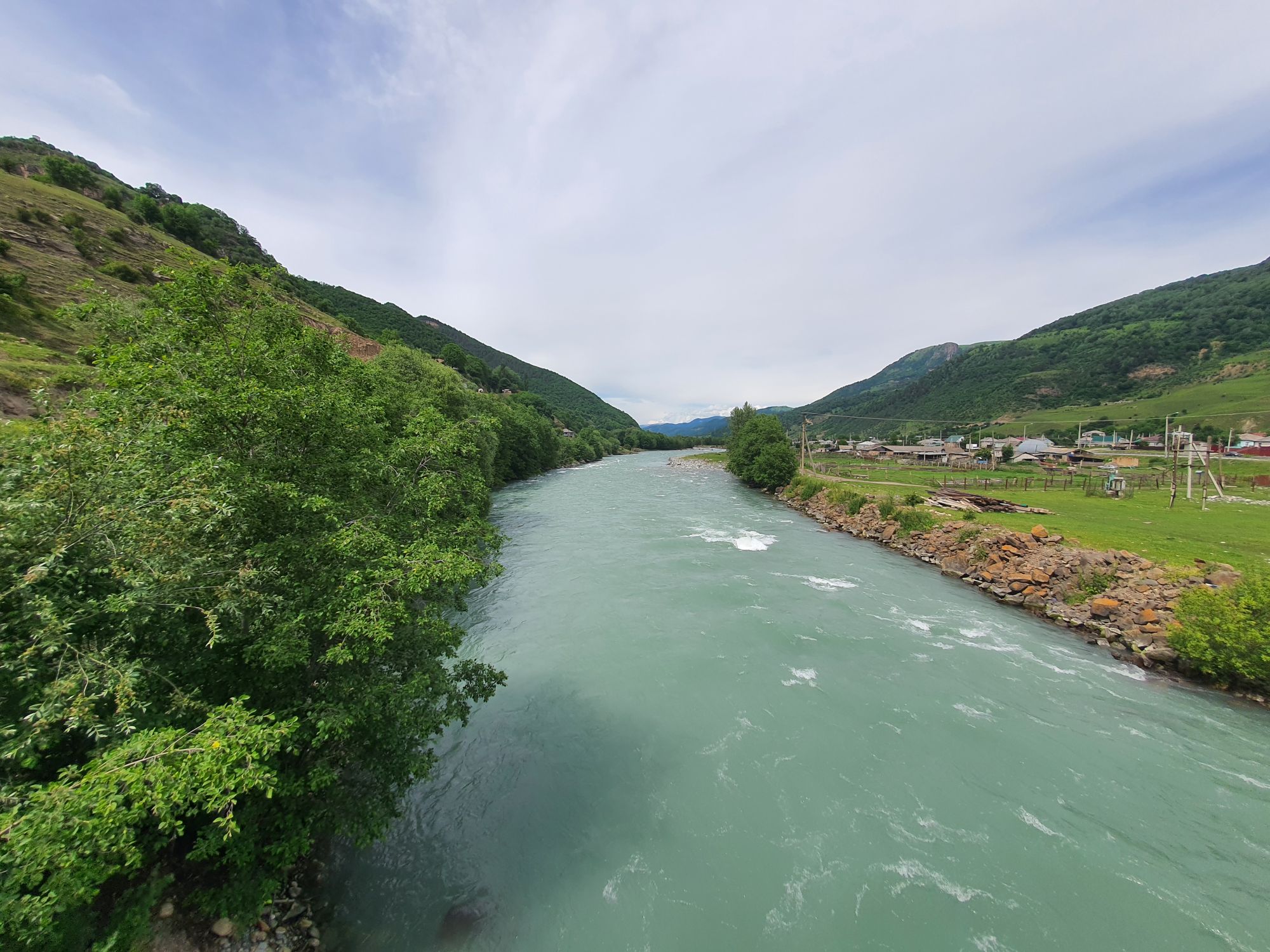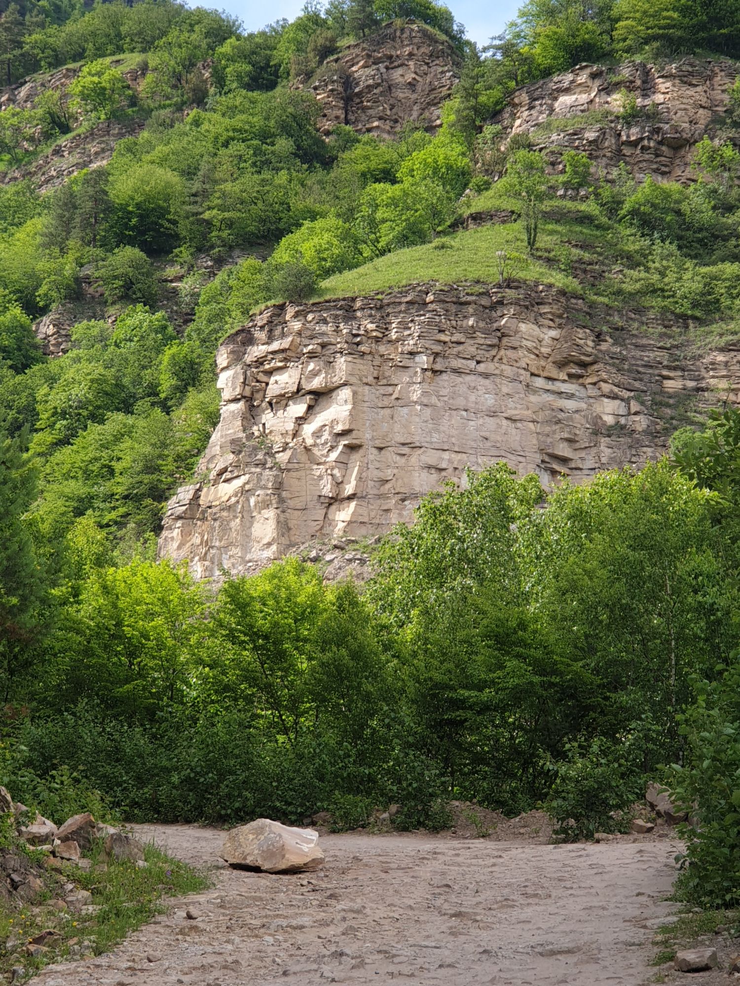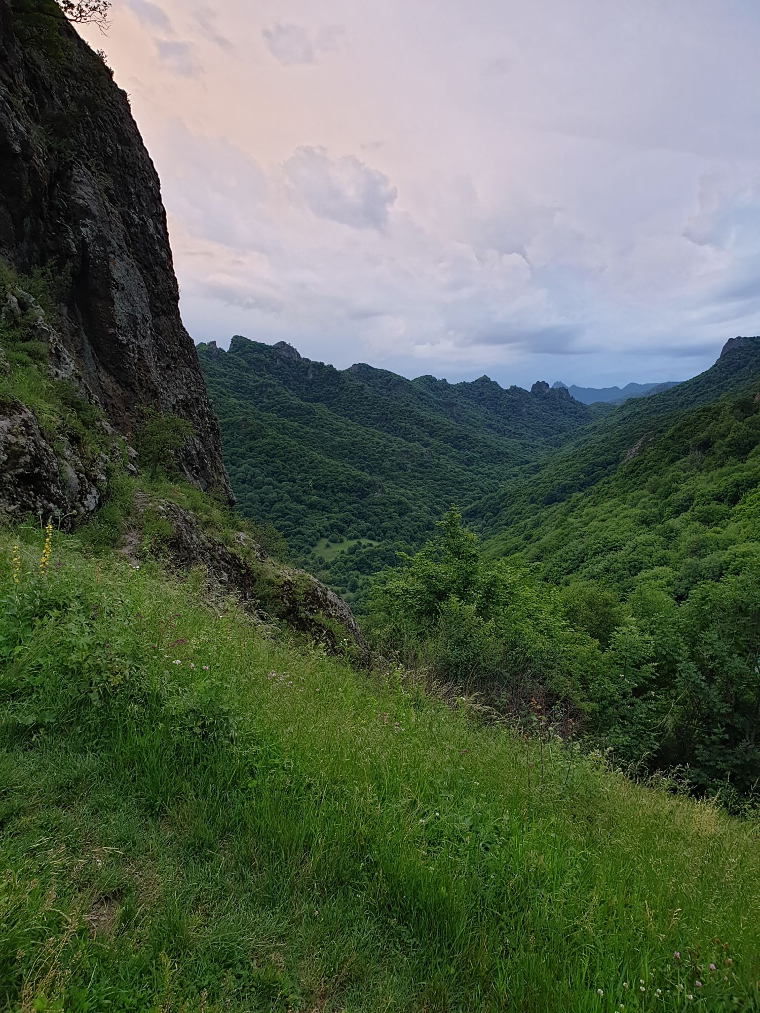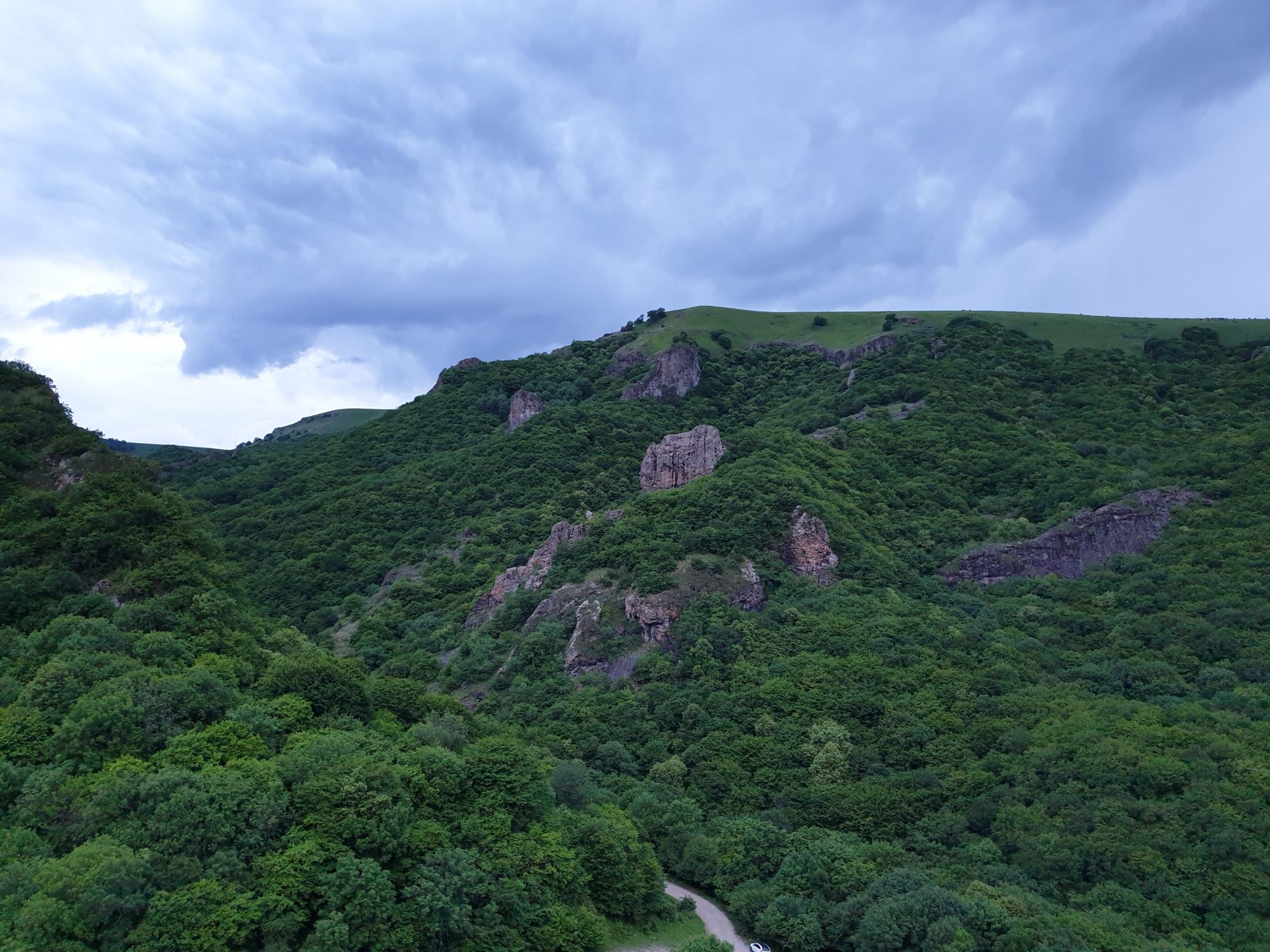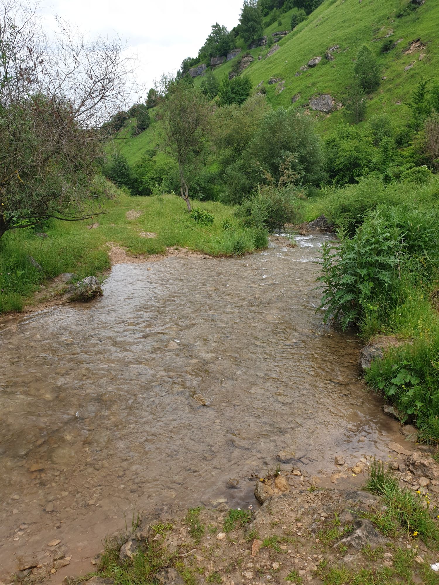 18 июля 2022 Вылазка первая. Березовское ущелье. Место очень красивое. И совсем-совсем близко, машина останется сегодня отдыхать. Одно но: обещали очень жаркий день, а спрятаться от солнца там почти негде. Но мы после Домбая злые и очень упертые. Решаем идти, а там как карта ляжет. До входа в ущелье стараемся выбирать тенистые дорожки и улочки. И вот оно, ущелье. Оно особенно тем, что довольно узкое и скалы здесь практически сразу начинают подниматься отвесно вверх на приличную высоту. Здесь шумит речка Березовка, здесь зелень и цветущий шиповник, здесь какое-то сумасшедшее число "скальных лиц": ветер и вода здесь особенно успешно потрудились. А еще петляющая тропинка, которая постоянно выводит к броду, коих здесь десятки - ущелье действительно узкое и отвесное. И живут орлы... И все это практически сразу, как заходишь в ущелье. Миновав небольшую жилую часть в самом начале ущелья, мы немножко побродили по ледяной воде, чтобы остудиться и настроиться, а потом пошли вперед... Но что удивляло и немного настораживало: вдалеке впереди небо не было таким уж солнечным, а предвещало совсем иные природные катаклизмы. Сначала мы с удовольствием избавились от рубашек, защищавших от солнца, потому что оно скрылось за тучками, потом перестали изнывать от жары и бодренько и с удовольствием пошли вперед, любуясь пейзажами и не забывая регулярно разуваться, чтобы в очередной раз перейти реку)) И только настойчивый гром немного нарушал идиллию В какой-то момент дождь начался. Точнее он из приятной прохладной водяной пыли стал дождиком, от которого мы предпочли укрыться под деревьями и спрятать технику и документы понадежнее)) Заодно тут же перекусили и отдохнули. А на противоположном берегу тем временем мирно паслись коровы: в КЧР это вообще норма, они по всем ущельям свободно гуляют. А мы, судя по карте и плохо работающему здесь GPS, как раз подходили к теоретической границе между Ставропольем и Карачаево-Черкессией))) Тут перед нами встала дилемма. С одной стороны дождь и прогноз неутешительный: затягивало и грохотало все сильнее. А с другой стороны я очень хотела прогуляться по ущелью подальше. И это было принципиально: мы в первую поездку здесь уже гуляли, но тогда прошли совсем немного, т.к. был уже вечер. Сейчас мы уже были прилично дальше, но... но мы же, напоминаю, были прилично злые после Домбая и решительно хотели все исправить... Я металась между здравым смыслом и желанием идти дальше. Не буду описывать все перепетии, но видно такое было у меня выражение лица, что муж принимает решение идти дальше. Что мы теряем в сущности?! Промокнем? Ну и ладно, все равно тепло, - была его аргументация. И я ему очень за то решение благодарна, я бы на здравый смысл повелась)))) В общем, мы отправились дальше, переждав сильный заряд дождя. Дальше фотографии будут чуток замыленные, потому что мелкий дождик не переставал почти все время. Но он практически не доставлял неудобств, лишь избавлял от жары и заставлял периодически прятать камеру. Мы дошли чуть дальше смотровой площадки, что нависает над ущельем у села Элькуш. Помимо прочего нам попалась черепушка, живописно надетая на огромный камень, несколько ржавеющих остовов машин в том месте, где над ущельем село - печальное напоминание о том, почему не нужно подъезжать к краю обрывов, особенно в горах и в плохую погоду, заросли так