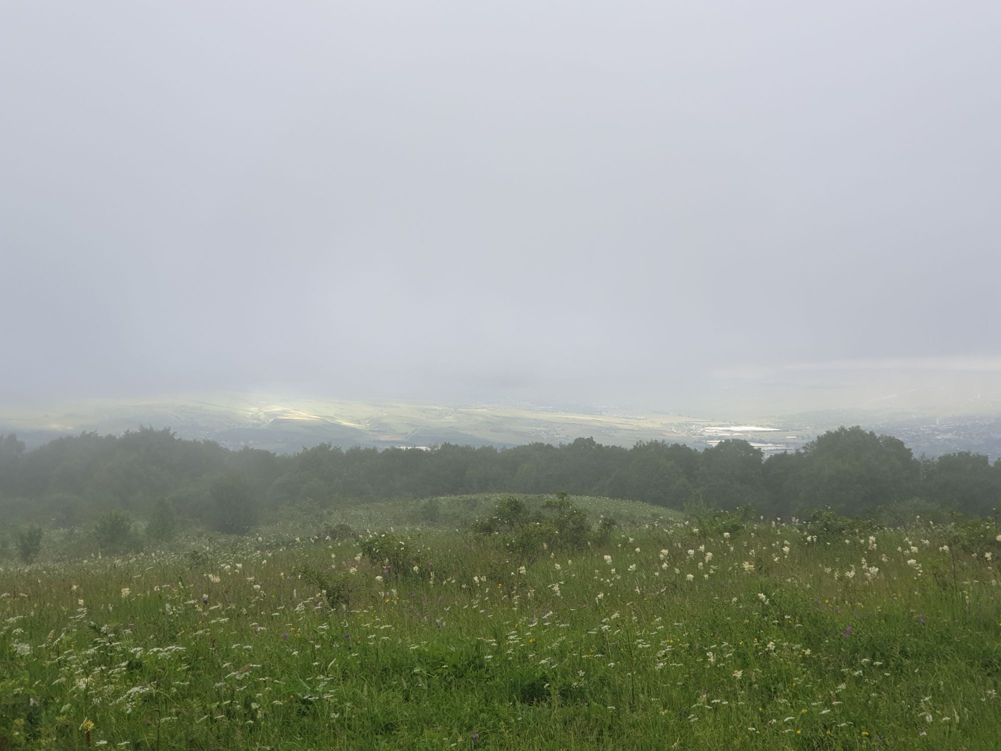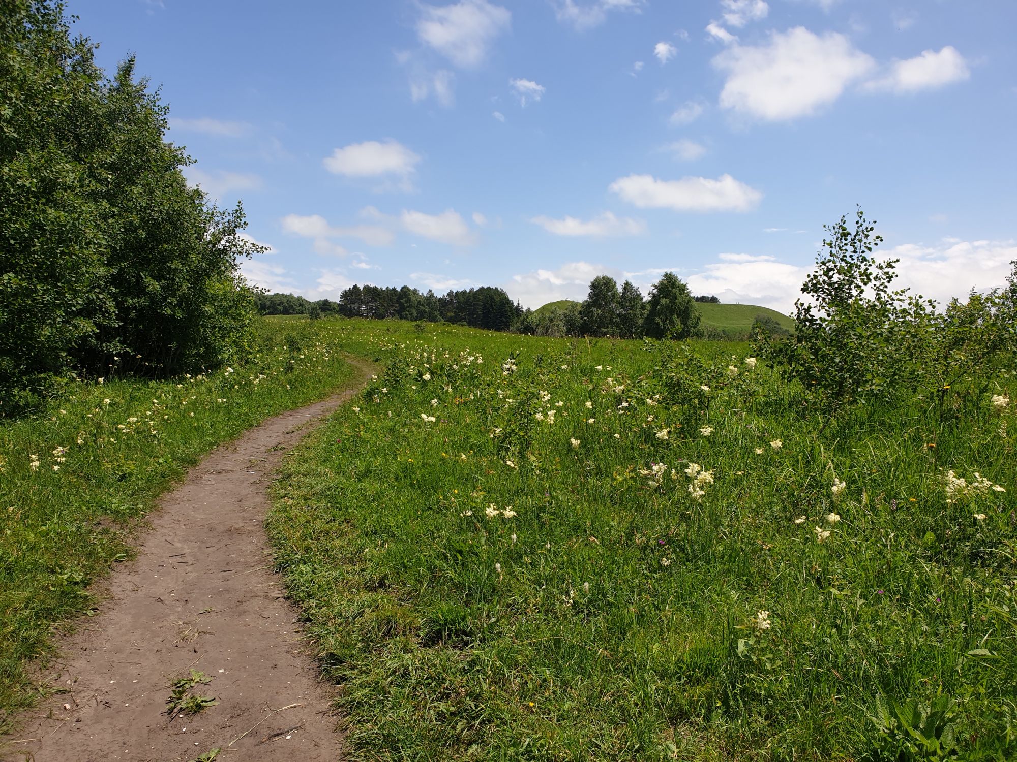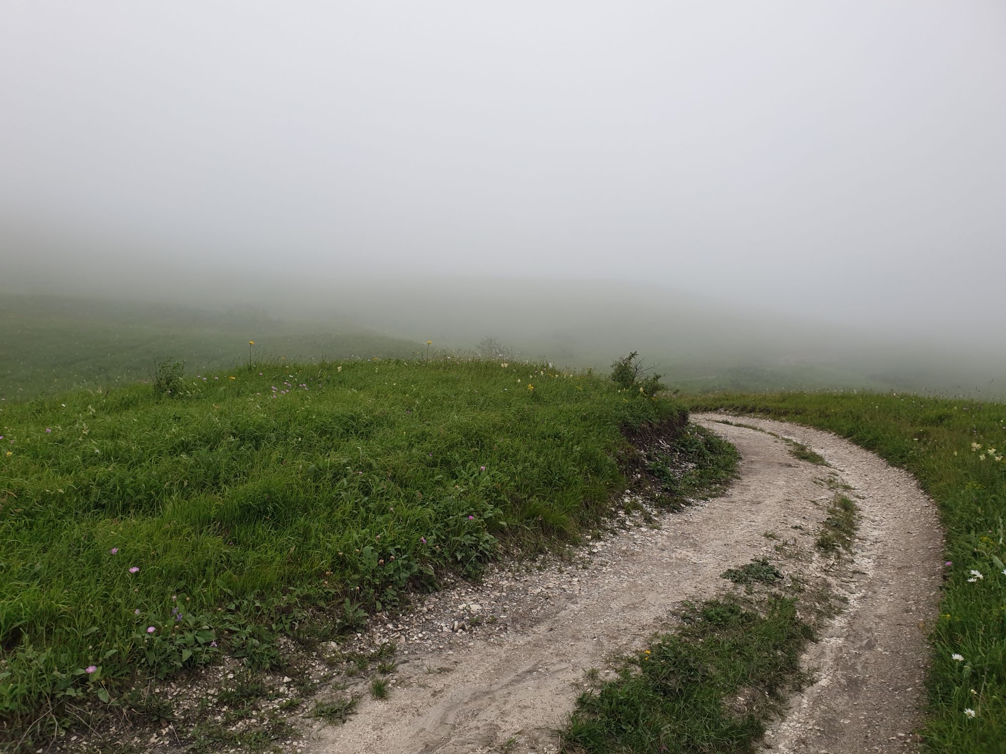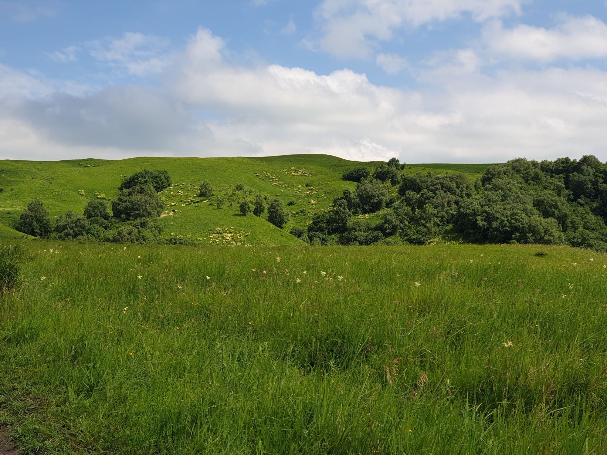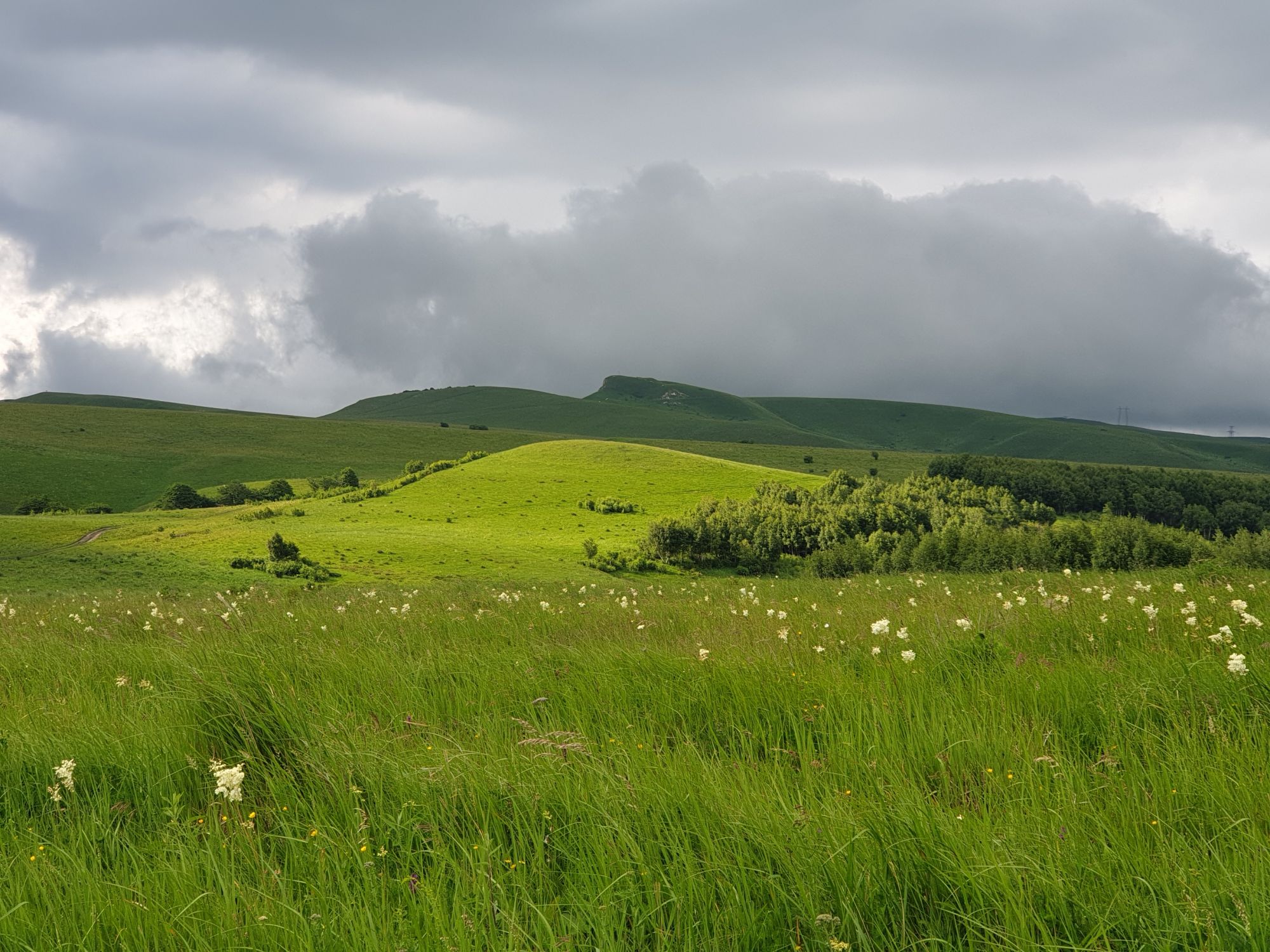 18 июля 2022 Вылазка вторая. Прогулка к Малому Джиналу. Это уже из Кисловодского парка. Гора повыше Малого седла и чуточку пониже Большого (1379м над уровнем моря, если не ошибаюсь). Но подальше от парка и города. Собственно вообще не понятно, к чему она ближе: к Пятигорску, Ессентукам или Кисловодску, но из Кисловодска дорога понятная, не особенно сложная и красивая. Да и мы в Кисловодске))) А еще, по отзывам, оттуда Эльбрус виден едва ли не от самого подножия! Нет, мы не надеялись увидеть Эльбрус, ибо облака, тучи и все тот же прогноз погоды. Но пройти новыми дорогами и немного дальше - почему бы и нет! Тем более это было в тот самый день, когда сорвалась поездка в Джилы-су. Мы поднялись до Малого седла той же дорогой, что и в первый раз. И в это раз подъем дался намного проще: организм таки действительно включился и заработал! Лён изумительно смотрится в горах! А тени от облаков на зеленых склонах сегодня были особенно интересными. Мы на минуточку заглянули на смотровую Малого седла и отправились дальше, мимо того лесочка, где в прошлый раз гуляли и нашли дикую лилию. Я думала, что "до новых мест" почти не буду фотографировать, но как бы не так! Взгляд моментально зацепился за "новые цветочки" : несколько дней назад они еще не цвели, мы тут все травки изучили Яндекс определил как одну из разновидностей дикого клематиса (ломоноса), но я в вопрос не углублялась, точно сказать не могу. А дальше, оставив слева дорогу на Большое седло, мы отправились к новым приключениям. Дорогу было не потерять, она тут одна и подозреваю, что по ней и на внедорожниках ездят, особенно к местам летнего выгона скота, поэтому оставалось только подниматься и спускаться, спускаться и подниматься, преодолевая одну горку за другой. И крутить головой на 360 градусов, конечно. Потому что виды тут невообразимые! В какой-то момент, обернувшись назад, мы увидели лишь макушку Большого седла, на которое с неделю назад забирались. И тот самый лес на соседней с Малым седлом горке. А потом, уже ближе к концу путешествия слева вдалеке открылся вид на пятиглавый Бештау. А слева неизменные зеленые просторы в направление Главного Кавказского хребта. По прямой до него рукой подать, но облака сегодня укрыли горизонт весьма надежно. И они же сделали фотографии особенно живыми и разнообразными) Вокруг цвели луга и это вызывало такой неизъяснимый восторг в душе! Бескрайний густой ковер из цветов, таких трогательных, ярких и нежных одновременно. Я уже старалсь сдерживаться и не снимать каждый цветок (иначе бы никуда не дошли) Но несколько "интересностей" пропустить не могла. Подальше и повыше стали довольно регулярно попадаться орхидеи: А вот этот нежный и миниатюрный красавец удивил. Яндекс определил его как дикий гладиолус! Представляете?! И я склонна ему верить (листья тоже сходятся) . Росточка в этом малыше см 20! Ну и из прочего немного: Преодолев очередной большой подъем мы увидели перед собой завораживающую картину, какую-то бескрайнюю во все стороны. Особенно густая трава и цветы, особенно живописный Бештау как завершение пейзажа с цветущим альпийским лугом, особенно бесконечное и живое море внизу слева и до горизонта... Захотелось остановить момент и погрузиться в него с головой. Запечатлеть его в памяти, в голове, поставить этот вид в рамку на самое видное место в мыслях и благодарить, благодарить,