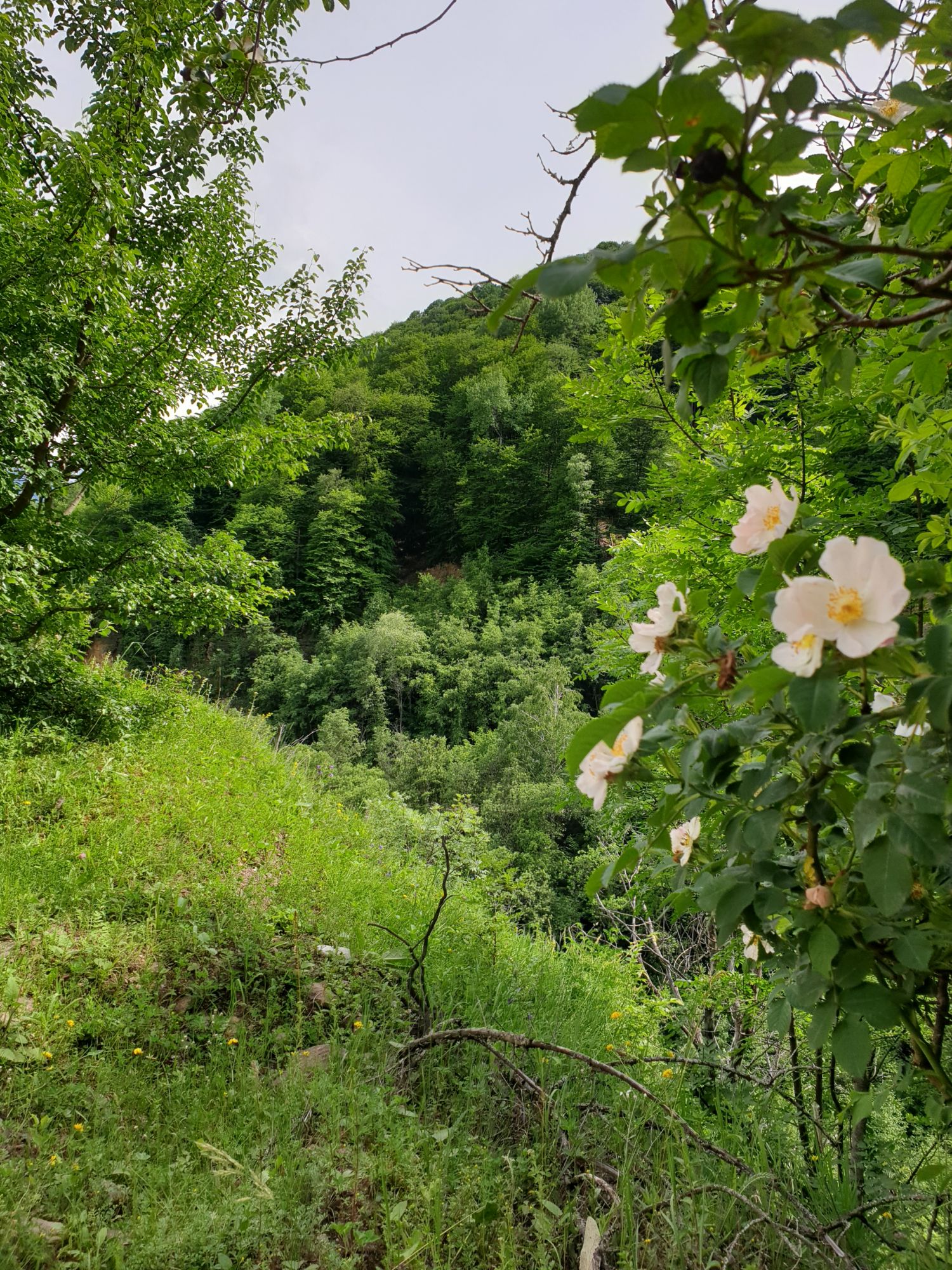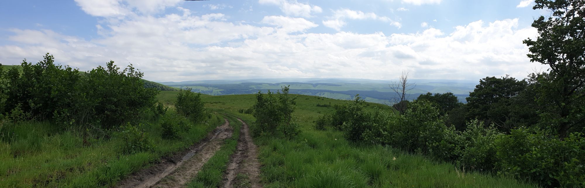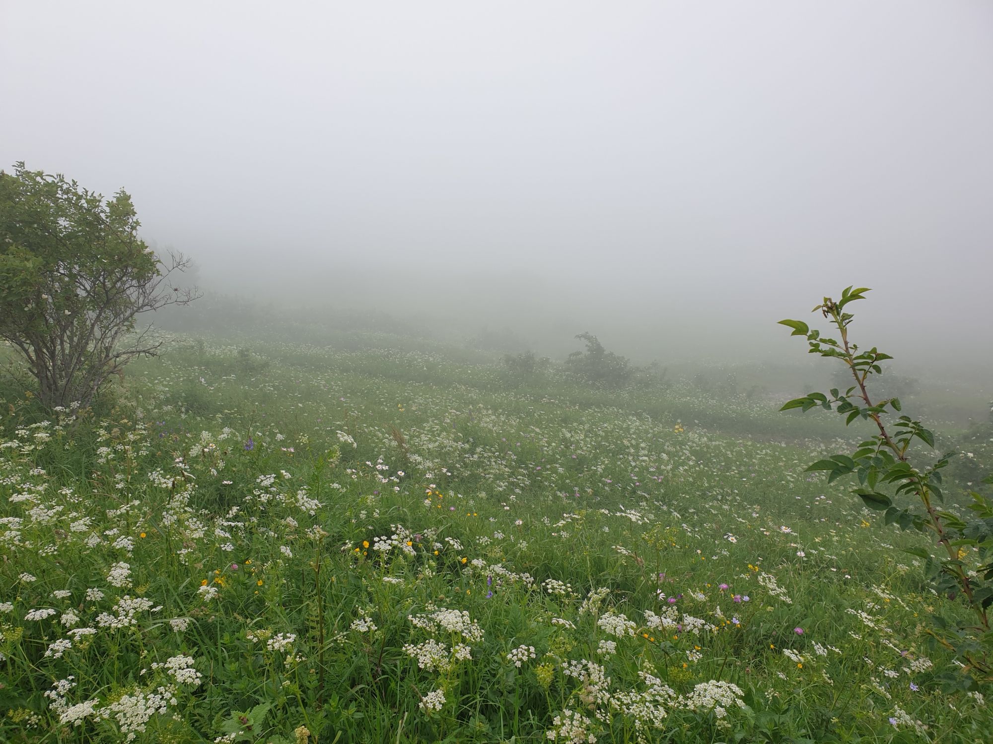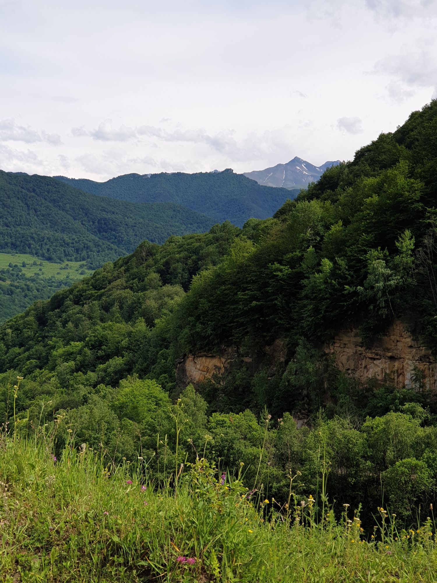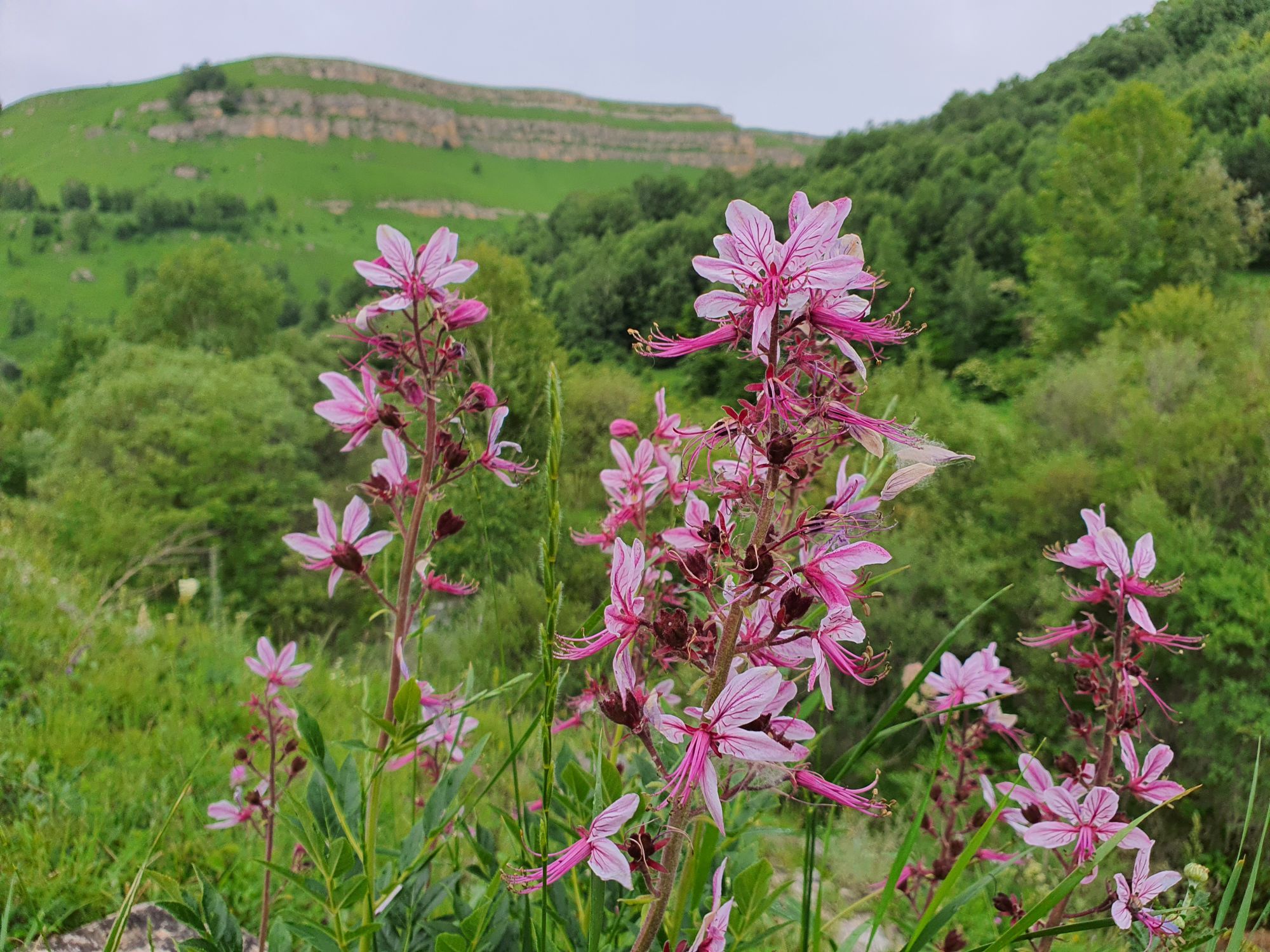 18 июля 2022 Вылазка вторая. Прогулка к Малому Джиналу. Это уже из Кисловодского парка. Гора повыше Малого седла и чуточку пониже Большого (1379м над уровнем моря, если не ошибаюсь). Но подальше от парка и города. Собственно вообще не понятно, к чему она ближе: к Пятигорску, Ессентукам или Кисловодску, но из Кисловодска дорога понятная, не особенно сложная и красивая. Да и мы в Кисловодске))) А еще, по отзывам, оттуда Эльбрус виден едва ли не от самого подножия! Нет, мы не надеялись увидеть Эльбрус, ибо облака, тучи и все тот же прогноз погоды. Но пройти новыми дорогами и немного дальше - почему бы и нет! Тем более это было в тот самый день, когда сорвалась поездка в Джилы-су. Мы поднялись до Малого седла той же дорогой, что и в первый раз. И в это раз подъем дался намного проще: организм таки действительно включился и заработал! Лён изумительно смотрится в горах! А тени от облаков на зеленых склонах сегодня были особенно интересными. Мы на минуточку заглянули на смотровую Малого седла и отправились дальше, мимо того лесочка, где в прошлый раз гуляли и нашли дикую лилию. Я думала, что "до новых мест" почти не буду фотографировать, но как бы не так! Взгляд моментально зацепился за "новые цветочки" : несколько дней назад они еще не цвели, мы тут все травки изучили Яндекс определил как одну из разновидностей дикого клематиса (ломоноса), но я в вопрос не углублялась, точно сказать не могу. А дальше, оставив слева дорогу на Большое седло, мы отправились к новым приключениям. Дорогу было не потерять, она тут одна и подозреваю, что по ней и на внедорожниках ездят, особенно к местам летнего выгона скота, поэтому оставалось только подниматься и спускаться, спускаться и подниматься, преодолевая одну горку за другой. И крутить головой на 360 градусов, конечно. Потому что виды тут невообразимые! В какой-то момент, обернувшись назад, мы увидели лишь макушку Большого седла, на которое с неделю назад забирались. И тот самый лес на соседней с Малым седлом горке. А потом, уже ближе к концу путешествия слева вдалеке открылся вид на пятиглавый Бештау. А слева неизменные зеленые просторы в направление Главного Кавказского хребта. По прямой до него рукой подать, но облака сегодня укрыли горизонт весьма надежно. И они же сделали фотографии особенно живыми и разнообразными) Вокруг цвели луга и это вызывало такой неизъяснимый восторг в душе! Бескрайний густой ковер из цветов, таких трогательных, ярких и нежных одновременно. Я уже старалсь сдерживаться и не снимать каждый цветок (иначе бы никуда не дошли) Но несколько "интересностей" пропустить не могла. Подальше и повыше стали довольно регулярно попадаться орхидеи: А вот этот нежный и миниатюрный красавец удивил. Яндекс определил его как дикий гладиолус! Представляете?! И я склонна ему верить (листья тоже сходятся) . Росточка в этом малыше см 20! Ну и из прочего немного: Преодолев очередной большой подъем мы увидели перед собой завораживающую картину, какую-то бескрайнюю во все стороны. Особенно густая трава и цветы, особенно живописный Бештау как завершение пейзажа с цветущим альпийским лугом, особенно бесконечное и живое море внизу слева и до горизонта... Захотелось остановить момент и погрузиться в него с головой. Запечатлеть его в памяти, в голове, поставить этот вид в рамку на самое видное место в мыслях и благодарить, благодарить,
