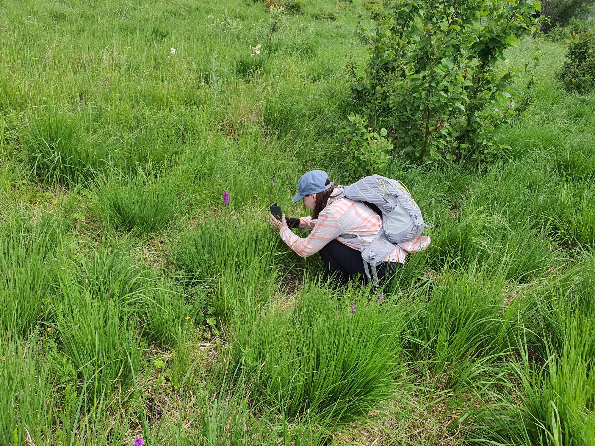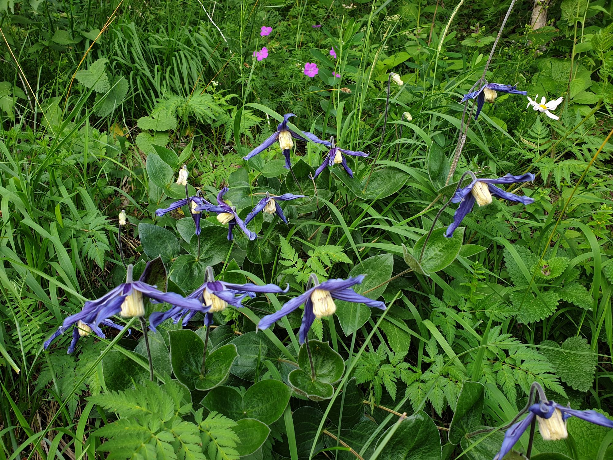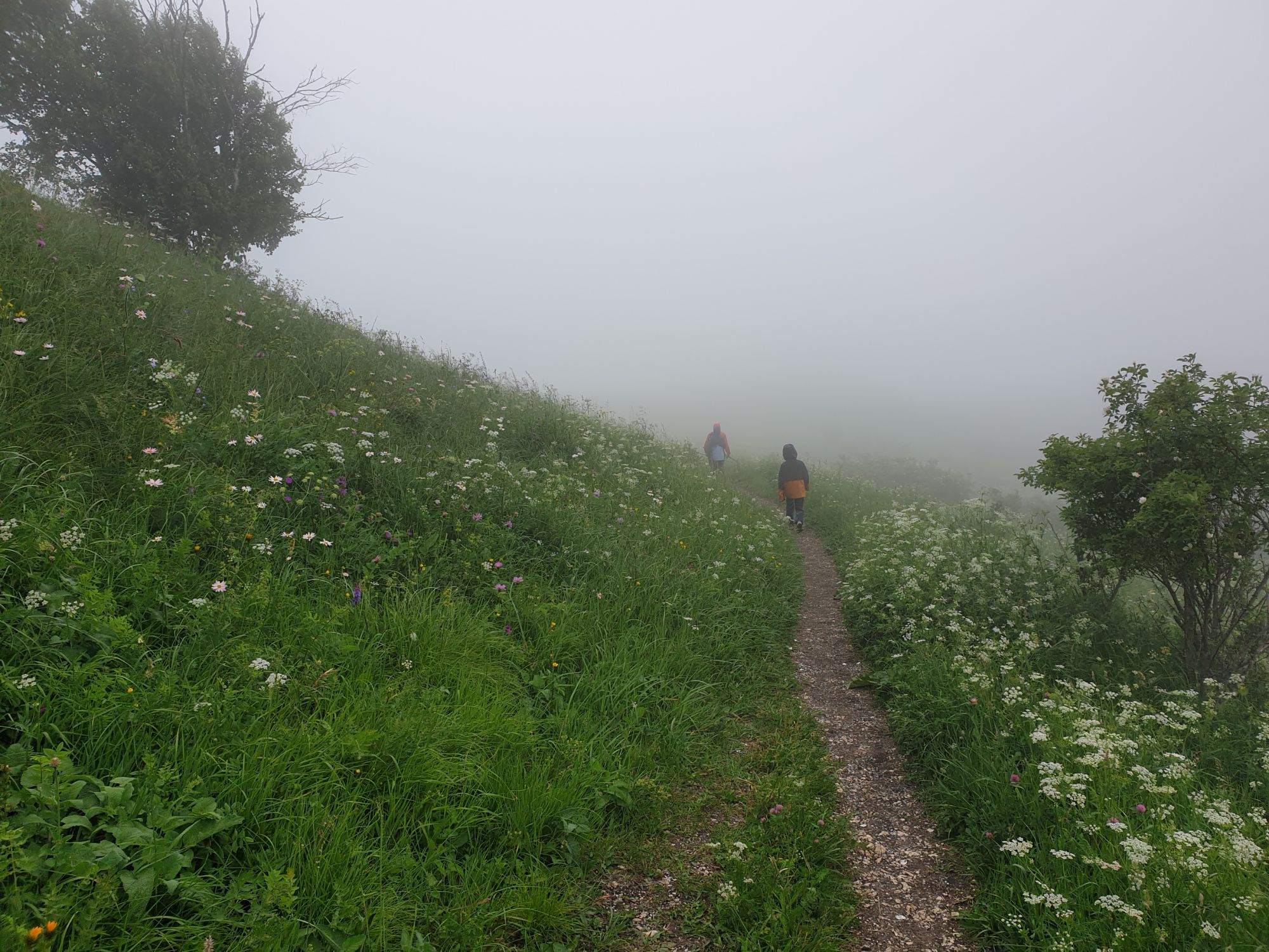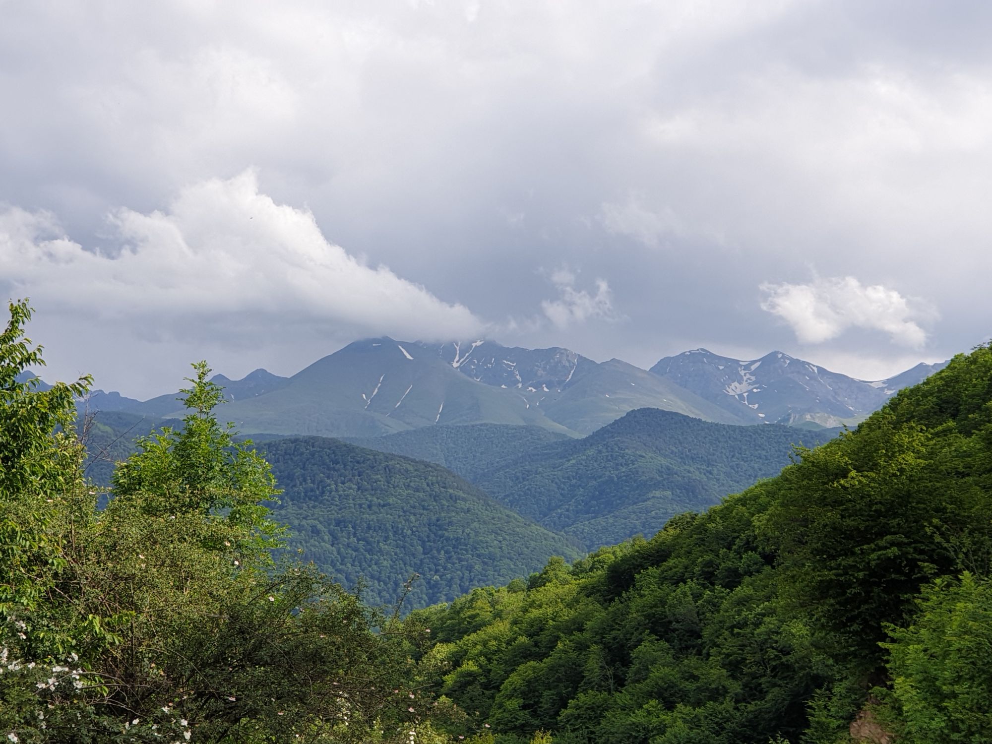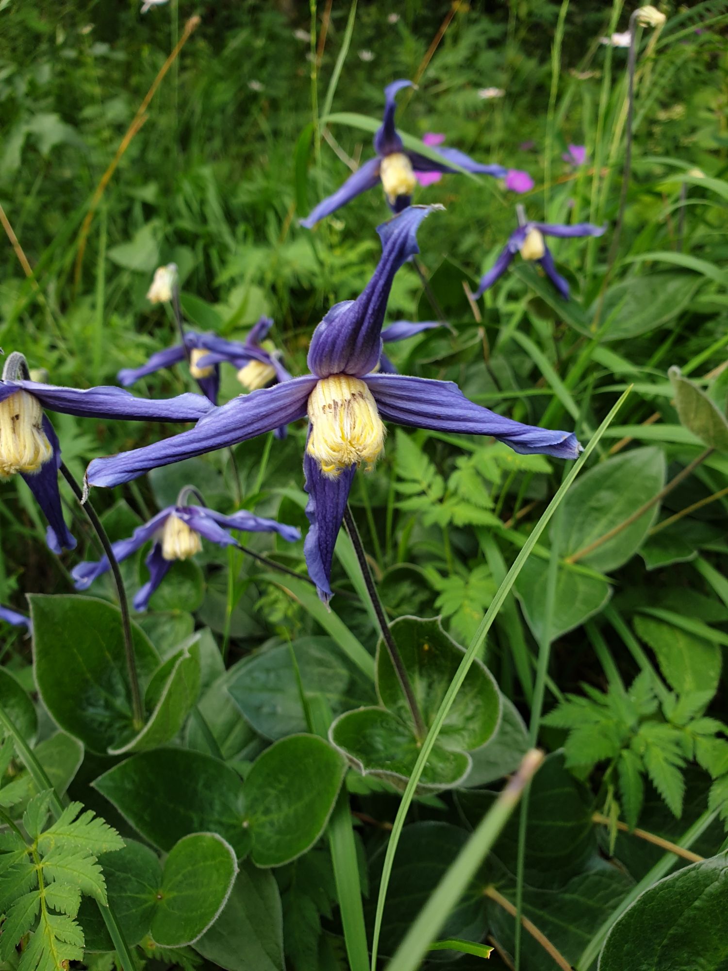 18 июля 2022 Вылазка вторая. Прогулка к Малому Джиналу. Это уже из Кисловодского парка. Гора повыше Малого седла и чуточку пониже Большого (1379м над уровнем моря, если не ошибаюсь). Но подальше от парка и города. Собственно вообще не понятно, к чему она ближе: к Пятигорску, Ессентукам или Кисловодску, но из Кисловодска дорога понятная, не особенно сложная и красивая. Да и мы в Кисловодске))) А еще, по отзывам, оттуда Эльбрус виден едва ли не от самого подножия! Нет, мы не надеялись увидеть Эльбрус, ибо облака, тучи и все тот же прогноз погоды. Но пройти новыми дорогами и немного дальше - почему бы и нет! Тем более это было в тот самый день, когда сорвалась поездка в Джилы-су. Мы поднялись до Малого седла той же дорогой, что и в первый раз. И в это раз подъем дался намного проще: организм таки действительно включился и заработал! Лён изумительно смотрится в горах! А тени от облаков на зеленых склонах сегодня были особенно интересными. Мы на минуточку заглянули на смотровую Малого седла и отправились дальше, мимо того лесочка, где в прошлый раз гуляли и нашли дикую лилию. Я думала, что "до новых мест" почти не буду фотографировать, но как бы не так! Взгляд моментально зацепился за "новые цветочки" : несколько дней назад они еще не цвели, мы тут все травки изучили Яндекс определил как одну из разновидностей дикого клематиса (ломоноса), но я в вопрос не углублялась, точно сказать не могу. А дальше, оставив слева дорогу на Большое седло, мы отправились к новым приключениям. Дорогу было не потерять, она тут одна и подозреваю, что по ней и на внедорожниках ездят, особенно к местам летнего выгона скота, поэтому оставалось только подниматься и спускаться, спускаться и подниматься, преодолевая одну горку за другой. И крутить головой на 360 градусов, конечно. Потому что виды тут невообразимые! В какой-то момент, обернувшись назад, мы увидели лишь макушку Большого седла, на которое с неделю назад забирались. И тот самый лес на соседней с Малым седлом горке. А потом, уже ближе к концу путешествия слева вдалеке открылся вид на пятиглавый Бештау. А слева неизменные зеленые просторы в направление Главного Кавказского хребта. По прямой до него рукой подать, но облака сегодня укрыли горизонт весьма надежно. И они же сделали фотографии особенно живыми и разнообразными) Вокруг цвели луга и это вызывало такой неизъяснимый восторг в душе! Бескрайний густой ковер из цветов, таких трогательных, ярких и нежных одновременно. Я уже старалсь сдерживаться и не снимать каждый цветок (иначе бы никуда не дошли) Но несколько "интересностей" пропустить не могла. Подальше и повыше стали довольно регулярно попадаться орхидеи: А вот этот нежный и миниатюрный красавец удивил. Яндекс определил его как дикий гладиолус! Представляете?! И я склонна ему верить (листья тоже сходятся) . Росточка в этом малыше см 20! Ну и из прочего немного: Преодолев очередной большой подъем мы увидели перед собой завораживающую картину, какую-то бескрайнюю во все стороны. Особенно густая трава и цветы, особенно живописный Бештау как завершение пейзажа с цветущим альпийским лугом, особенно бесконечное и живое море внизу слева и до горизонта... Захотелось остановить момент и погрузиться в него с головой. Запечатлеть его в памяти, в голове, поставить этот вид в рамку на самое видное место в мыслях и благодарить, благодарить,