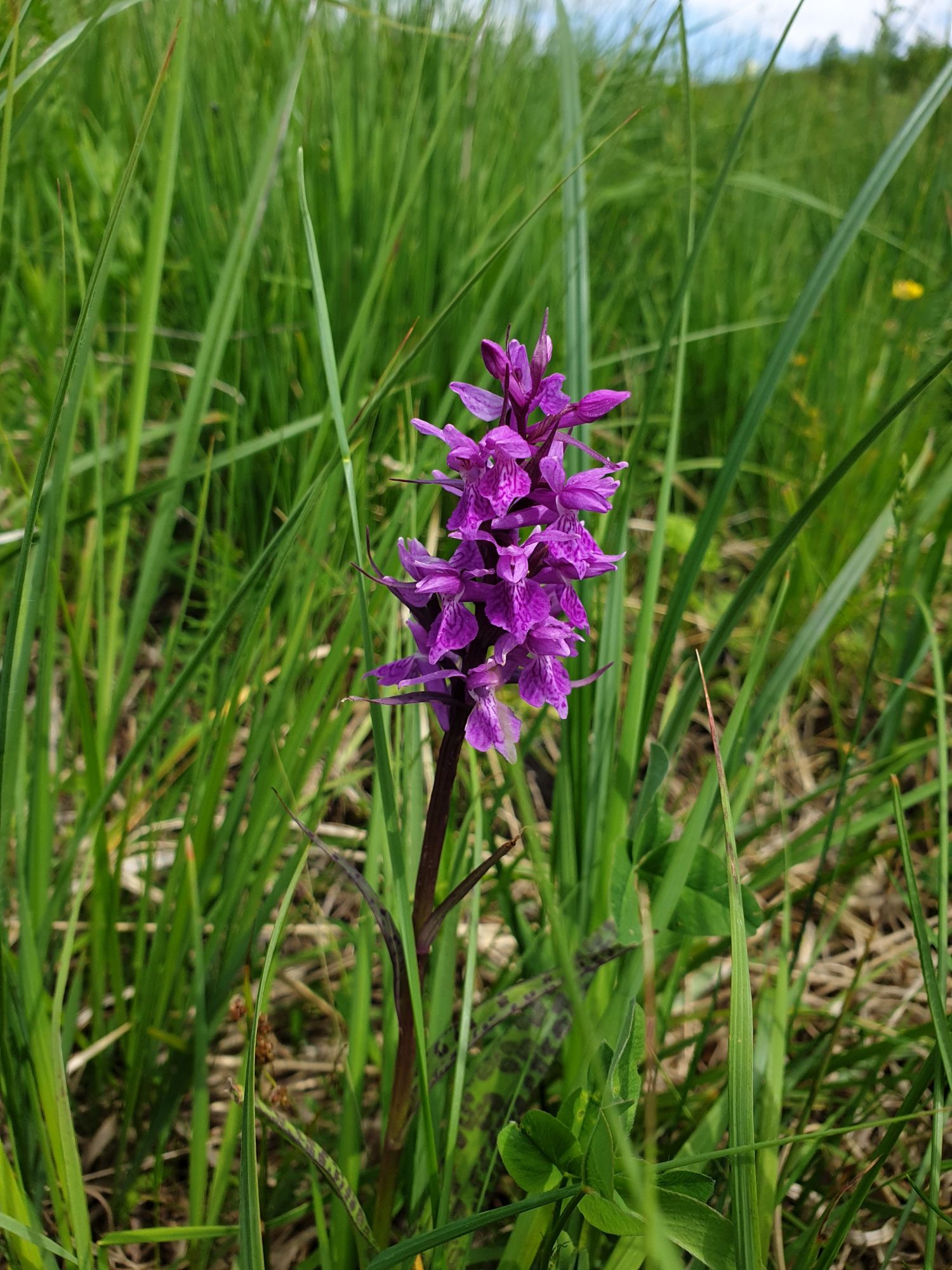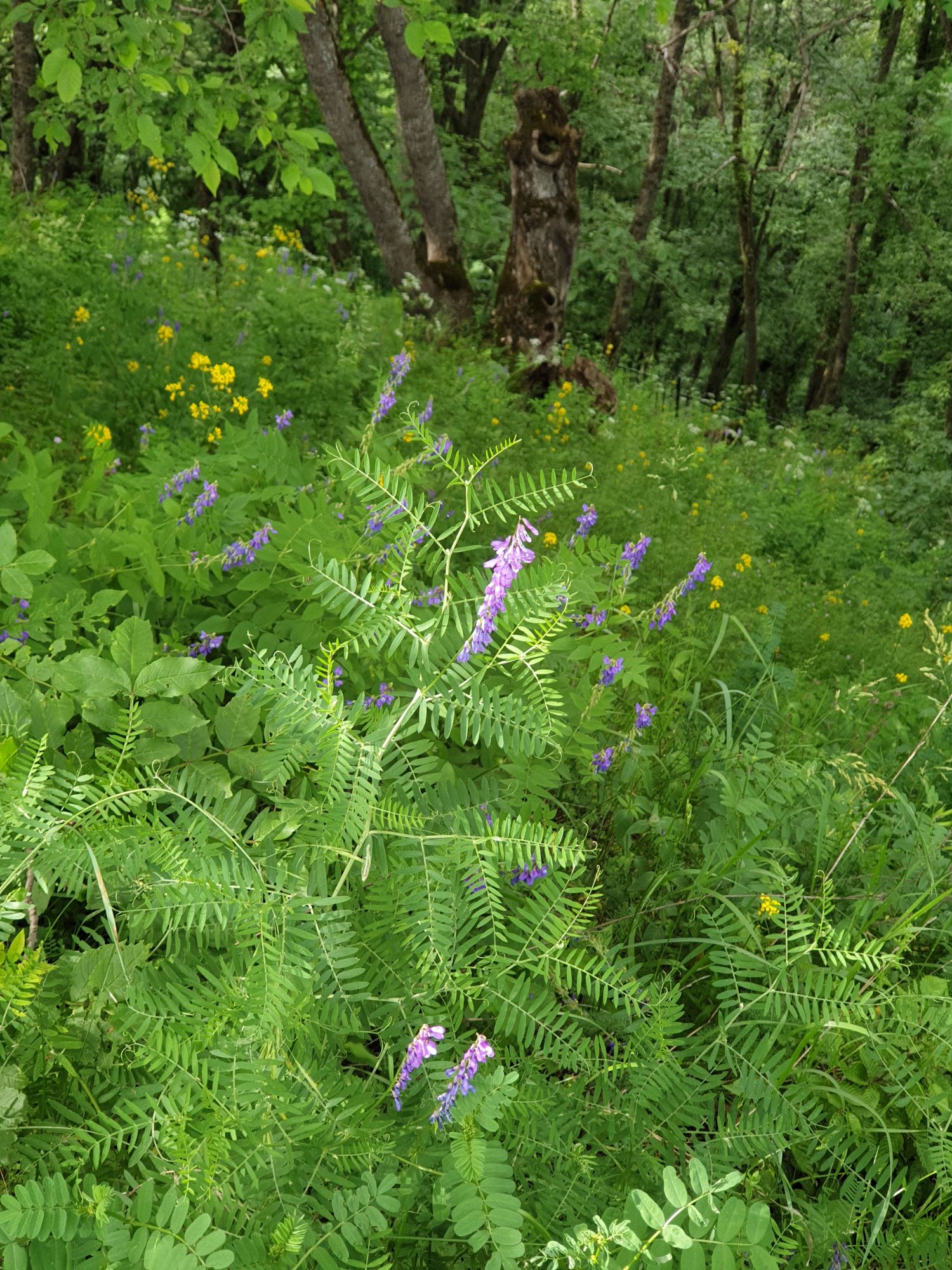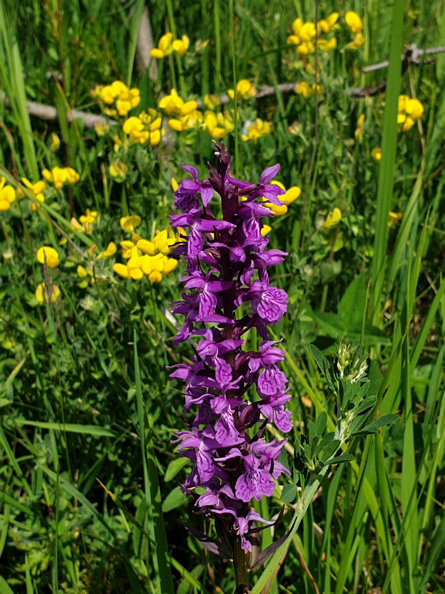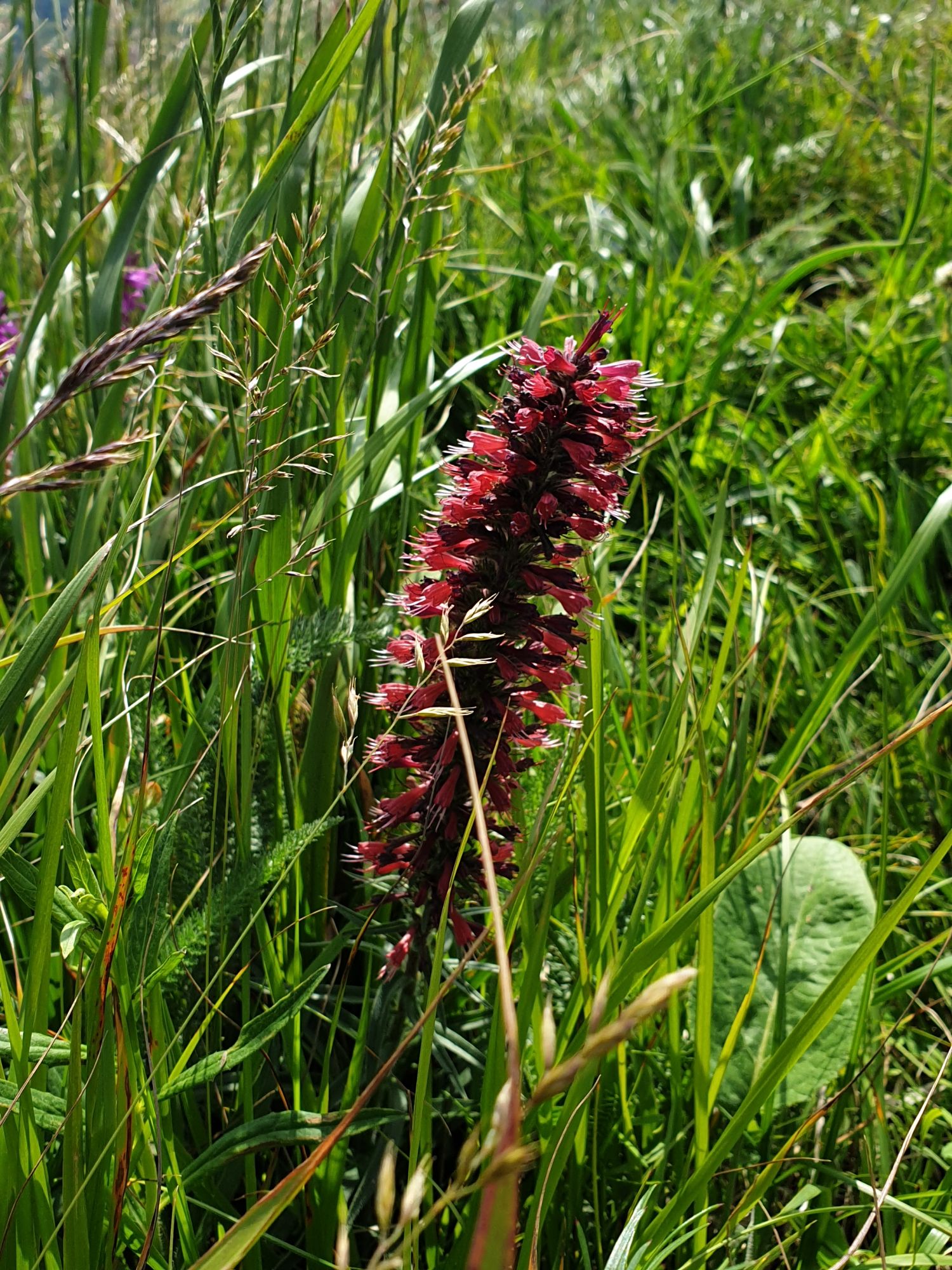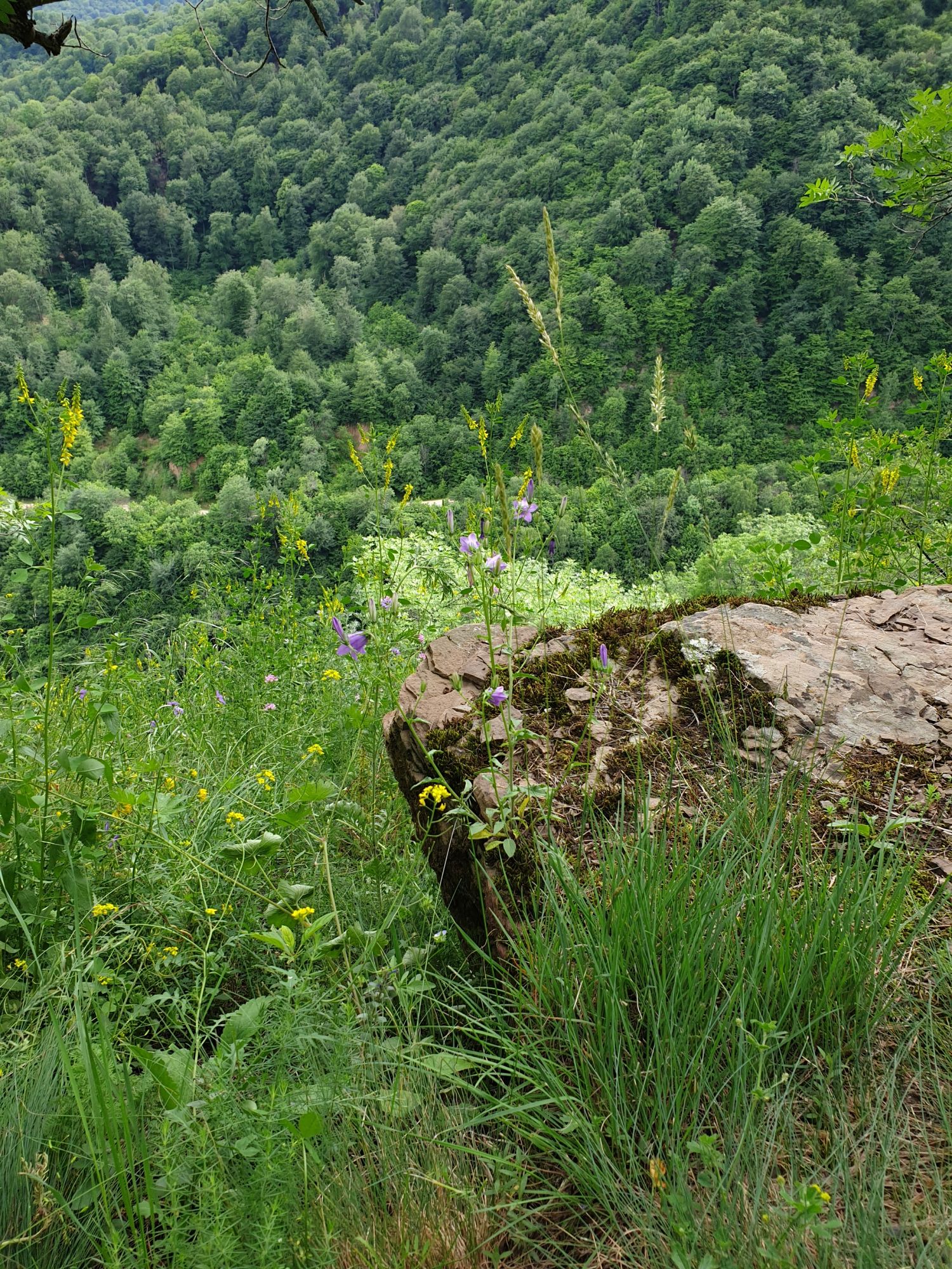 18 июля 2022 Вылазка вторая. Прогулка к Малому Джиналу. Это уже из Кисловодского парка. Гора повыше Малого седла и чуточку пониже Большого (1379м над уровнем моря, если не ошибаюсь). Но подальше от парка и города. Собственно вообще не понятно, к чему она ближе: к Пятигорску, Ессентукам или Кисловодску, но из Кисловодска дорога понятная, не особенно сложная и красивая. Да и мы в Кисловодске))) А еще, по отзывам, оттуда Эльбрус виден едва ли не от самого подножия! Нет, мы не надеялись увидеть Эльбрус, ибо облака, тучи и все тот же прогноз погоды. Но пройти новыми дорогами и немного дальше - почему бы и нет! Тем более это было в тот самый день, когда сорвалась поездка в Джилы-су. Мы поднялись до Малого седла той же дорогой, что и в первый раз. И в это раз подъем дался намного проще: организм таки действительно включился и заработал! Лён изумительно смотрится в горах! А тени от облаков на зеленых склонах сегодня были особенно интересными. Мы на минуточку заглянули на смотровую Малого седла и отправились дальше, мимо того лесочка, где в прошлый раз гуляли и нашли дикую лилию. Я думала, что "до новых мест" почти не буду фотографировать, но как бы не так! Взгляд моментально зацепился за "новые цветочки" : несколько дней назад они еще не цвели, мы тут все травки изучили Яндекс определил как одну из разновидностей дикого клематиса (ломоноса), но я в вопрос не углублялась, точно сказать не могу. А дальше, оставив слева дорогу на Большое седло, мы отправились к новым приключениям. Дорогу было не потерять, она тут одна и подозреваю, что по ней и на внедорожниках ездят, особенно к местам летнего выгона скота, поэтому оставалось только подниматься и спускаться, спускаться и подниматься, преодолевая одну горку за другой. И крутить головой на 360 градусов, конечно. Потому что виды тут невообразимые! В какой-то момент, обернувшись назад, мы увидели лишь макушку Большого седла, на которое с неделю назад забирались. И тот самый лес на соседней с Малым седлом горке. А потом, уже ближе к концу путешествия слева вдалеке открылся вид на пятиглавый Бештау. А слева неизменные зеленые просторы в направление Главного Кавказского хребта. По прямой до него рукой подать, но облака сегодня укрыли горизонт весьма надежно. И они же сделали фотографии особенно живыми и разнообразными) Вокруг цвели луга и это вызывало такой неизъяснимый восторг в душе! Бескрайний густой ковер из цветов, таких трогательных, ярких и нежных одновременно. Я уже старалсь сдерживаться и не снимать каждый цветок (иначе бы никуда не дошли) Но несколько "интересностей" пропустить не могла. Подальше и повыше стали довольно регулярно попадаться орхидеи: А вот этот нежный и миниатюрный красавец удивил. Яндекс определил его как дикий гладиолус! Представляете?! И я склонна ему верить (листья тоже сходятся) . Росточка в этом малыше см 20! Ну и из прочего немного: Преодолев очередной большой подъем мы увидели перед собой завораживающую картину, какую-то бескрайнюю во все стороны. Особенно густая трава и цветы, особенно живописный Бештау как завершение пейзажа с цветущим альпийским лугом, особенно бесконечное и живое море внизу слева и до горизонта... Захотелось остановить момент и погрузиться в него с головой. Запечатлеть его в памяти, в голове, поставить этот вид в рамку на самое видное место в мыслях и благодарить, благодарить,