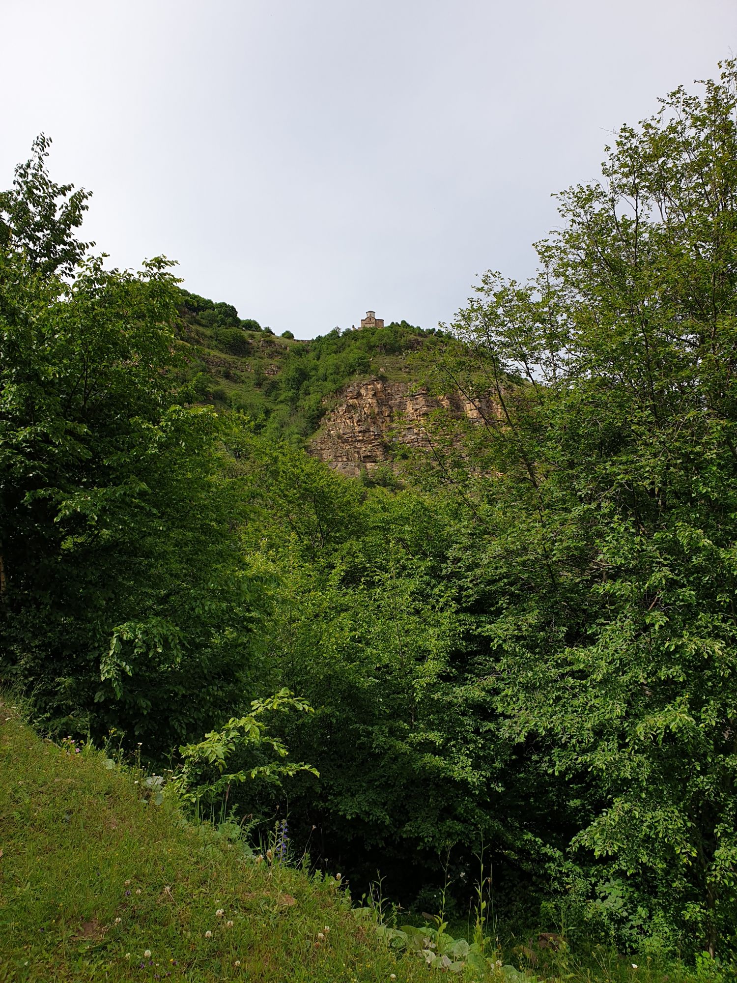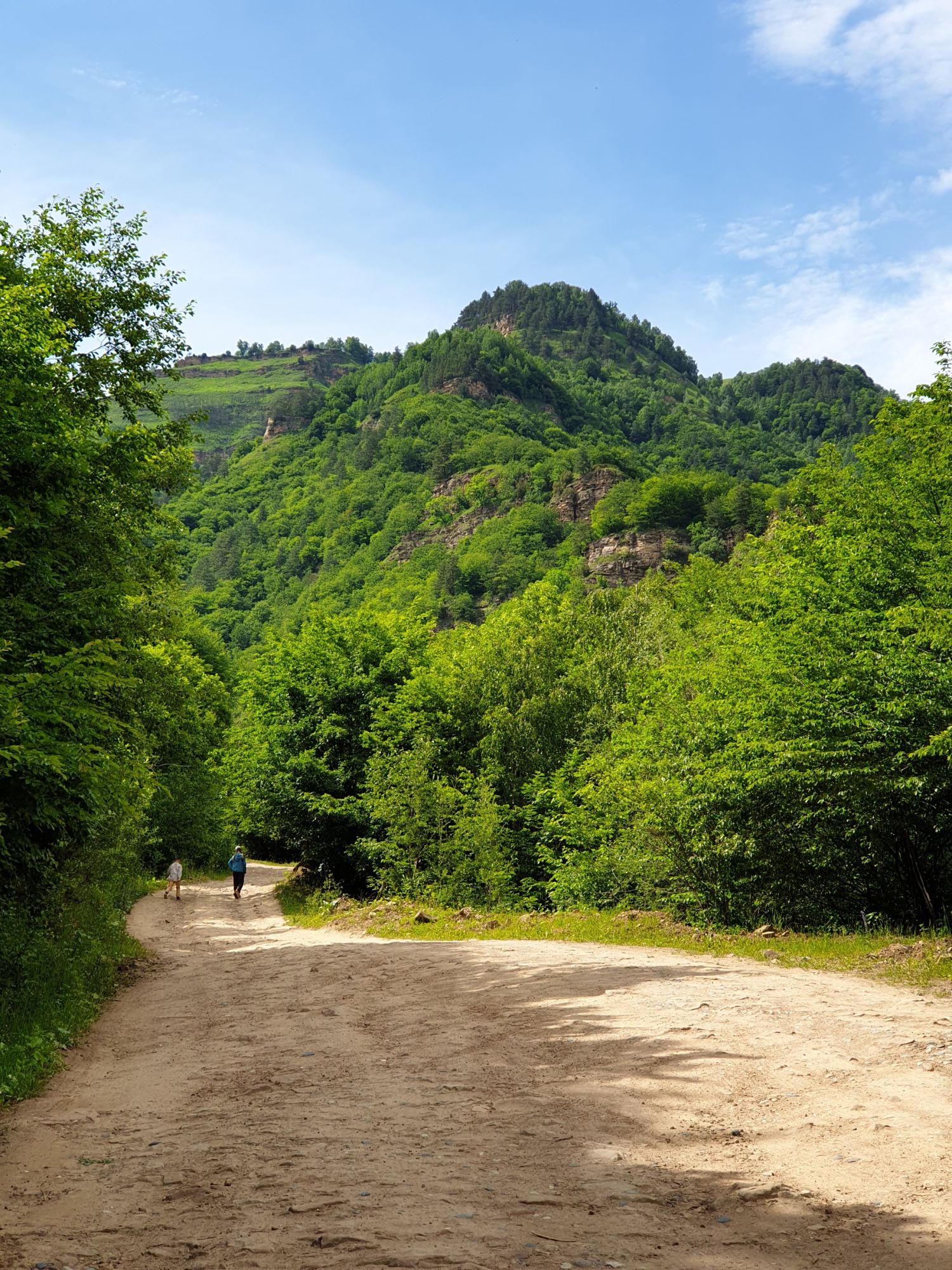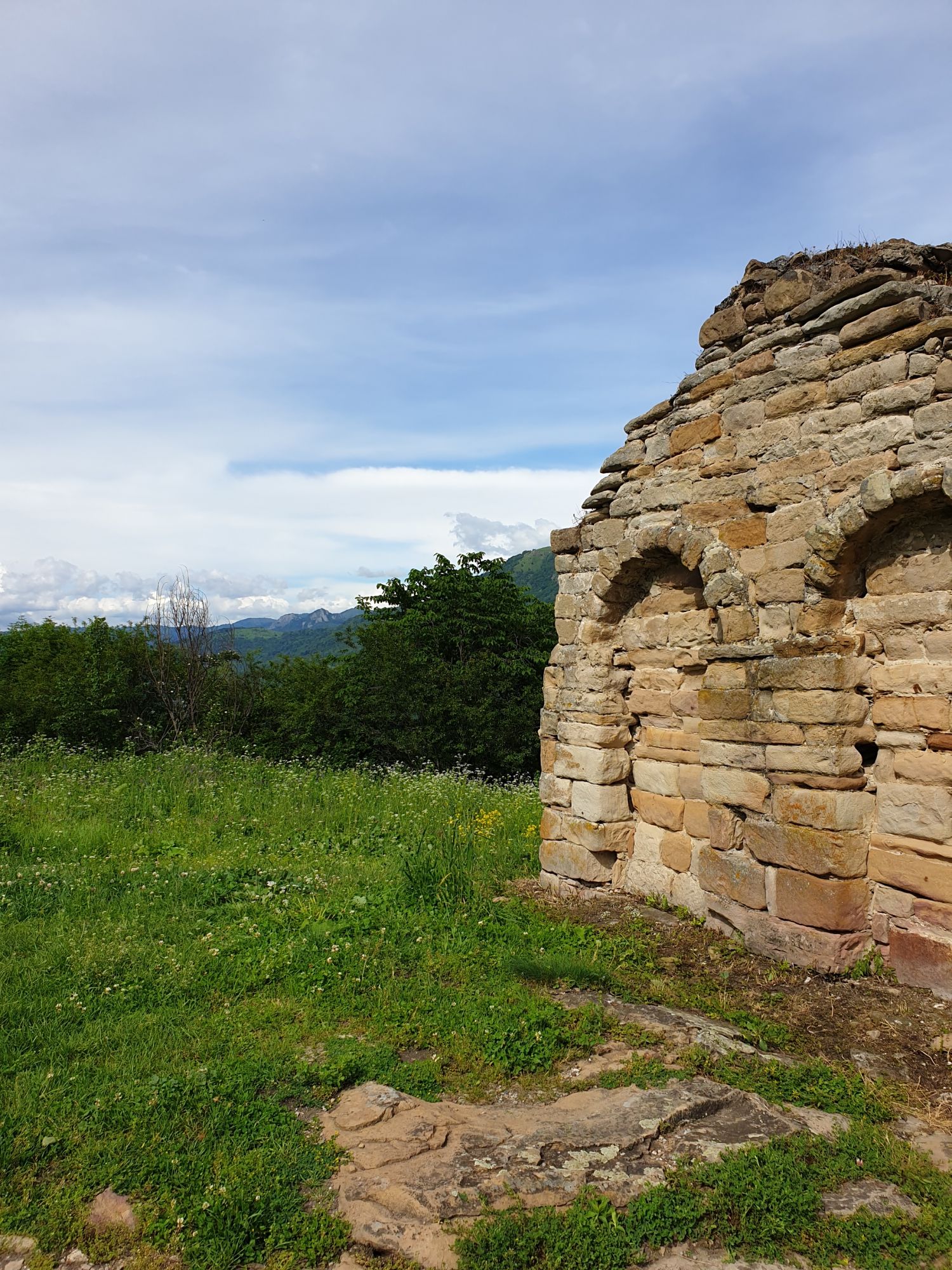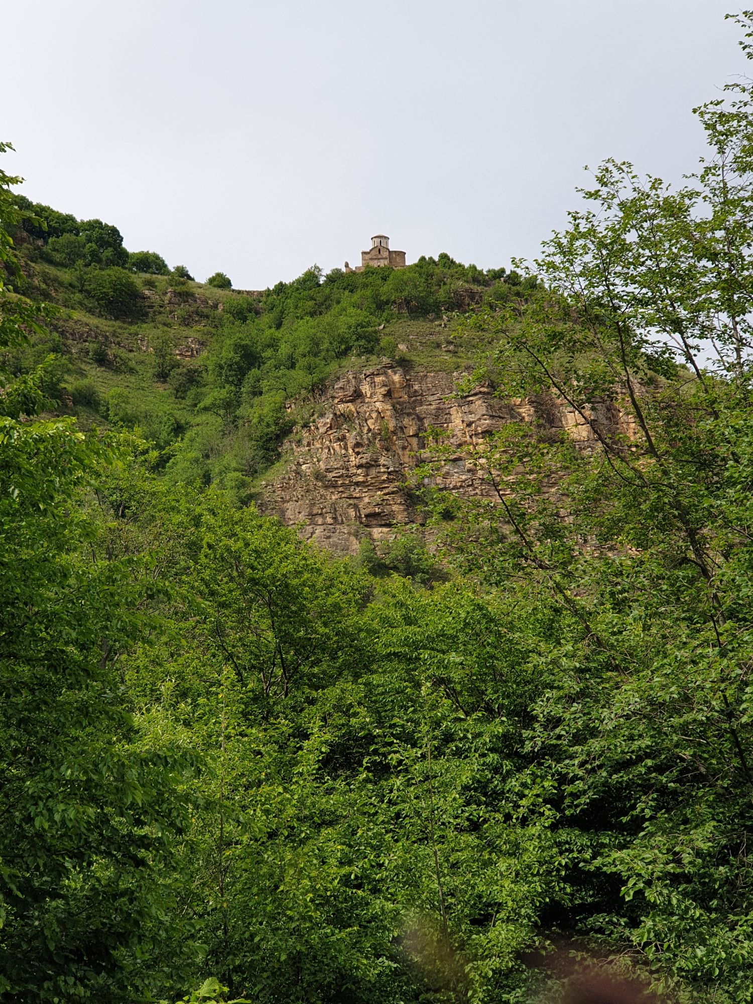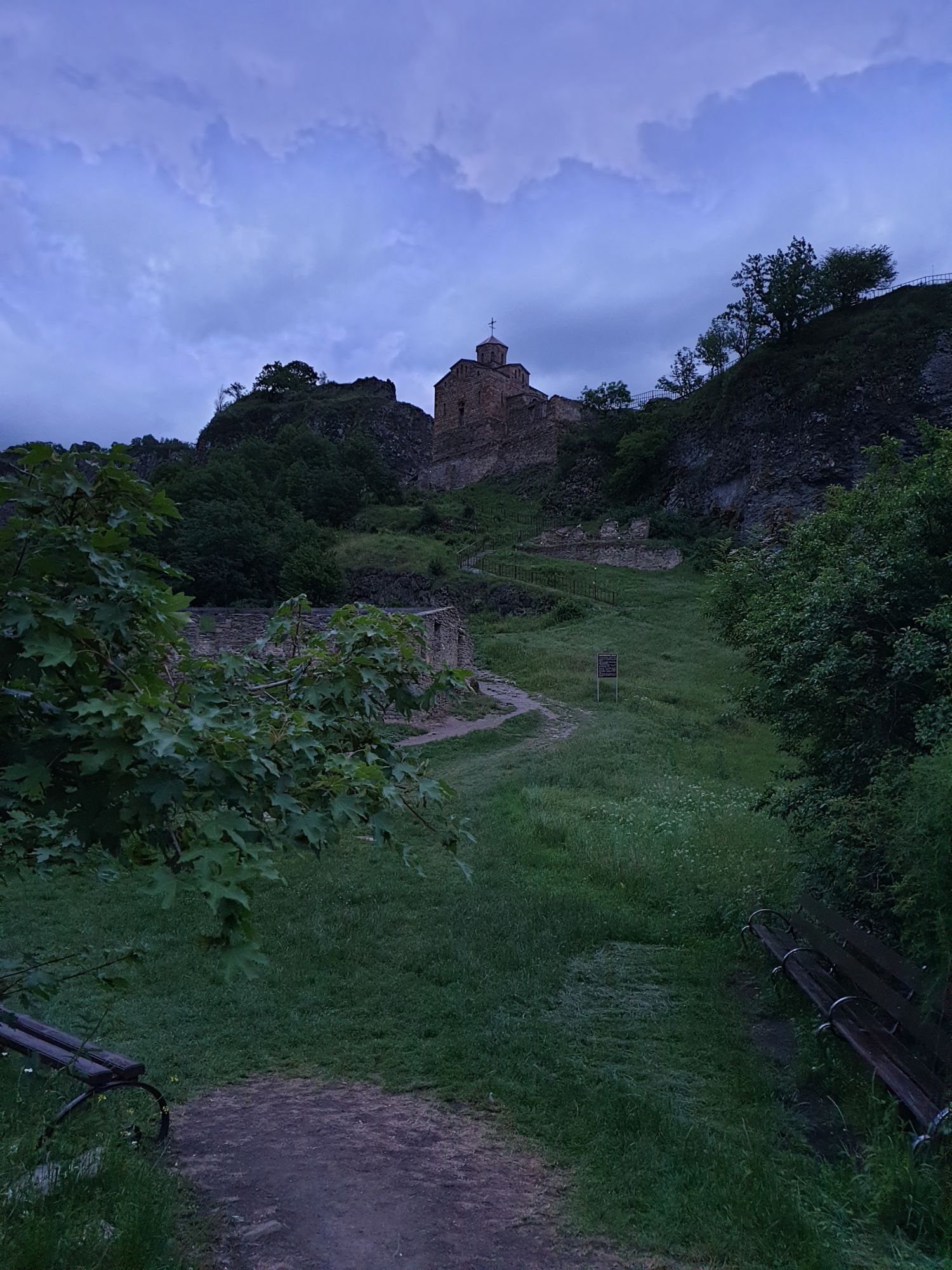 19 июля 2022 И вылазка третья и заключительная. В самом конце отпуска мы решили еще раз наведаться Карачаево-Черкессию. Отчасти потому, что после фееричного похода на Малый Джинал перебивать впечатления чем-то аналогичным не хотелось, отчасти потому, что это было единственное место из умеренно доступных, где яндекс не обещал дождя весь день, отчасти потому что муж и дети хотели заехать на Карачаевский пивзавод и увезти с собой из отпуска пару ящиков их потрясающего лимонада и (уже только муж) "немного еще чего-нибудь" В общем, отправились мы той же дорогой, что и в прошлый раз. И минут на десять нам даже Эльбрус показался, потом быстро скрывшийся в облаках. После успешного посещения магазинчика при заводе, первой нашей целью стал поселок Нижняя Теберда, из которого мы намеревались пешком подняться к Сентинскому храму, расположенному высоко на горе. Храм христианский, построоен в X веке, относится к расцвету Аланского государства, которое как раз примерно в это время приняло христианство по Византийскому образцу. Собственно этот храм и совсем чуть более поздний Шоанинский, что находится относительно недалеко и тоже в долине реки Теберда - одни из немногих примеров сохранившихся христианских храмов столько раннего периода постройки. Если вдуматься: ведь Сентинский храм построен даже раньше, чем Русь официально приняла христианство! Сейчас этот храм не действует и даже не реставрируется, хотя таблички про памятник таки появились. Но, как вы понимаете, для нас главным было не это. А природа. Красавица Теберда с голубой водой, я не устану признаваться тебе в своей любви! Мы предполагали, что подъем будет непрост и долог. Но на деле вышло, что он был приятен и закончился неожиданно быстро. Только вначале пришлось попотеть немного. Вот нам туда, на ту гору... Дорога в целом проезжаема. Вероятно даже для высоких седанов в сухую погоду при умелом вождении. Но камнепады и обвалы тут, явно, случаются постоянно, это надо учитывать. Но мы ж как обычно, хотим погулять)) И вот он храм. Я очень впечатлена. Он прост, но совершенен. Не говоря уже про то, что виды тут открываются на поселок, долину и заснеженные горы Тебердинского заповедника впечатляющие. А это я повыше забралась)) : Нам посчастливилось побывать тут в полном одиночестве. И я очень рада, что мы выбрали в качестве цели поездки и пешей прогулки именно это место. Не зря его многие рекомендуют к посещению. Красиво, интересно и устать не успеваешь)) На обратном пути уже шли, расслабившись и выискивая по лесу землянику. Иногда и не только ягода попадалась)) Потом мы заехали в Карачаевск поесть. А пока наслаждались вкусной едой, думали, куда мы сегодня еще можем успеть. Юля в своей теме рассказывала про сырные пещеры, может к ним? Или все таки к Шоанинскому храму? Дети, конечно, за пещеры. Ну что ж, попробуем их отыскать. Свернули в сторону перевала Гум-баши и почти сразу пошел дождик. И время около шести часов вечера. Что-то мне подсказывает, что в таких условиях нам не очень хотелось их найти (точнее нам с мужем лезть по мокрым скалам вверх и снова ходить по дождю), а потому мы и не нашли)))) Быстренько уговорили детей не расстраиваться и муж решительно поставил точку в навигаторе на Шоанинский храм. Он тоже на скале, но уже над огромным селом им.Коста Хетагурова. Одно "но". Подняться к нему пешком мы уже не успева
