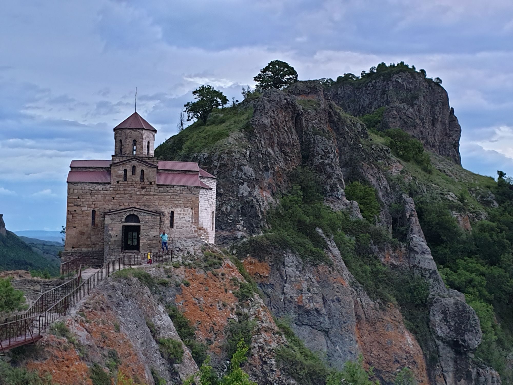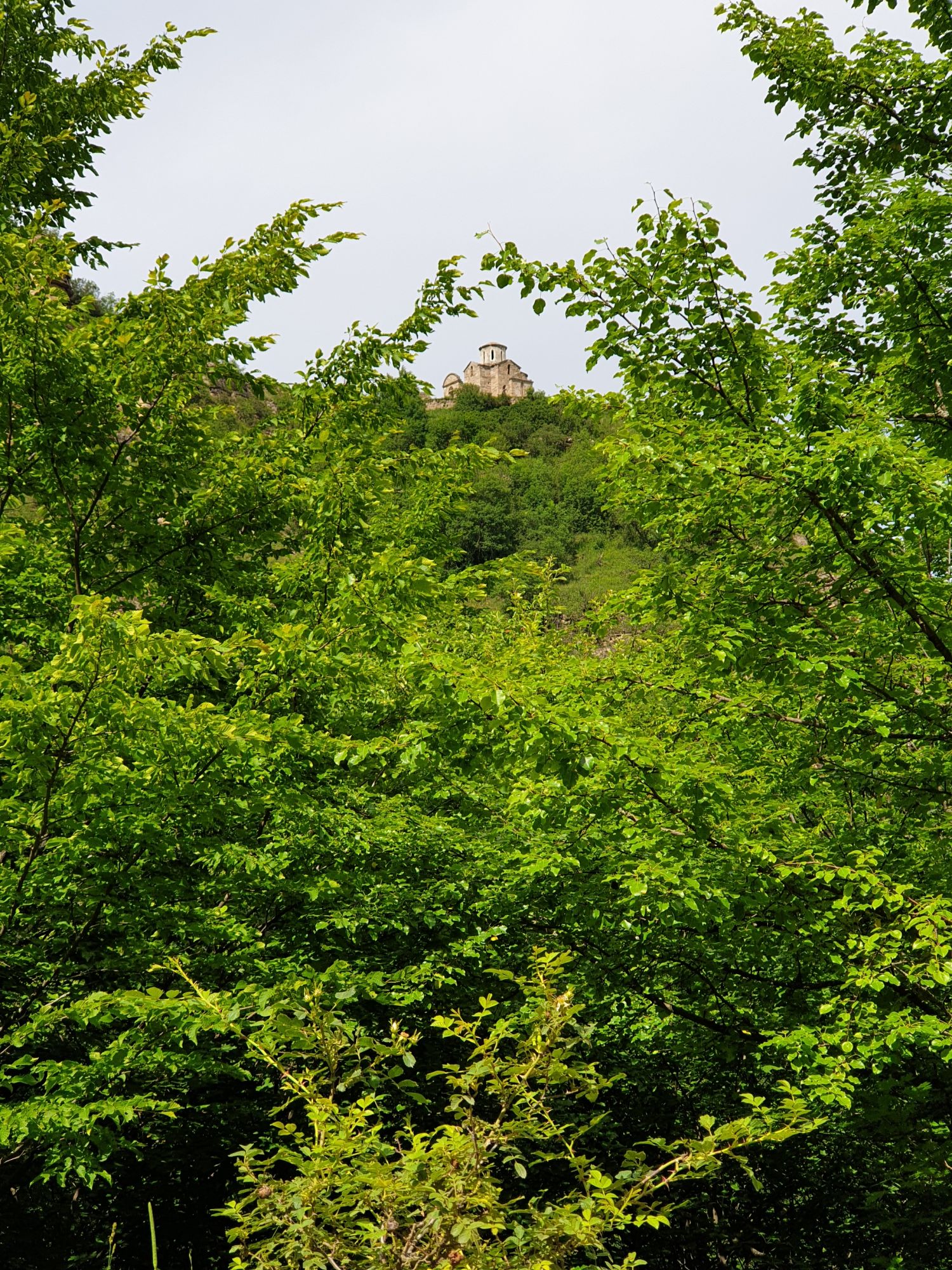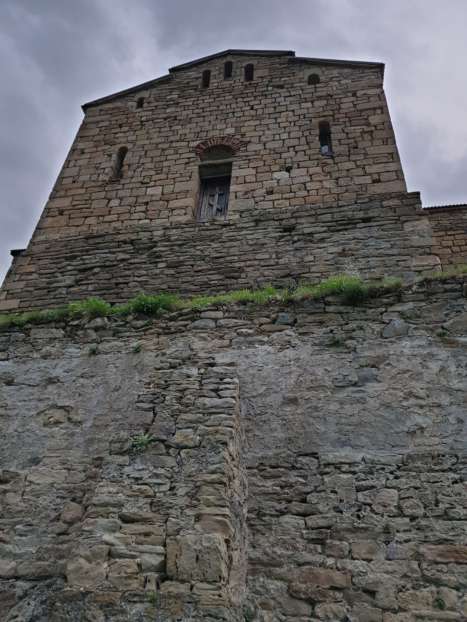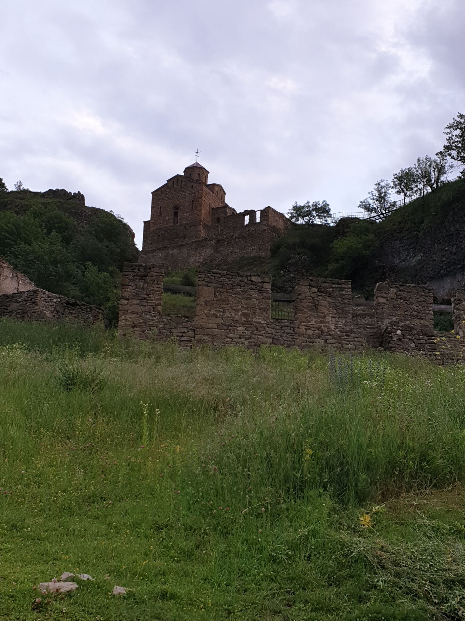 19 июля 2022 И вылазка третья и заключительная. В самом конце отпуска мы решили еще раз наведаться Карачаево-Черкессию. Отчасти потому, что после фееричного похода на Малый Джинал перебивать впечатления чем-то аналогичным не хотелось, отчасти потому, что это было единственное место из умеренно доступных, где яндекс не обещал дождя весь день, отчасти потому что муж и дети хотели заехать на Карачаевский пивзавод и увезти с собой из отпуска пару ящиков их потрясающего лимонада и (уже только муж) "немного еще чего-нибудь" В общем, отправились мы той же дорогой, что и в прошлый раз. И минут на десять нам даже Эльбрус показался, потом быстро скрывшийся в облаках. После успешного посещения магазинчика при заводе, первой нашей целью стал поселок Нижняя Теберда, из которого мы намеревались пешком подняться к Сентинскому храму, расположенному высоко на горе. Храм христианский, построоен в X веке, относится к расцвету Аланского государства, которое как раз примерно в это время приняло христианство по Византийскому образцу. Собственно этот храм и совсем чуть более поздний Шоанинский, что находится относительно недалеко и тоже в долине реки Теберда - одни из немногих примеров сохранившихся христианских храмов столько раннего периода постройки. Если вдуматься: ведь Сентинский храм построен даже раньше, чем Русь официально приняла христианство! Сейчас этот храм не действует и даже не реставрируется, хотя таблички про памятник таки появились. Но, как вы понимаете, для нас главным было не это. А природа. Красавица Теберда с голубой водой, я не устану признаваться тебе в своей любви! Мы предполагали, что подъем будет непрост и долог. Но на деле вышло, что он был приятен и закончился неожиданно быстро. Только вначале пришлось попотеть немного. Вот нам туда, на ту гору... Дорога в целом проезжаема. Вероятно даже для высоких седанов в сухую погоду при умелом вождении. Но камнепады и обвалы тут, явно, случаются постоянно, это надо учитывать. Но мы ж как обычно, хотим погулять)) И вот он храм. Я очень впечатлена. Он прост, но совершенен. Не говоря уже про то, что виды тут открываются на поселок, долину и заснеженные горы Тебердинского заповедника впечатляющие. А это я повыше забралась)) : Нам посчастливилось побывать тут в полном одиночестве. И я очень рада, что мы выбрали в качестве цели поездки и пешей прогулки именно это место. Не зря его многие рекомендуют к посещению. Красиво, интересно и устать не успеваешь)) На обратном пути уже шли, расслабившись и выискивая по лесу землянику. Иногда и не только ягода попадалась)) Потом мы заехали в Карачаевск поесть. А пока наслаждались вкусной едой, думали, куда мы сегодня еще можем успеть. Юля в своей теме рассказывала про сырные пещеры, может к ним? Или все таки к Шоанинскому храму? Дети, конечно, за пещеры. Ну что ж, попробуем их отыскать. Свернули в сторону перевала Гум-баши и почти сразу пошел дождик. И время около шести часов вечера. Что-то мне подсказывает, что в таких условиях нам не очень хотелось их найти (точнее нам с мужем лезть по мокрым скалам вверх и снова ходить по дождю), а потому мы и не нашли)))) Быстренько уговорили детей не расстраиваться и муж решительно поставил точку в навигаторе на Шоанинский храм. Он тоже на скале, но уже над огромным селом им.Коста Хетагурова. Одно "но". Подняться к нему пешком мы уже не успева