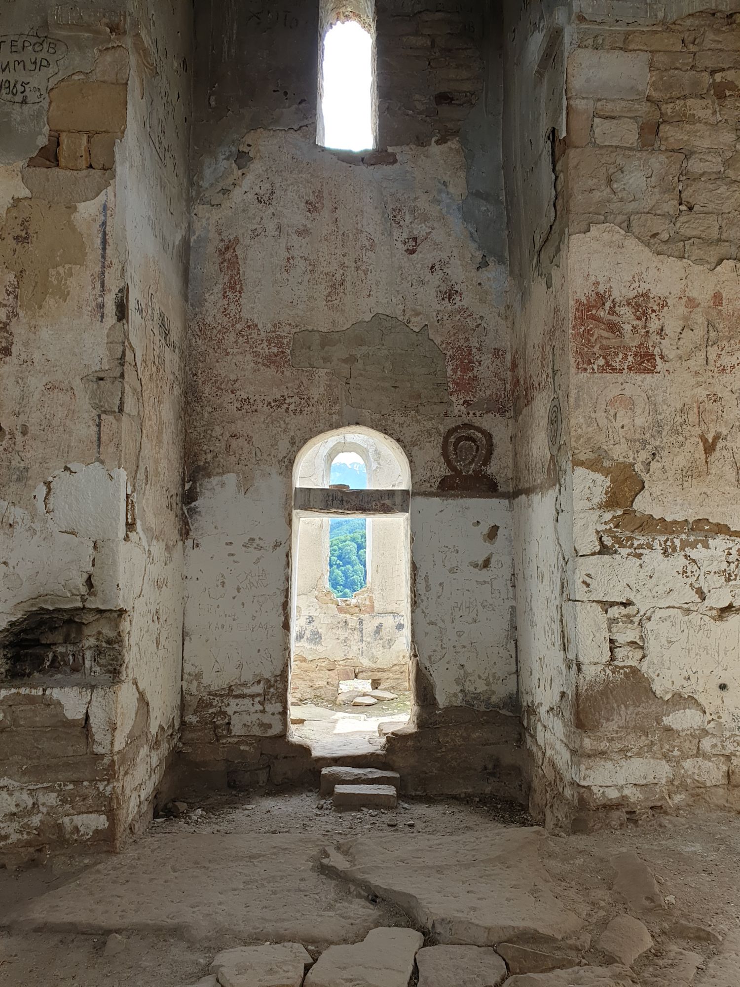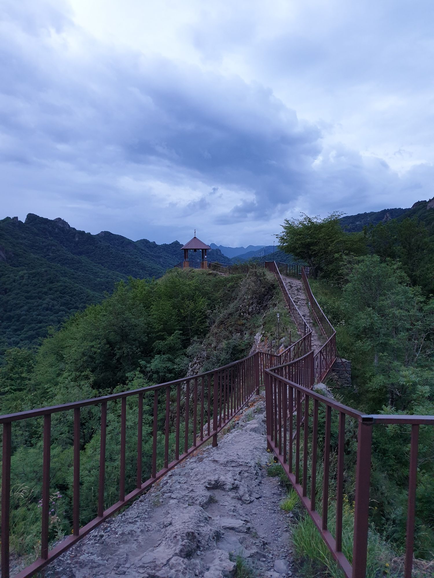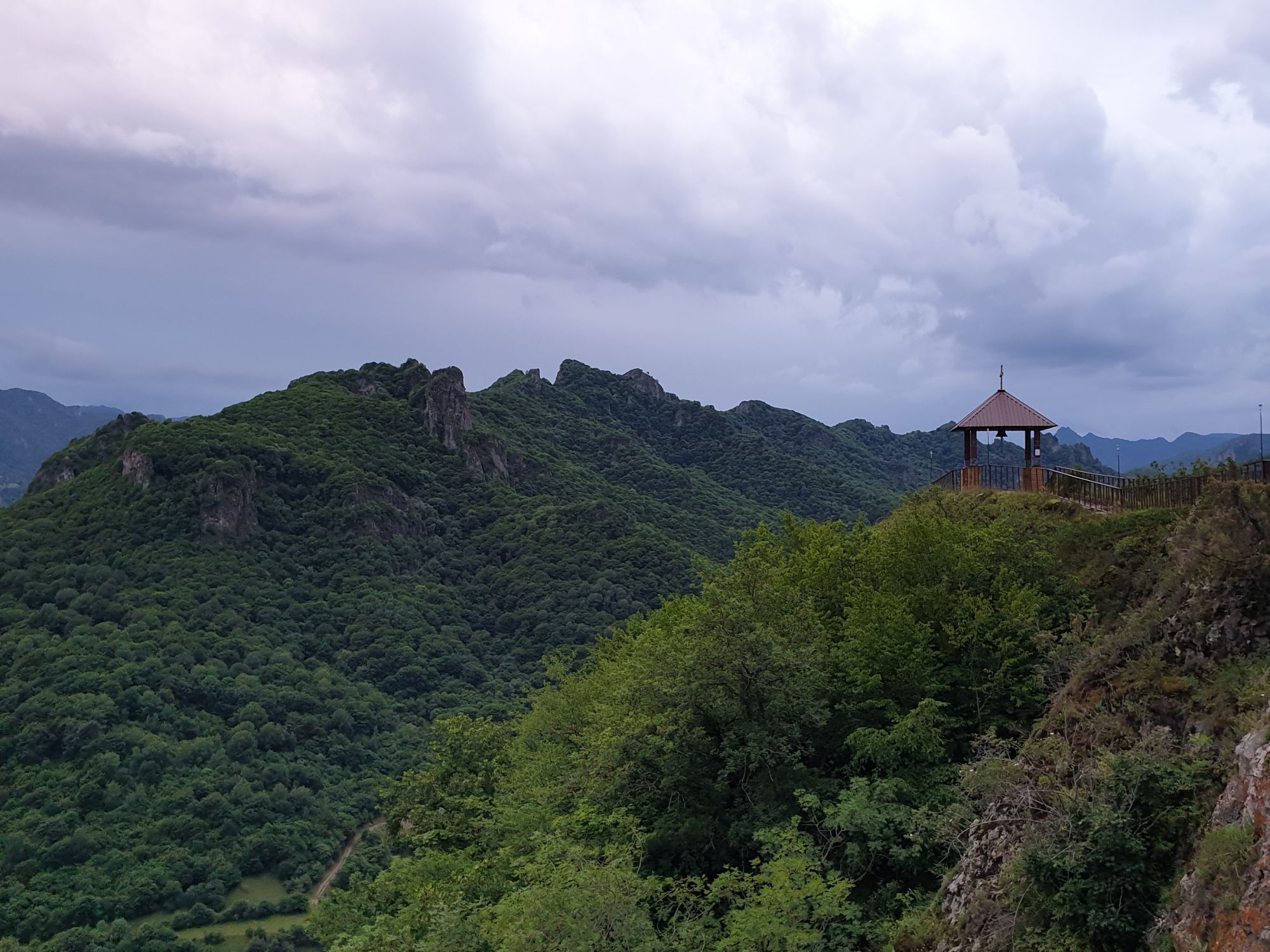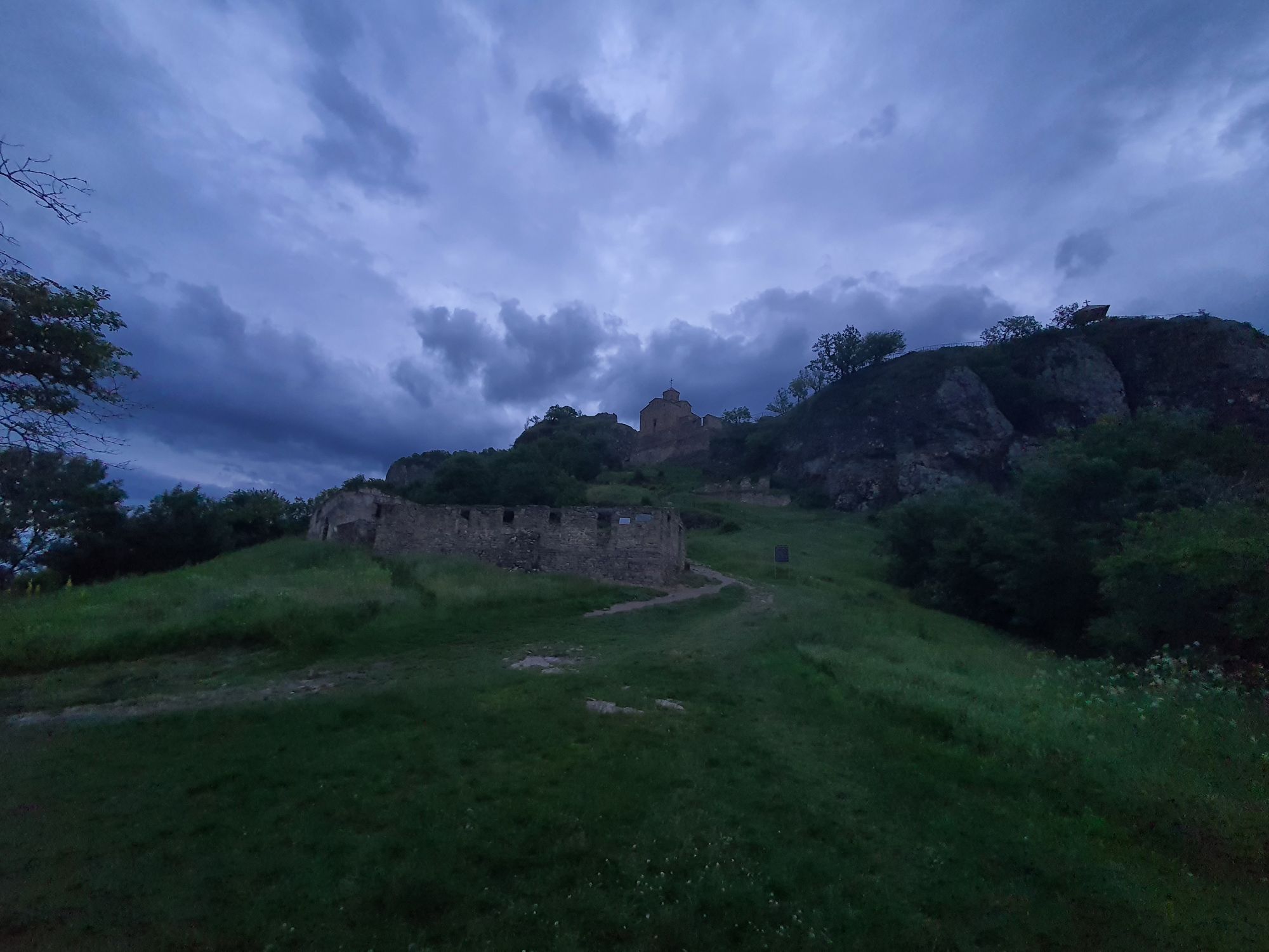 19 июля 2022 И вылазка третья и заключительная. В самом конце отпуска мы решили еще раз наведаться Карачаево-Черкессию. Отчасти потому, что после фееричного похода на Малый Джинал перебивать впечатления чем-то аналогичным не хотелось, отчасти потому, что это было единственное место из умеренно доступных, где яндекс не обещал дождя весь день, отчасти потому что муж и дети хотели заехать на Карачаевский пивзавод и увезти с собой из отпуска пару ящиков их потрясающего лимонада и (уже только муж) "немного еще чего-нибудь" В общем, отправились мы той же дорогой, что и в прошлый раз. И минут на десять нам даже Эльбрус показался, потом быстро скрывшийся в облаках. После успешного посещения магазинчика при заводе, первой нашей целью стал поселок Нижняя Теберда, из которого мы намеревались пешком подняться к Сентинскому храму, расположенному высоко на горе. Храм христианский, построоен в X веке, относится к расцвету Аланского государства, которое как раз примерно в это время приняло христианство по Византийскому образцу. Собственно этот храм и совсем чуть более поздний Шоанинский, что находится относительно недалеко и тоже в долине реки Теберда - одни из немногих примеров сохранившихся христианских храмов столько раннего периода постройки. Если вдуматься: ведь Сентинский храм построен даже раньше, чем Русь официально приняла христианство! Сейчас этот храм не действует и даже не реставрируется, хотя таблички про памятник таки появились. Но, как вы понимаете, для нас главным было не это. А природа. Красавица Теберда с голубой водой, я не устану признаваться тебе в своей любви! Мы предполагали, что подъем будет непрост и долог. Но на деле вышло, что он был приятен и закончился неожиданно быстро. Только вначале пришлось попотеть немного. Вот нам туда, на ту гору... Дорога в целом проезжаема. Вероятно даже для высоких седанов в сухую погоду при умелом вождении. Но камнепады и обвалы тут, явно, случаются постоянно, это надо учитывать. Но мы ж как обычно, хотим погулять)) И вот он храм. Я очень впечатлена. Он прост, но совершенен. Не говоря уже про то, что виды тут открываются на поселок, долину и заснеженные горы Тебердинского заповедника впечатляющие. А это я повыше забралась)) : Нам посчастливилось побывать тут в полном одиночестве. И я очень рада, что мы выбрали в качестве цели поездки и пешей прогулки именно это место. Не зря его многие рекомендуют к посещению. Красиво, интересно и устать не успеваешь)) На обратном пути уже шли, расслабившись и выискивая по лесу землянику. Иногда и не только ягода попадалась)) Потом мы заехали в Карачаевск поесть. А пока наслаждались вкусной едой, думали, куда мы сегодня еще можем успеть. Юля в своей теме рассказывала про сырные пещеры, может к ним? Или все таки к Шоанинскому храму? Дети, конечно, за пещеры. Ну что ж, попробуем их отыскать. Свернули в сторону перевала Гум-баши и почти сразу пошел дождик. И время около шести часов вечера. Что-то мне подсказывает, что в таких условиях нам не очень хотелось их найти (точнее нам с мужем лезть по мокрым скалам вверх и снова ходить по дождю), а потому мы и не нашли)))) Быстренько уговорили детей не расстраиваться и муж решительно поставил точку в навигаторе на Шоанинский храм. Он тоже на скале, но уже над огромным селом им.Коста Хетагурова. Одно "но". Подняться к нему пешком мы уже не успева