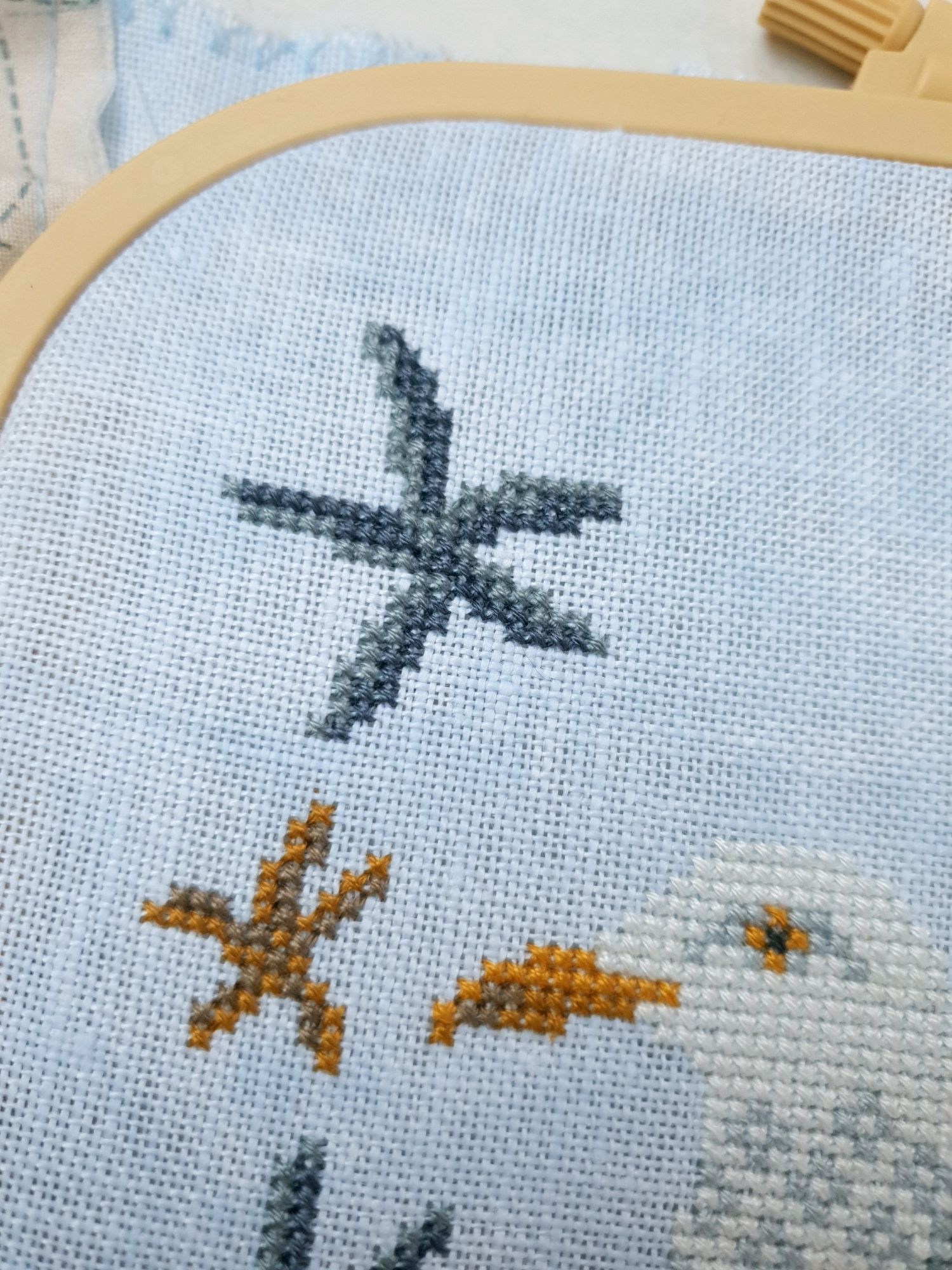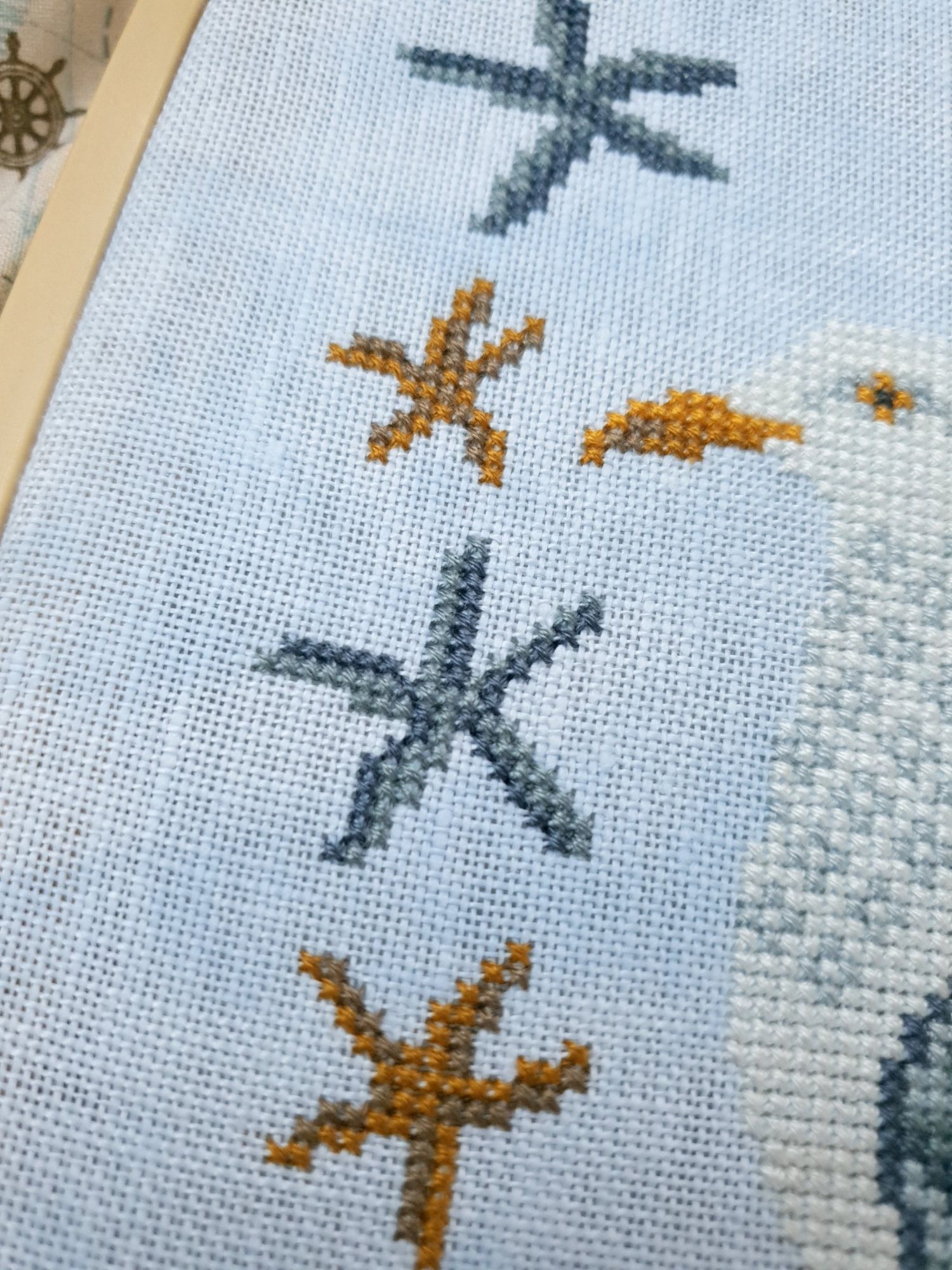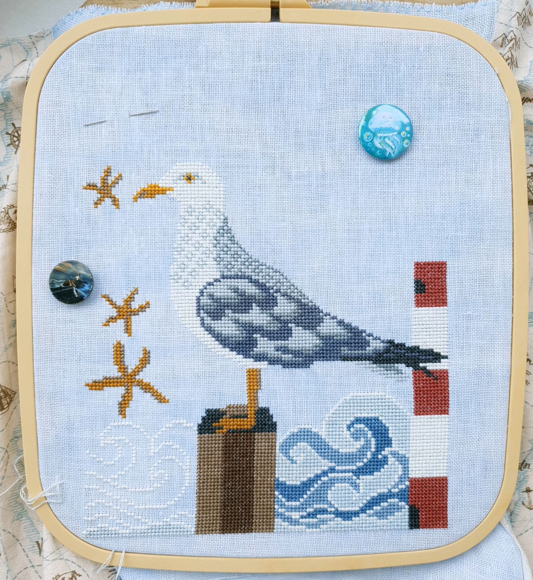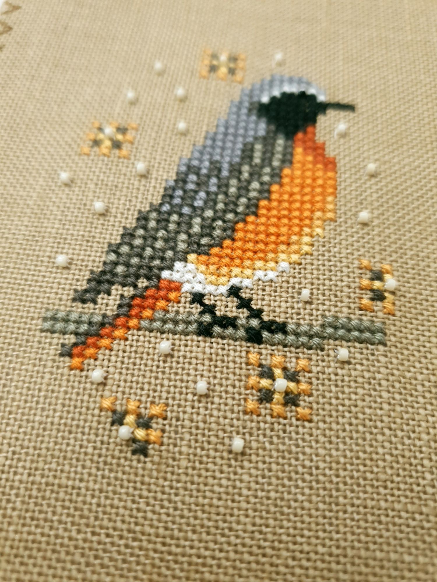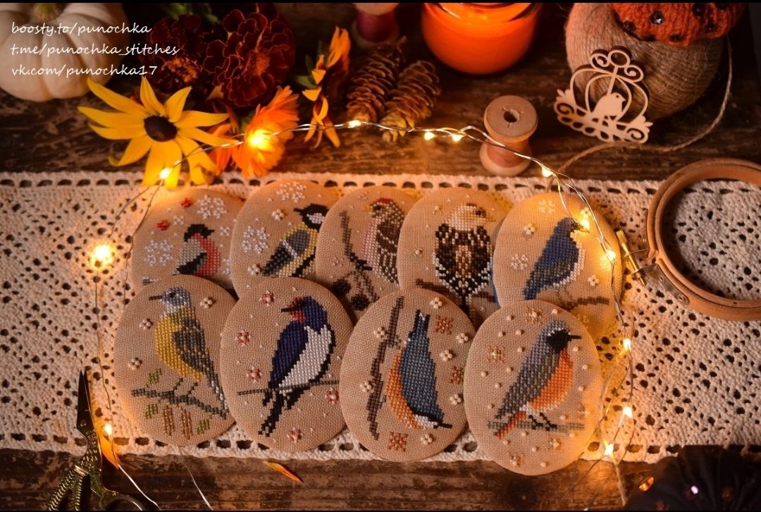 28 сентября 2022 Всем привет! Сегодня на повестке дня процессы. Много процессов. И осень - куда ж без нее?.. Час идет за часом, за вечером следует утро, день сменяет день. И вот за окном уже конец сентября. Общее настроение - дождь. Что бы это ни значило. Процессов сегодня будет много. Большая часть шилась в течение немалого времени и обнаружилось, что продвижений в гайке не имеется. Но начну с новенького. С подарков на др, которые из схем и наборов превратились в процессы Оксана Ершова, Стрекоза (эта) - новый процесс и финиш Крестики и бисер. Миниатюра и пластик. Не могу сказать, что я большой фанат этой основы, но иногда хочется. А сочетание крестиков и бисера в некоторых случаях очень вдохновляет. Вот как у Оксаны Ершовой, - она удивительно гармонично сочетает эти две техники. Неожиданным для меня стал немаленький размер стрекозы. Но то моя вина - читать надо внимательнее описание))) Да и готовая стрекоза весьма органично вписалась в цветочное пространство моего подоконника Цель: Процесс: Готовый результат: Евдокия Николаева (Punochka), Птицы - новый процесс размер каждой схемы 33*49 крестиков, нитки DMC и 2 цвета Mill Hill *Татуся, это годовой проект: новая схема выходит каждое 1е число. В итоге птиц будет 12. Наверное, стоит сделать одну гайку на все, но сейчас есть только 9 схем. Можно мы сейчас вот это фото на обложку поставим, а в декабре заменим? Я начала с сентябрьской горихвостки. Почему так, сама не знаю. В фаворитах у меня, наверное, на данный момент ласточка и поползень. Но с другой стороны, я просто иногда люблю шить дизайны Пуночки. В них есть и простота, и гармония, и какая-то внутренняя целостность. Для меня они как островок спокойствия. RTO, M927, Звонница - новый процесс Со второго взгляда на анонс я будто бы вошла внутрь этого дизайна. Открыла дверь из этого мира и вошла туда. Постояла, закрыв глаза, послушала тишину, нарушаемую лишь перезвоном колоколов. Время замерло на миг и подарило возможность глубоко вздохнуть. И когда дизайн так отзывается, то я не раздумываю ни о количестве процессов, ни о закромах. Я просто беру его и шью. Тогда, когда этого просит сердце. Этот дизайн - сейчас. Спасибо еще раз подругам за подарок на др. Лирическое отступление: а еще благодаря РТО, этому дизайну и последующим анонсам я познакомилась с творчеством художницы Марины Дайковской. И за это я РТОшникам благодарна не меньше, чем за то, как они переложили некоторые из них в крестики. Очень отзывается. Посмотрите, если еще нет. (первое фото не для гайки) Судя по ключу, много цветов, много блендов и немало цветов бэка в 1 и 2 нити. Крест и полукрест в 2 нити. Пока у меня в работе были только солиды. И это чистое наслаждение. И нитки/канва замечательные, и то, как сходятся оттенки, образуя невероятно естественные и красивые переходы цвета. Теперь о продвижениях. В силу многочисленности, почти без слов. Cottage Garden Samplings, Summer at the shore - продолжение Было: стало: Просто офигенный процесс! Сколько он сэкономил нервов мне и детям, сколько потенциальных ссор не случилось благодаря его умиротворяющему действию! Это помимо того, что получается очень классно: сдержанно, стильно, эффектно Анастасия Кравцова, (Овечкины забавы), Лисички - продолжение Было: Стало: Пока очень нравится, как основа взаимодействует с цветами вышивки. Хотя это, конечно, по прежнему чистый эксперимент, и что будет в итоге, предсказать 