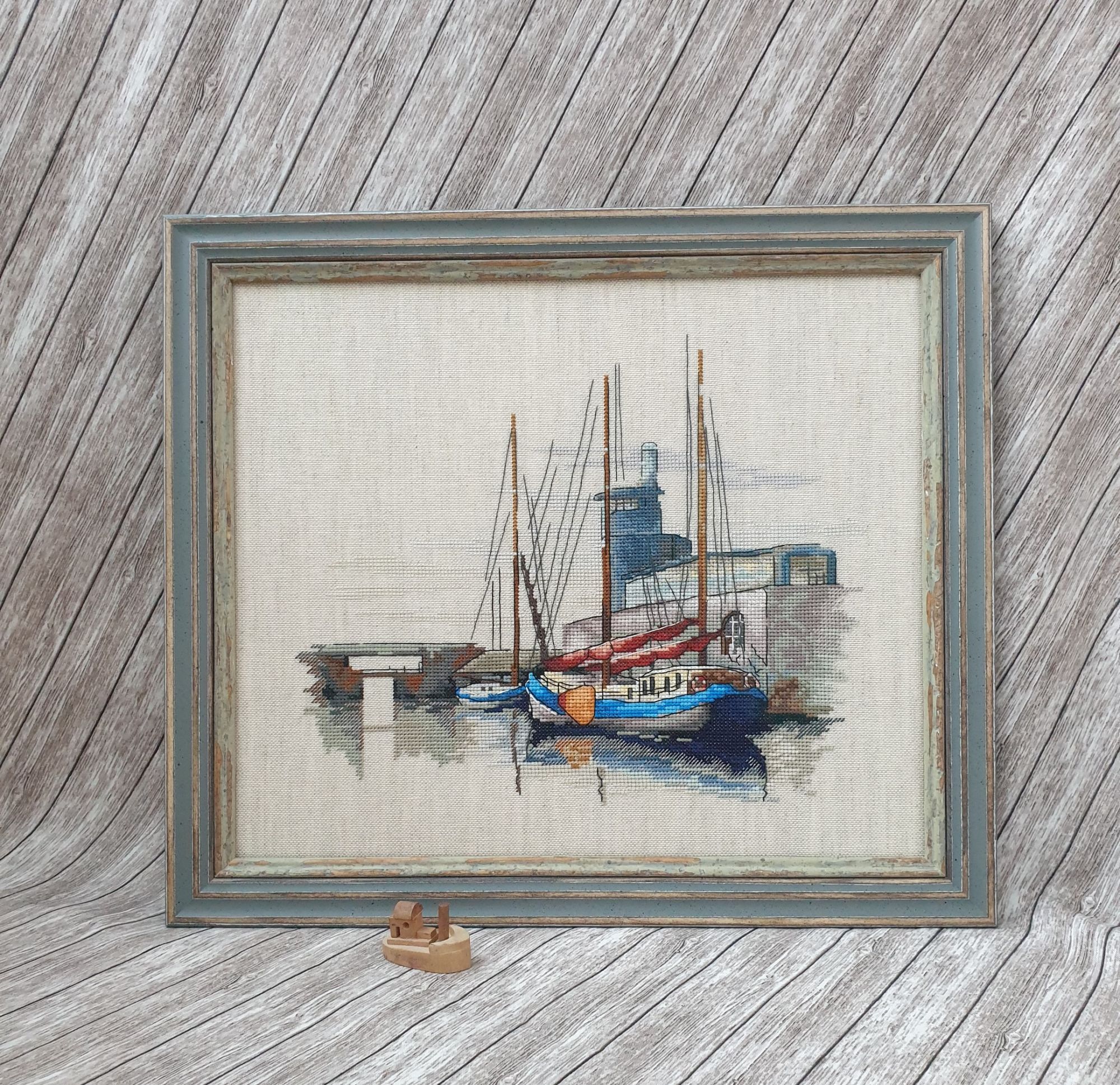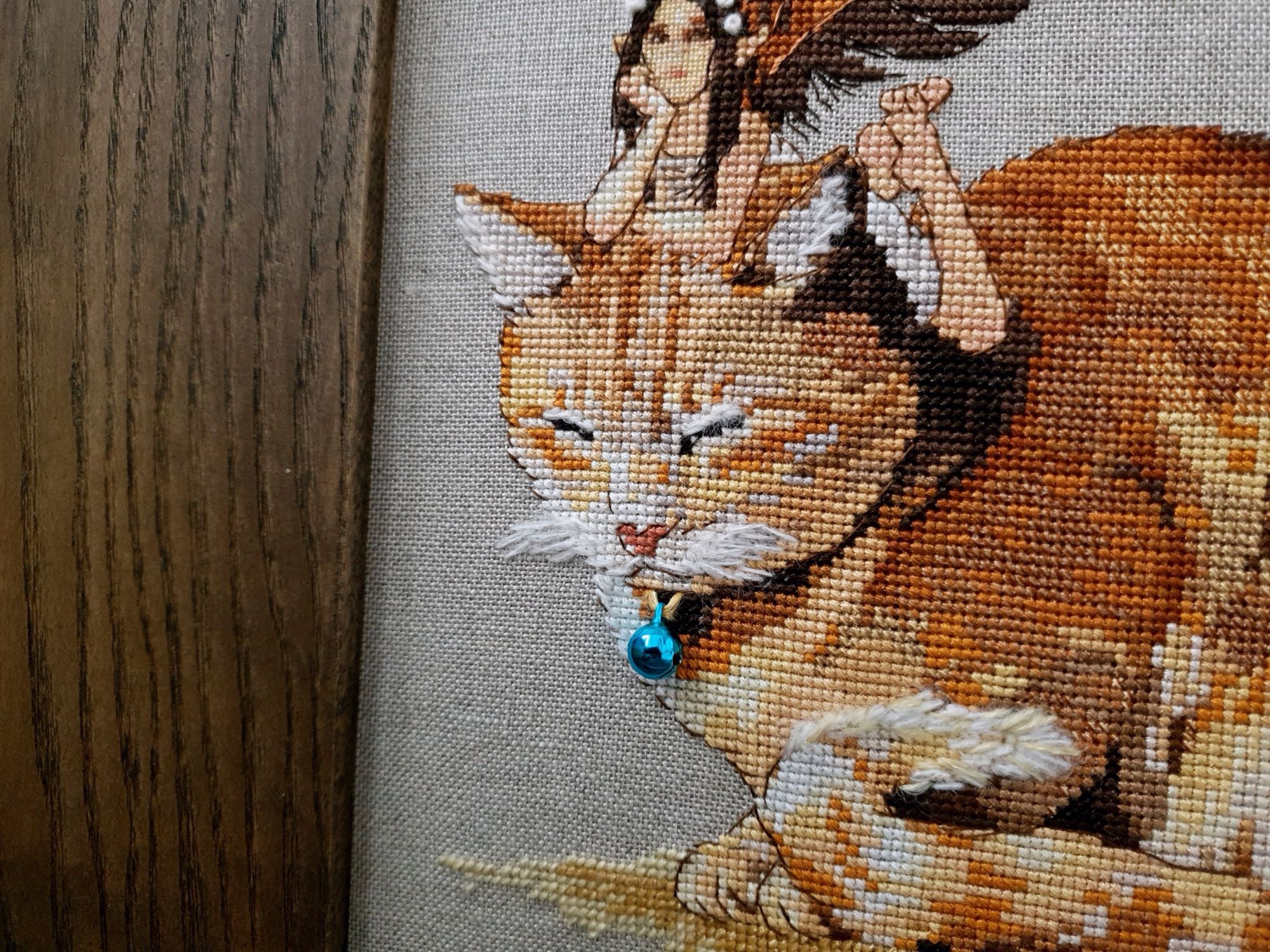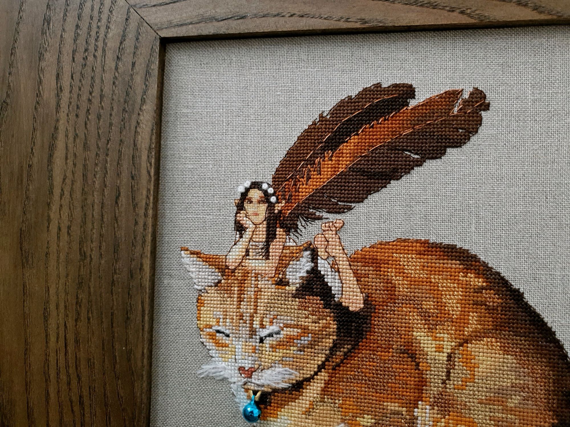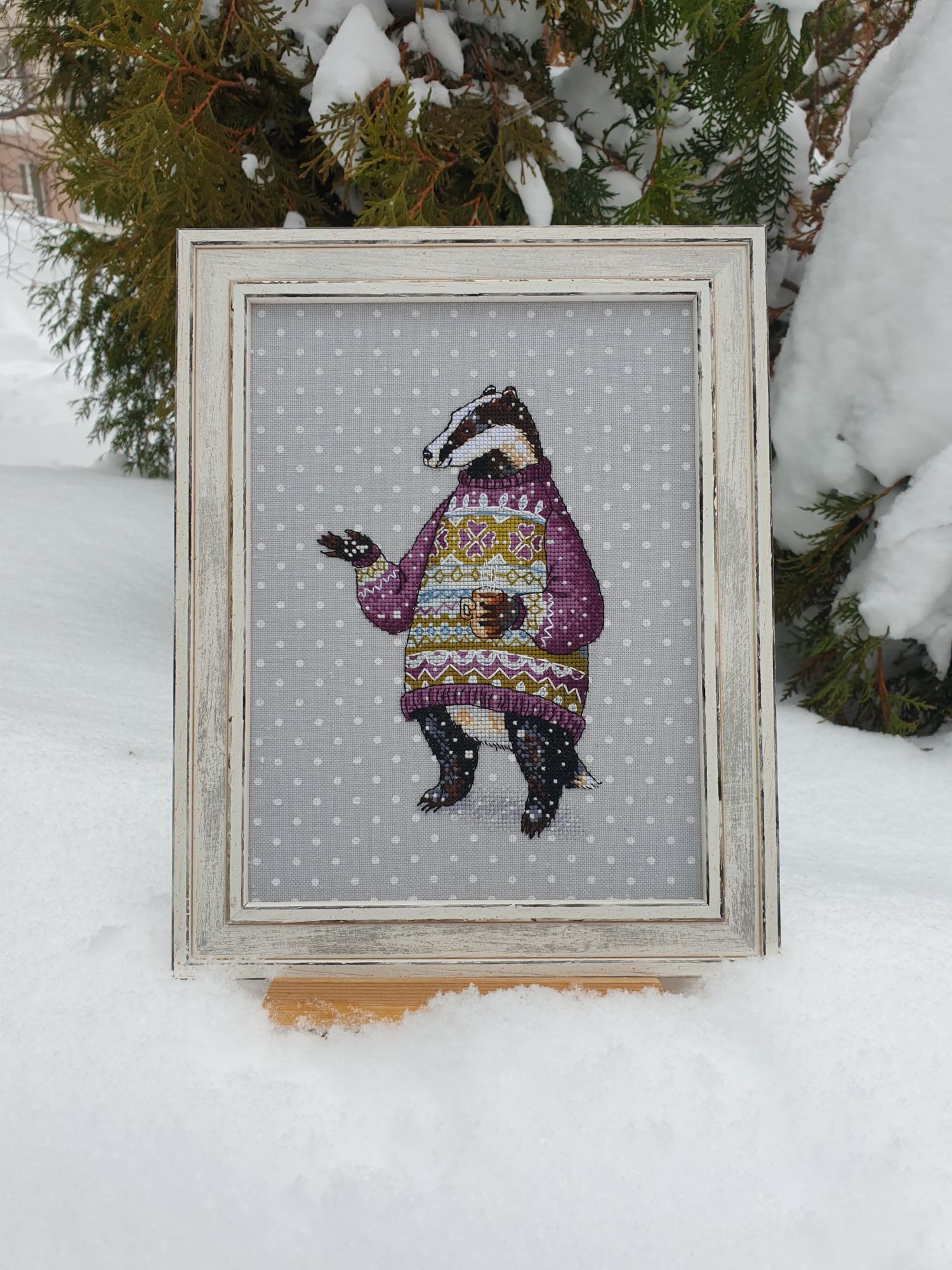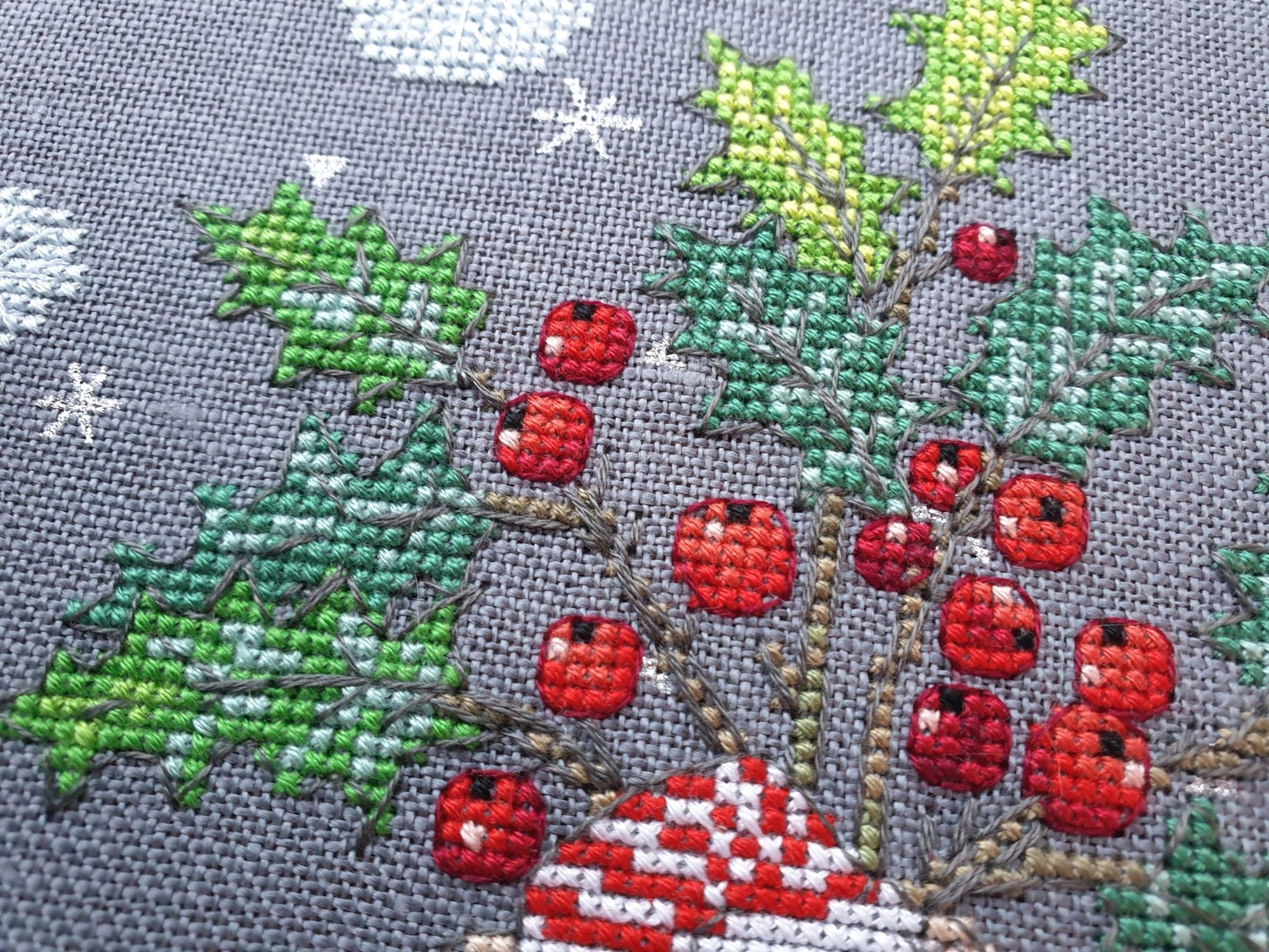 29 декабря 2022 Вечер добрый! Вот и подоспел финальный отчет года. С оформлениями и финишами. И даже немного с нашей елкой Итак, перво-наперво выполняю обещание и показываю оформленные работы. Вот эту четверку невероятно тонких и восхитительно моих работ я забрала из любимой багетки еще в конце ноября... Но фотосессия задержалась аж...до подходящего природного антуража для парочки из них))) Снежную съемку, кстати, проводила в приличную такую метель. Так что не удивляйтесь, что в кадре кое-где пролетают снежинки, а на работах за время фотографирования образуются небольшие снежные заносы Барсук от МиКи из популярной серии просто в багете. Всегда хотелось из него сделать что-то типа "картинки на рабочий стол", чтобы зимой доставать) Вервако, Магазин игрушек. Очень давний процесс. Закончен был прошлой зимой и не без помощи сочувствующих, за что им моя бесконечная признательность Оформлен к новогодней смене экспозиции дома)) Моя невероятно тонкая птичка от Vetlanka. Минимализм в светлых оттенках. Тот самый случай, когда ты понимаешь, что оттенков белого паспарту на самом деле штук десять, а тебе нужен одиннадцатый Тут к счастью, все нашлось) И моя новая любовь в оформлении - порт от О.Ланкевич. Тут и один из любимых багетов, и горячо обожаемый деревянный подранный слип, который я еще на своих РТОшных ботинках в 2019м оценила, и которого, к слову, в багетке оставалась одна единственная планка, и итоговое сочетание всего: мрачноватого строгого сюжета, грубоватости лукана, этих вот деревяшек... И к ним добавилась нимюшная Котофея. Рама у меня была: ясень, очень широкий профиль... Интересная вещь получилась. Хотя, конечно, и не классическая. Пока не нашла ей дома подходящего места, даже закрадывались мысли переоформить более стандартно. Но ее место нашлось Теперь к финишам. РТО, Мечты под луной - финиш! Волчок завершен! Старт аж 2016го года, кажется. Никогда не переставал нравится. Просто большой)) Ниток всех оказалось с запасом, экономить нигде не пришлось. Осталось сшить подушку. Собственно я даже уже задник раскроила, но вот к отчету не успела. В финальном коллаже будет оформленным! (*так что не обессудьте, если итогов придется ждать долго Шутка. Надеюсь)) РТО, Новогодняя прогулка - финиш! Ох, какой же он классный! Такой отважный, такой смешной, такой очаровательный! Я как никогда правильно в этом году выбрала себе новогодний процесс - он заставлял улыбаться безусловно и независимо ни от чего. Спасибо РТОшникам за него от души. Помимо замены основы мелкие снежинки шить не стала, т.к. есть нарисованные на ткани, а бэк на больших вместо B5200 из набора заменила dmc E5200 - такая жесткая нитка с перламутровым блеском. На прямых линиях снежинок трудностей с ней не возникло, а приятный несильный искрящийся блеск добавился. Вместе с неярким блеском нарисованных снежинок смотрится гармонично. Хотя на фотографии этого не видно, как ни старайся. А это фото со вспышкой. Тут хоть чуточку видно, как элементы на свет реагируют. (не для гайки) А вообще буду ждать теперь солнышка и понесу в снег на фотосессию) . Но, скорее всего, уже в следующем году. Волшебная страна, Шарик с лисичкой - финиш! Ну да, конечно, же и этот процесс завершен. Как же иначе?)) Подбор бисера классный: искрящийся зеленый, матовые основные, перламутровый белый и кремовый, совершенно особенный красный на ягодках... Этому шар