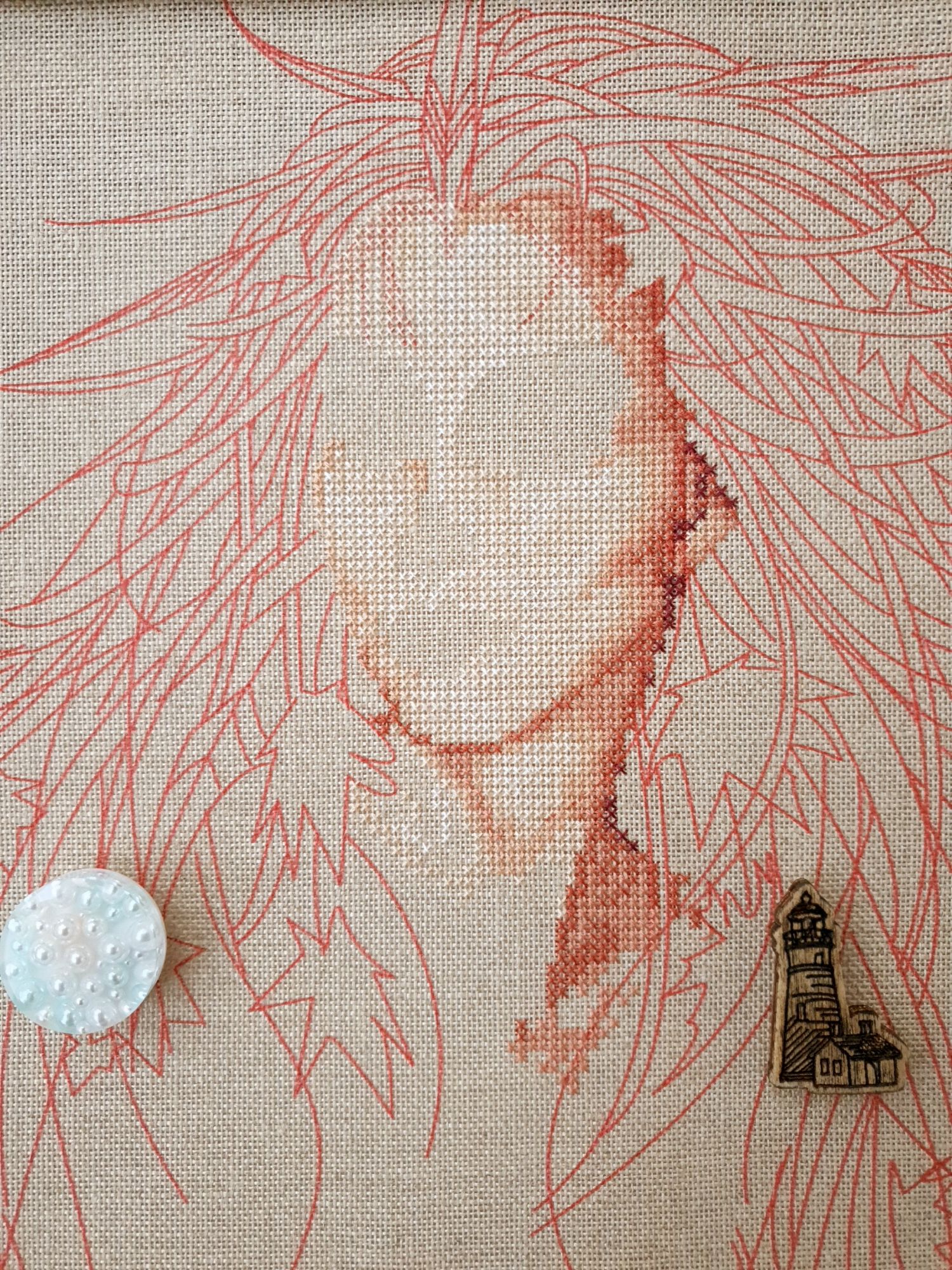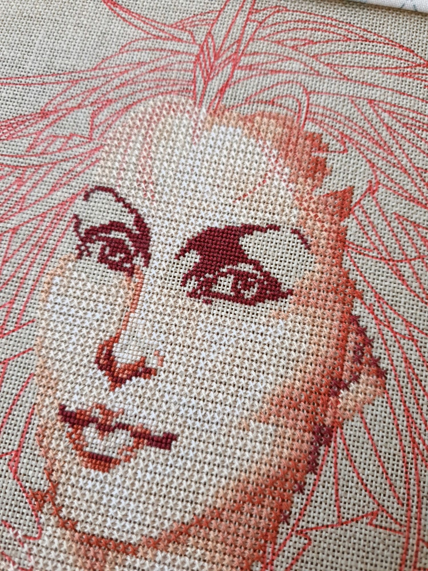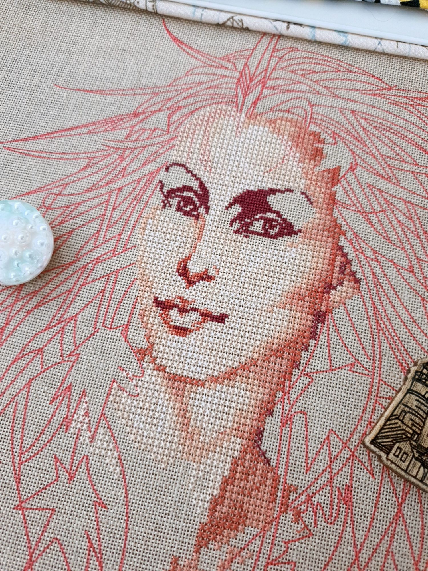 10 января 2023 Всем здравствуйте! Я сегодня в ночи и на бегу. Не успеваю последнее время ни почитать форум, ни повышивать толком. Но т.к. в любом случае надеюсь, что это когда-нибудь изменится, то очень хочу хотя бы в своей теме немножко наследить))) Mill Hill MH20-2231 Scotch Pine Santa - новый процесс! Я начала его перед самым-самым новым годом, числа 30го, наверное, и хотела завершить за каникулы. Но вот каникулы позади, а в Санте нет и половины. Поэтому заведу-ка я гайку, чтобы не забыть закончить к следующему НГ О процессе: это ж Милл Хилл! И хотя я не отношу себя к его ярым фанатам, которые без него жить не могут, но все же я успела проникнуться его прелестью и очарованием, когда из странного ниточного нЕчто после пришивания бисера оно превращается "из гусеницы в бабочку". Мне очень нравится этот эффект, нравится как преображается дизайн с бисером. Это не говоря уже о том, что бисер здесь сам по себе чудесный и вызывает массу положительных эмоций. А еще я люблю МХ именно на бумаге. Для меня МХ на канве не очень привлекателен, а замену бумаги на что-то для себя никогда не собираюсь даже рассматривать. Лучше что-то другое вышью)) Но одна беда была - гнется она, эта бумага. От пальцев тех же или магнитов. Да и шью я долго. И вот я обзавелась магнитными пяльцами от Неокрафта. О, они офигенные! Мои сложности и затруднения с бумагой убрали напрочь. И держать удобно. И магниты по всему периметру, причем в плоскости, так что нитка не цепляется. Тот, кто регулярно шьет пластик, наверняка поймет, про что я сейчас. В общем, рекомендую! И собственно, процесс, ради которого я сегодня сюда пришла. Знаковый для меня процесс. Очень сильный. И отчего-то мне очень хочется назначить его процессом года. Ну не в том смысле, что шить только его и расшибиться, но закончить, а в смысле, чтобы сбывались давно задуманные планы и желания Путь я к мистике и не склонна в целом, но как тут не пуститься вглубь веков и легенд, когда сама Озерная владычица смотрит на тебя))) Nimue K30 Волшебница Вивиан (sepia) - новый процесс! Я влюбилась в этот дизайн довольно давно. Тогда на ФР приезжала Аннаик Шовель (автор схемы) и на выставке соорудили целый шатер - волшебный мир из легенд, который в вышивке создает хозяйка бренда Нимю. Сама Аннаик совершенно невероятная. Хранительница замка, между прочим! И сама будто вышедшая из волшебного леса. Вышитые работы, которые там были представлены, хотелось рассматривать бесконечно. А меня, помимо прочего, тогда приковал к себе взгляд Её глаз. Глаз той самой волшебницы, что висела напротив входа в шатер и что служит обложкой самого бренда. Я несколько раз возвращалась в тот шатер и рассматривала невероятные сплетения лент в косах, какое-то восхитительно нежное платье, всю ее целиком и по крестику.... Год назад муж подарил мне набор. И я дала себе слово, что начну его, как только закончу предыдущий процесс от Нимю. А набор тем временем все время стоял перед глазами, завораживая взглядом... И вот в декабре был завершен процесс с котофеей. И я тут же распечатала этот набор. Сфотографировала, начала переводить понемногу инструкцию, чтобы перестать бояться))) Она, к слову тут примерно такая(это фото не для гайки) Заодно немножко французский повспоминала И где-то недели за полторы до НГ я ее начала. Сначала было сложно, потому что страшно)) А еще потому что было неясно, отчего такая ткань темная и какая-
