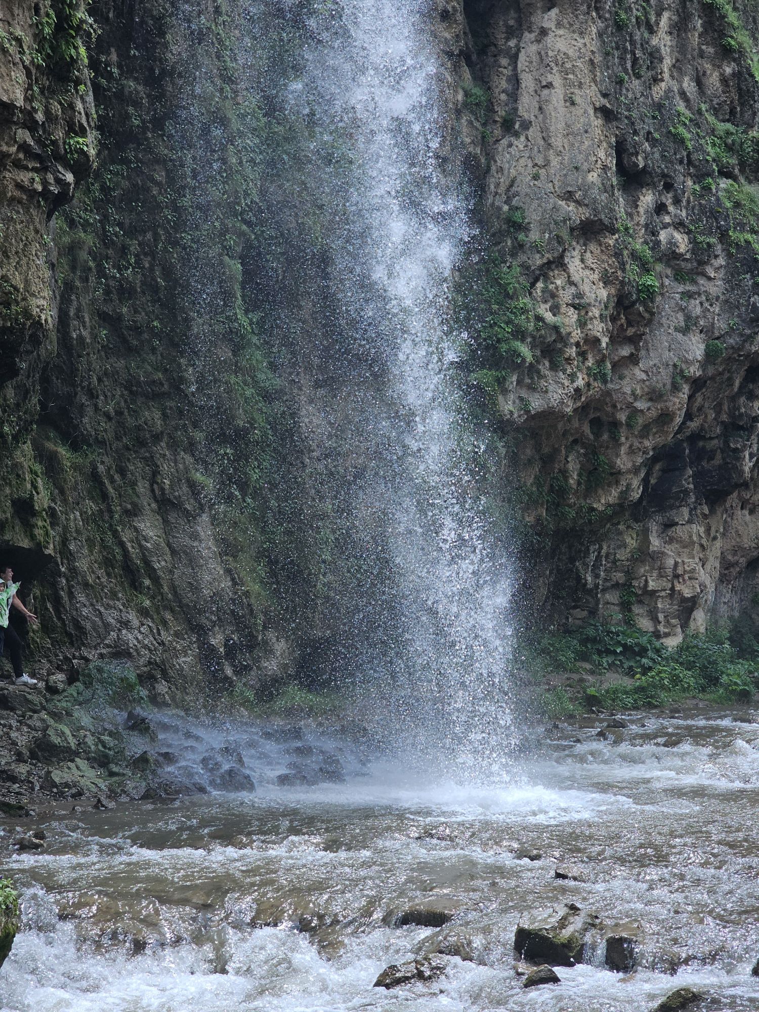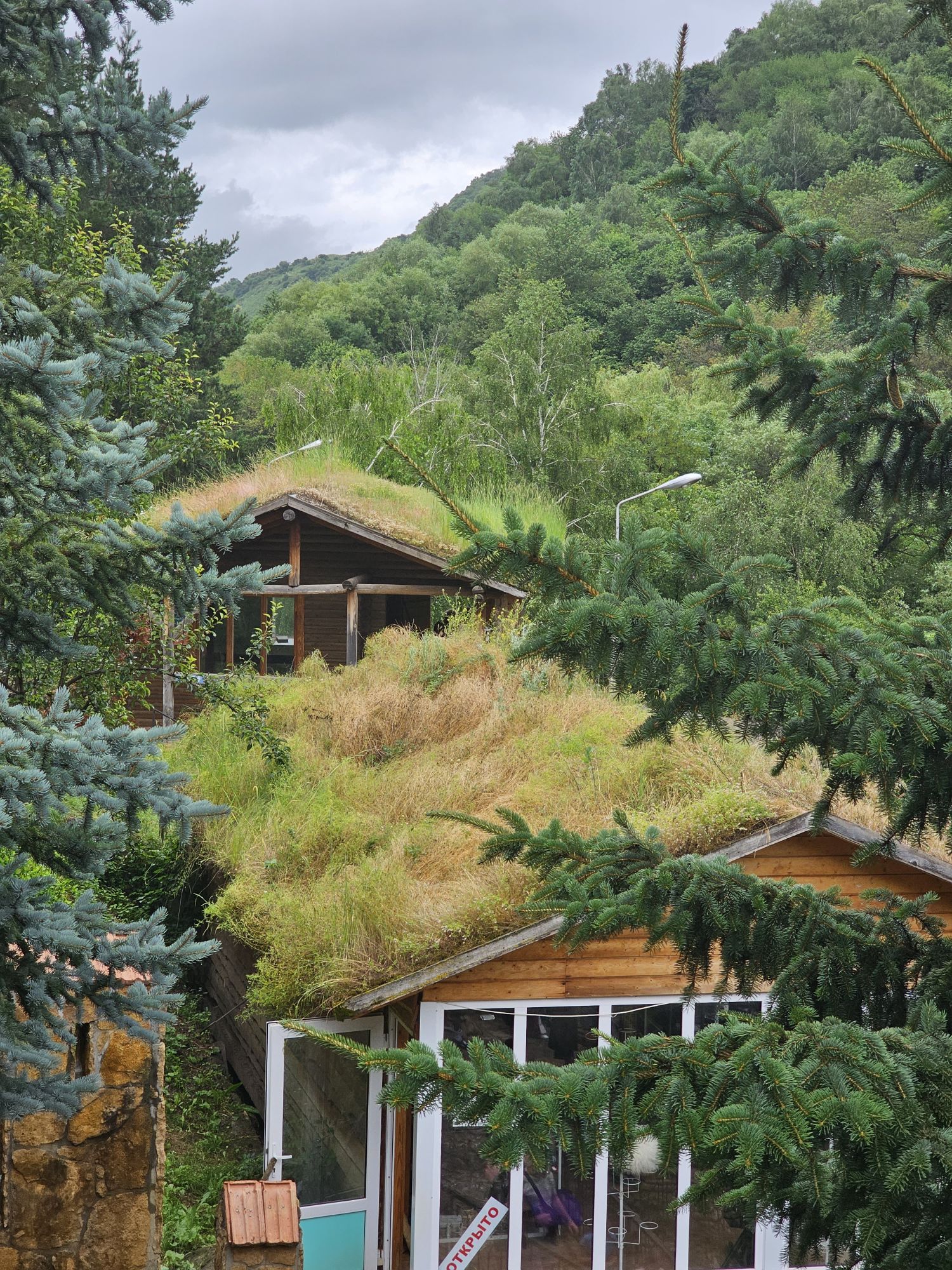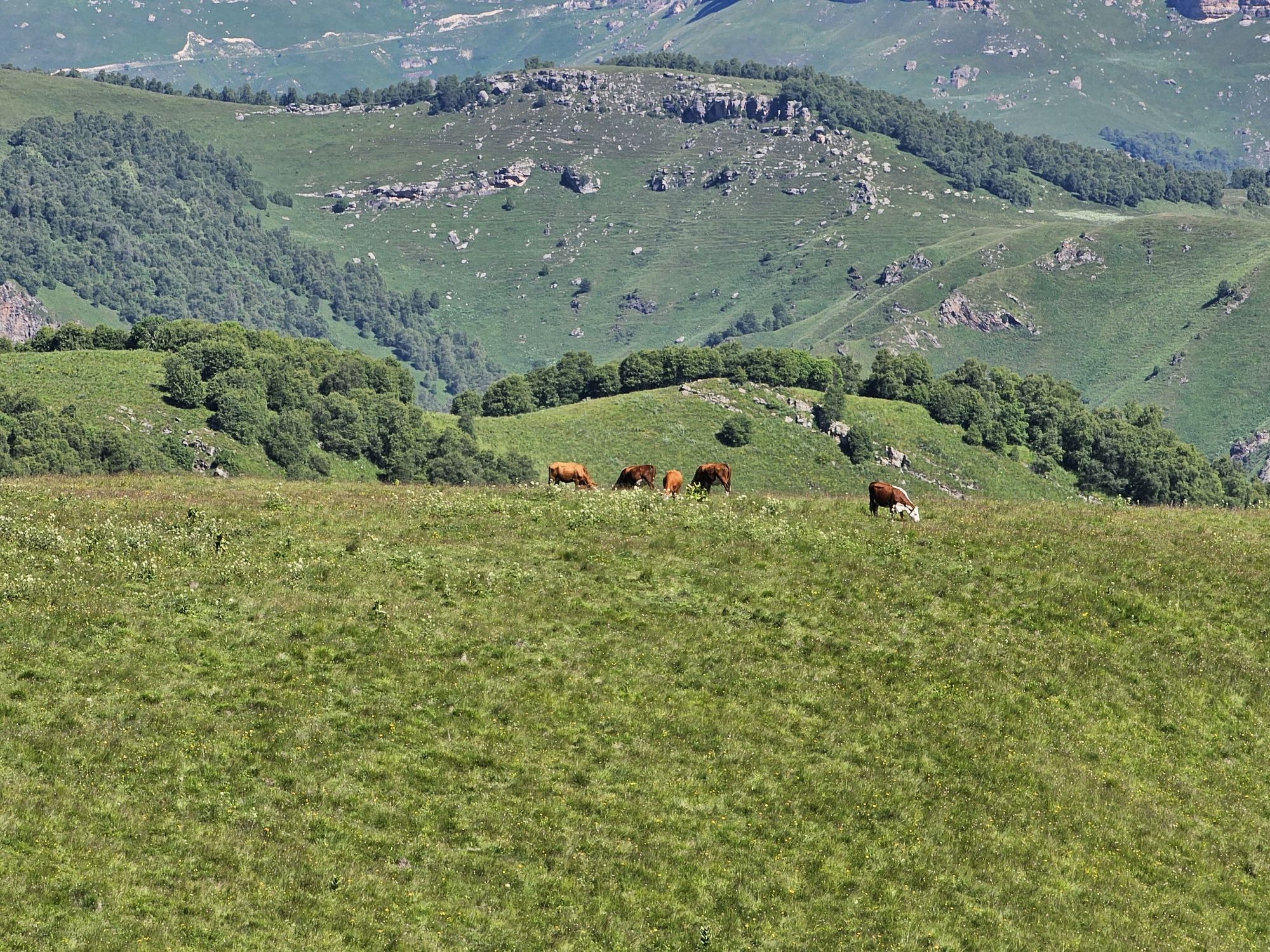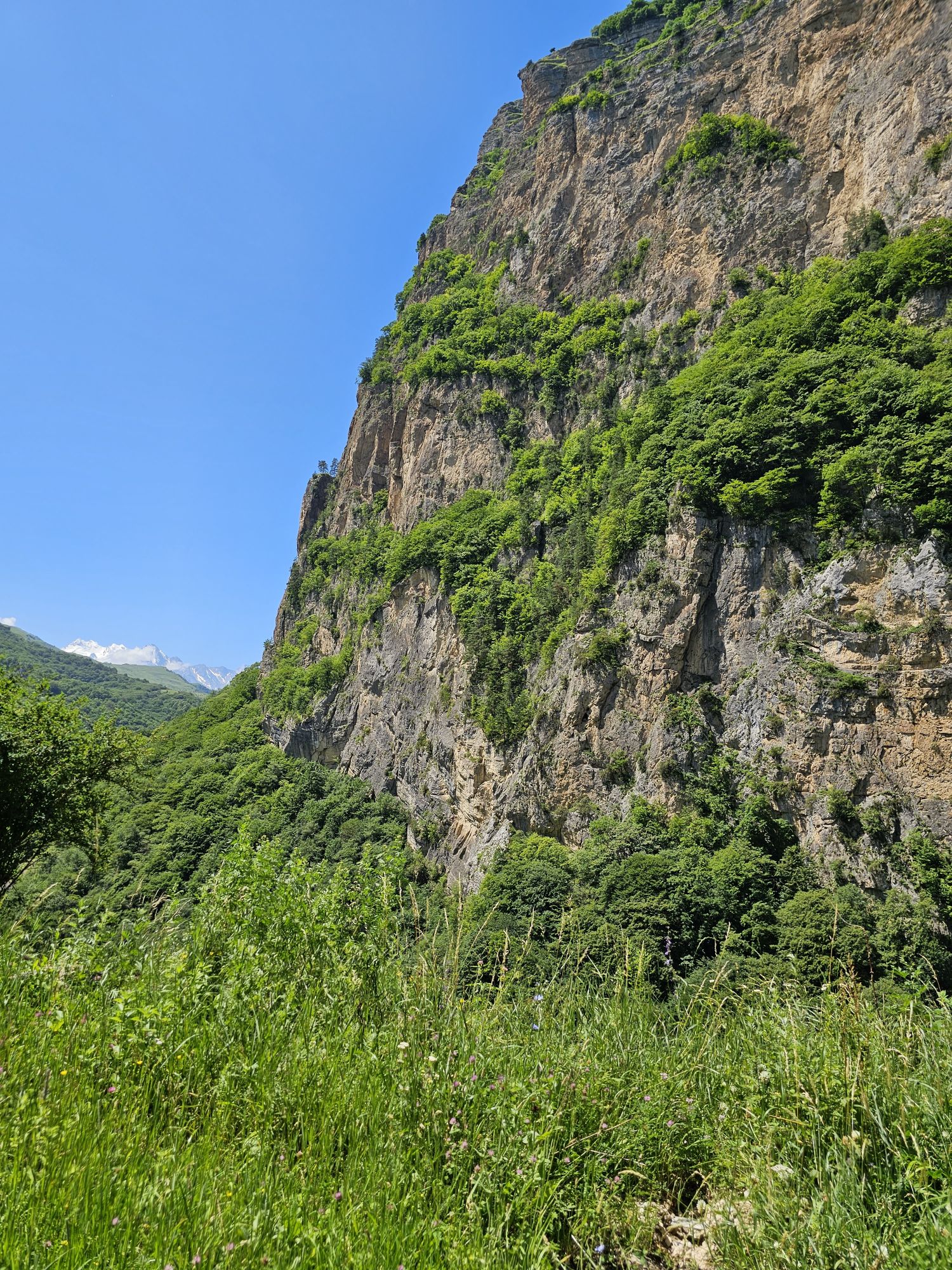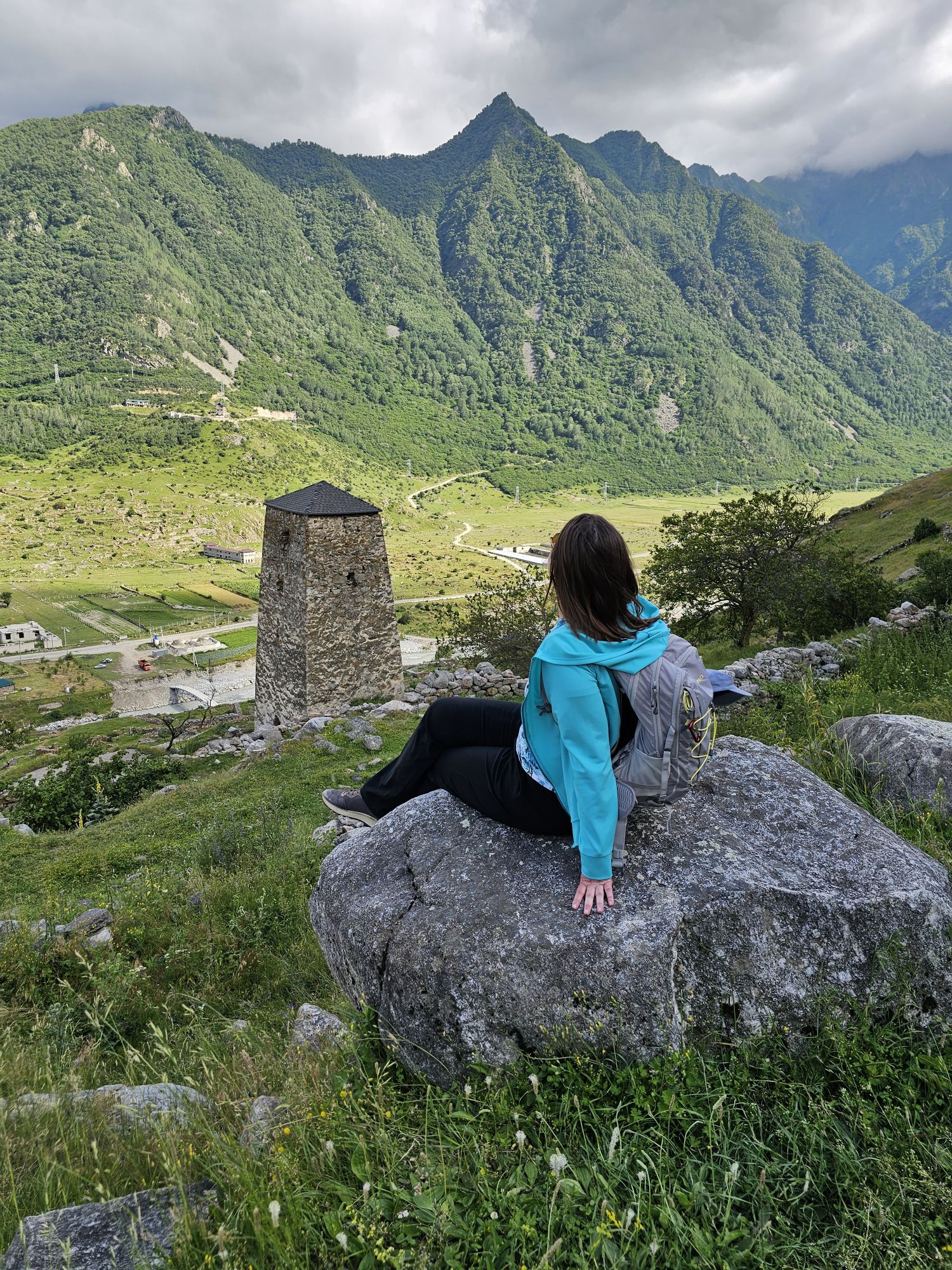 8 августа 2023 И снова здравствуйте! Где-то недавно прочитала комментарий примерно следующего содержания: "Я уже давно вернулся из поездки, но никак не напишу об этом. Вероятно потому, что впечатления от нее у меня в сердце, а не в голове"... "Именно так", - подумалось мне. Уже пора писать про всякое, что случалось после возвращения, а я все никак про отпуск не допишу. Потому что эти впечатления в сердце и их так сложно облечь в слова. И они такие сильные, что я до сих пор в своих снах оказываюсь там... У меня собственно осталось немного, но, пожалуй, самое сложное и самое сильное по впечатлениям. Я постараюсь сегодня завершить рассказ, хотя не могу обещать...)) Но сначала будет еще один "дождевой день". Для разминки))) Итак, дожди накрыли и КМВ, и все Приэльбрусье. Уехать от них было некуда, а накануне мы промочили насквозь первую пару обуви и она была еще далека даже от влажного состояния. Поэтому вторую пару надо было беречь. Прогноз - весь день дожди с вероятными небольшими просветами. Далеко в горы не уйдешь. А не рвануть ли нам... на Медовые водопады?! Только на этот раз на машине, чтобы в случае чего быстро в нее прыгнуть и не сильно промокнуть. Сказано - сделано. И вот мы уже мчим по новой для себя дороге, хотя на самих водопадах были дважды (но пешком по Аликоновскому ущелью от замка коварства и любви). Мокрая дорога, мокрая зелень и облака, что стелются почти у земли... И вот показалось оно, Аликоновское ущелье, что так дорого моему сердцу! Спускаемся со стоянки и вот уже самый высокий из здешних водопадов. Просто задумайтесь: это не просто вода со скалы течет, это же таким образом одна речка в другую впадает! Слияние рек!))) В горах все привычные нам, равнинникам, сочетания слов приобретают неожиданные значения))) А какие тут крыши! Я к таким неровно дышу, но видела в основном на фотографиях из Северных стран) Сегодня нам некуда спешить и мы с удовольствием заглянули на имеющееся здесь небольшое Карачаевское подворье, где живут карачаевские козы и ослик. Они клевые. Даже взрослые получили удовольствие от "общения", не говоря уже о детях. А этот товарищ - прямо звезда! Каков взгляд! Дальше прогулка по водопадам. Сегодня не очень лётная погода. Да и время автобусов еще не подошло, так что людей не очень много. Самый высокий водопад очень живописен. Падая со скалы, вода разбивается на тысячи капелек и струй, и на это можно смотреть бесконечно. А еще можно зайти за него в небольшое углубление в скале и посмотреть сквозь эту стену брызг. Или даже попробовать заглянуть вверх)) Правда остаться сухим точно не выйдет Потом остальные водопады, названий которых я никак не запомню, но это не умаляет их красоты и живописности. И снова первый: . На последних кадрах уже начал капать приличный дождик, и от самих водопадов людей совсем смыло. Такие безлюдные кадры тут редкость) А мы поднялись чуть выше к кафешкам. Тут очень вкусно кормят. Во-первых хычины. Хотя я и люблю больше тонкие балкарские, но все же не могу не отметить, что местные карачаевские тоже очень вкусные. А еще мы с мужем попробовали в этот раз шашлык из черного барашка. Он тут потрясающий! Самый вкусный из всего, что мне доводилось пробовать. Еще и относительно недорого. После пошли к машине. Дождик на какое-то время прекратился и наши мальчики решили, что они хотят прокатиться на зиплайне. Он тут, к слову, самый длинный 