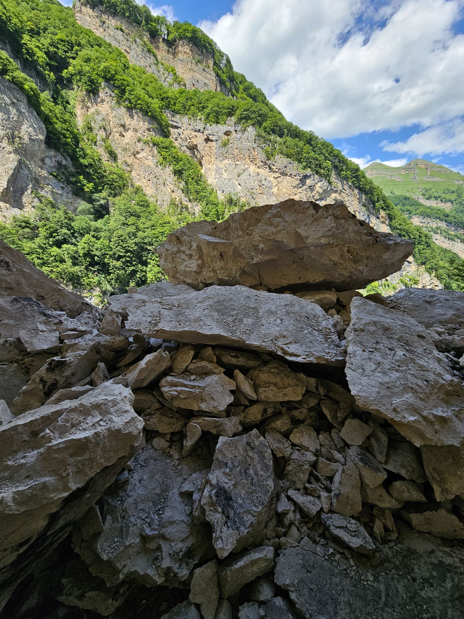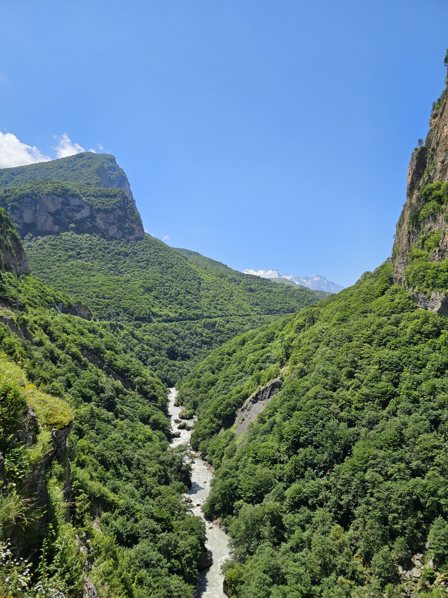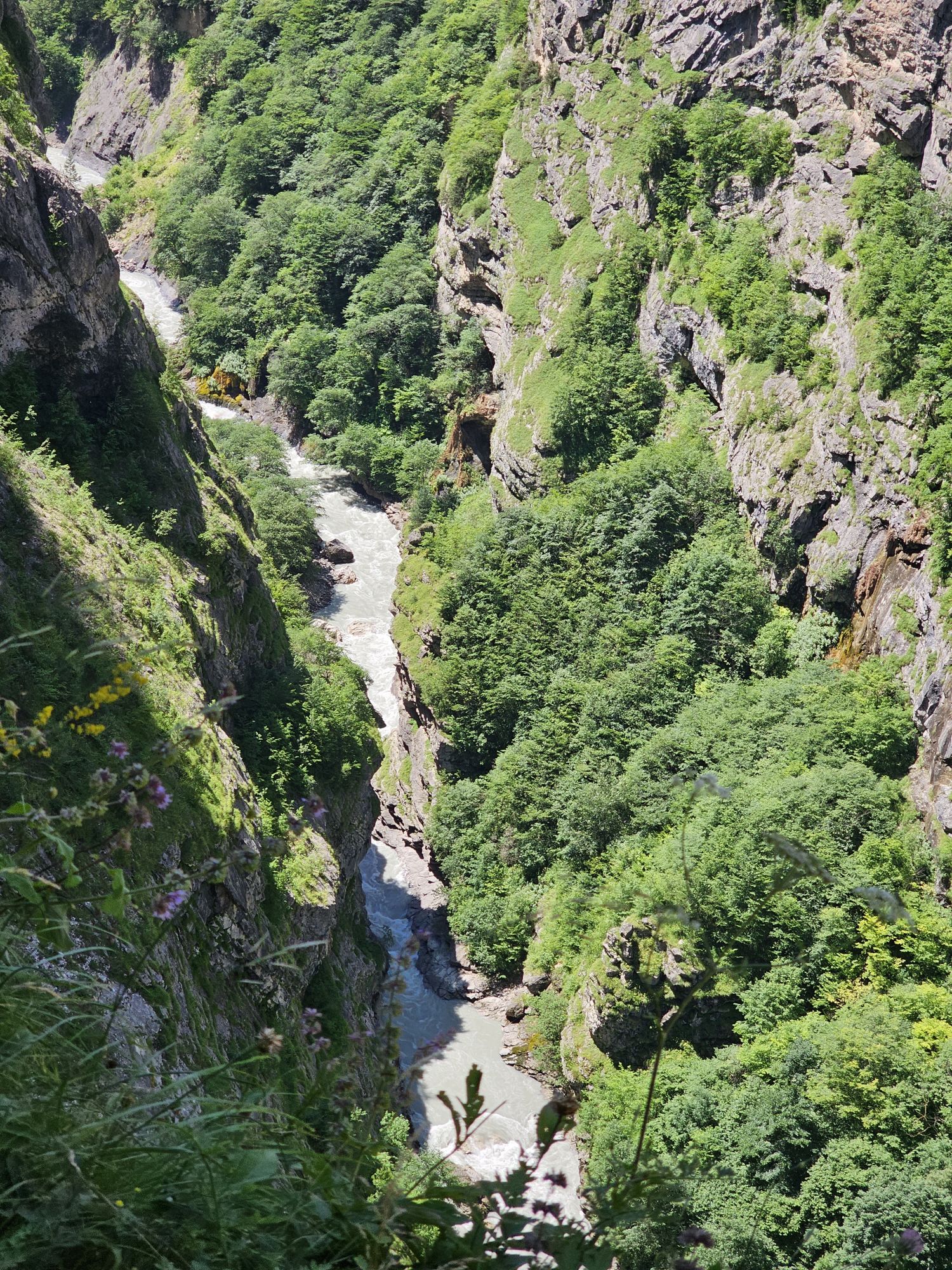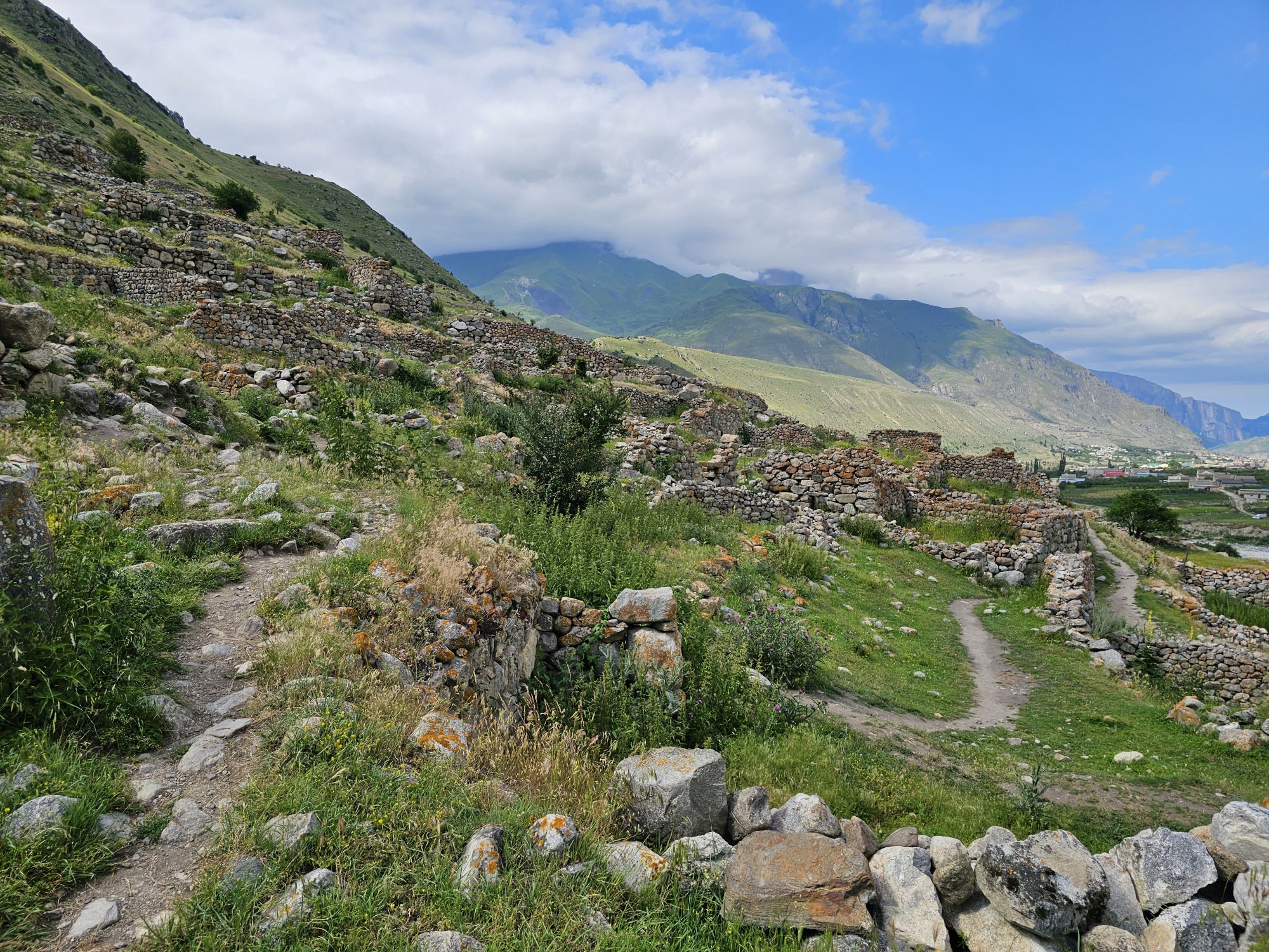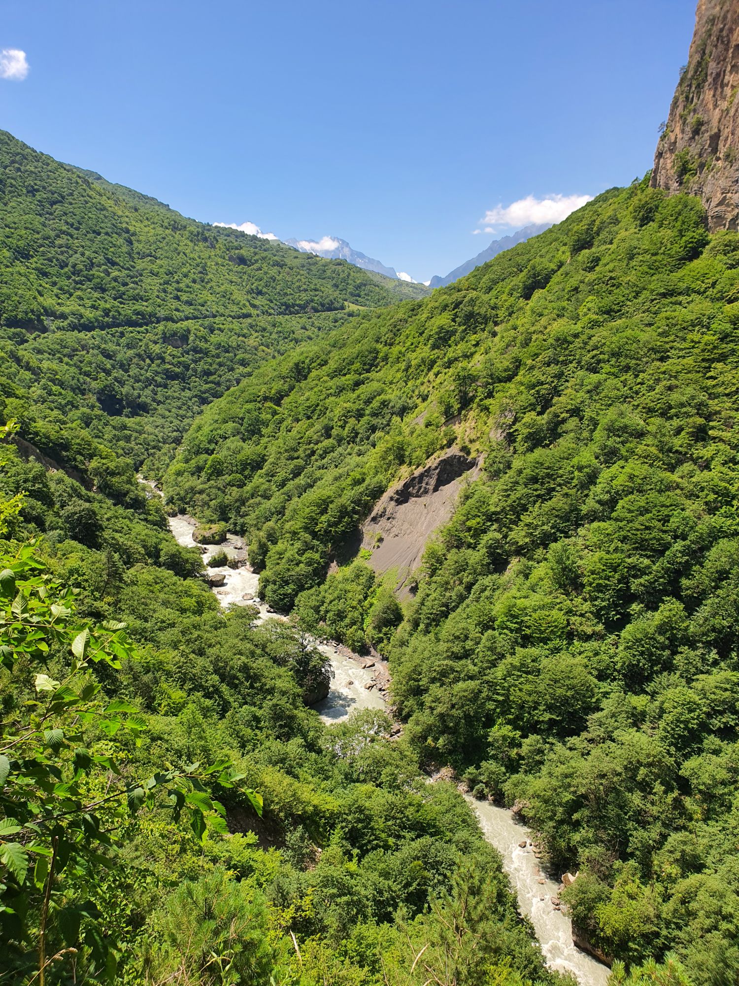 8 августа 2023 И снова здравствуйте! Где-то недавно прочитала комментарий примерно следующего содержания: "Я уже давно вернулся из поездки, но никак не напишу об этом. Вероятно потому, что впечатления от нее у меня в сердце, а не в голове"... "Именно так", - подумалось мне. Уже пора писать про всякое, что случалось после возвращения, а я все никак про отпуск не допишу. Потому что эти впечатления в сердце и их так сложно облечь в слова. И они такие сильные, что я до сих пор в своих снах оказываюсь там... У меня собственно осталось немного, но, пожалуй, самое сложное и самое сильное по впечатлениям. Я постараюсь сегодня завершить рассказ, хотя не могу обещать...)) Но сначала будет еще один "дождевой день". Для разминки))) Итак, дожди накрыли и КМВ, и все Приэльбрусье. Уехать от них было некуда, а накануне мы промочили насквозь первую пару обуви и она была еще далека даже от влажного состояния. Поэтому вторую пару надо было беречь. Прогноз - весь день дожди с вероятными небольшими просветами. Далеко в горы не уйдешь. А не рвануть ли нам... на Медовые водопады?! Только на этот раз на машине, чтобы в случае чего быстро в нее прыгнуть и не сильно промокнуть. Сказано - сделано. И вот мы уже мчим по новой для себя дороге, хотя на самих водопадах были дважды (но пешком по Аликоновскому ущелью от замка коварства и любви). Мокрая дорога, мокрая зелень и облака, что стелются почти у земли... И вот показалось оно, Аликоновское ущелье, что так дорого моему сердцу! Спускаемся со стоянки и вот уже самый высокий из здешних водопадов. Просто задумайтесь: это не просто вода со скалы течет, это же таким образом одна речка в другую впадает! Слияние рек!))) В горах все привычные нам, равнинникам, сочетания слов приобретают неожиданные значения))) А какие тут крыши! Я к таким неровно дышу, но видела в основном на фотографиях из Северных стран) Сегодня нам некуда спешить и мы с удовольствием заглянули на имеющееся здесь небольшое Карачаевское подворье, где живут карачаевские козы и ослик. Они клевые. Даже взрослые получили удовольствие от "общения", не говоря уже о детях. А этот товарищ - прямо звезда! Каков взгляд! Дальше прогулка по водопадам. Сегодня не очень лётная погода. Да и время автобусов еще не подошло, так что людей не очень много. Самый высокий водопад очень живописен. Падая со скалы, вода разбивается на тысячи капелек и струй, и на это можно смотреть бесконечно. А еще можно зайти за него в небольшое углубление в скале и посмотреть сквозь эту стену брызг. Или даже попробовать заглянуть вверх)) Правда остаться сухим точно не выйдет Потом остальные водопады, названий которых я никак не запомню, но это не умаляет их красоты и живописности. И снова первый: . На последних кадрах уже начал капать приличный дождик, и от самих водопадов людей совсем смыло. Такие безлюдные кадры тут редкость) А мы поднялись чуть выше к кафешкам. Тут очень вкусно кормят. Во-первых хычины. Хотя я и люблю больше тонкие балкарские, но все же не могу не отметить, что местные карачаевские тоже очень вкусные. А еще мы с мужем попробовали в этот раз шашлык из черного барашка. Он тут потрясающий! Самый вкусный из всего, что мне доводилось пробовать. Еще и относительно недорого. После пошли к машине. Дождик на какое-то время прекратился и наши мальчики решили, что они хотят прокатиться на зиплайне. Он тут, к слову, самый длинный 