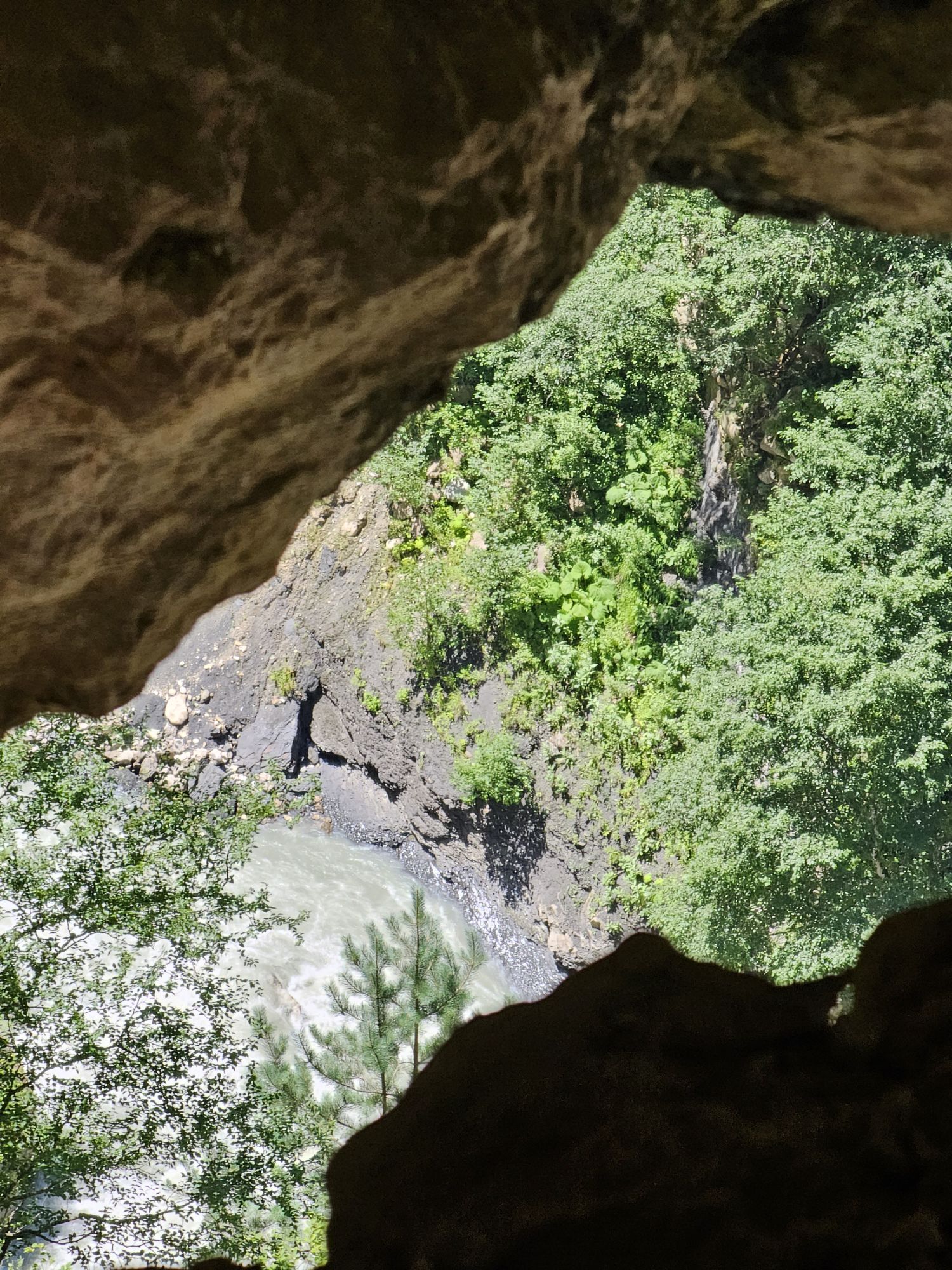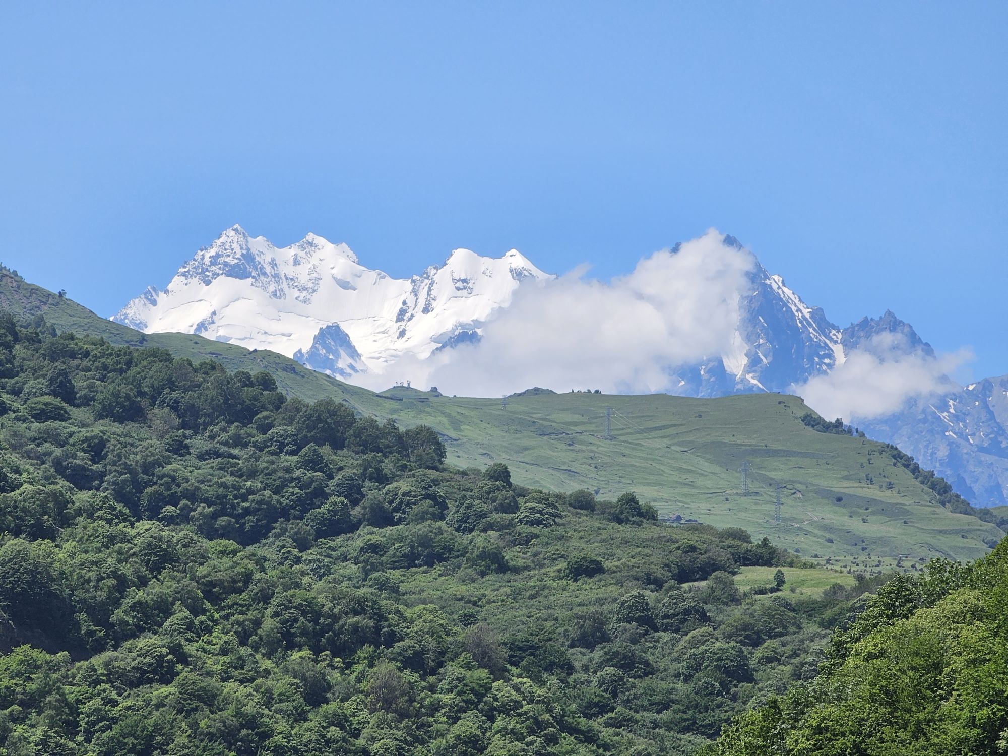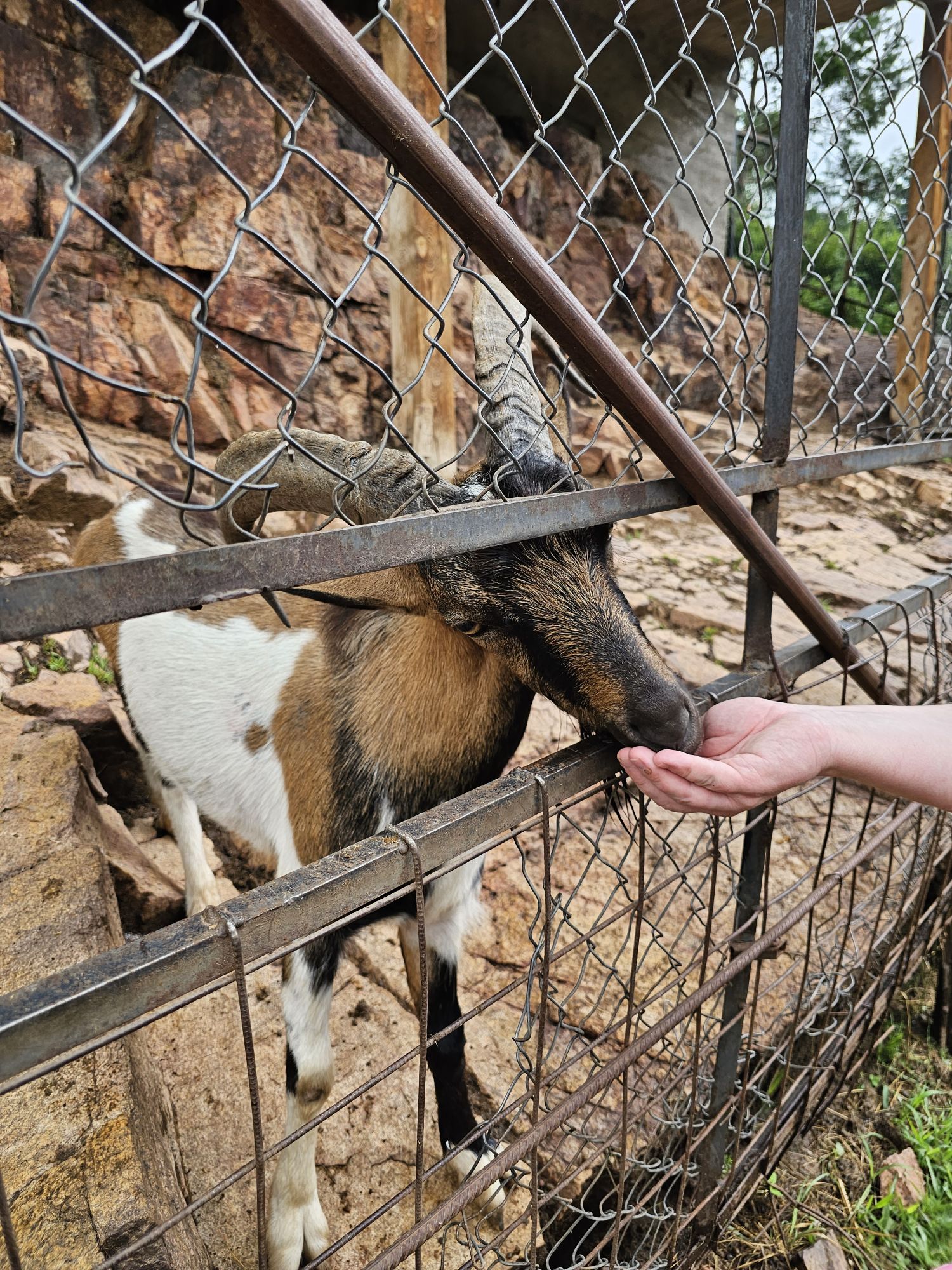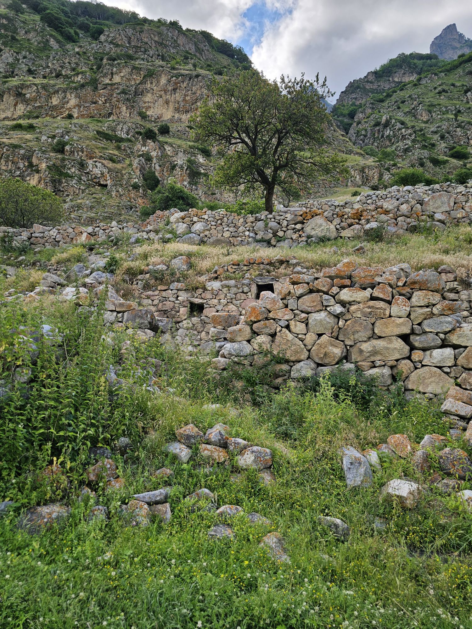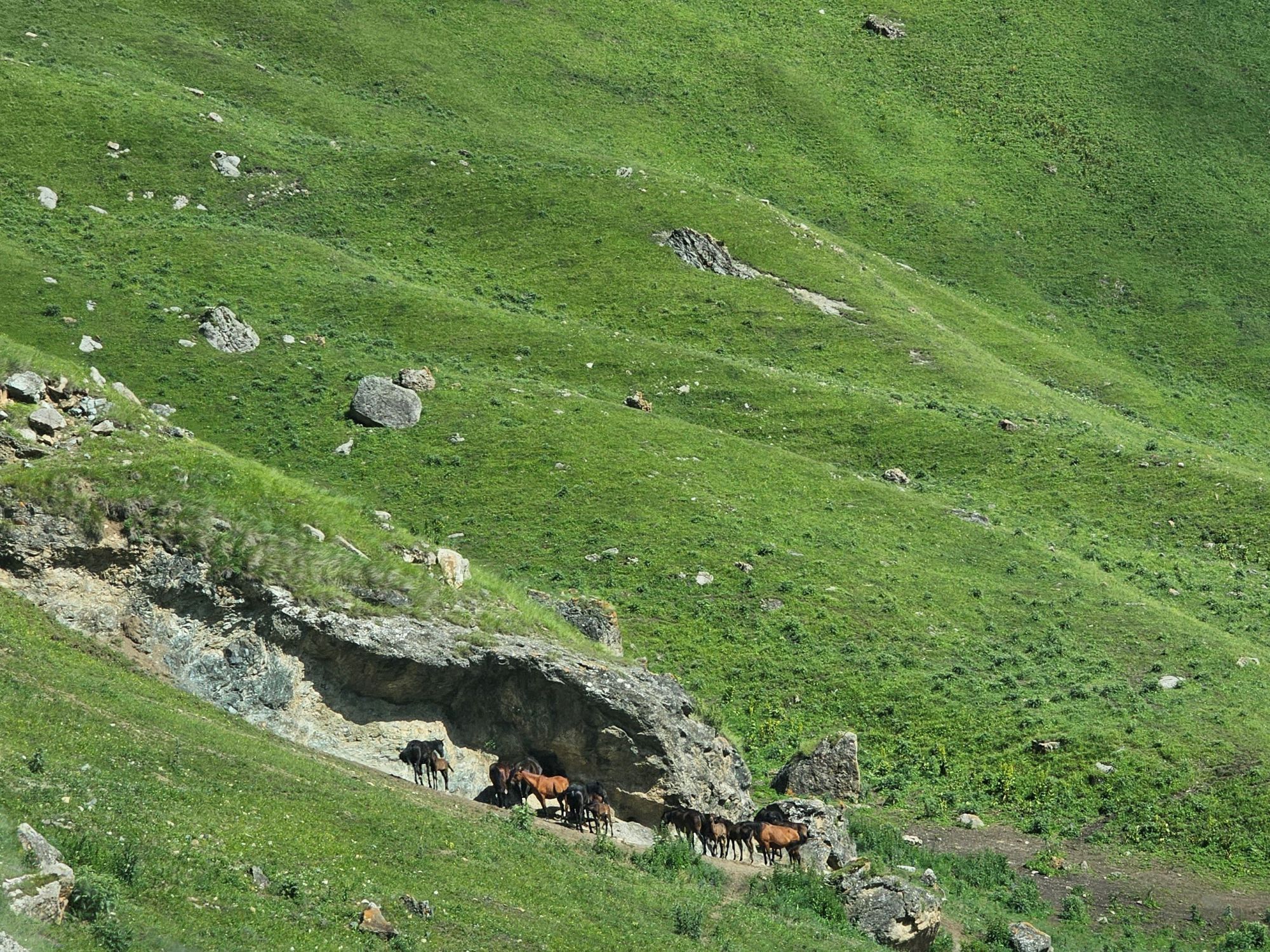 8 августа 2023 И снова здравствуйте! Где-то недавно прочитала комментарий примерно следующего содержания: "Я уже давно вернулся из поездки, но никак не напишу об этом. Вероятно потому, что впечатления от нее у меня в сердце, а не в голове"... "Именно так", - подумалось мне. Уже пора писать про всякое, что случалось после возвращения, а я все никак про отпуск не допишу. Потому что эти впечатления в сердце и их так сложно облечь в слова. И они такие сильные, что я до сих пор в своих снах оказываюсь там... У меня собственно осталось немного, но, пожалуй, самое сложное и самое сильное по впечатлениям. Я постараюсь сегодня завершить рассказ, хотя не могу обещать...)) Но сначала будет еще один "дождевой день". Для разминки))) Итак, дожди накрыли и КМВ, и все Приэльбрусье. Уехать от них было некуда, а накануне мы промочили насквозь первую пару обуви и она была еще далека даже от влажного состояния. Поэтому вторую пару надо было беречь. Прогноз - весь день дожди с вероятными небольшими просветами. Далеко в горы не уйдешь. А не рвануть ли нам... на Медовые водопады?! Только на этот раз на машине, чтобы в случае чего быстро в нее прыгнуть и не сильно промокнуть. Сказано - сделано. И вот мы уже мчим по новой для себя дороге, хотя на самих водопадах были дважды (но пешком по Аликоновскому ущелью от замка коварства и любви). Мокрая дорога, мокрая зелень и облака, что стелются почти у земли... И вот показалось оно, Аликоновское ущелье, что так дорого моему сердцу! Спускаемся со стоянки и вот уже самый высокий из здешних водопадов. Просто задумайтесь: это не просто вода со скалы течет, это же таким образом одна речка в другую впадает! Слияние рек!))) В горах все привычные нам, равнинникам, сочетания слов приобретают неожиданные значения))) А какие тут крыши! Я к таким неровно дышу, но видела в основном на фотографиях из Северных стран) Сегодня нам некуда спешить и мы с удовольствием заглянули на имеющееся здесь небольшое Карачаевское подворье, где живут карачаевские козы и ослик. Они клевые. Даже взрослые получили удовольствие от "общения", не говоря уже о детях. А этот товарищ - прямо звезда! Каков взгляд! Дальше прогулка по водопадам. Сегодня не очень лётная погода. Да и время автобусов еще не подошло, так что людей не очень много. Самый высокий водопад очень живописен. Падая со скалы, вода разбивается на тысячи капелек и струй, и на это можно смотреть бесконечно. А еще можно зайти за него в небольшое углубление в скале и посмотреть сквозь эту стену брызг. Или даже попробовать заглянуть вверх)) Правда остаться сухим точно не выйдет Потом остальные водопады, названий которых я никак не запомню, но это не умаляет их красоты и живописности. И снова первый: . На последних кадрах уже начал капать приличный дождик, и от самих водопадов людей совсем смыло. Такие безлюдные кадры тут редкость) А мы поднялись чуть выше к кафешкам. Тут очень вкусно кормят. Во-первых хычины. Хотя я и люблю больше тонкие балкарские, но все же не могу не отметить, что местные карачаевские тоже очень вкусные. А еще мы с мужем попробовали в этот раз шашлык из черного барашка. Он тут потрясающий! Самый вкусный из всего, что мне доводилось пробовать. Еще и относительно недорого. После пошли к машине. Дождик на какое-то время прекратился и наши мальчики решили, что они хотят прокатиться на зиплайне. Он тут, к слову, самый длинный 