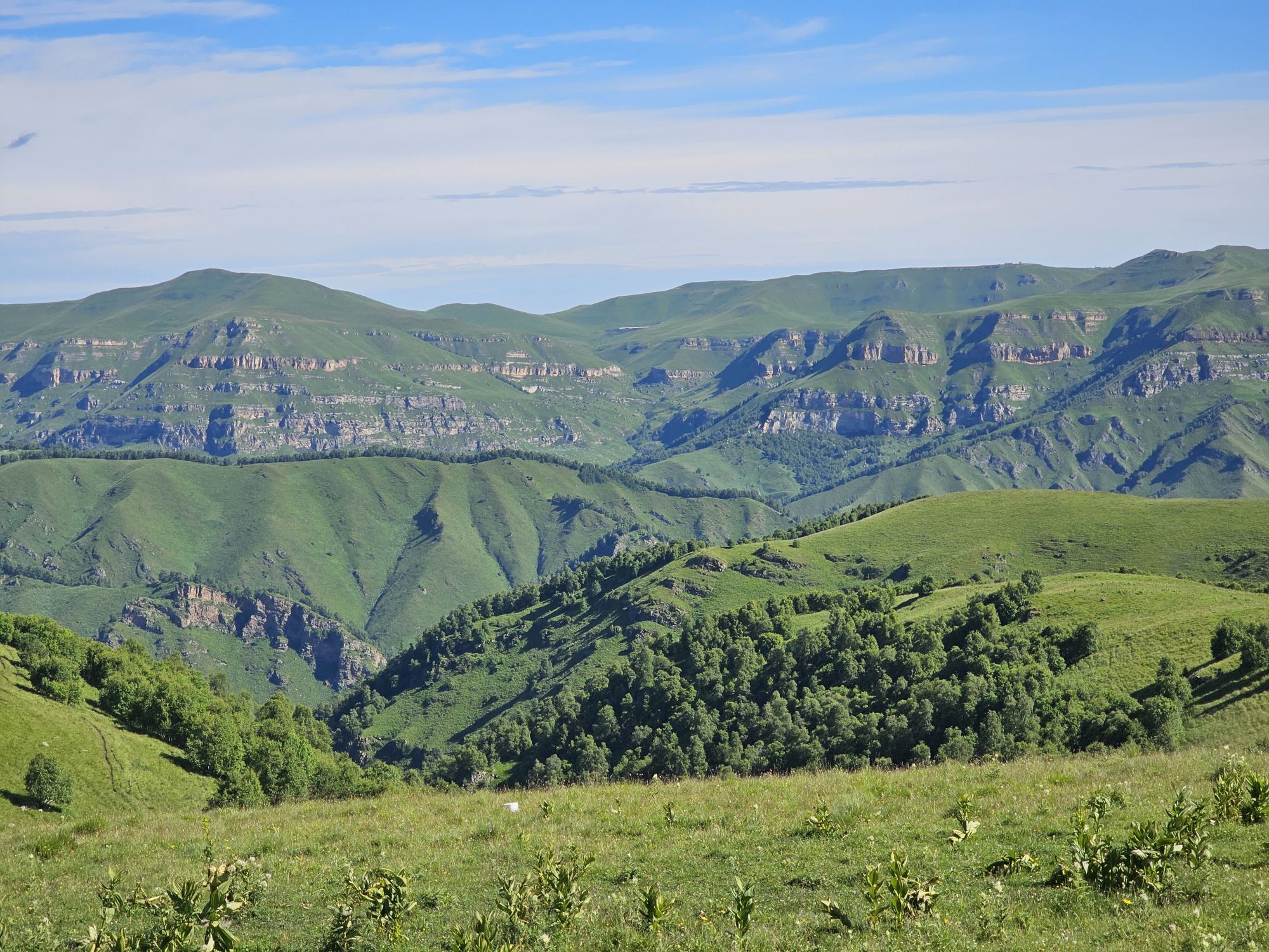 9 августа 2023 И оставался заключительный день. День отдыха водителя перед дорогой. Поэтому сегодня все иначе. Даже вид из окна воспринимается с каким-то особенным чувством. Кстати на фото видна армянская церковь Сурб Вардан. Чуть левее высокой трубы, та, что с красными крышами. С самого утра отправились в станицу Суворовскую (минут 30-40 езды), чтобы искупаться в термальных нарзанных ваннах. И снова по дороге виден Эльбрус. Очень признательна ему за такую благосклонность)) Суворовские ванны очень понравились. В них кайфово. Один бассейн почти 40 градусов - в нем мне было поначалу совсем горячо, один 36 - тут очень комфортно. Плюс купель с холодной водой. Ну как холодной.. градусов 17. Мы в нее с удовольствием ныряли после каждого захода в горячие бассейны и кайфовали там. Хотя многие даже ноги опустить туда не могли) Был еще бассейн, где вода еще горячее 40, но туда мы не решились лезть) Час пролетел незаметно, удовольствия и релакса хоть отбавляй. Теперь надо было решить, куда пойдем обедать. А не поехать ли нам.... в Долину нарзанов?! Ха, нам вообще не проблема Снова завораживающая дорога и продолжение нарзанных ванн. Только теперь вода от 7-9 градусов до максимум 12ти. И у нас купальники с собой. Тут тоже было в кайф. Очень освежает. Чувствуешь себя бодрым и полным сил. Мы несколько раз заныривали, под конец я спокойно выдерживала 15-20 секунд. Хорошо! Потом был вкусный обед (шашлык тут тоже готовят отменно!) и небольшая прогулка А на обратном пути мы попали в самую типичную кавказскую пробку. Перегоняли огромную отару овец. Тот вид пробок, когда ты не злишься, а с удовольствием наблюдаешь и фотографируешь)) В общем очаровательная, громкая и смешная пробка))) Вот таким был наш отпуск. Надеюсь, вам тоже было немного интересно. А я вспоминаю его с большой теплотой и удовольствием. Нам удалось отбросить в сторону погоню за "побольше увидеть и посетить", удалось сбалансировать интересы и силы всех членов семьи, и даже дождь не смог кардинально изменить ситуацию. Считаю это нашим большим достижением. Мы отдохнули и с удовольствием вернемся сюда еще. Вот такие итоги) Ну и в заключение устрою показ птиц. Я же говорила, что перед поездкой сделала себе новые очки) Так что теперь в мой мир удивительным образом добавились самые разные птицы, о которых я раньше только с книгах да интернете читала. А они оказались на удивление близко))) Желтая трясогузка в парке Многочисленные, красивые и звонкоголосые скворцы (так интересно наблюдать, как он поет, открывая клюв и запрокидывая немного голову) Харизматичные сойки Юркие и доверчивые синицы и чуть менее доверчивые воробьи: Очаровательные зяблики, которых тут очень много: Обыкновенный жулан на тур.тропе парка Вяхирь (лесной голубь) - невероятно красивая и крупная птица. Сначала мы заметили его в парке, а потом несколько раз видели пару прямо из окна квартиры, они сидели на деревьях под окнами Предположительно горный конек с Бештау: Обыкновенная горихвостка и горихвостка-чернушка (одну сфотографировали в парке, другую в Верхней Балкарии) Много огромных хищников, которых трудно поймать в кадр и почти невозможно опознать на такой высоте Серая трясогузка с Джилы-су и (предположительно) белозобый дрозд оттуда же И это далеко не все, что удалось увидеть, лишь то, что успели сфотографировать. В общем, теперь птицы преследуют (только в