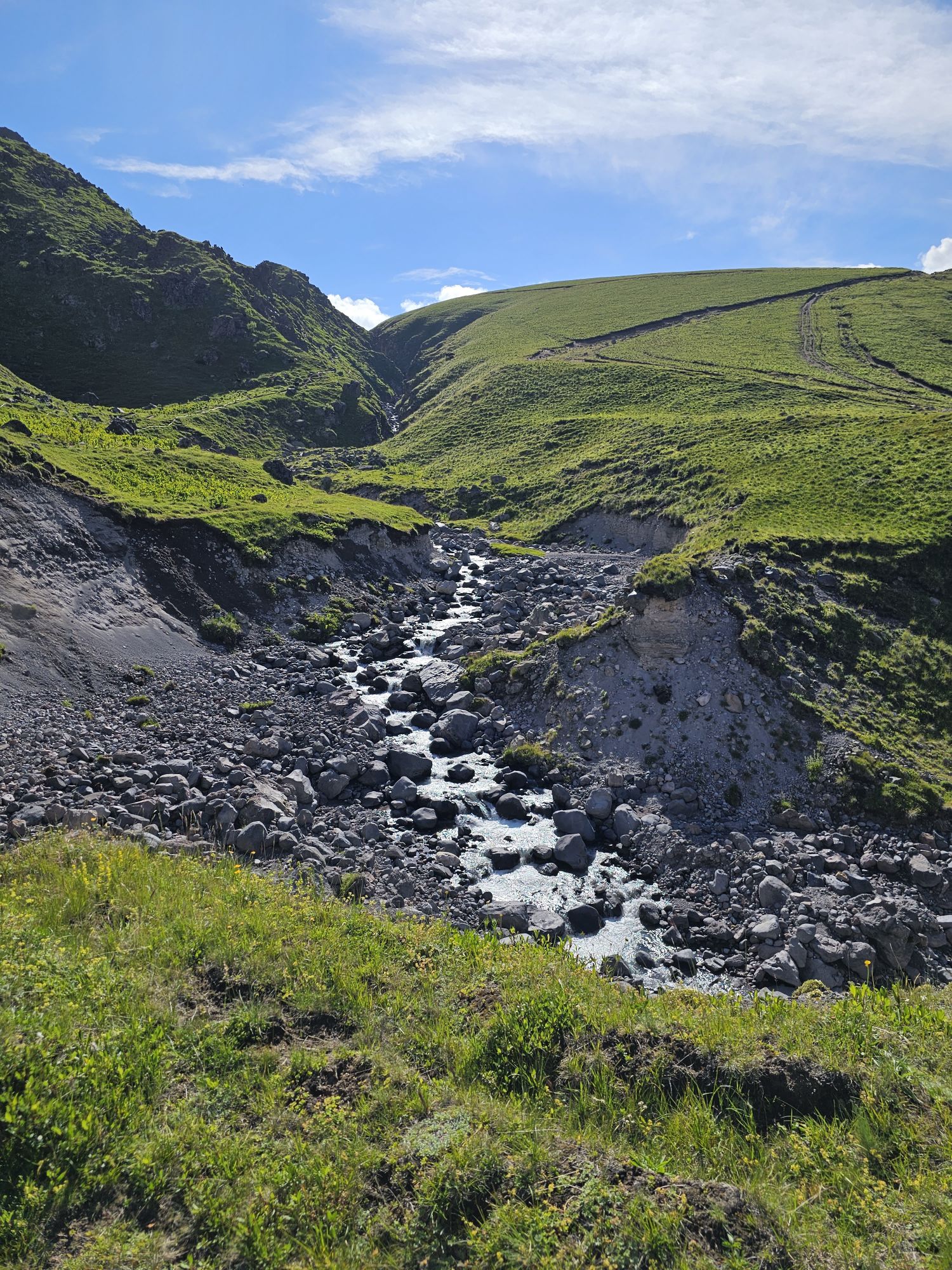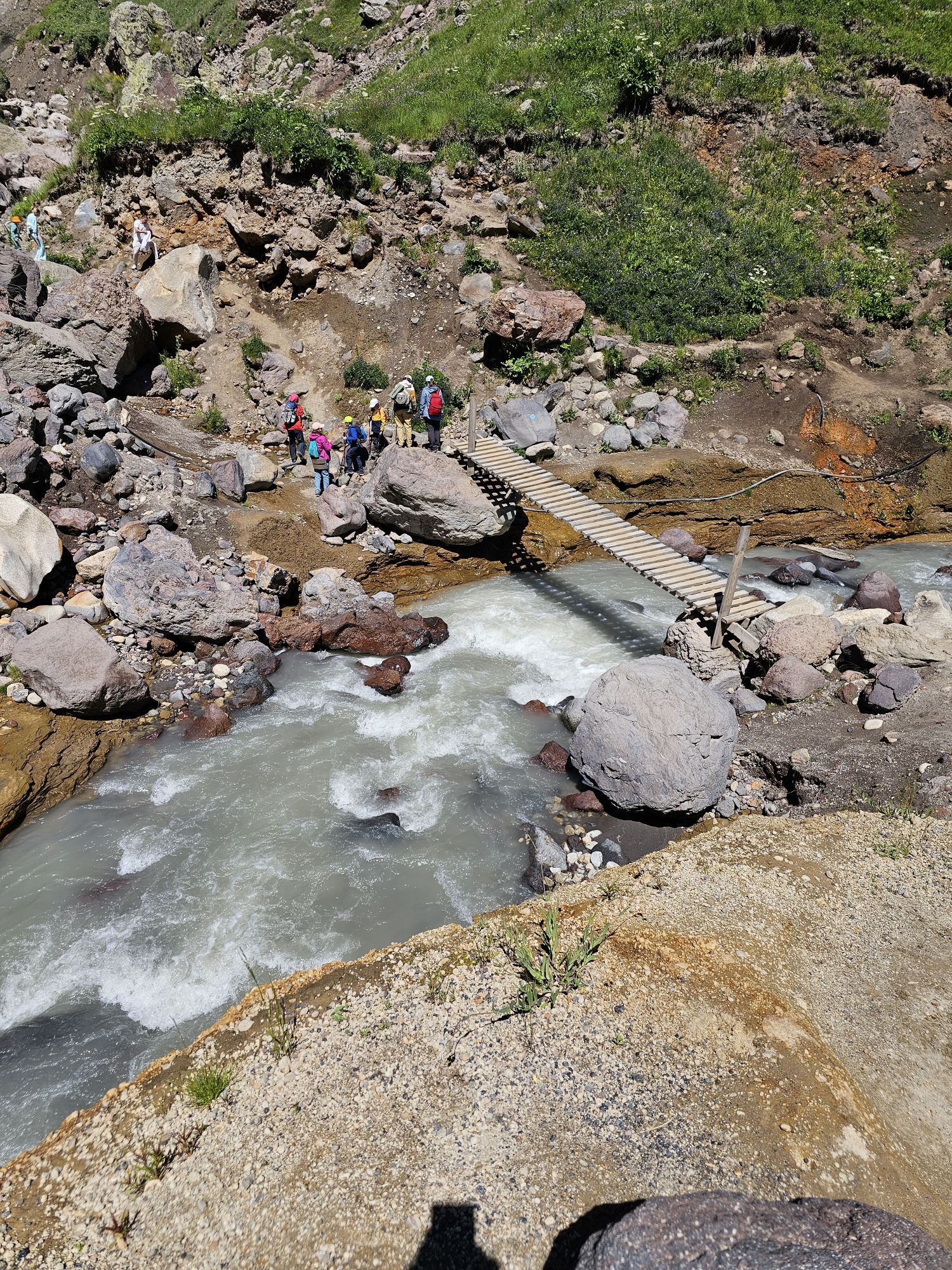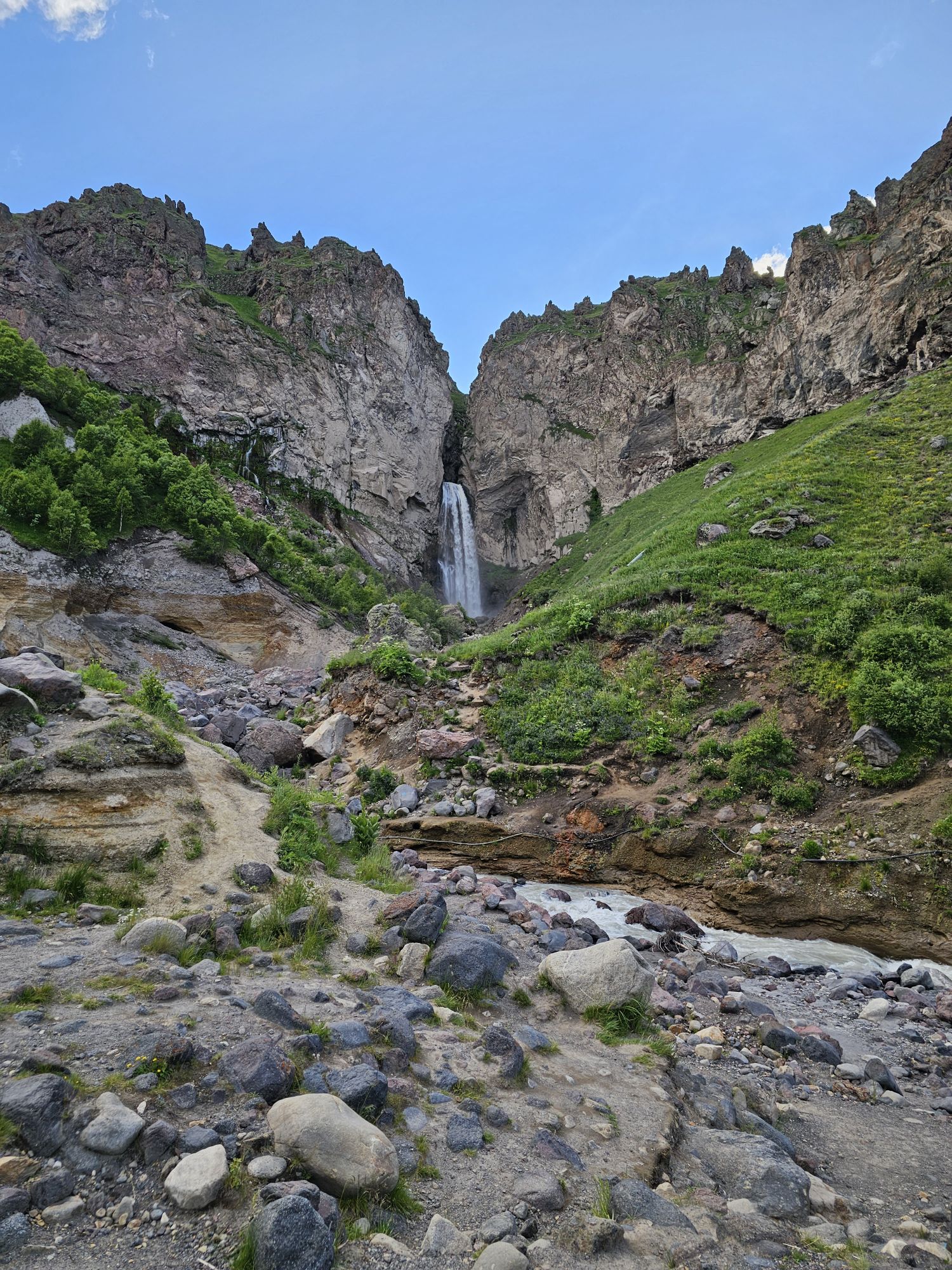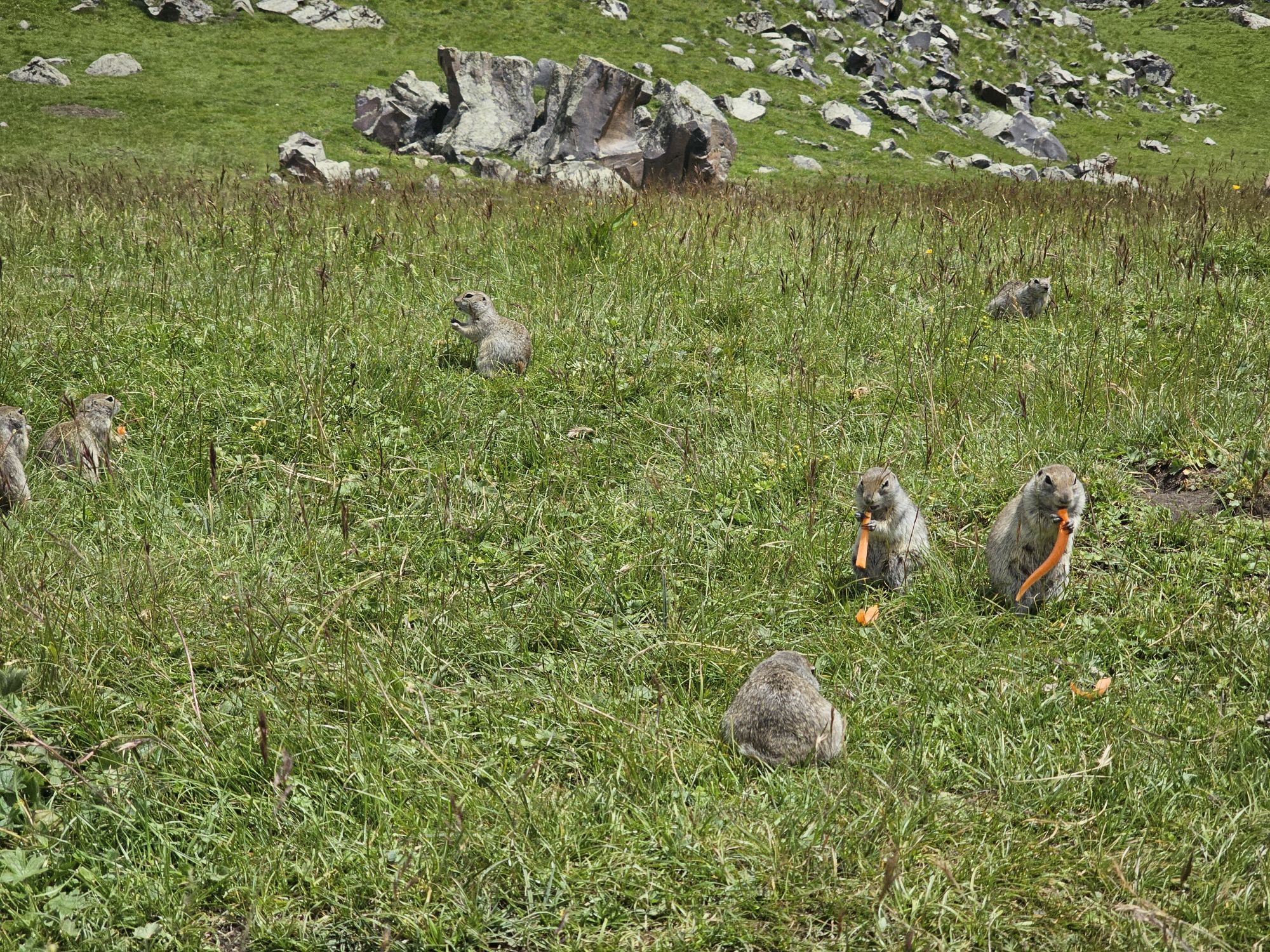 8 августа 2023 И теперь самое-самое. Я бы сказала, кульминация и апофеоз. И я сразу прошу прощения за много-фото. Но отобрать меньше из полутора тысяч сделанных в этот день кадров я так и не смогла... Джилы-су. Мы были тут два года назад и влюбились. И в дорогу, и в место. Но в прошлом году не сложилось приехать еще раз. И в этом мы твердо решили, что сделаем все, чтобы история не повторилась. Поэтому в первый же день практически без дождя в прогнозе мы встали пораньше и отправились по одной из самых красивых дорог... Забегая вперед, скажу, что дожди и непогода здесь порезвились знатно. На дороге было много свежих обвалов и огромных камней, а на подъездах к Джилы-су спешно разгребали последствия с помощью тяжелой техники, чтобы хоть как-то обеспечить проезд легковым... Так что мы лишний раз убедились, что с горами не шутят и прогнозом погоды желательно хоть немного интересоваться) А дорога...дорога красива с самого начала. Но очень скоро на горизонте вдруг показываются вершины великана Эльбруса и ты с трудом можешь отрвать от него глаз. Хотя тут желательно бы обладать способностями совы, чтобы не свернуть себе шею, пытаясь увидеть все... В какой-то момент мы зарулили на очередную смотровую. Она неожиданно оказалась платной (уж не знаю, насколько законно, но разбираться из-за 100р на всех не было желания). Но в целом этих денег не жалко. Во-первых, тут и правда классные виды и можно сделать эффектные фото и посидеть на краешке с видом на Эльбрус, а во-вторых, есть крутой бинокль, в который можно рассмотреть чуть ли не каждый валун на склоне Эльбруса. Впечатляет! (+в стоимость входят "путевые удобства") Ну а дальше снова дорога, петляющая по склонам крутыми серпантинами, где хочется останавливаться каждые 10 метров, а дух захватывает так, что единственная мысль, которая бьется в висок: "Так красиво не бывает. Ну не может быть так красиво!" И это все просто не умещается в тебе.... Интересно, если проехать по этой дороге сотню раз, станет она меньше волновать? Остался последний самый крутой спуск к реке Малка и подъем непосредственно к урочищу Джилы-су... вон та змейка за рекой - это наша дорога к урочищу) Оставляем машину, принимаем все возможные меры, чтобы не обгореть (помня прошлый печальный опыт) и делаем несколько кадров чуть ли не от машины. Ну здравствуй, Джилы-су! Спасибо, что пустил к себе в гости... Мы еще не успели дойти до поляны с нарзанами, а суслики уже поджидают)) И серая трясогузка заодно) Строго говоря, Джилы-су - это урочище, где есть источники нарзана. В основном железистые. А еще несколько водопадов (от источников виден один). Но я, когда говорю про Джилы-су, имею ввиду само урочище и дальнейшие пешие маршруты от него. Хотя бы и до поляны Эммануэля. Честно, не знаю, так же восторженно бы я отзывалась, если б меня привезли к урочищу и потом сразу обратно. Хотя уже одна дорога... После прошлого нашего приезда сюда здесь случился обвал (2 года назад). В реку уехало кафе и пристройки, пара источников, значительная часть обоих берегов, мост на ту сторону и часть дороги-подъема. Теперь все выглядит по-другому. И тем отчетливее ты понимаешь, какие горы... неподвластные никаким человеческим желаниям... Теперь мостик такой. Перил или троса нет. Немного качает. Дети перешли спокойно, а у меня поначалу ножки подогнулись и, постояв минут десять, глядя на все это и постепенно возв