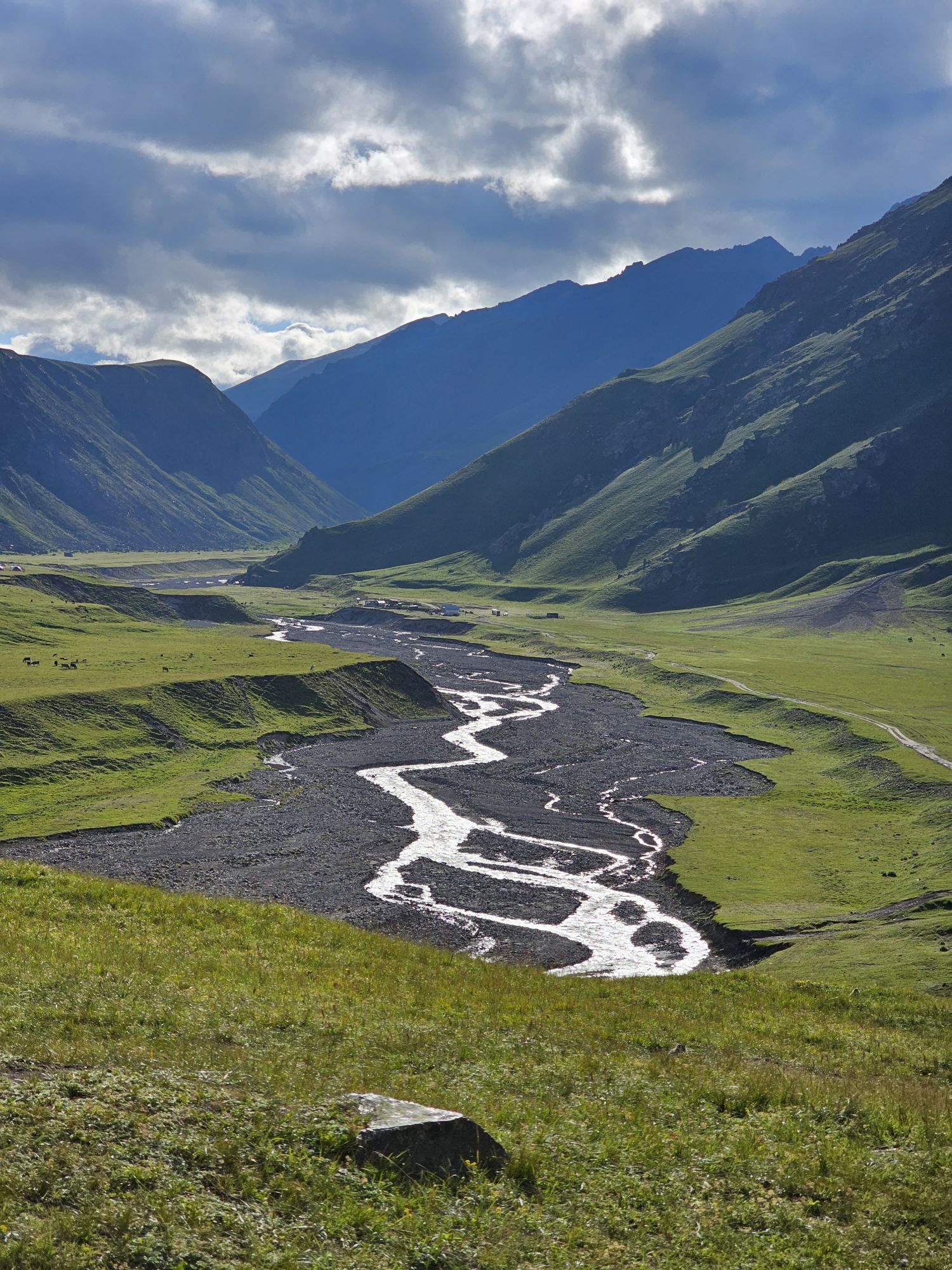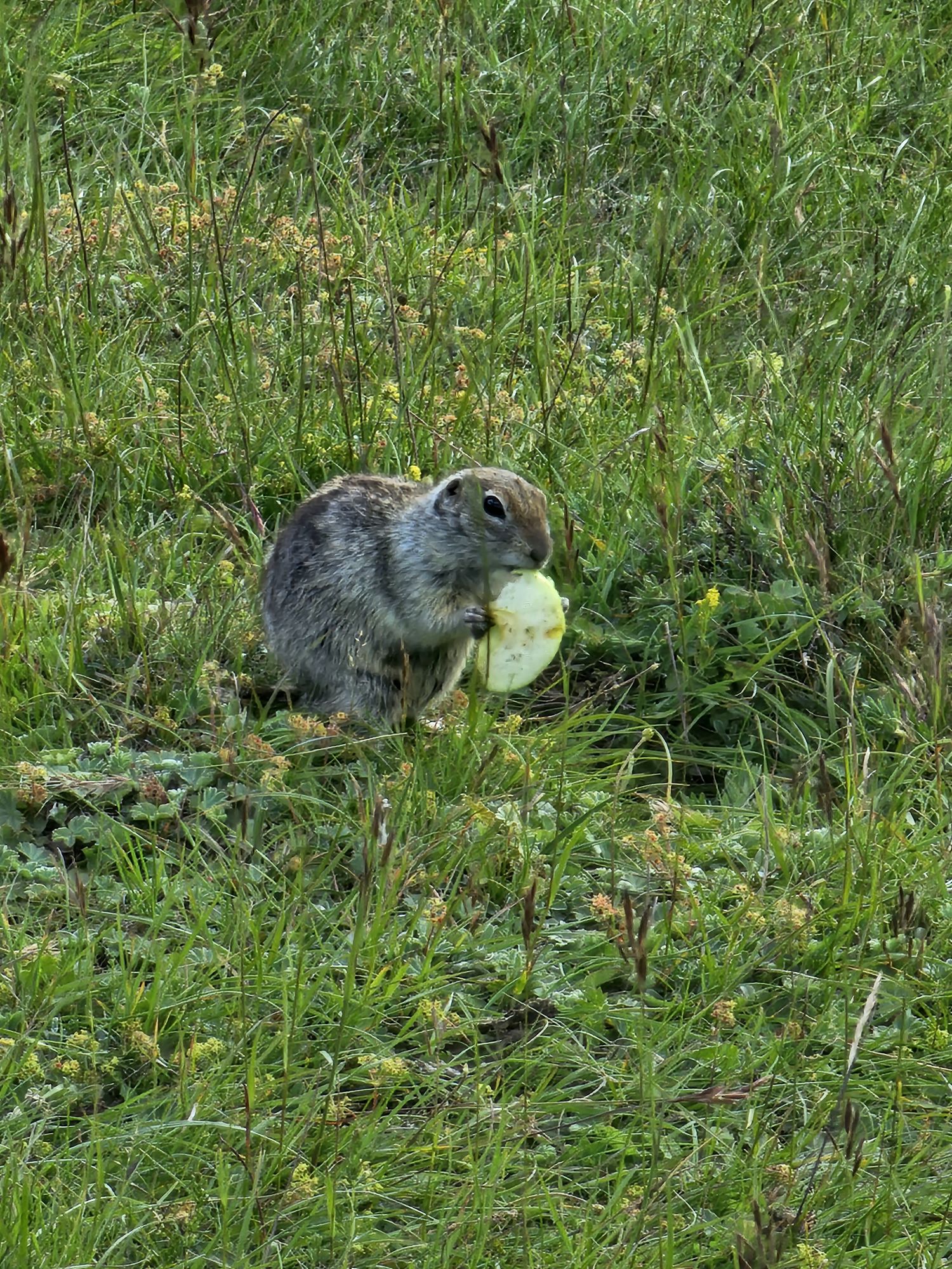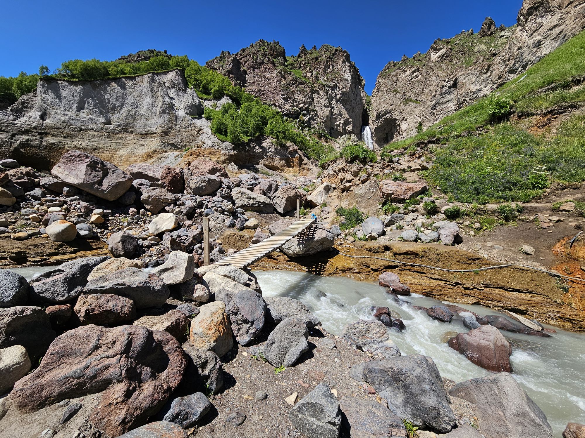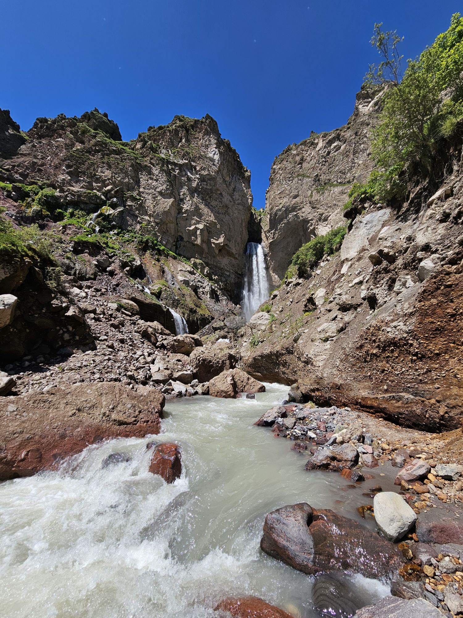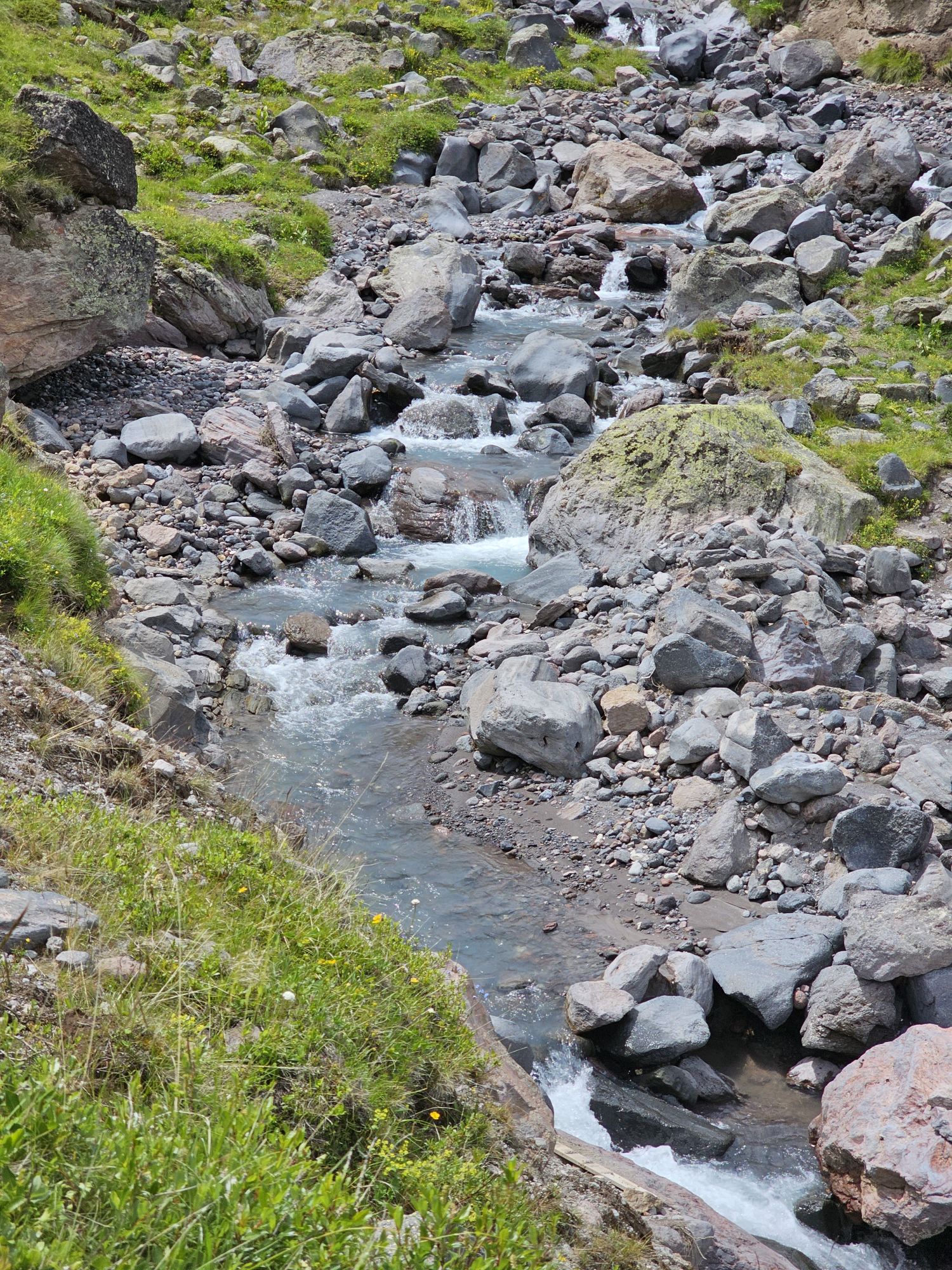 8 августа 2023 И теперь самое-самое. Я бы сказала, кульминация и апофеоз. И я сразу прошу прощения за много-фото. Но отобрать меньше из полутора тысяч сделанных в этот день кадров я так и не смогла... Джилы-су. Мы были тут два года назад и влюбились. И в дорогу, и в место. Но в прошлом году не сложилось приехать еще раз. И в этом мы твердо решили, что сделаем все, чтобы история не повторилась. Поэтому в первый же день практически без дождя в прогнозе мы встали пораньше и отправились по одной из самых красивых дорог... Забегая вперед, скажу, что дожди и непогода здесь порезвились знатно. На дороге было много свежих обвалов и огромных камней, а на подъездах к Джилы-су спешно разгребали последствия с помощью тяжелой техники, чтобы хоть как-то обеспечить проезд легковым... Так что мы лишний раз убедились, что с горами не шутят и прогнозом погоды желательно хоть немного интересоваться) А дорога...дорога красива с самого начала. Но очень скоро на горизонте вдруг показываются вершины великана Эльбруса и ты с трудом можешь отрвать от него глаз. Хотя тут желательно бы обладать способностями совы, чтобы не свернуть себе шею, пытаясь увидеть все... В какой-то момент мы зарулили на очередную смотровую. Она неожиданно оказалась платной (уж не знаю, насколько законно, но разбираться из-за 100р на всех не было желания). Но в целом этих денег не жалко. Во-первых, тут и правда классные виды и можно сделать эффектные фото и посидеть на краешке с видом на Эльбрус, а во-вторых, есть крутой бинокль, в который можно рассмотреть чуть ли не каждый валун на склоне Эльбруса. Впечатляет! (+в стоимость входят "путевые удобства") Ну а дальше снова дорога, петляющая по склонам крутыми серпантинами, где хочется останавливаться каждые 10 метров, а дух захватывает так, что единственная мысль, которая бьется в висок: "Так красиво не бывает. Ну не может быть так красиво!" И это все просто не умещается в тебе.... Интересно, если проехать по этой дороге сотню раз, станет она меньше волновать? Остался последний самый крутой спуск к реке Малка и подъем непосредственно к урочищу Джилы-су... вон та змейка за рекой - это наша дорога к урочищу) Оставляем машину, принимаем все возможные меры, чтобы не обгореть (помня прошлый печальный опыт) и делаем несколько кадров чуть ли не от машины. Ну здравствуй, Джилы-су! Спасибо, что пустил к себе в гости... Мы еще не успели дойти до поляны с нарзанами, а суслики уже поджидают)) И серая трясогузка заодно) Строго говоря, Джилы-су - это урочище, где есть источники нарзана. В основном железистые. А еще несколько водопадов (от источников виден один). Но я, когда говорю про Джилы-су, имею ввиду само урочище и дальнейшие пешие маршруты от него. Хотя бы и до поляны Эммануэля. Честно, не знаю, так же восторженно бы я отзывалась, если б меня привезли к урочищу и потом сразу обратно. Хотя уже одна дорога... После прошлого нашего приезда сюда здесь случился обвал (2 года назад). В реку уехало кафе и пристройки, пара источников, значительная часть обоих берегов, мост на ту сторону и часть дороги-подъема. Теперь все выглядит по-другому. И тем отчетливее ты понимаешь, какие горы... неподвластные никаким человеческим желаниям... Теперь мостик такой. Перил или троса нет. Немного качает. Дети перешли спокойно, а у меня поначалу ножки подогнулись и, постояв минут десять, глядя на все это и постепенно возв