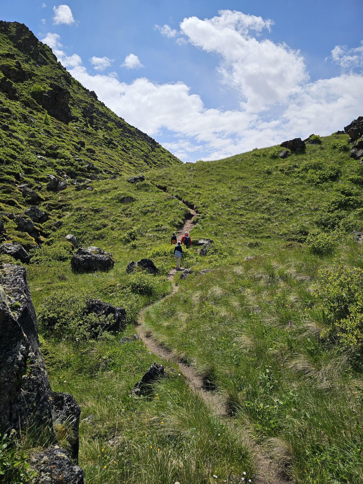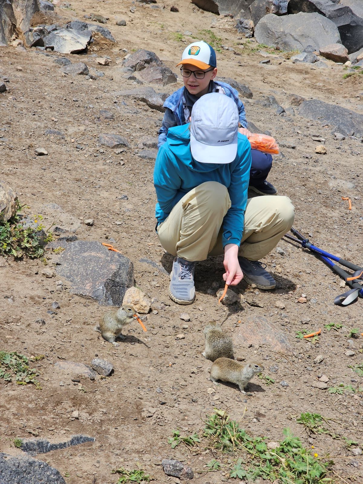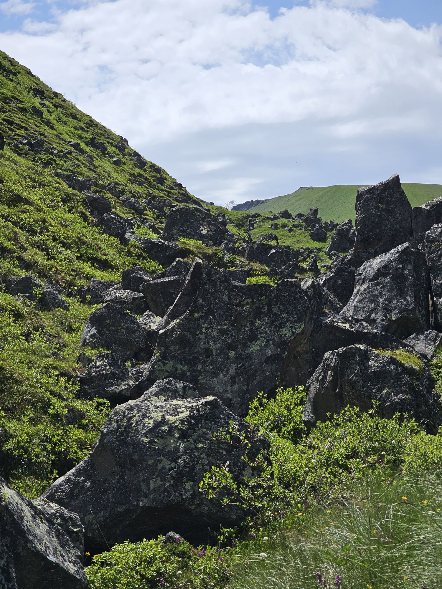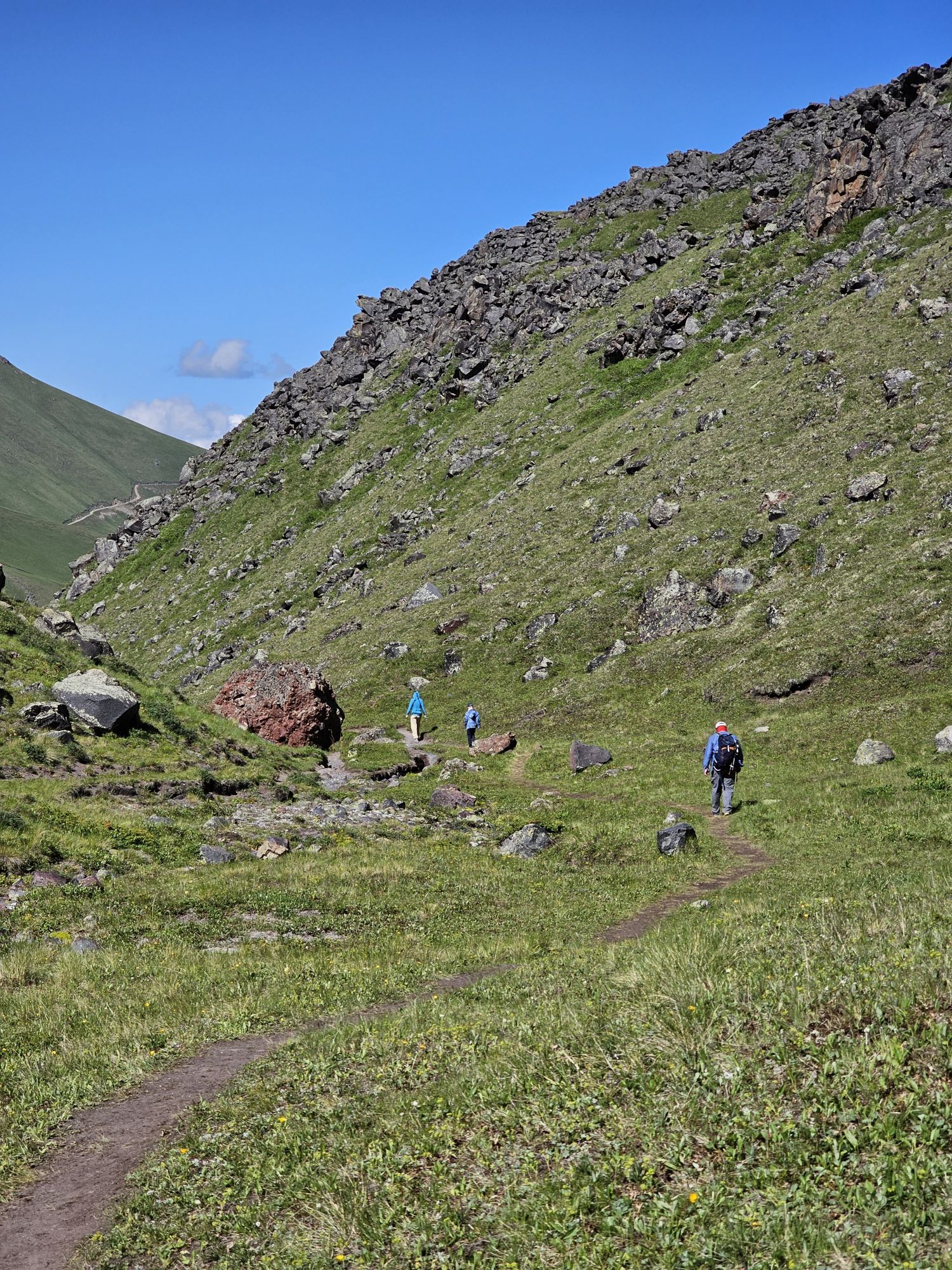 8 августа 2023 И теперь самое-самое. Я бы сказала, кульминация и апофеоз. И я сразу прошу прощения за много-фото. Но отобрать меньше из полутора тысяч сделанных в этот день кадров я так и не смогла... Джилы-су. Мы были тут два года назад и влюбились. И в дорогу, и в место. Но в прошлом году не сложилось приехать еще раз. И в этом мы твердо решили, что сделаем все, чтобы история не повторилась. Поэтому в первый же день практически без дождя в прогнозе мы встали пораньше и отправились по одной из самых красивых дорог... Забегая вперед, скажу, что дожди и непогода здесь порезвились знатно. На дороге было много свежих обвалов и огромных камней, а на подъездах к Джилы-су спешно разгребали последствия с помощью тяжелой техники, чтобы хоть как-то обеспечить проезд легковым... Так что мы лишний раз убедились, что с горами не шутят и прогнозом погоды желательно хоть немного интересоваться) А дорога...дорога красива с самого начала. Но очень скоро на горизонте вдруг показываются вершины великана Эльбруса и ты с трудом можешь отрвать от него глаз. Хотя тут желательно бы обладать способностями совы, чтобы не свернуть себе шею, пытаясь увидеть все... В какой-то момент мы зарулили на очередную смотровую. Она неожиданно оказалась платной (уж не знаю, насколько законно, но разбираться из-за 100р на всех не было желания). Но в целом этих денег не жалко. Во-первых, тут и правда классные виды и можно сделать эффектные фото и посидеть на краешке с видом на Эльбрус, а во-вторых, есть крутой бинокль, в который можно рассмотреть чуть ли не каждый валун на склоне Эльбруса. Впечатляет! (+в стоимость входят "путевые удобства") Ну а дальше снова дорога, петляющая по склонам крутыми серпантинами, где хочется останавливаться каждые 10 метров, а дух захватывает так, что единственная мысль, которая бьется в висок: "Так красиво не бывает. Ну не может быть так красиво!" И это все просто не умещается в тебе.... Интересно, если проехать по этой дороге сотню раз, станет она меньше волновать? Остался последний самый крутой спуск к реке Малка и подъем непосредственно к урочищу Джилы-су... вон та змейка за рекой - это наша дорога к урочищу) Оставляем машину, принимаем все возможные меры, чтобы не обгореть (помня прошлый печальный опыт) и делаем несколько кадров чуть ли не от машины. Ну здравствуй, Джилы-су! Спасибо, что пустил к себе в гости... Мы еще не успели дойти до поляны с нарзанами, а суслики уже поджидают)) И серая трясогузка заодно) Строго говоря, Джилы-су - это урочище, где есть источники нарзана. В основном железистые. А еще несколько водопадов (от источников виден один). Но я, когда говорю про Джилы-су, имею ввиду само урочище и дальнейшие пешие маршруты от него. Хотя бы и до поляны Эммануэля. Честно, не знаю, так же восторженно бы я отзывалась, если б меня привезли к урочищу и потом сразу обратно. Хотя уже одна дорога... После прошлого нашего приезда сюда здесь случился обвал (2 года назад). В реку уехало кафе и пристройки, пара источников, значительная часть обоих берегов, мост на ту сторону и часть дороги-подъема. Теперь все выглядит по-другому. И тем отчетливее ты понимаешь, какие горы... неподвластные никаким человеческим желаниям... Теперь мостик такой. Перил или троса нет. Немного качает. Дети перешли спокойно, а у меня поначалу ножки подогнулись и, постояв минут десять, глядя на все это и постепенно возв