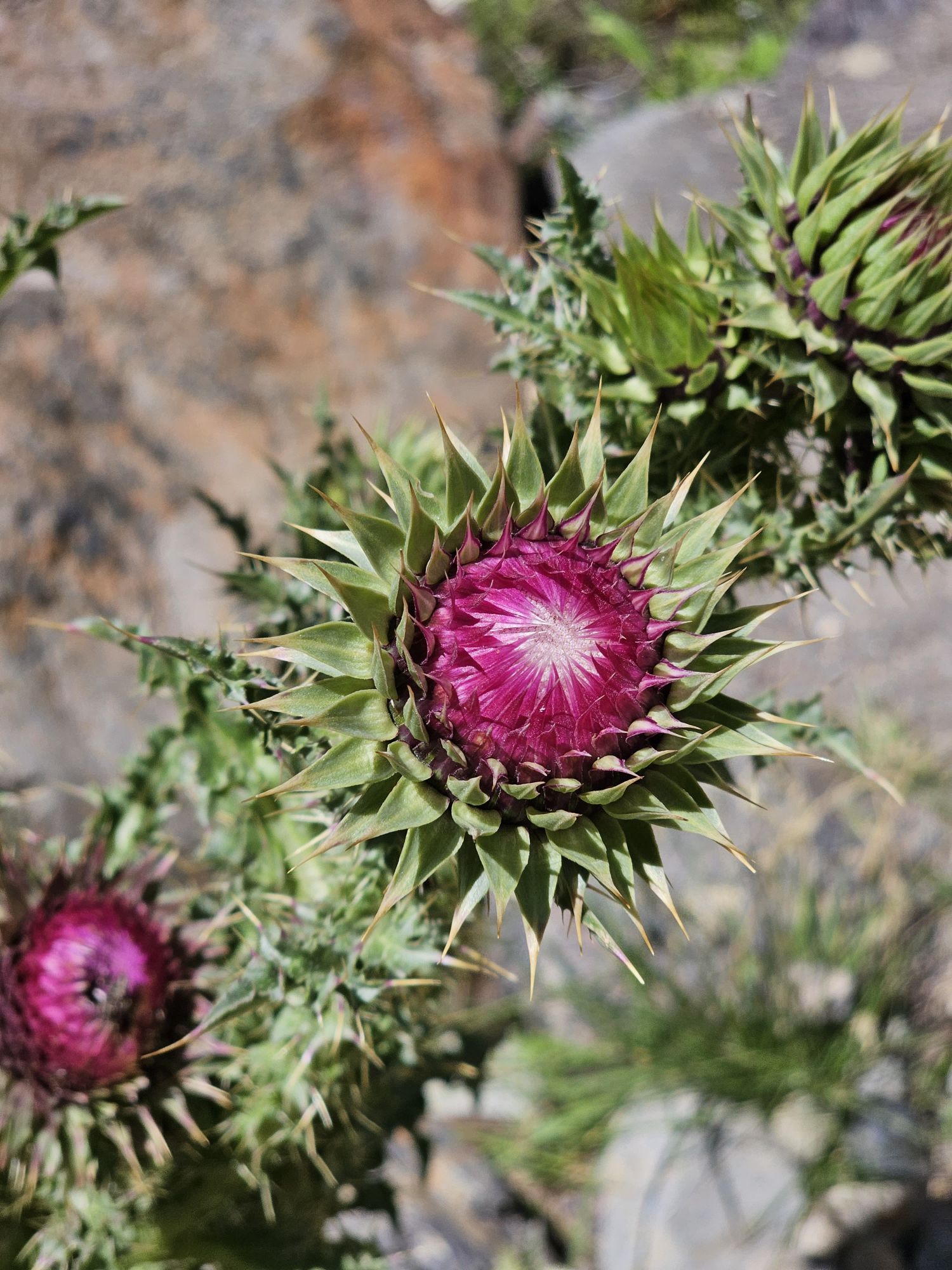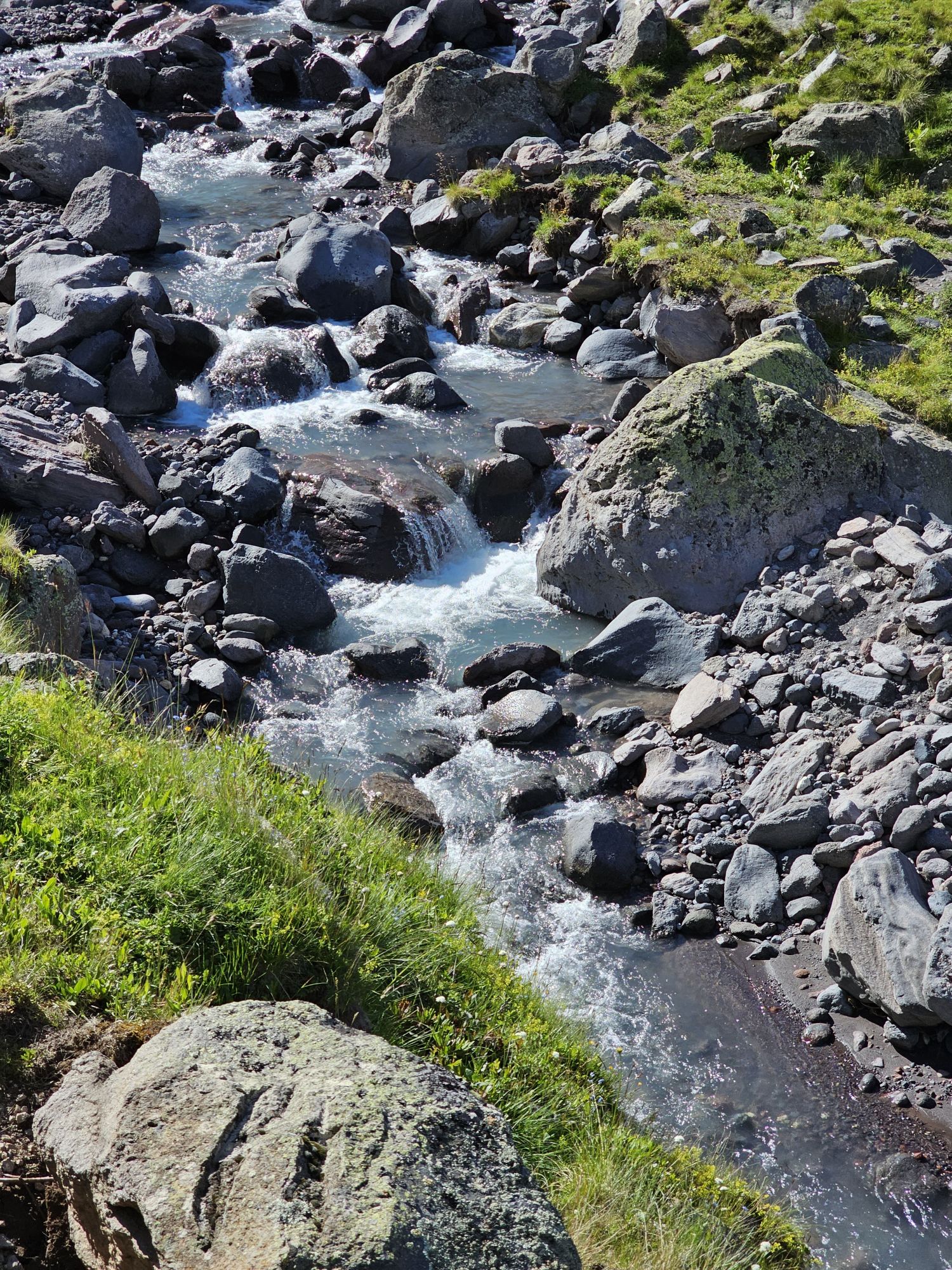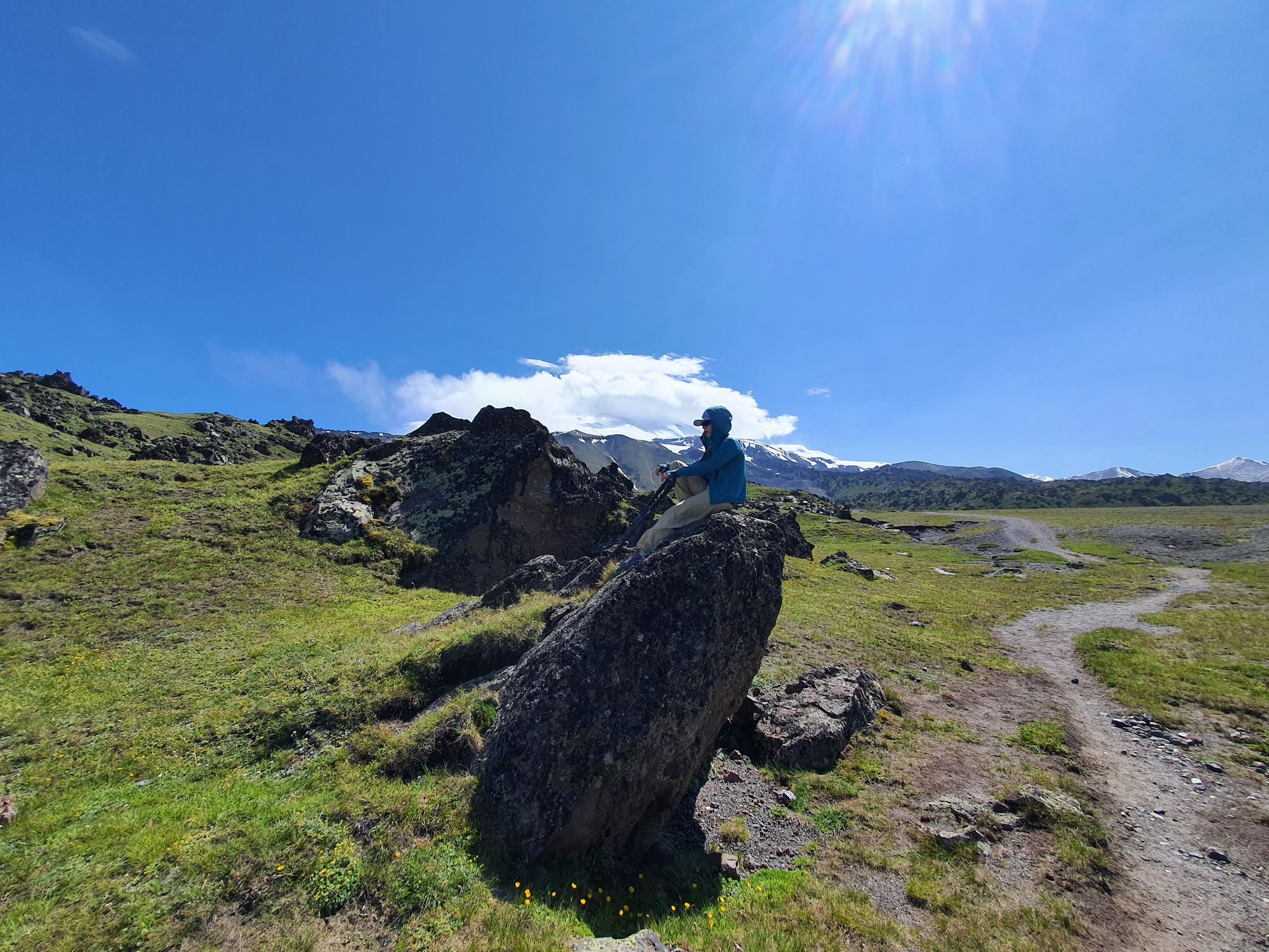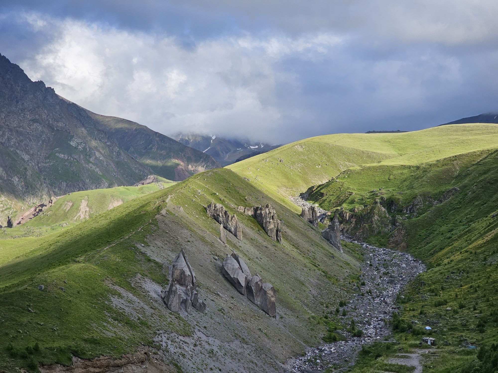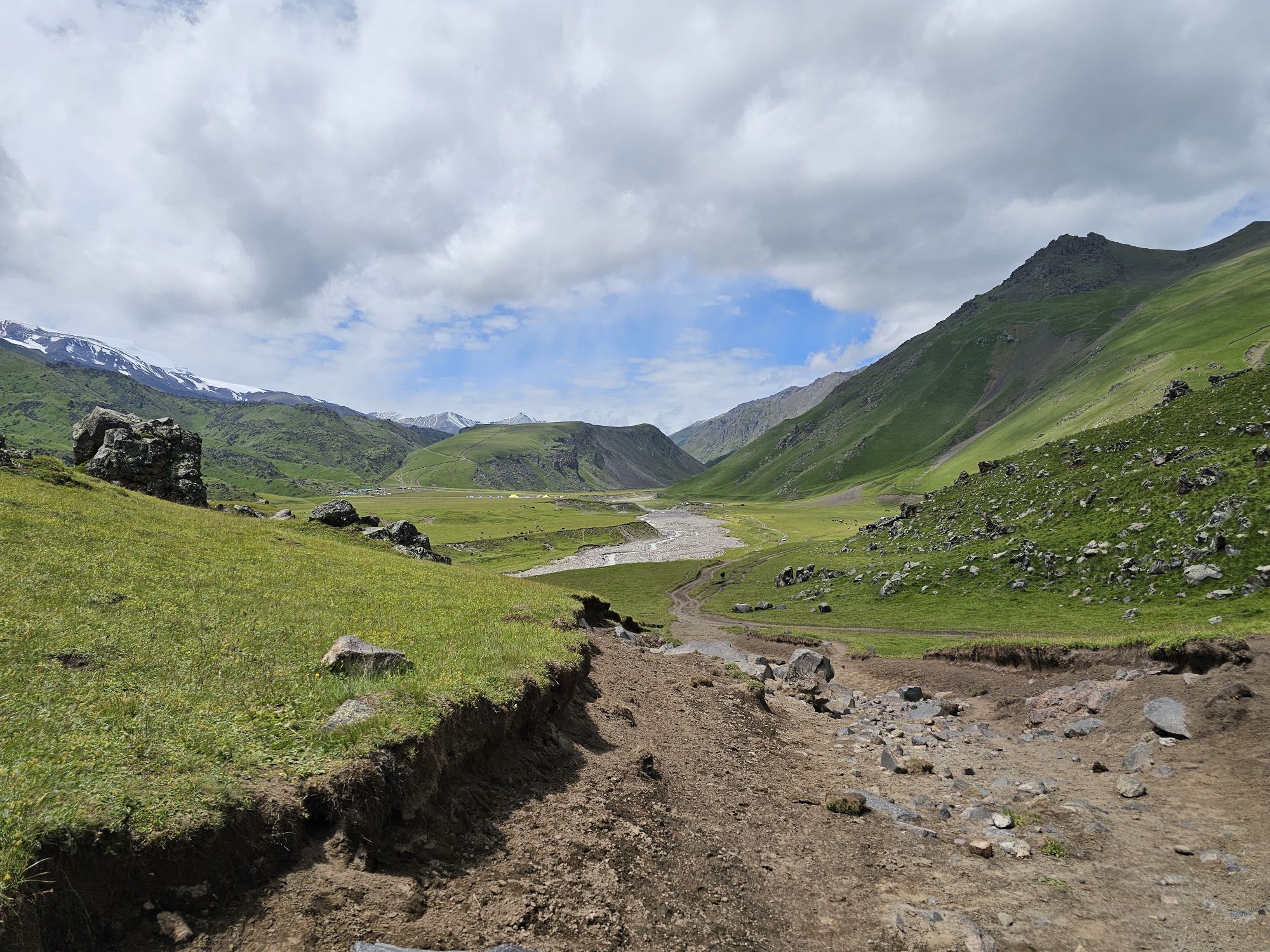 8 августа 2023 И теперь самое-самое. Я бы сказала, кульминация и апофеоз. И я сразу прошу прощения за много-фото. Но отобрать меньше из полутора тысяч сделанных в этот день кадров я так и не смогла... Джилы-су. Мы были тут два года назад и влюбились. И в дорогу, и в место. Но в прошлом году не сложилось приехать еще раз. И в этом мы твердо решили, что сделаем все, чтобы история не повторилась. Поэтому в первый же день практически без дождя в прогнозе мы встали пораньше и отправились по одной из самых красивых дорог... Забегая вперед, скажу, что дожди и непогода здесь порезвились знатно. На дороге было много свежих обвалов и огромных камней, а на подъездах к Джилы-су спешно разгребали последствия с помощью тяжелой техники, чтобы хоть как-то обеспечить проезд легковым... Так что мы лишний раз убедились, что с горами не шутят и прогнозом погоды желательно хоть немного интересоваться) А дорога...дорога красива с самого начала. Но очень скоро на горизонте вдруг показываются вершины великана Эльбруса и ты с трудом можешь отрвать от него глаз. Хотя тут желательно бы обладать способностями совы, чтобы не свернуть себе шею, пытаясь увидеть все... В какой-то момент мы зарулили на очередную смотровую. Она неожиданно оказалась платной (уж не знаю, насколько законно, но разбираться из-за 100р на всех не было желания). Но в целом этих денег не жалко. Во-первых, тут и правда классные виды и можно сделать эффектные фото и посидеть на краешке с видом на Эльбрус, а во-вторых, есть крутой бинокль, в который можно рассмотреть чуть ли не каждый валун на склоне Эльбруса. Впечатляет! (+в стоимость входят "путевые удобства") Ну а дальше снова дорога, петляющая по склонам крутыми серпантинами, где хочется останавливаться каждые 10 метров, а дух захватывает так, что единственная мысль, которая бьется в висок: "Так красиво не бывает. Ну не может быть так красиво!" И это все просто не умещается в тебе.... Интересно, если проехать по этой дороге сотню раз, станет она меньше волновать? Остался последний самый крутой спуск к реке Малка и подъем непосредственно к урочищу Джилы-су... вон та змейка за рекой - это наша дорога к урочищу) Оставляем машину, принимаем все возможные меры, чтобы не обгореть (помня прошлый печальный опыт) и делаем несколько кадров чуть ли не от машины. Ну здравствуй, Джилы-су! Спасибо, что пустил к себе в гости... Мы еще не успели дойти до поляны с нарзанами, а суслики уже поджидают)) И серая трясогузка заодно) Строго говоря, Джилы-су - это урочище, где есть источники нарзана. В основном железистые. А еще несколько водопадов (от источников виден один). Но я, когда говорю про Джилы-су, имею ввиду само урочище и дальнейшие пешие маршруты от него. Хотя бы и до поляны Эммануэля. Честно, не знаю, так же восторженно бы я отзывалась, если б меня привезли к урочищу и потом сразу обратно. Хотя уже одна дорога... После прошлого нашего приезда сюда здесь случился обвал (2 года назад). В реку уехало кафе и пристройки, пара источников, значительная часть обоих берегов, мост на ту сторону и часть дороги-подъема. Теперь все выглядит по-другому. И тем отчетливее ты понимаешь, какие горы... неподвластные никаким человеческим желаниям... Теперь мостик такой. Перил или троса нет. Немного качает. Дети перешли спокойно, а у меня поначалу ножки подогнулись и, постояв минут десять, глядя на все это и постепенно возв