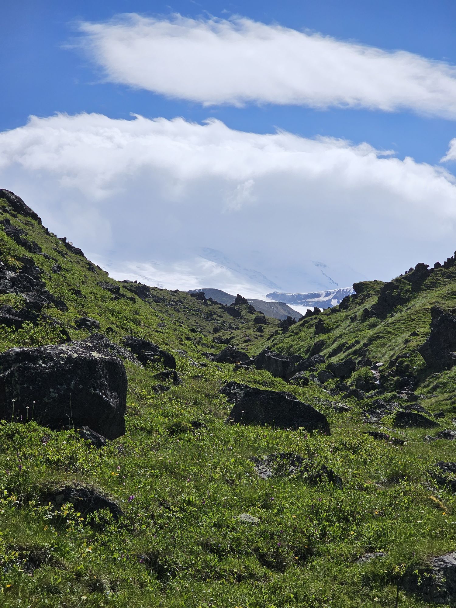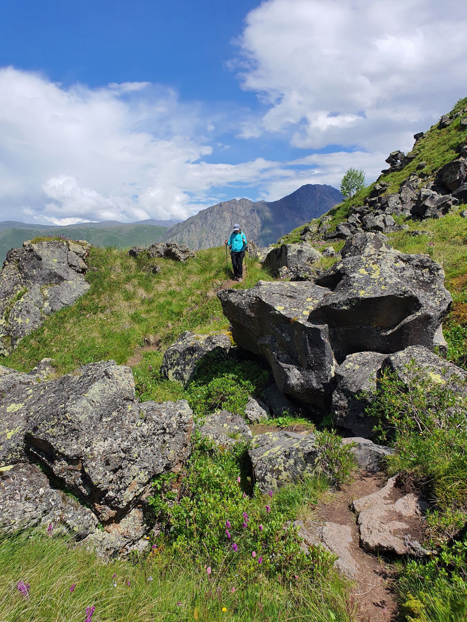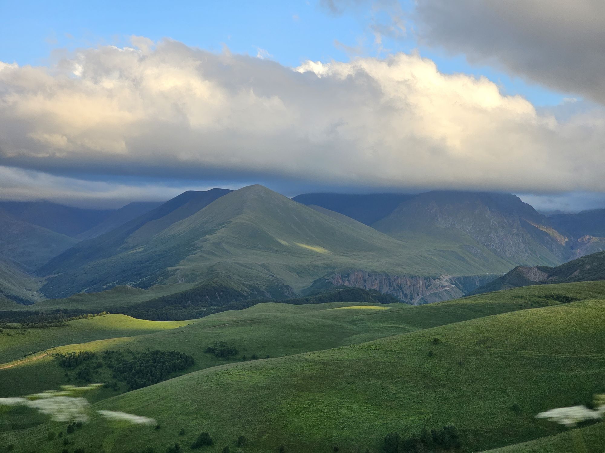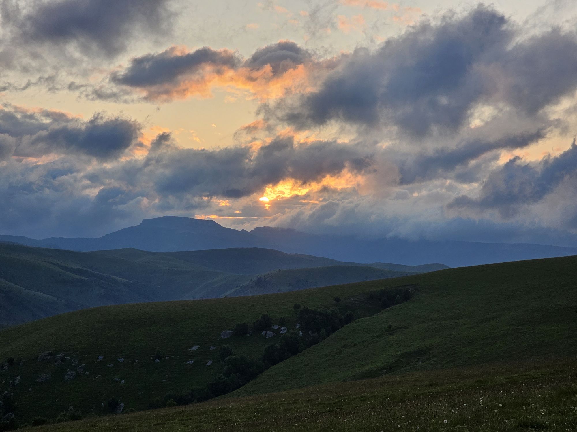 8 августа 2023 продолжение Спуск проходил по уже знакомой дороге. Но на таком внутреннем подъеме, что ты смотрел на все будто новыми глазами. Больше не нужно было беречь силы и очень уж экономить время: расклад был примерно понятен. А оттого еще больше цветов попало в кадр. Даже совсем крошечный рододендрон раскрыл свои цветы. Взрослые его собратья уже в основном отцвели на таких высотах. А какая каменная птичка на первом кадре?! Удивительно, что я ее по дороге "туда" не заметила) К вопросу о горных коровах)) Меж тем солнце уже золотило вечерним мягким светом все вокруг, мир приобретал новые краски, вода в речке искрилась, будто ограненные драгоценные камни... Подошли к переправе. Эх, как и следовало ожидать, воды сильно прибавилось. Это для лета и ледниковых рек очень характерно: днем ледник активно тает, и к вечеру воды в таких речках становится прилично больше. Мы перешли еще нормально, хотя меня едва не сшибло в какой-то момент потоком. Но уровень воды уже был заметно выше колена и детей пришлось переправлять так. Эльбрус к этому времени почти совсем очистился от облаков. Да и вся поляна в таком свете была просто волшебной. - вот на этом месте река и входит в ущелье, из которого потом извергается водопадом Султан. По пути еще и яблоки сусликам скормили)) А потом стали спускаться к Джилы-су, бросив последний взгляд на Эльбрус и мысленно поблагодарив его за хорошую погоду и за то, что позволил увидеть свои снежные вершины. А вечернее солнце меж тем продолжало раскрашивать все вокруг самым волшебным образом... А дальше... дальше снова была эта невероятная дорога! Только на этот раз с волшебным золотым светом, облаками, лежащими прямо на вершинах, утыкающимся в облако полотном дороги и... и невероятным закатом Нужны ли тут слова? Думаю, нет. Это было.... потрясающе. Настолько, что я до сих пор не готова перекрывать эти ощущения и впечатления чем-то серьезным. Стоит ли говорить, что обязательно хочется вернуться в эти места? Уже даже готовы наброски нескольких вариантов дневных походов в этих местах. Например, самое очевидное, к Каменным грибам. И, наконец, уже увидеть самый большой водопад этих мест, на который снова не хватило времени. И... быть может когда-то дозрею и до того, чтобы пожить тут с палаткой. Но это все пока мечты. Чудесные мечты. Не менее приятные, чем уже случившееся путешествие Гало4ка, Фро-J, Bogdan и 22 других сказали спасибо Поделиться сообщением Ссылка на сообщение