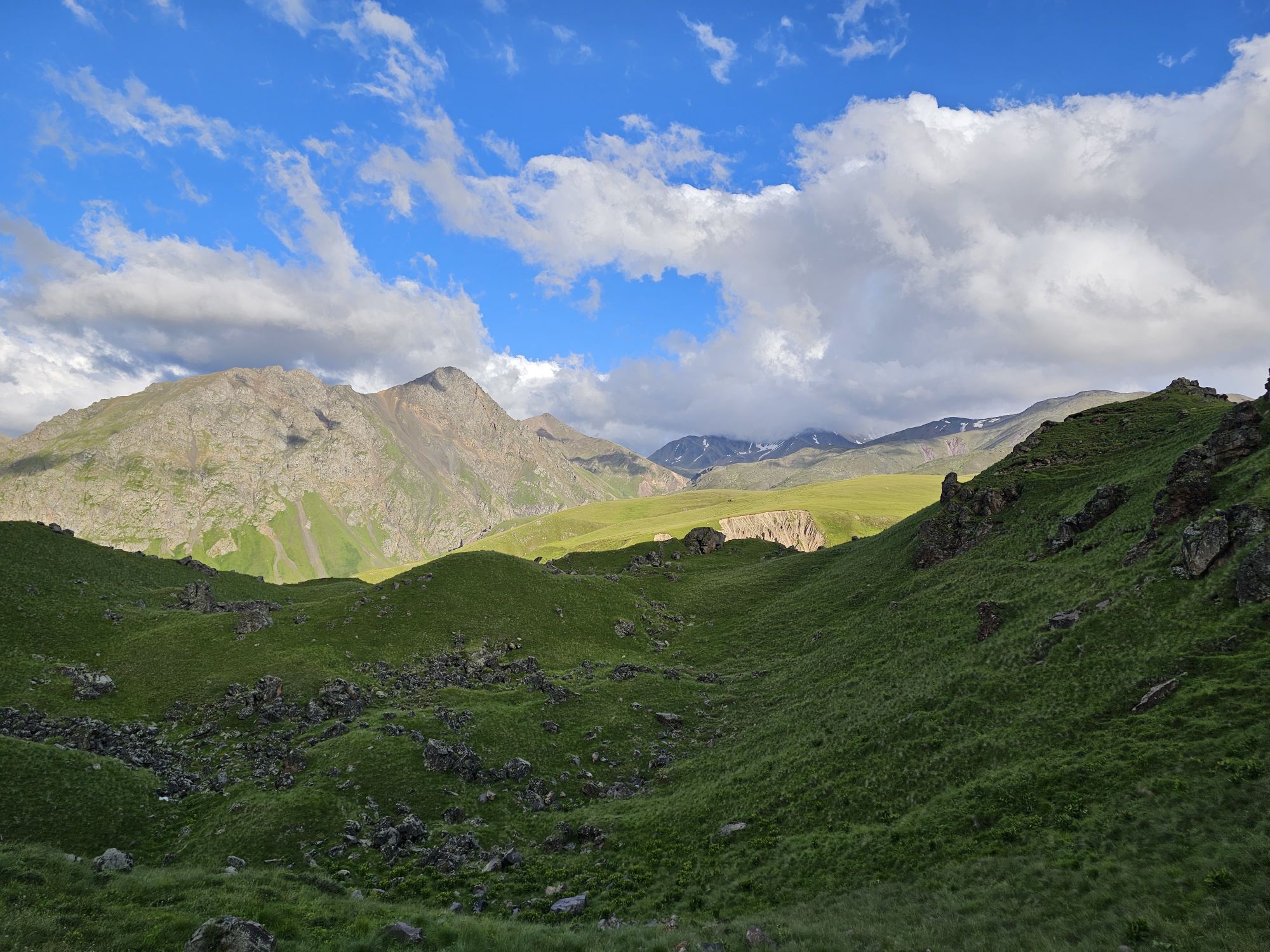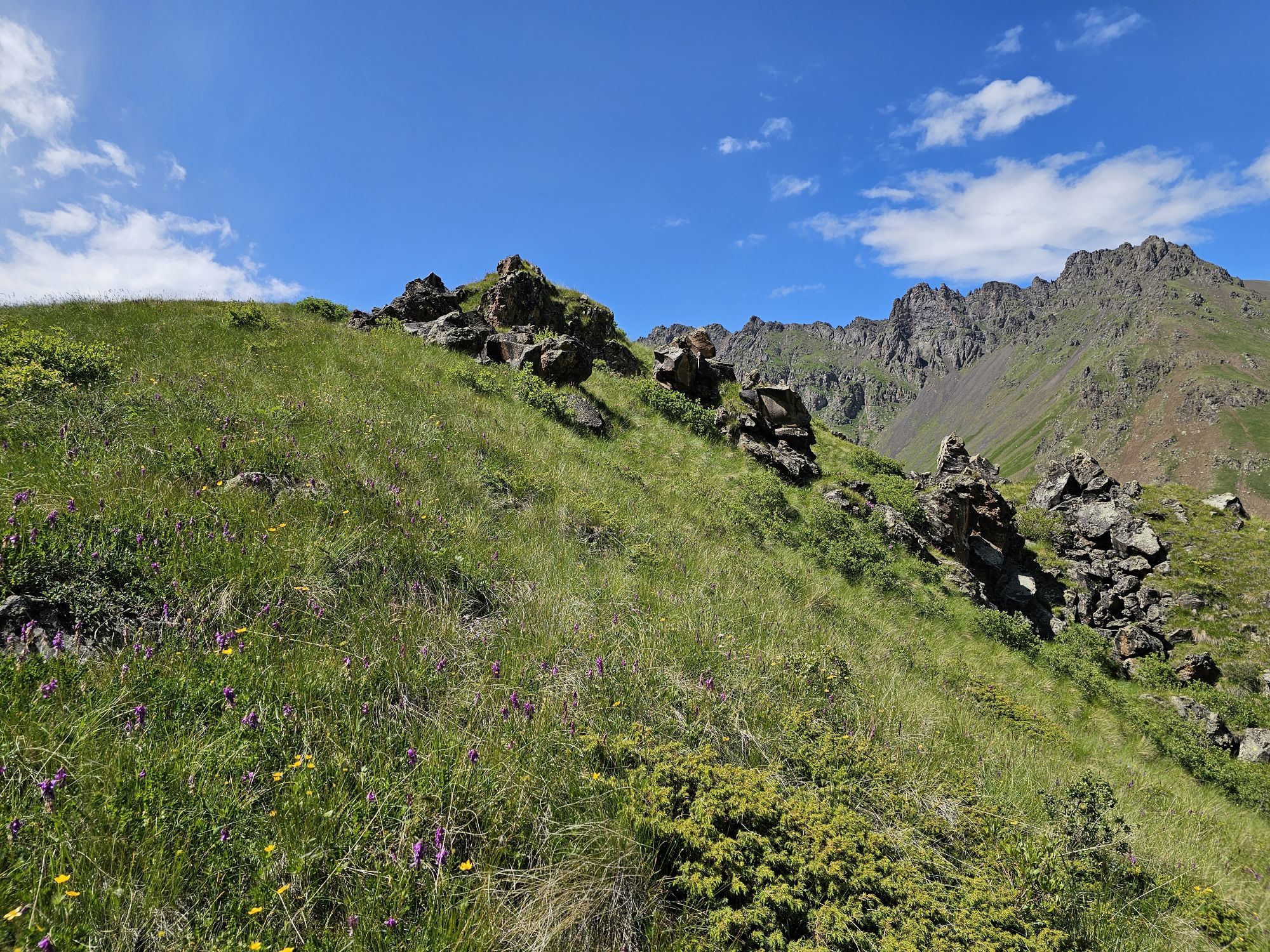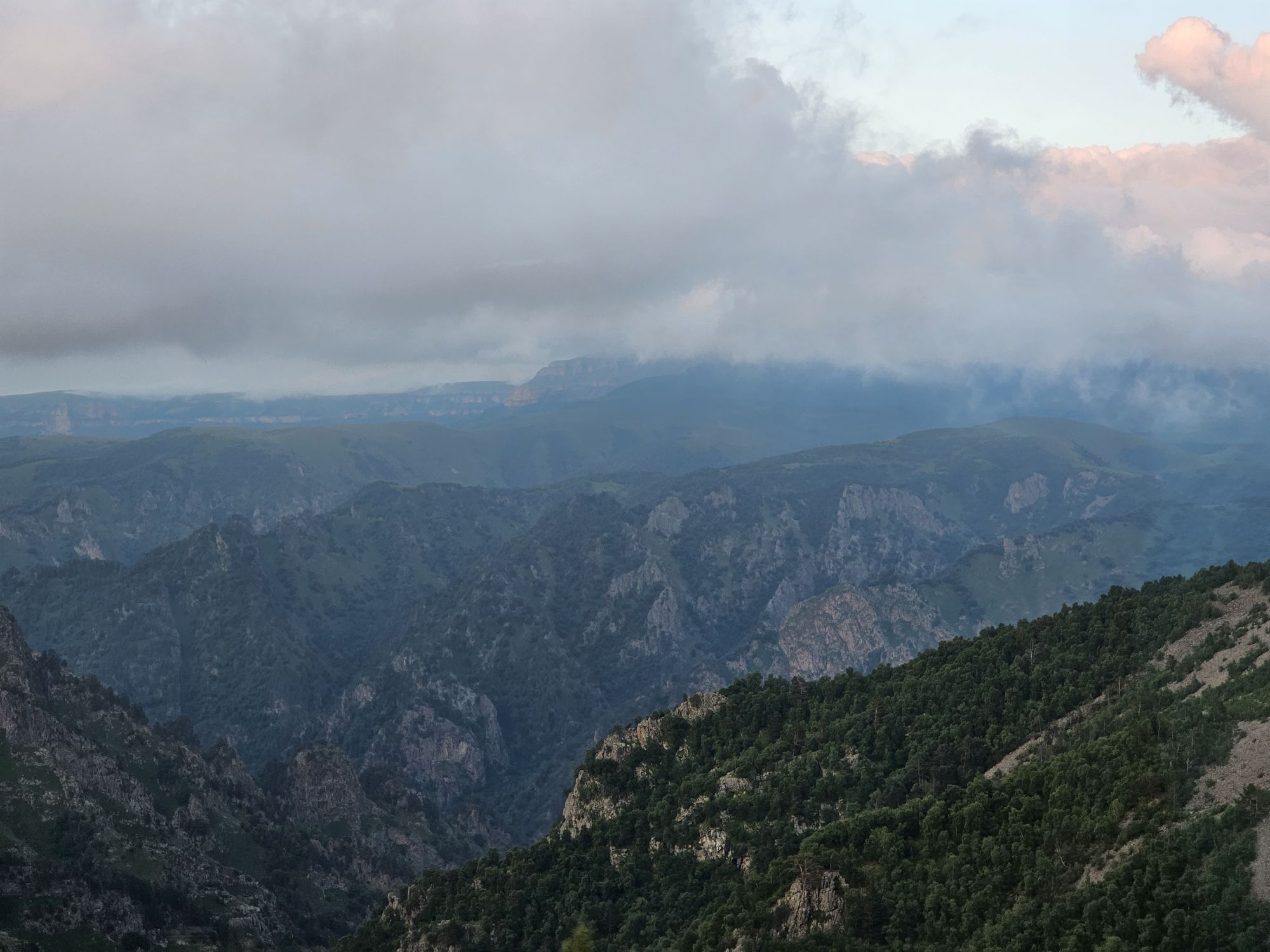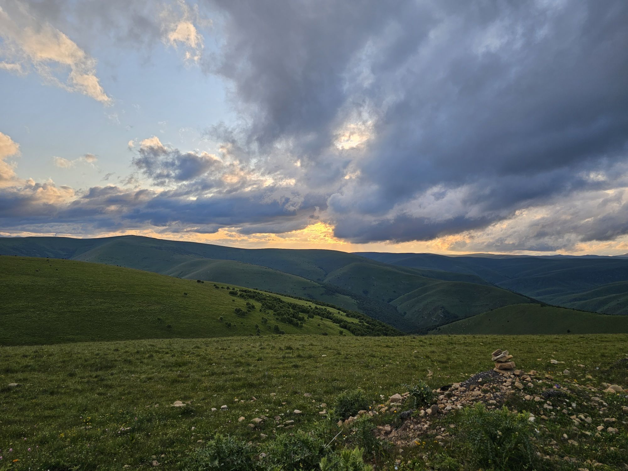 8 августа 2023 продолжение Спуск проходил по уже знакомой дороге. Но на таком внутреннем подъеме, что ты смотрел на все будто новыми глазами. Больше не нужно было беречь силы и очень уж экономить время: расклад был примерно понятен. А оттого еще больше цветов попало в кадр. Даже совсем крошечный рододендрон раскрыл свои цветы. Взрослые его собратья уже в основном отцвели на таких высотах. А какая каменная птичка на первом кадре?! Удивительно, что я ее по дороге "туда" не заметила) К вопросу о горных коровах)) Меж тем солнце уже золотило вечерним мягким светом все вокруг, мир приобретал новые краски, вода в речке искрилась, будто ограненные драгоценные камни... Подошли к переправе. Эх, как и следовало ожидать, воды сильно прибавилось. Это для лета и ледниковых рек очень характерно: днем ледник активно тает, и к вечеру воды в таких речках становится прилично больше. Мы перешли еще нормально, хотя меня едва не сшибло в какой-то момент потоком. Но уровень воды уже был заметно выше колена и детей пришлось переправлять так. Эльбрус к этому времени почти совсем очистился от облаков. Да и вся поляна в таком свете была просто волшебной. - вот на этом месте река и входит в ущелье, из которого потом извергается водопадом Султан. По пути еще и яблоки сусликам скормили)) А потом стали спускаться к Джилы-су, бросив последний взгляд на Эльбрус и мысленно поблагодарив его за хорошую погоду и за то, что позволил увидеть свои снежные вершины. А вечернее солнце меж тем продолжало раскрашивать все вокруг самым волшебным образом... А дальше... дальше снова была эта невероятная дорога! Только на этот раз с волшебным золотым светом, облаками, лежащими прямо на вершинах, утыкающимся в облако полотном дороги и... и невероятным закатом Нужны ли тут слова? Думаю, нет. Это было.... потрясающе. Настолько, что я до сих пор не готова перекрывать эти ощущения и впечатления чем-то серьезным. Стоит ли говорить, что обязательно хочется вернуться в эти места? Уже даже готовы наброски нескольких вариантов дневных походов в этих местах. Например, самое очевидное, к Каменным грибам. И, наконец, уже увидеть самый большой водопад этих мест, на который снова не хватило времени. И... быть может когда-то дозрею и до того, чтобы пожить тут с палаткой. Но это все пока мечты. Чудесные мечты. Не менее приятные, чем уже случившееся путешествие Гало4ка, Фро-J, Bogdan и 22 других сказали спасибо Поделиться сообщением Ссылка на сообщение