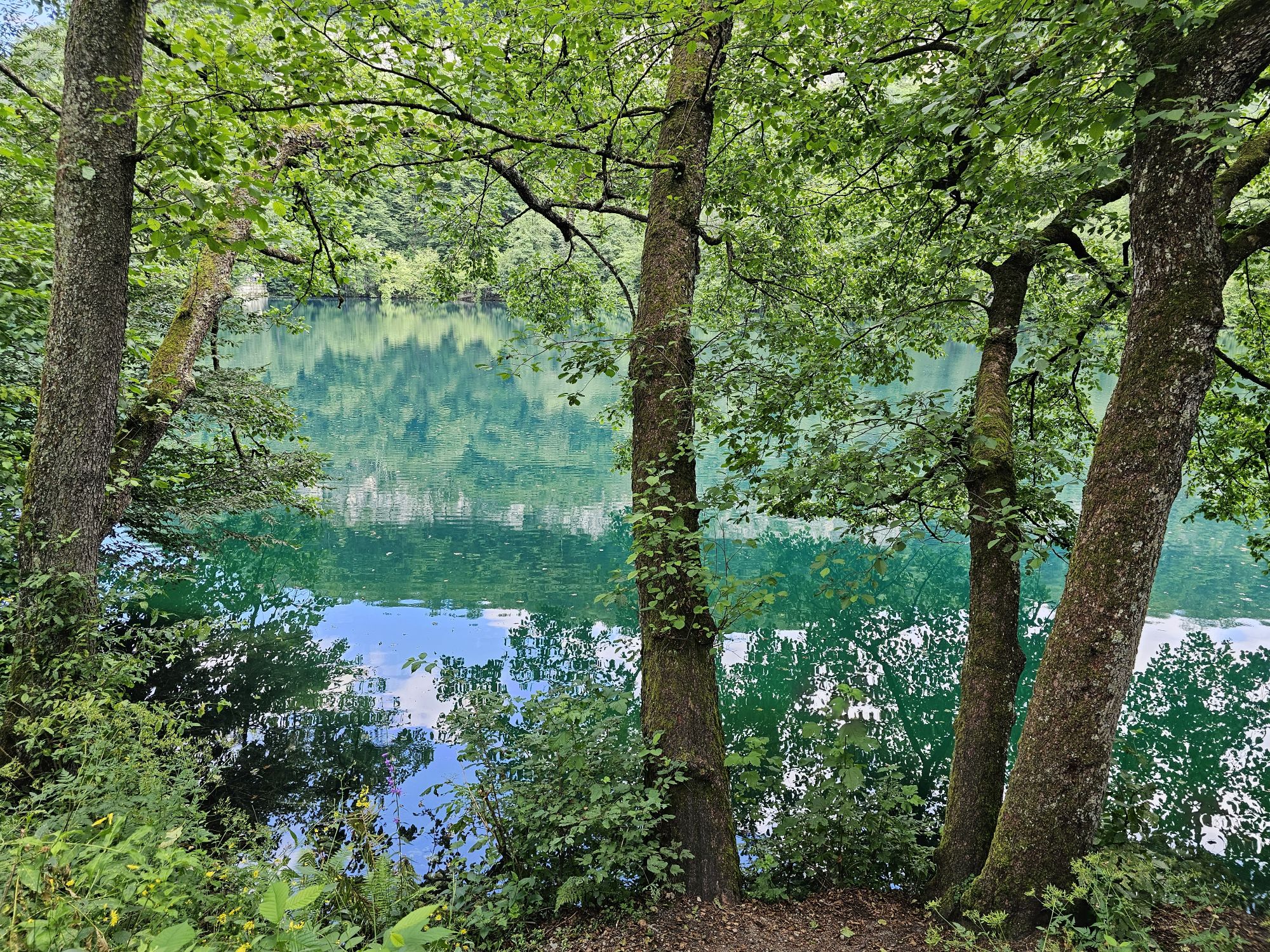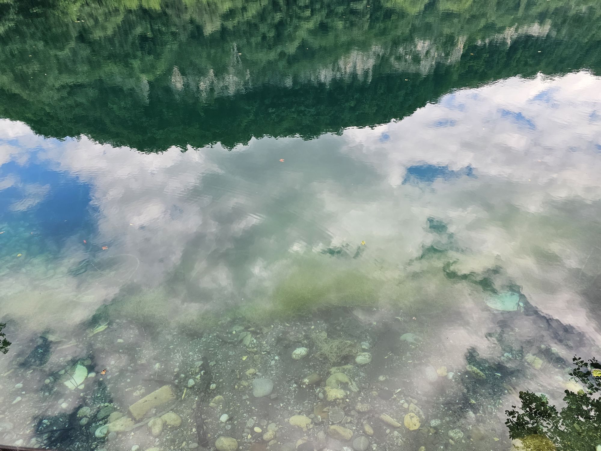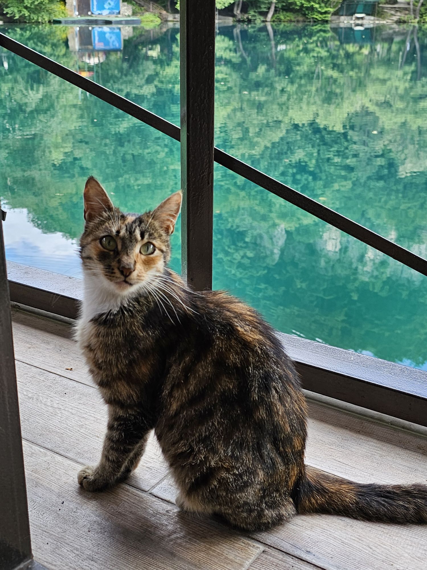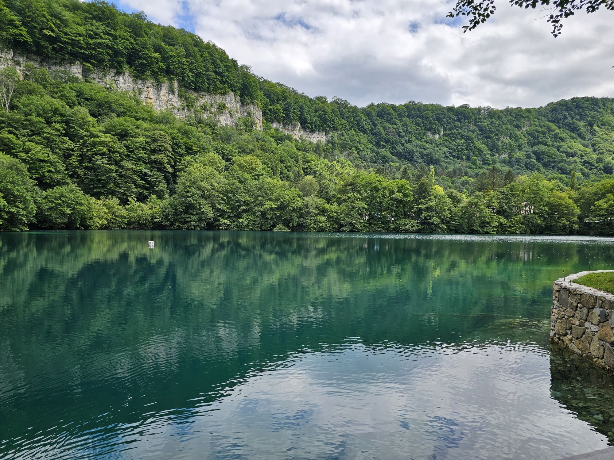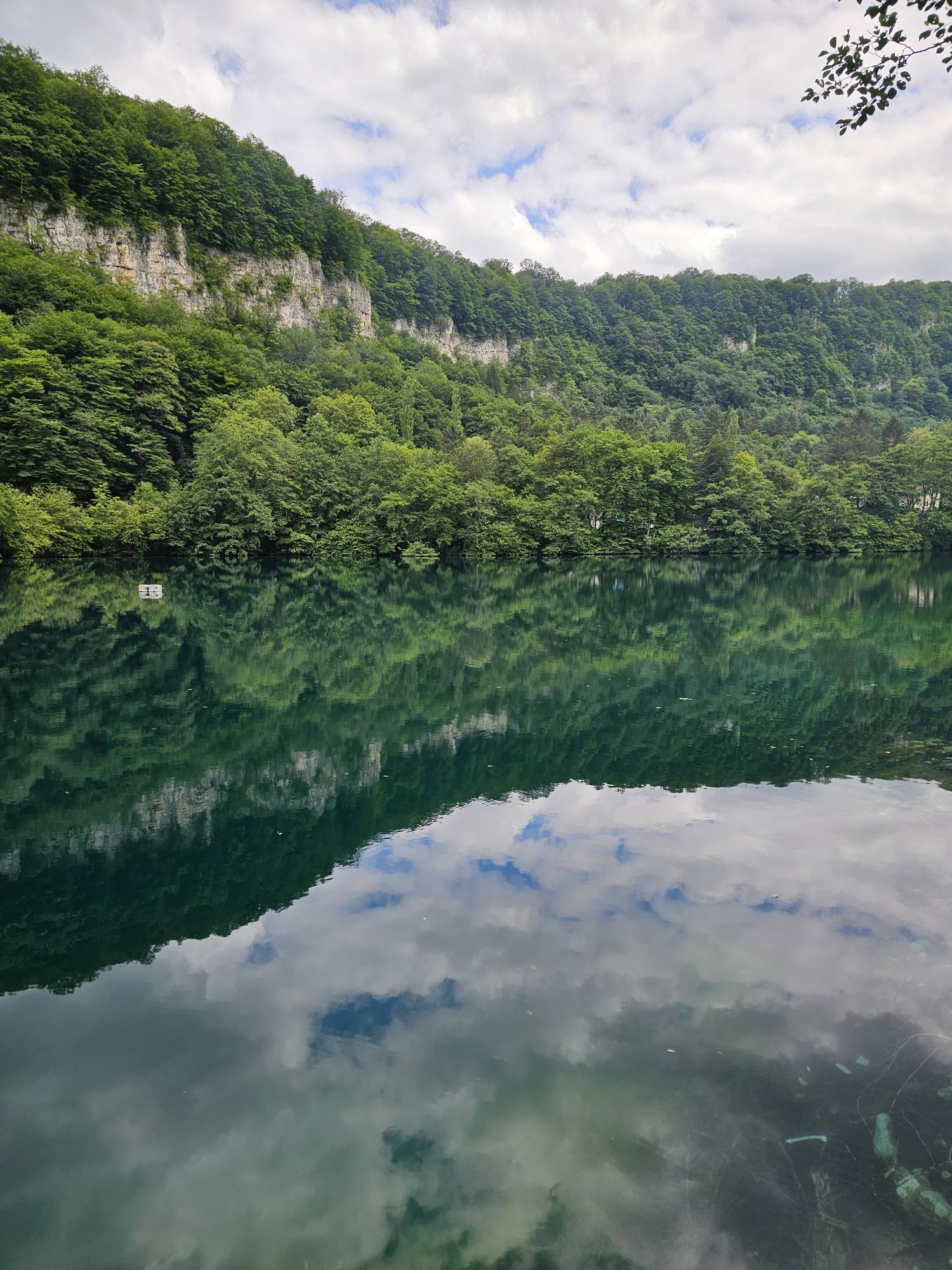 9 августа 2023 Продолжаю рассказ. Осталось собственно совсем немного. На следующий день после Джилы-су мы поехали в Кабардино-Балкарию, в Черекское ущелье. На самом деле это не самое лучшее решение - большой выезд в новые места сразу после Джилы-су, потому что эмоции еще не улеглись и воспринимать новое непросто. Но погода внесла свои коррективы и на дальний выезд у нас остался только этот день, а побывать там хотелось. Выехали утром, было ясно и солнечно. Сначала нам показался силуэт Бештау, а потом и приветственно выглянул Эльбрус. На фоне желтых подсолнухов он смотрелся особенно эффектно Еще через час дороги показались и другие заснеженные спины гор Кавказского хребта, а Эльбрус стал еще ближе.. Вот позади остался Баксан и поворот на Терскол, а вместе с ними и Эльбрус. Нам сегодня дальше и нас ждут другие горы Петляя по живописным горам, оставив пока позади Голубое озеро с невероятными отражениями, около десяти утра мы достигли первой точки нашего путешествия - старая колесная дорога в Черекской теснине. Огромные отвесные скалы на десятки метров вверх и не меньше вниз, а на дне несет свои воды Черек Балкарский.... Когда-то по этому обрыву ехали люди и грузы. Сейчас в скале пробит тоннель, а дорогу оставили для прогулок туристов. Виды - дух захватывает! А еще тут же стоят электрические опоры. На самом краю. В попытке преодолеть силы природы. А так сейчас выглядит тоннель и современная дорога (выглянули на секундочку): Вот из-за очередного поворота меж гор показались заснеженные вершины кавказских гигантов. Дорога не очень длинная. Мы неспешно прогулялись по ней туда и обратно, размышляя об особенностях жизни человека в горах и просто наслаждаясь видами. Сегодня речь не шла о километрах и треках. Сегодня был день созерцания Потом мы вернулись к Нижнему голубому озеру в надежде полюбоваться его красотой, увидеть своими глазами удивительный цвет и заодно пообедать. Расстроились - по озеру шла заметная рябь, отражения были смазанными, а цвет едва уловимым. Хотя озеро все равно красивое: Немного напрягло количество торговых столов вокруг всей дорожки, наперебой предлагающих разные товары от сладостей до сувениров и украшений. Но после вчерашнего Джилы-су вообще многое воспринималось с трудом. Открыв меню в кафе, мне даже немного взгрустнулось. От нечего делать решила попробовать хычины с ливером. Потому что люблю балкарские хычины и потому что есть пельмени или вареники в КБР совсем не было желания, такое мы и у себя поедим. И вот что я вам скажу: это были одни из самых вкусных хычинов в моей жизни! Я до сих пор помню их вкус и скучаю по нему. Вот без преувеличения - я бы поехала сюда снова только ради того, чтобы снова поесть их))) Вкусная еда добавила в организм немного радости и желания восхищаться. Плюс ели мы в очень наглой и очень очаровательной компании Сытые и довольные мы пошли дальше вдоль озера. Рябь улеглась и в воде снова отражались горы и облака Озеро совсем небольшое по площади. В длину 235 метров, а в ширину от 120 до 180м. Зато глубина! 279 м! (хотя сейчас вроде бы официальные данные уменьшили на несколько метров, но сути не меняет) Вниз больше, чем в длину! Здесь даже глубоководную технику разную испытывают. А еще здесь удивительный цвет воды и невероятная прозрачность. Пишут, что видно вглубь на 22м. И оптические обманы на каждом шагу: подхо