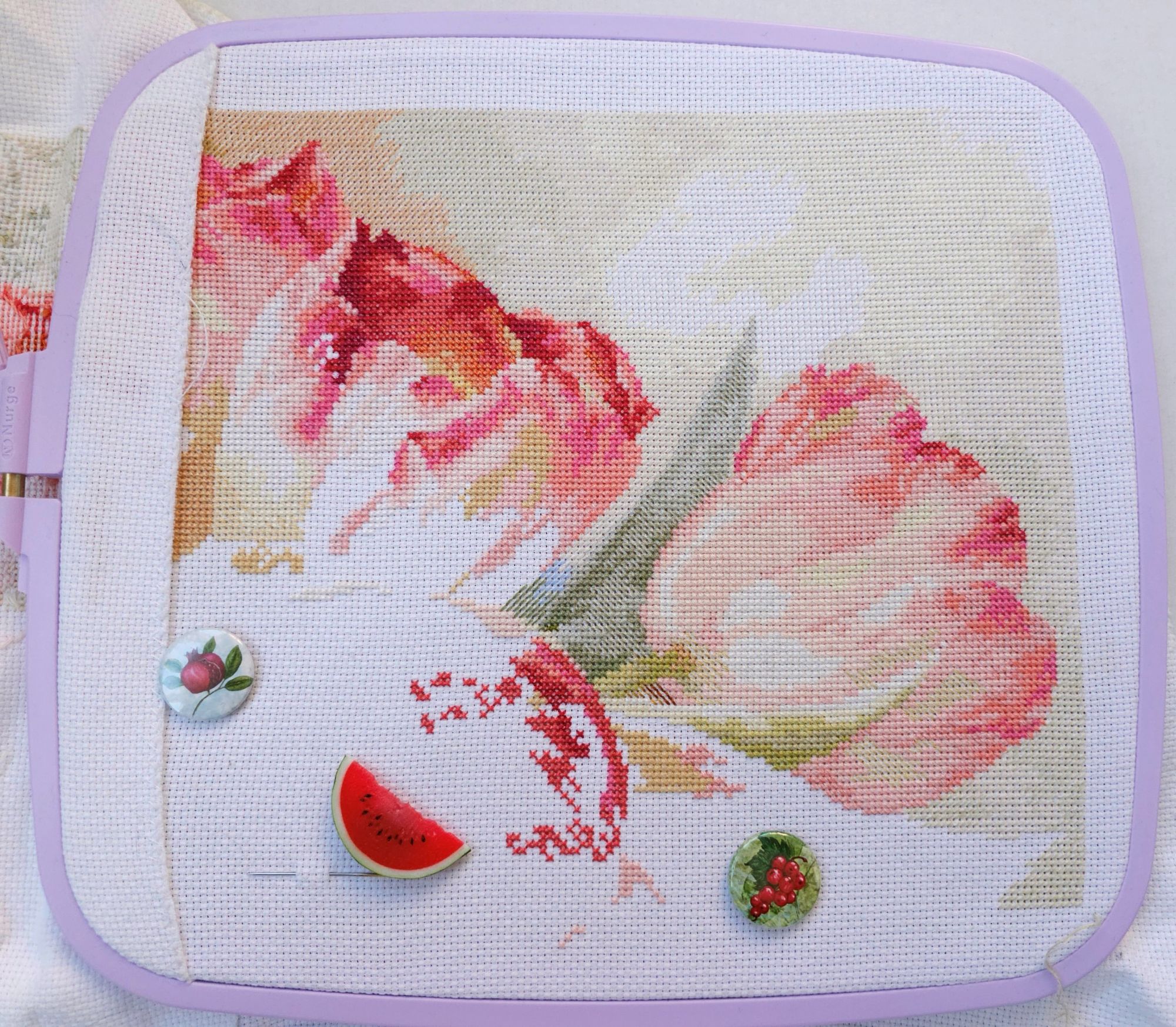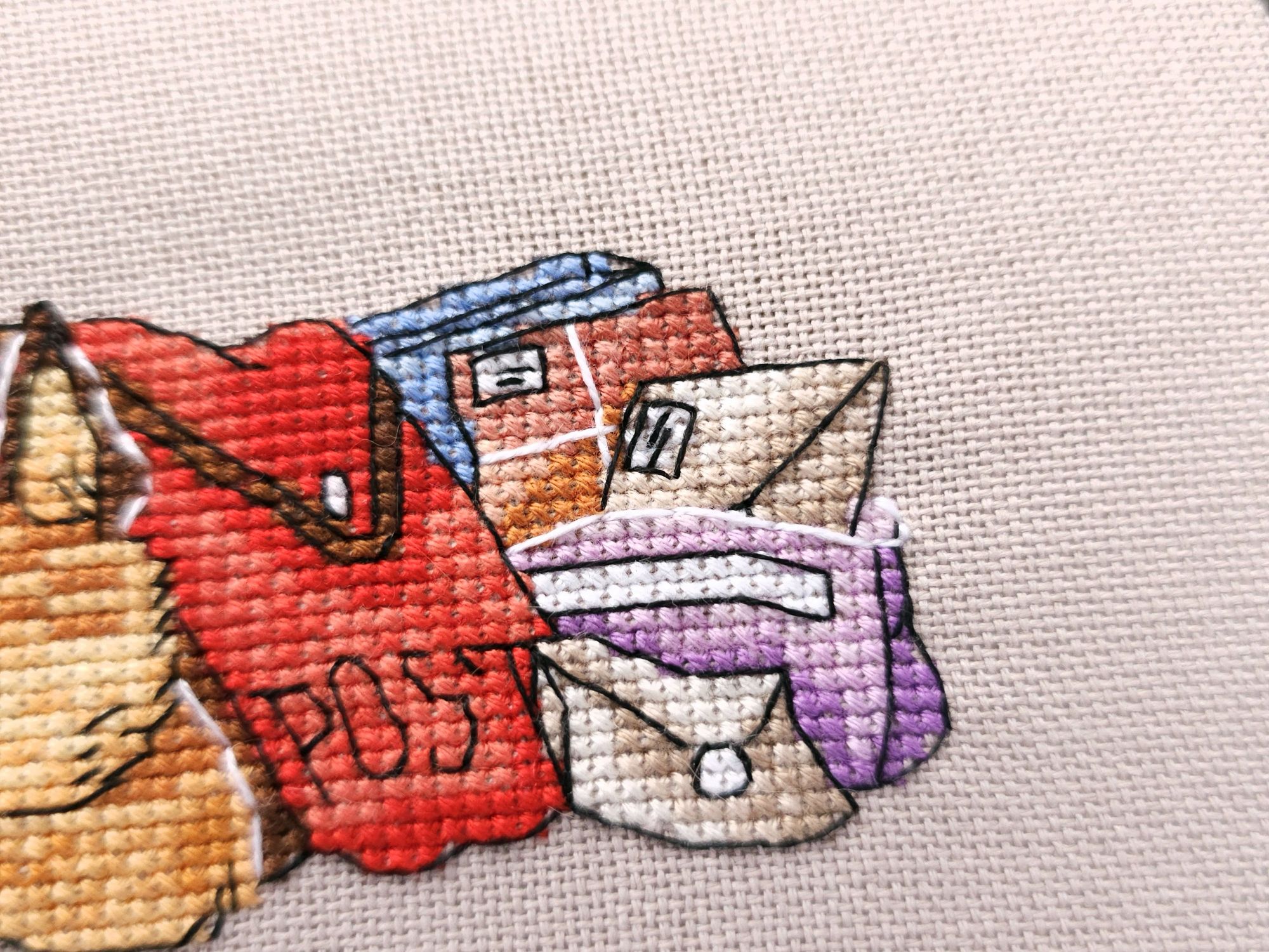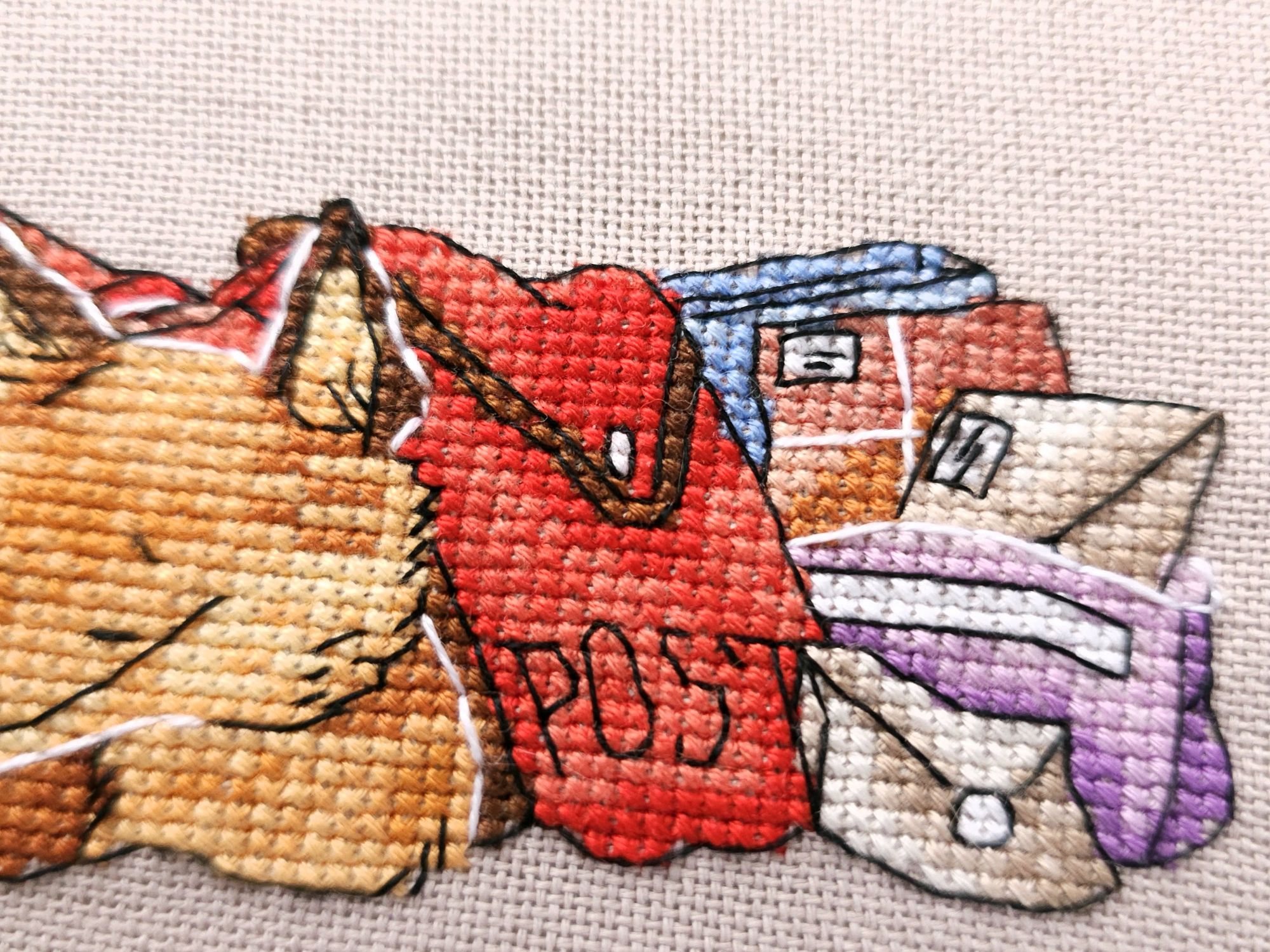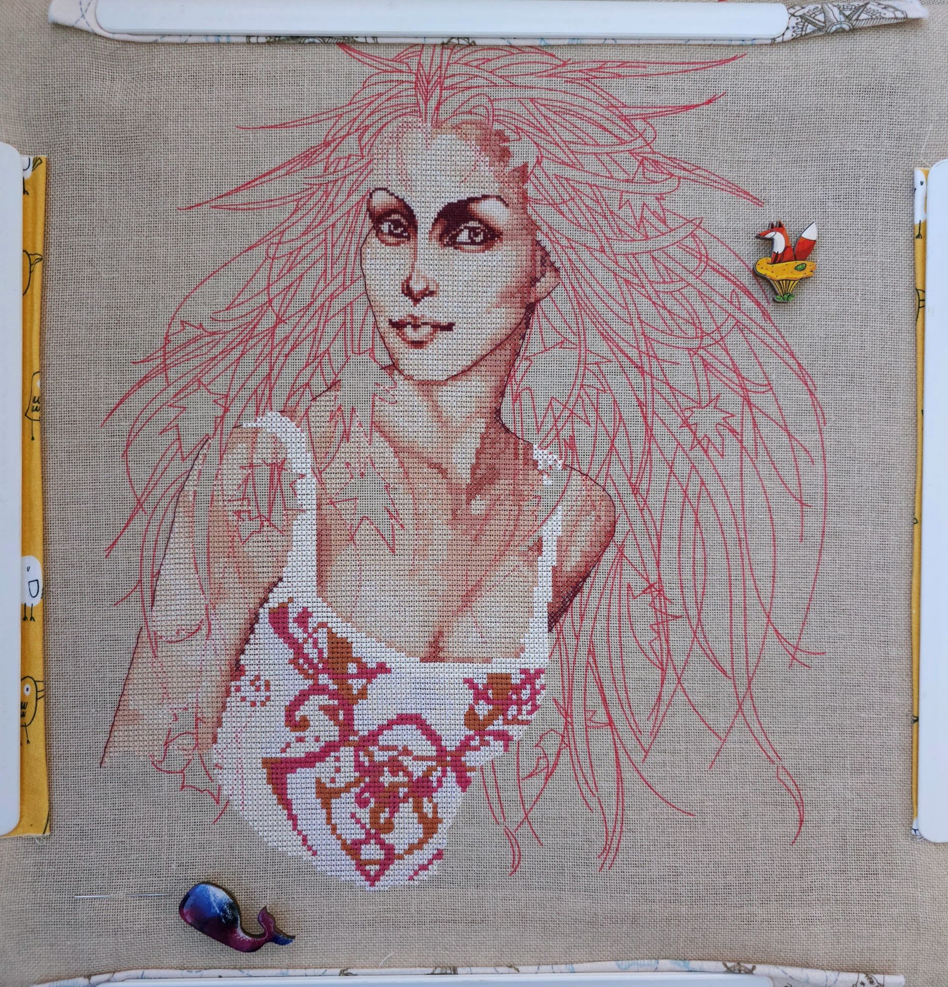 4 сентября 2023 Всем привет! Вот уже и первый осенний отчет готов появиться на страничках темы. Пока еще не подкатила осенняя хандра и не закружила золотая осень, буду снова писать про вышивку. И даже возникло желание "легализовать" некоторые начатые процессы. Ну т.е. гайку на них завести) Так что пока запал не пропал, начинаю. Оформление. Сначала покажу обещанное. А именно как оформился почтовый щенок и почему этот процесс был "к 1му сентября" )) Вышит он был по заказу дочери с тем, чтобы поселить его на ее новом школьном пенале. Который, само собой, надо сшить))) В общем, задание весьма приятное: и потому что щенок мне этот давно нравился, и потому что дочь попросила что-то мое рукодельное и с вышивкой. Одна беда, при пошиве мне не дали развернуться в творчестве: ткань только вот эта и никаких компаньонов, никаких ленточек или тесемочек, никаких бусинок, пуговичек или шармиков, - такие вот суровые условия от дочери-подростка))) Так что представляю вашему вниманию стиль минимализм в действии))) Пенал уже загружен и сегодня "ходил в школу". Заказчик доволен. Так что моя миссия по подготовке к школе выполнена Вышивальные продолжения. Тюльпаны, Алиса - продолжение Появился еще один бутон. Я буквально тону в этой нежности около-розовых оттенков. Настолько, что даже подумываю еще бутончики пошить, а не уходить на третий угол, как поначалу планировала. Хоть это у меня и долгостройный долгострой, а шьется с невыразимым удовольствием, когда попадает в руки в нужный для него момент. Прикинула грубо: выходит порядка половины работы готово. Очень хочется, чтобы вторая половина заняла меньше времени, чем первая РТО, Воскресное утро - продолжение Еще весной ездили в Углич (на майские, кажется). Погуляли по центру города и разным его уголкам, в музей гидроэнергетики заглянули (очень классный!), а под конец я таки добралась до того дома, что изображен на ртошном дизайне. Вот такой он был в мае этого года Конечно, мне захотелось его и в вышивке построить поскорее. Так что теперь он вот такой в моем процессе: И хотя стройка еще не закончена, но уже видно, что в дизайне сохранены и каменный декор окон, и изразцовые плиточки на стенках - и это просто потрясающе! Особенно учитывая, что он не огромный. Только вот капризничает пока мой процесс: не так часто в руки просится, как это нужно для завершения. А через "не хочу" - это не мой метод. И уж точно не для этого дизайна. Он у меня очень положительные и светлые чувства вызывает, и омрачать я их не хочу. Может быть он завершения реконструкции собора и монастыря ждет? чтобы сфотографироваться готовым при полном параде? Совиный лес, Прялка - продолжение Этот процесс у меня в голове почему-то стал осенним. Точнее именно с началом осени он совпал со мной настроением и пока поселился на Марте. То ли оттенки тут очень характерные, то ли общее состояние покоя (не совсем точно, но других слов не подбирается). В общем, прибавление значительное. И если в прошлый раз по сути были только красные контуры верхнего ряда, то сейчас добавились все имеющиеся цвета и прялка стала... живой. Живой и теплой, как в сказках и книгах, как в уютных музеях... Новые процессы. Ксения Новикова, Ведьма - новый процесс! Это один из двух процессов, которые я решила "подарить себе на осень" Это была внезапная и сильная любовь с первого взгляда на отшив. На самом деле схема для ка