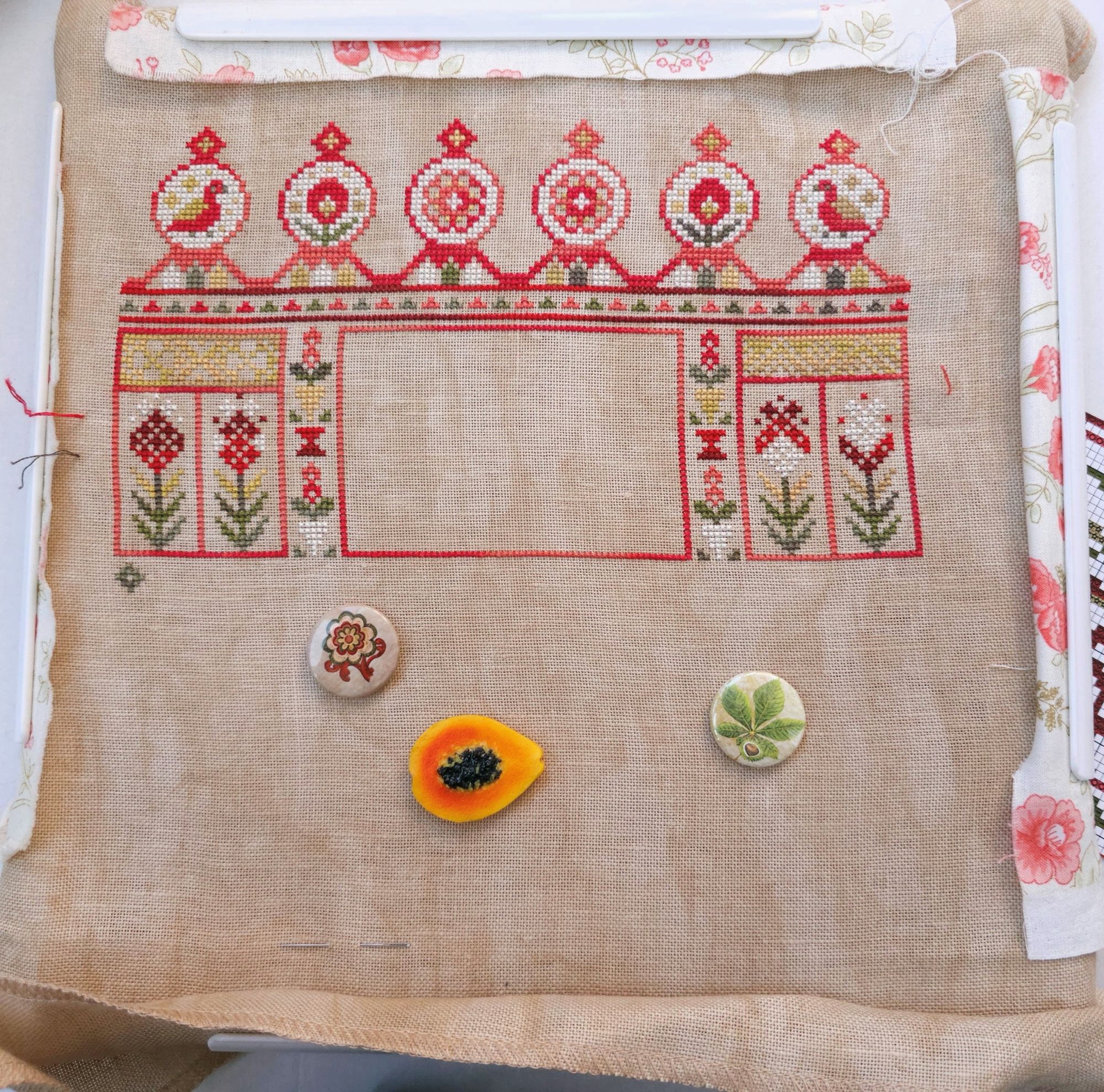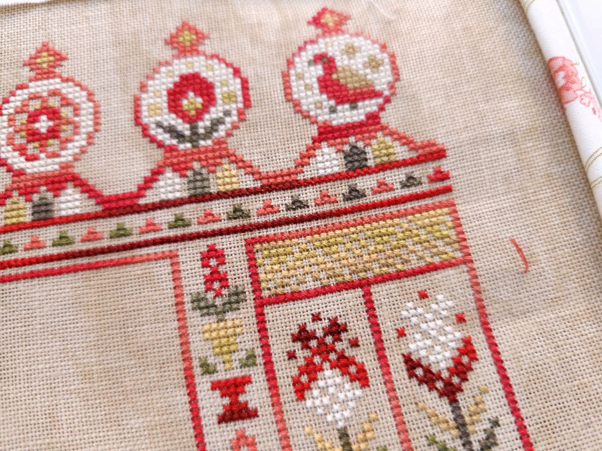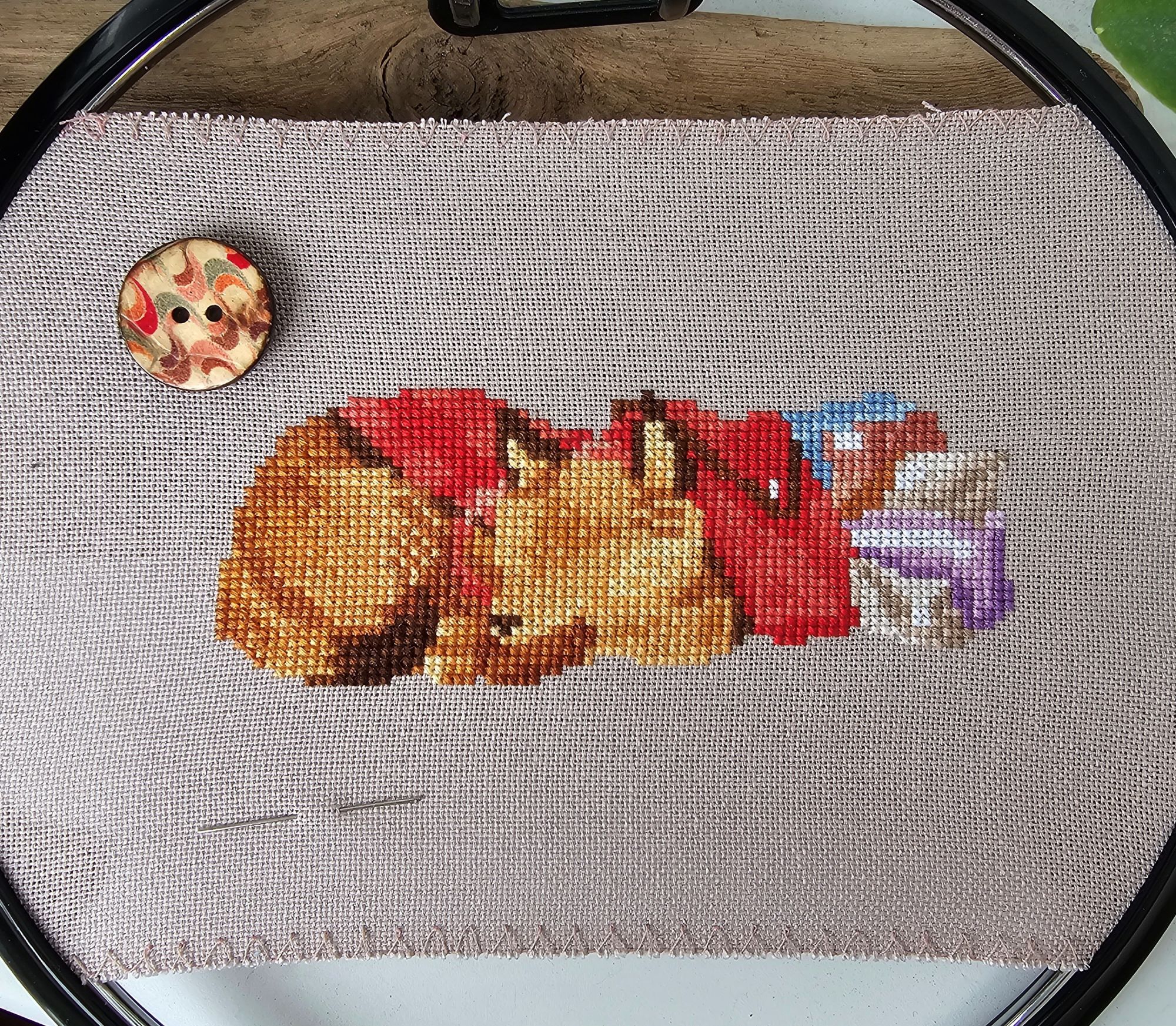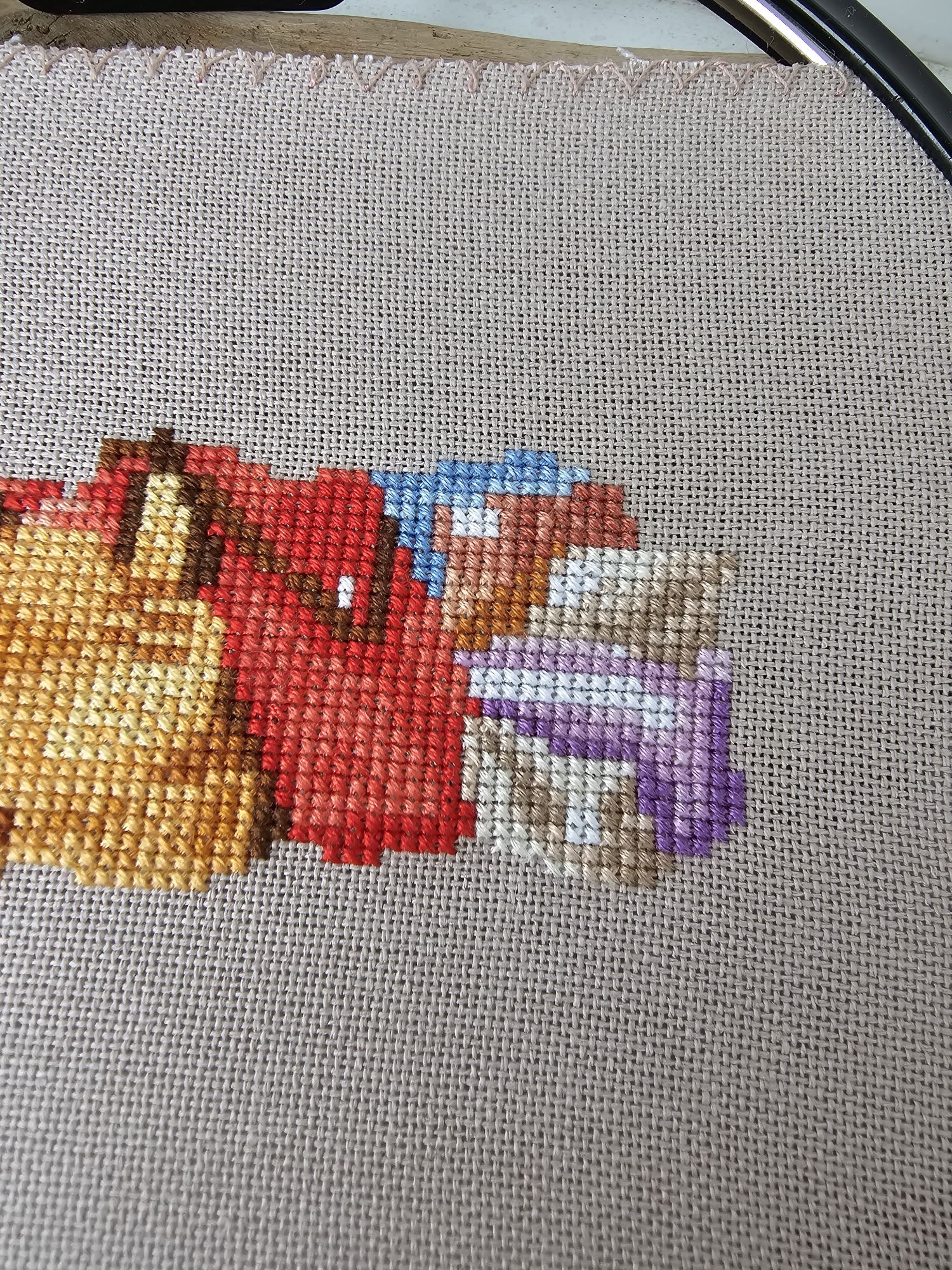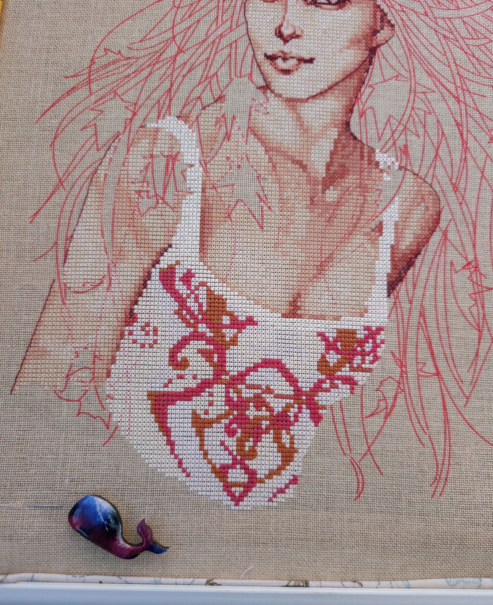 4 сентября 2023 Всем привет! Вот уже и первый осенний отчет готов появиться на страничках темы. Пока еще не подкатила осенняя хандра и не закружила золотая осень, буду снова писать про вышивку. И даже возникло желание "легализовать" некоторые начатые процессы. Ну т.е. гайку на них завести) Так что пока запал не пропал, начинаю. Оформление. Сначала покажу обещанное. А именно как оформился почтовый щенок и почему этот процесс был "к 1му сентября" )) Вышит он был по заказу дочери с тем, чтобы поселить его на ее новом школьном пенале. Который, само собой, надо сшить))) В общем, задание весьма приятное: и потому что щенок мне этот давно нравился, и потому что дочь попросила что-то мое рукодельное и с вышивкой. Одна беда, при пошиве мне не дали развернуться в творчестве: ткань только вот эта и никаких компаньонов, никаких ленточек или тесемочек, никаких бусинок, пуговичек или шармиков, - такие вот суровые условия от дочери-подростка))) Так что представляю вашему вниманию стиль минимализм в действии))) Пенал уже загружен и сегодня "ходил в школу". Заказчик доволен. Так что моя миссия по подготовке к школе выполнена Вышивальные продолжения. Тюльпаны, Алиса - продолжение Появился еще один бутон. Я буквально тону в этой нежности около-розовых оттенков. Настолько, что даже подумываю еще бутончики пошить, а не уходить на третий угол, как поначалу планировала. Хоть это у меня и долгостройный долгострой, а шьется с невыразимым удовольствием, когда попадает в руки в нужный для него момент. Прикинула грубо: выходит порядка половины работы готово. Очень хочется, чтобы вторая половина заняла меньше времени, чем первая РТО, Воскресное утро - продолжение Еще весной ездили в Углич (на майские, кажется). Погуляли по центру города и разным его уголкам, в музей гидроэнергетики заглянули (очень классный!), а под конец я таки добралась до того дома, что изображен на ртошном дизайне. Вот такой он был в мае этого года Конечно, мне захотелось его и в вышивке построить поскорее. Так что теперь он вот такой в моем процессе: И хотя стройка еще не закончена, но уже видно, что в дизайне сохранены и каменный декор окон, и изразцовые плиточки на стенках - и это просто потрясающе! Особенно учитывая, что он не огромный. Только вот капризничает пока мой процесс: не так часто в руки просится, как это нужно для завершения. А через "не хочу" - это не мой метод. И уж точно не для этого дизайна. Он у меня очень положительные и светлые чувства вызывает, и омрачать я их не хочу. Может быть он завершения реконструкции собора и монастыря ждет? чтобы сфотографироваться готовым при полном параде? Совиный лес, Прялка - продолжение Этот процесс у меня в голове почему-то стал осенним. Точнее именно с началом осени он совпал со мной настроением и пока поселился на Марте. То ли оттенки тут очень характерные, то ли общее состояние покоя (не совсем точно, но других слов не подбирается). В общем, прибавление значительное. И если в прошлый раз по сути были только красные контуры верхнего ряда, то сейчас добавились все имеющиеся цвета и прялка стала... живой. Живой и теплой, как в сказках и книгах, как в уютных музеях... Новые процессы. Ксения Новикова, Ведьма - новый процесс! Это один из двух процессов, которые я решила "подарить себе на осень" Это была внезапная и сильная любовь с первого взгляда на отшив. На самом деле схема для ка