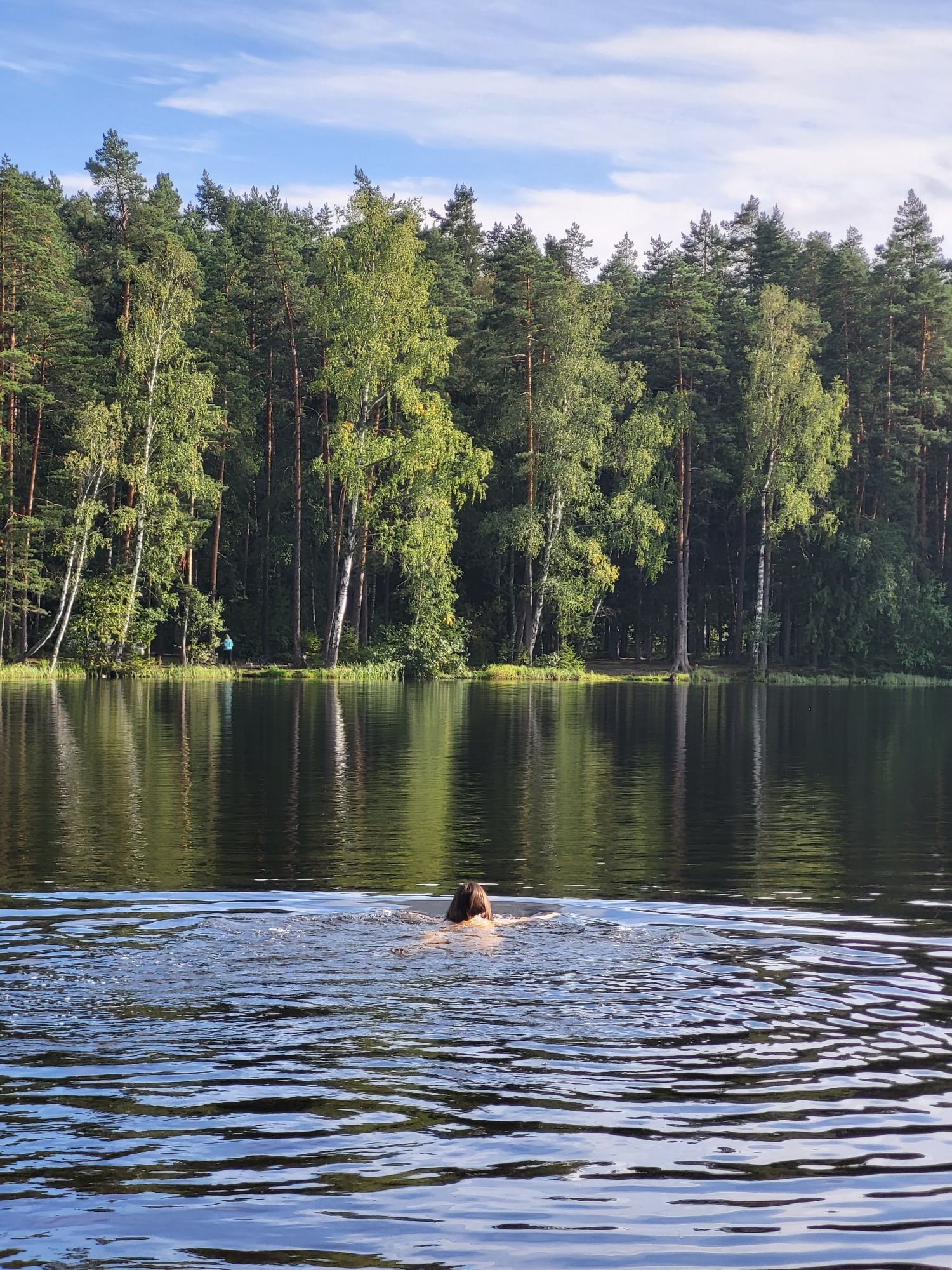 30 августа 2023 продолжение финальное)) 3. И заключительная вылазка этого лета. Тоже относительно недалеко от дома, но до чего душевно, не передать словами! Место любимое нами давно. И я даже как-то показывала осенние фото отсюда. А теперь вот позднелетние будут... Озера, в которых отражается весь мир от облаков до каждой травинки. прозрачная вода с коричневатым оттенком и чуть маслянистая наощупь, высокие сосны, ароматный мох по берегам, где нужно выверять каждый шаг, чтобы вдруг не намочить кроссовки. Тишина (если повезет) Ягоды и грибы. И отражения. Бесконечно прекрасные отражения в воде. Особенно на втором, более заросшем (с названием Моховое) озере, где в этот раз нам судьба подарила еще и очень немаленький кусочек настоящей тишины. Звенящей такой. Когда даже ветер едва касается макушек сосен, а водная гладь будто зеркало... В завершение прогулки закрыли купальный сезон. Вода немного прохладная - плавать настоящее блаженство! А уж "мальчиков" с тарзанки было не оттащить))) Наплавались и отправились через лес к машине. Ничего не предвещало, но до машины мы дошли не с пустыми руками))) А на обратной дороге еще и необычные облака показали, чтобы скрасить ожидание зеленого на реверсе))) Вот такое чудесное завершение летнего сезона получилось. Сегодня Настя уже получила учебники, дети с нетерпением ждут начала учебного года. А я "самого своего" времени года))) Увидимся осенью! Пока Беладонна, TheSunniestDay, Охотница и 28 других сказали спасибо Поделиться сообщением Ссылка на сообщение