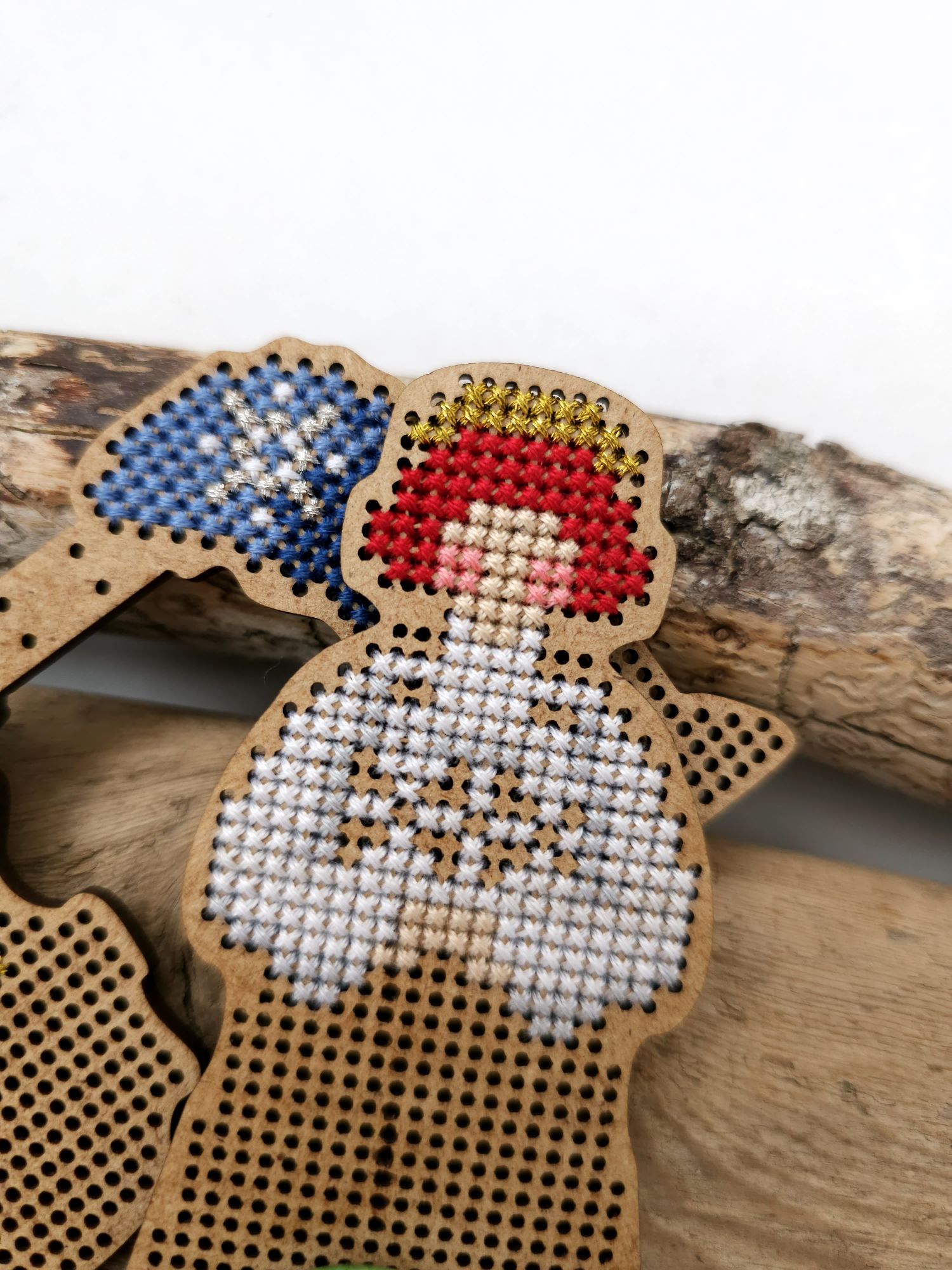31 декабря 2023 29.12.2023 в 18:07, OlkaY сказал(а): Всем привет! Я сегодня скорее всего с финальным отчетом года. В том смысле, что вряд ли успею еще один написать. А вот итоги буду уже в январе подводить, потому как я особа ветренная в плане процессов, могу еще чего-нибудь "натворить" за два дня Сегодня в программе финиши! И совсем не важно, что большая часть из них заодно и старты Овен, Красная поляна - финиш! Я не особенно надеялась закончить в этом году, но очень хотелось. А когда поездка в багетку внезапно перенеслась на неделю, я подумала: "Ну а вдруг успею?!" И вот это и стало решающим фактором: я успела! Что сказать по итогу? Разработка прекрасная, пейзаж совершенно настоящий. Особенно горы. Я вышивала, а перед глазами стояли кадры из нашей прогулки к Чучхурским водопадам в Домбае в октябре, которая тоже проходила под аккомпанемент снега и снежных склонов. И хотя я знаю, что в вышивке Красная поляна, для меня она теперь неразрывно связана именно с тем октябрьским днем. Да и в общем-то не так уж и далеко эти два места друг от друга, чуть больше 100 км по прямой сквозь горные вершины. Дизайн по количеству крестиков немного вытянут по вертикали на несколько рядов. Мне это не очень понравилось и я последние два ряда вышивать не стала. Получился все еще не квадрат, но больше не раздражает)) В игру "угадай где долевая" я играть с Овном не стала и канву заменила на другую тоже 16го каунта, поэтому дополнительных искажений нет. Крестики шьются легко, есть большие однотонные фрагменты. Разве что в соснах повозиться приходится. Бэка немало и он разноцветный и в разное сложение. Если честно, то он мне не особо понравился: много возни с ним и пойди еще выложи аккуратно эти 2 нити. Длинные стежки шила ленивой выкладной. Но в полезности этого бэка тут сомнений нет. Все на своем месте. Даже попробовала кое где в 1 нить шить вместо двух, но в итоге переделала по инструкции. Мой личный фаворит - это молодое деревце-куст между двумя соснами слева))) И выстиранное и выглаженное: Rozwood, Z-022 Колокольчик "Снеговик" - старт и финиш! Вышивка бисером, итоговый размер размер 11,5*12,5 см В наборе две уже покрашенных деревяшки с отверстиями для вышивки, бисер, нитки (в т.ч. и для сшивания частей), игла, схема. Так же как и в первом моем rozwoodе есть близкие оттенки. Была бы это ВС, точно некоторые пары были бы одного оттенка. Но бисер при том красивый и сочетается между собой хорошо. Даже эффект плавных переходов в шляпе получился (привет 3 оттенка черного-серого) Короче, классная штука вышла. Мне нравится)) И даже на елке ей место нашлось, хотя я нечасто вешаю туда рукодельные игрушки Волшебная страна, Шарик с тигренком (этот) - старт и финиш! На этот раз нитки, а не бисер. Точнее бисера совсем чуть-чуть) Но это такая прелестная в своем недовольстве мордочка! Я в нее влюблена была с самого первого взгляда! И вот теперь с удовольствием вышила. Евгения Колесникова, Ангел Рождества - старт и финиш! В один прекрасный момент я поняла, что сильно соскучилась по ангелам. Ну а какого шить сейчас, если не рождественского? Все же кто бы что ни повторял, кто бы какие реплики ни делал, а эти вот ангелы авторства Евгении... они бесподобны. Каждый крестик на своем месте, каждый оттенок взаимодействует с соседями максимально эффектно. В этом ангеле еще и золотой и серебряный металлик используются. Ну и я уже по своей сложившейся тради