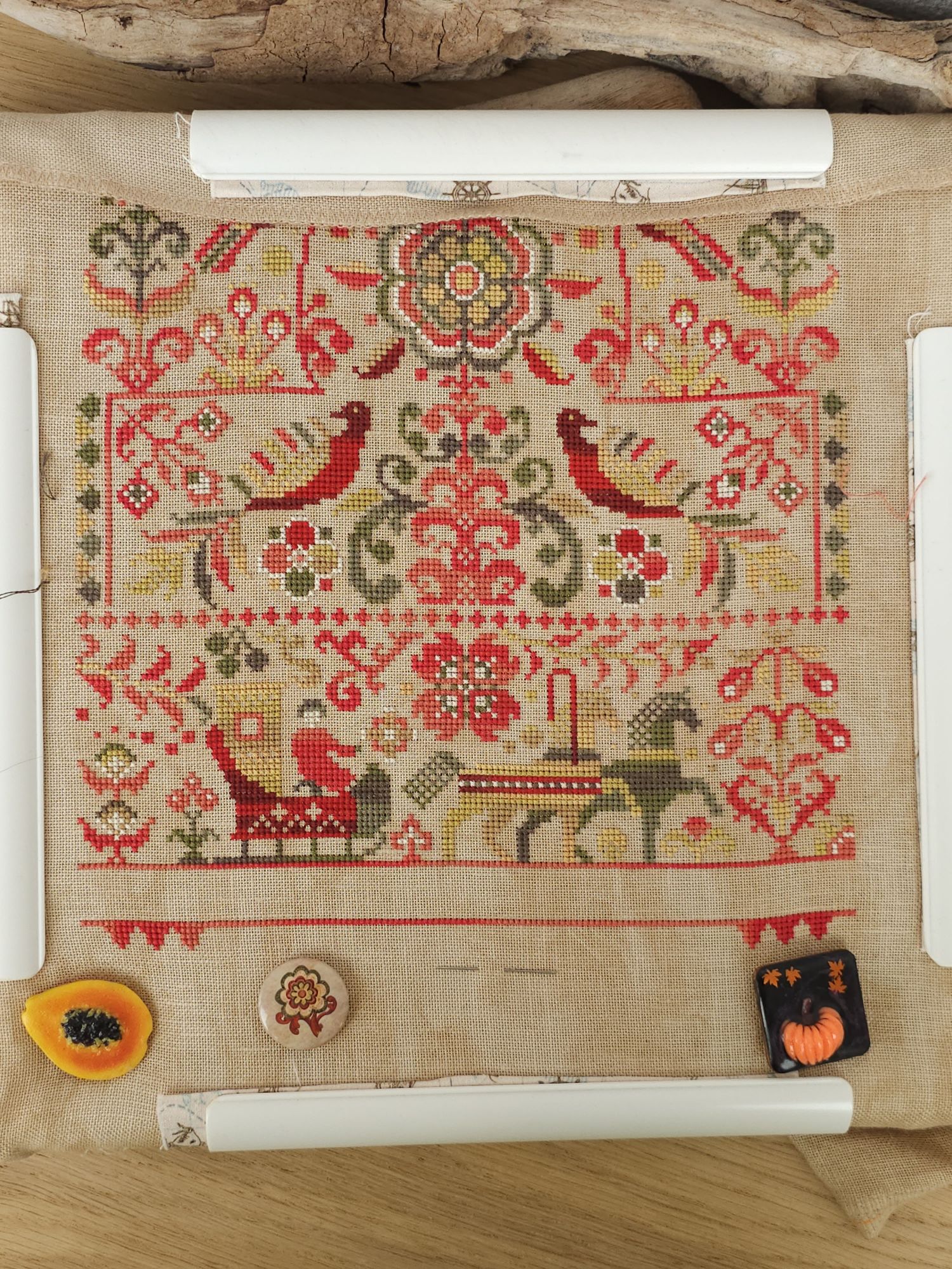 9 октября Вечер добрый! Сегодня будет продолжение двух осенних процессов и один финиш, правда не осенний по тематике)) Начну с продолжений. Мне кажется, что прошлой осенью был отчет ровно с этими же двумя процессами, и тогда я писала, что они у меня именно с осенью ассоциируются и больше всего в настроение ложаться именно в сентябре-октябре. Прошел год, а воз и ныне там. Ну на самом деле не совсем там, а продвинулся. Загадывать не хочу, но очень надеюсь, что через год повторения истории не будет, а гайки эти давно будут зелеными))) РТО, Дивный север. Горы - продолжение Как мне ни трудно было заставить себя много шить разной степени светлости серыми и их блендами, а когда я все таки взялась, получила массу удовольствия. Вот уж правда всему свое время. До чего же красивая и эффектная вещь получается. Особенно когда в эти серые оттенки вплетается яркий осенний красный. Осталось чуть более 5 тыс. крестиков и огромное желание довести дело до финала. было: и стало: Совиный лес, Прялка - продолжение Процесс, который мне нравится, но за который сложно сесть. А если уж сел, то шьется он запойно и... надоедает)) А значит я его меняю, иначе вообще вышивать не буду. А потом за него снова нужно взяться Я долго боролась с очевидным: надо попросить сагу на него (покупала еще когда саги в наборах не было). Да, тут она не столь критична, как в какой-нибудь РТОшке или авторской схеме с переплетением креста и полукреста и кучей цветов, но именно цифры прогресса оказались для меня немалой движущей силой. Как и четкое понимание распределние цвета в отшиваемом фрагменте. Поэтому я сначала закончила один ярус, а потом довольно быстро прирастила и следующий. И даже на предпоследний замахнулась. Тут чуть меньше 5 тыс. крестиков осталось. Но шьются они быстрее РТОшки. Если, конечно, за них взяться)) Было: Стало сначала: и потом плюс еще ярус: Ну и теперь про финиш. Финиш долгожданный, яркий, очень красивый. И хотя я в очередной раз убедилась, что серии мне даются с трудом, но именно об этом своем марафоне длиной в 7 месяцев и 9 бирок я не жалею ни капли. Тома Мишукова, Цветение сакуры - финиш! Итак, две финальные бирки. С карпами кои и японкой. Такие разные и обе красивые. Хотя, наверное, я бы и могла к карпам чуточку придраться в части бэка, мне он немного грубоватым кажется. Но это на фоне всего остального видимо. А вообще, я отдаю большую дань уважения дизайнеру. Самый частый отзыв за все время, что я их показываю - это "целый мир в миниатюре". Да я и сама не раз это писала. А думала еще чаще. А еще тут очень красивые цвета. Я с ними даже сроднилась)) Точно будет ностальгия, если потом в других процессах встретятся))) Две финальные бирки: И все вместе: Вот такие вот вышивальные новости. Меня уже начинает одолевать осенне-гнездовательное настроение, выражающееся в желании чего-нибудь позавершать. Процессы, планы, цели в статистике за год. А самое главное, что пока еще есть иллюзия того, что времени на это все до НГ достаточно))) Постараюсь воспользоваться этим настроением и может еще какие гайки позеленить. А еще красивых картинок вам принесу в следующий раз. Невышивальных так точно. Каникулы же у детей как никак До встречи! Путешественница, Хозяйка смешных зверей, nata2017 и 26 других сказали спасибо Поделиться сообщением Ссылка на сообщение