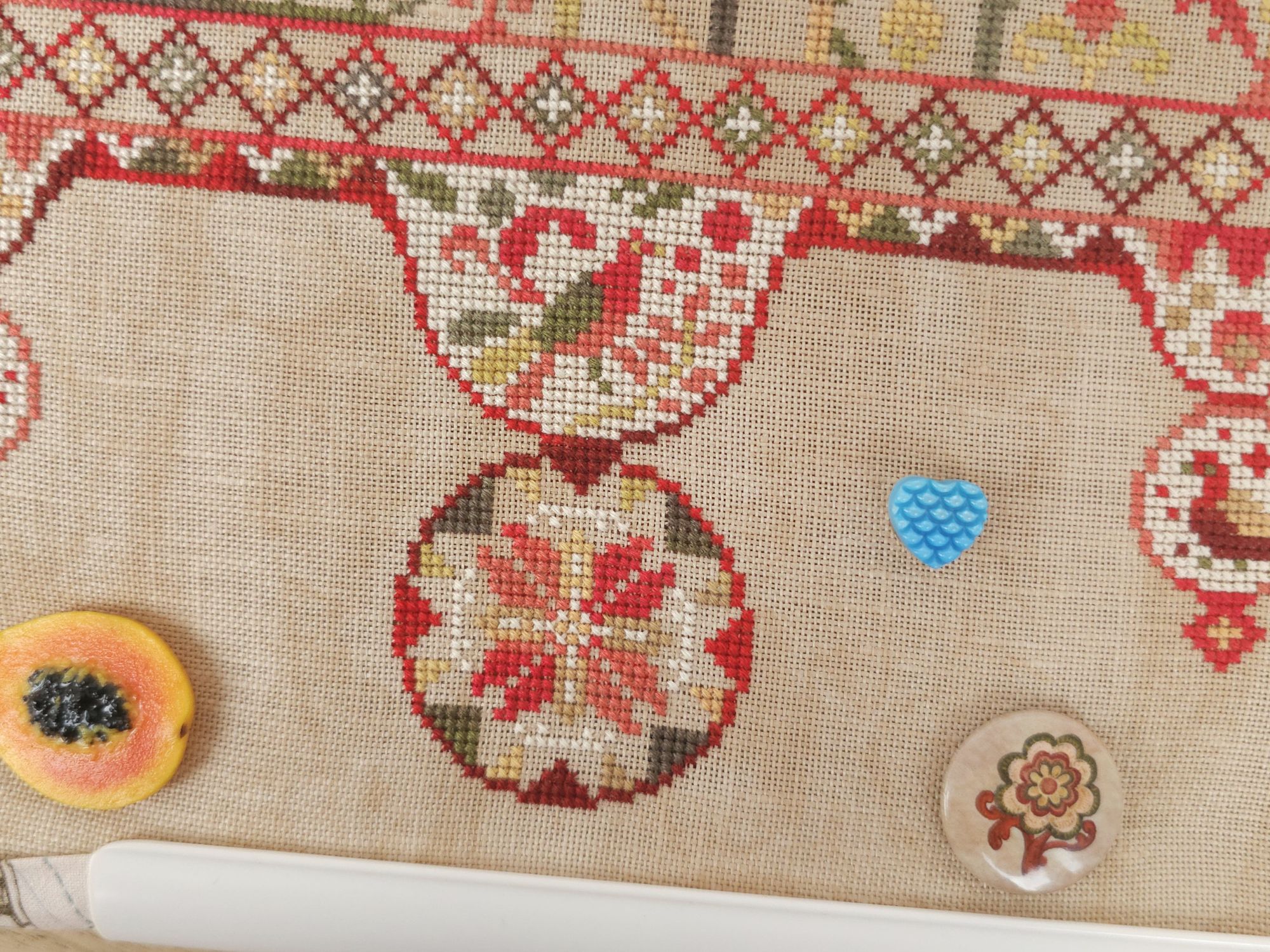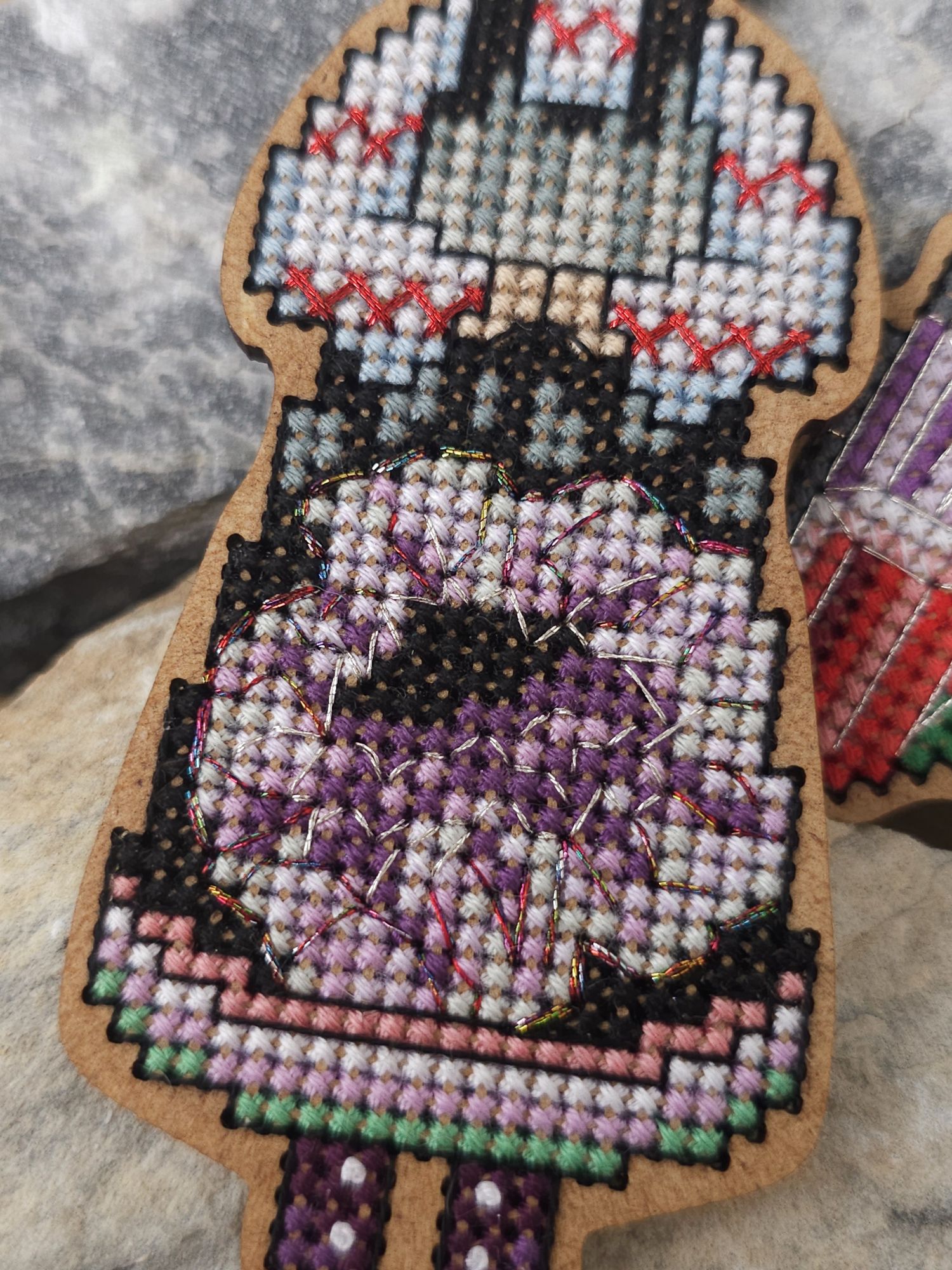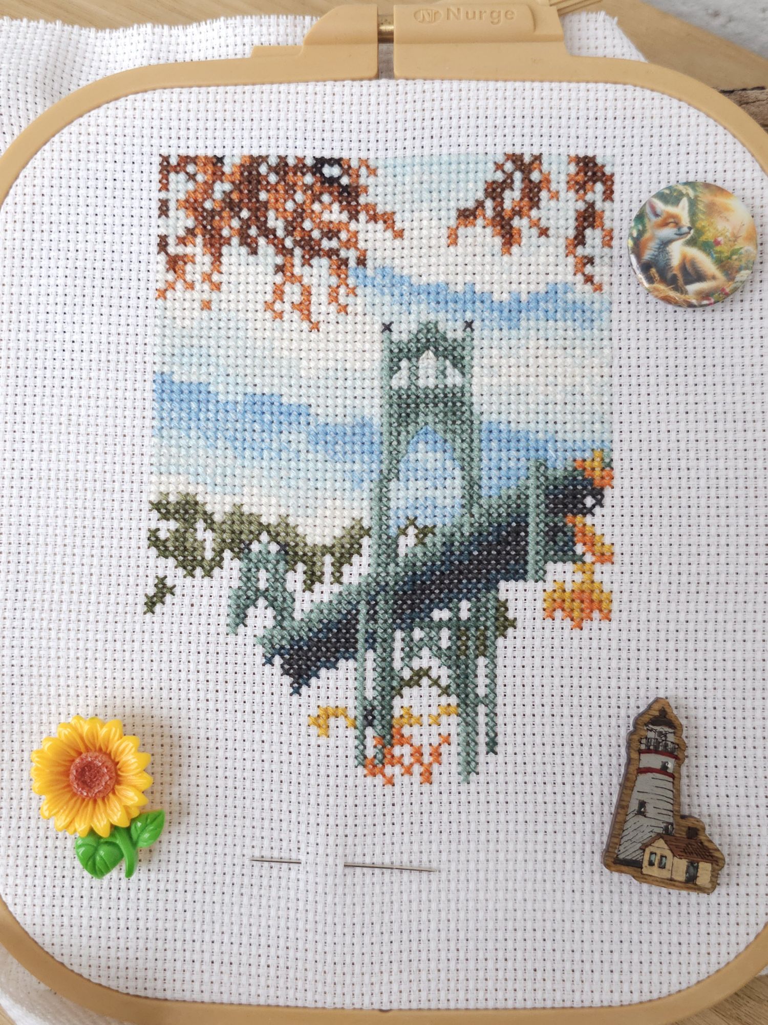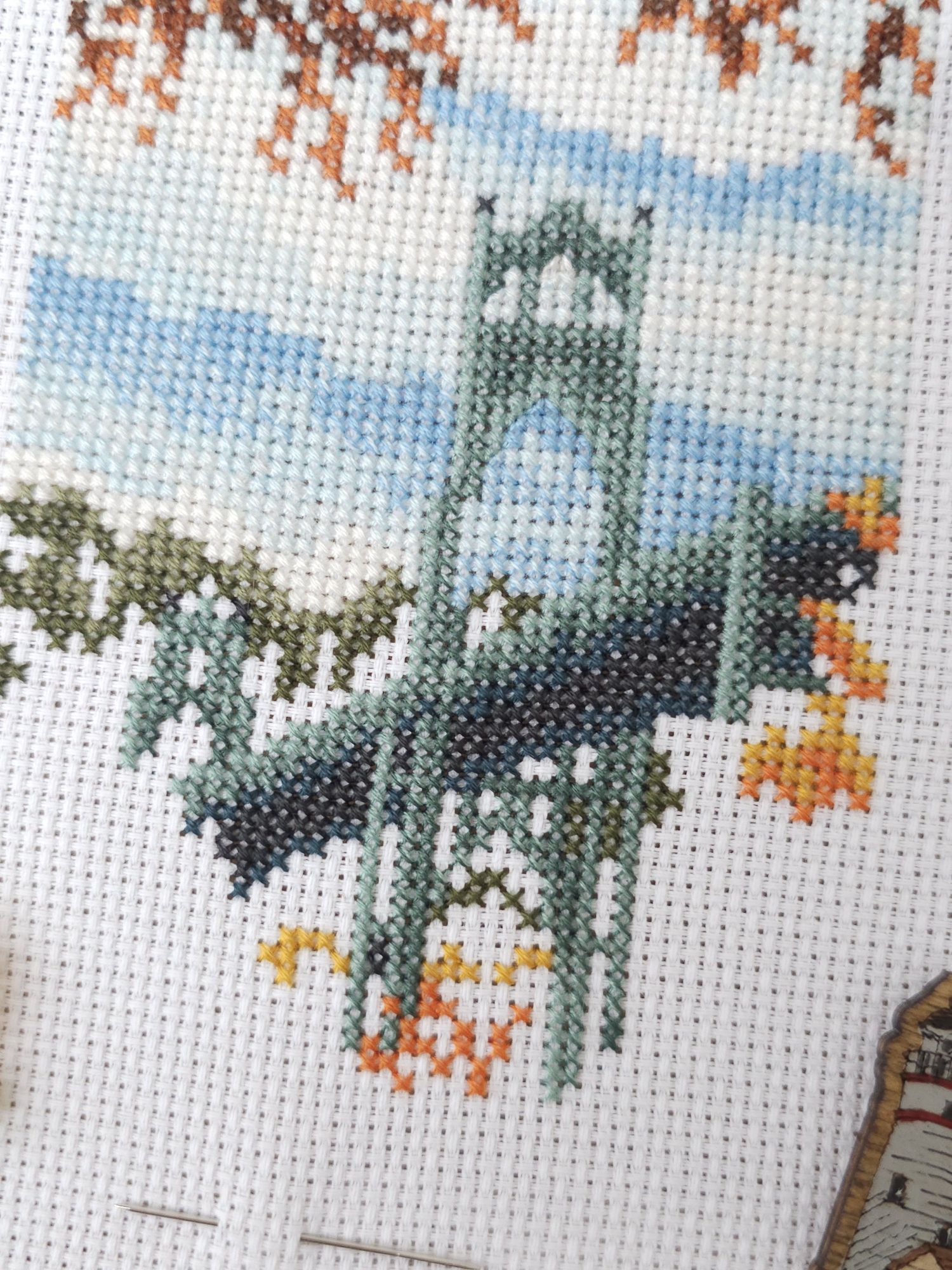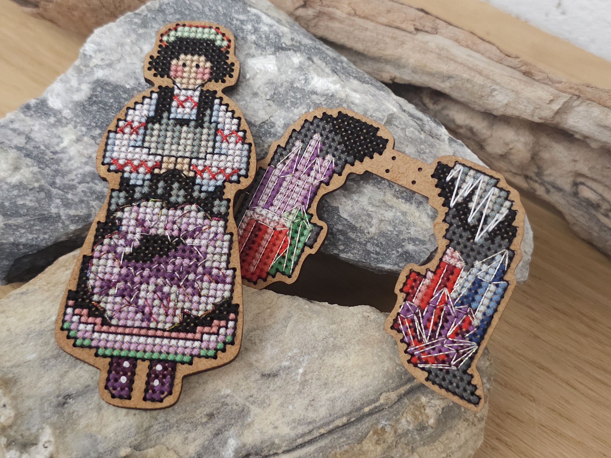 27 октября И снова здравствуйте. У меня опять отчет. Внезапно) И снова с финишем! Что-то я разошлась не на шутку. Вот бы подольше такое настроение продлилось. Хотя это вряд ли - ко мне из Димшопа еще РТОшки из новой коллекции едут Ну а пока: Совиный лес, Прялка - финиш! Ух как мне этого хотелось. И как упорно я шла к этому. Чуть невышиванца не словила, но вовремя отложила на пару дней и потом уже финальный рывок. И это при том, что мне очень нравится и то, что получилось, и процесс. Парадокс, однако! Я списываю на малое количество оттенков, которые не обладают "веселящим" эффектом посреди хмурой и темной осени, да еще под аккомпанемент болезни. При этом для прялки эти оттенки идеальны- эдакая потертая доска из сундука получилась. Правда с фото совсем беда. То ли оттенки эти такие сложные, то ли всему виной осенняя хмарь, но фото категорически не передают того, что я вижу перед глазами. Ни правильного баланса цветов, ни соотношения яркости. Оставлю пока как есть, чтобы гайку закрыть (как долго я к этому шла!), а потом буду думать-пробовать еще. +1 ярус, уникальный отсутствием симметрии и наличием сюжета: И финальный ярус фигурно-украшательный: Разворачиваем, стираем. гладим и вуаля: Для масштаба с мотком ниток:(это фото не в гайку) Ну в общем, я не только миниатюры шью порой Следующий процесс - новый, тот самый, что вклинился между ярусами прялки и спас от невышиванца. Хотела бы я сказать, что финиш, но это не совсем так. Евгения Колесникова, Ангел минералов - новый процесс! Соскучилась по этим ангелам. А минерального давно руки чесались в работу взять. Он по картинке мрачноват немного. Но почему-то мне казалось, что живьем все иначе. А камни я люблю, у сына так вообще коллекция большая и он их помнит все и периодически рассказывает интересности. Скрин от автора: Вышивка на деревянной основе, нитки по ключу. включая цветные металлики. В процессе вышивки поняла, что тут еще и явно жеода аметиста подразумевается (а аметисты я очень люблю), так что вообще все сомнения пропали. Крылья так вообще калейдоскоп ярких цветов, их которых серебристый бэк нарисовал красивые графичные кристаллы... А в аметистовой жеоде вообще многоцветный металлик в 1 и 2 нити - живьем смотрится здорово. На фотографиях блеск, конечно теряется. Но об этом я подумаю позже. Осталось ерунда - пришить шармик и собрать. Но это не мой случай. Мне опять категорически не понравился блестящий золотой шарм из набора. Как по мне он совершенно не монтируется с серебристым бэком на платье и крыльях. Поэтому, перелопатив сначала закрома, а потом и озон, я нашла то. что может подойти. Но приедет оно не раньше 7 ноября. Так что гайка пока будет краснеть, а я терпеливо ждать, подпрыгивая периодически от нетерпения И еще один процесс на сегодня. Следующий кандидат на финиш. У меня есть несколько дней, чтобы попытаться его закончить, пока посылочка от Александры едет из Ростовской области в Московскую РТО, Мост Сент-Джонс - продолжение Наконец-то взялась за него. Правда, предварительно, добыв перенабор. Так-то гайка от 2019го года. Отличный и немного читерский способ поправить статистику и повесить себе на грудь виртуальную медаль за победу над очередным долгостроем Такой кайф, однако. 14я канва еще нормального качества, яркие цвета, прямо душа и глаза радуются. Помню да, что главная засада этих мостов в бэке (и много, и эст