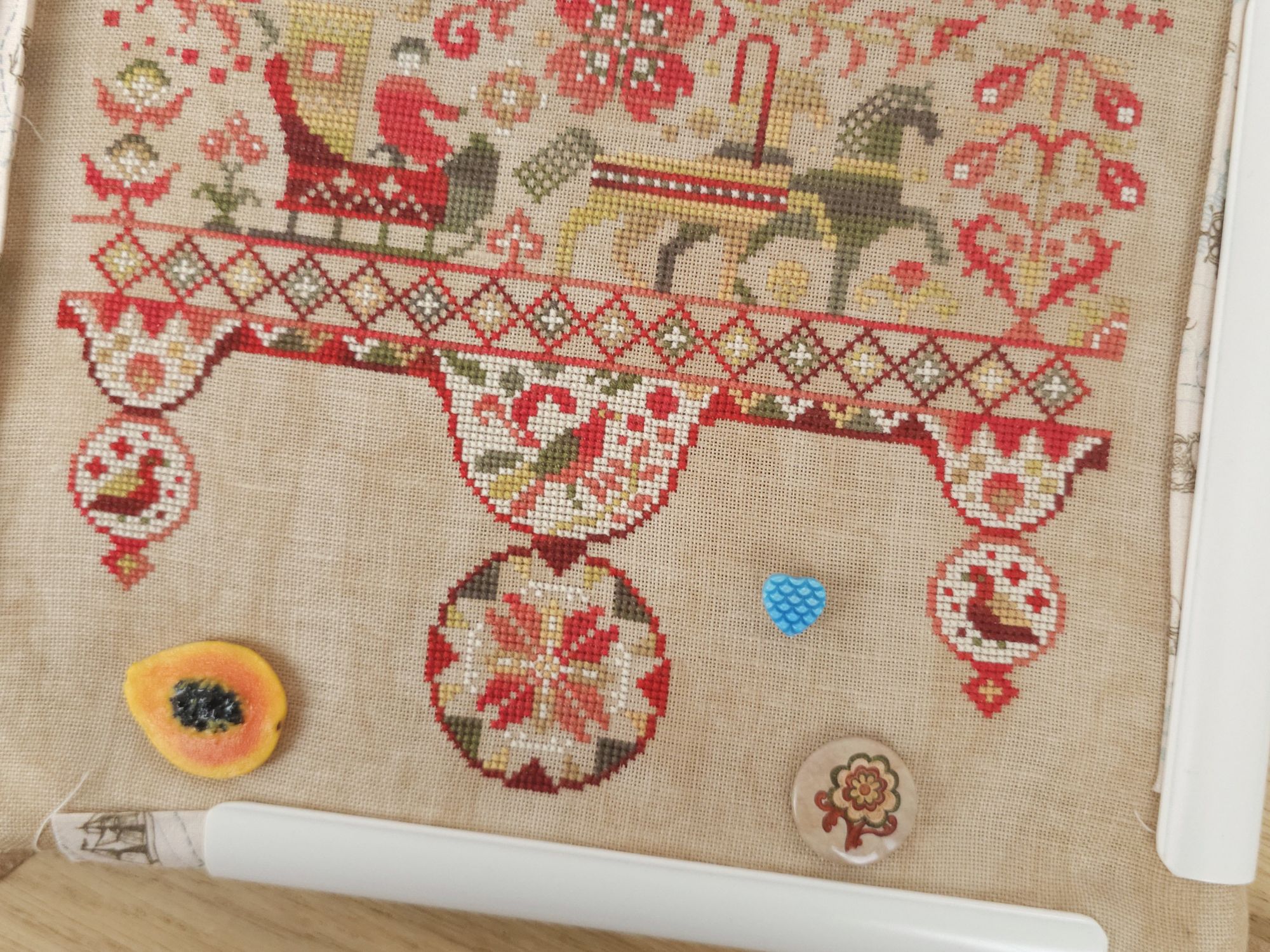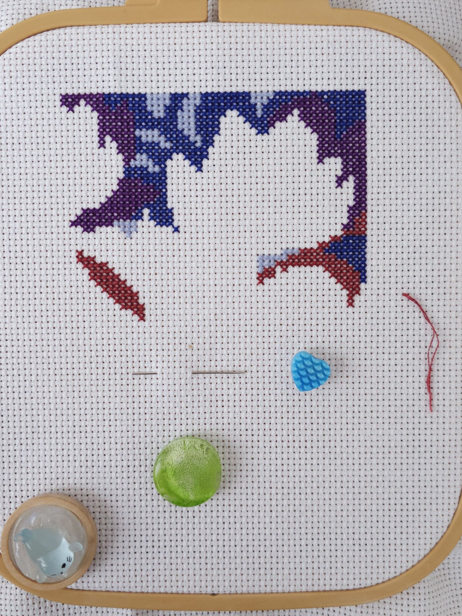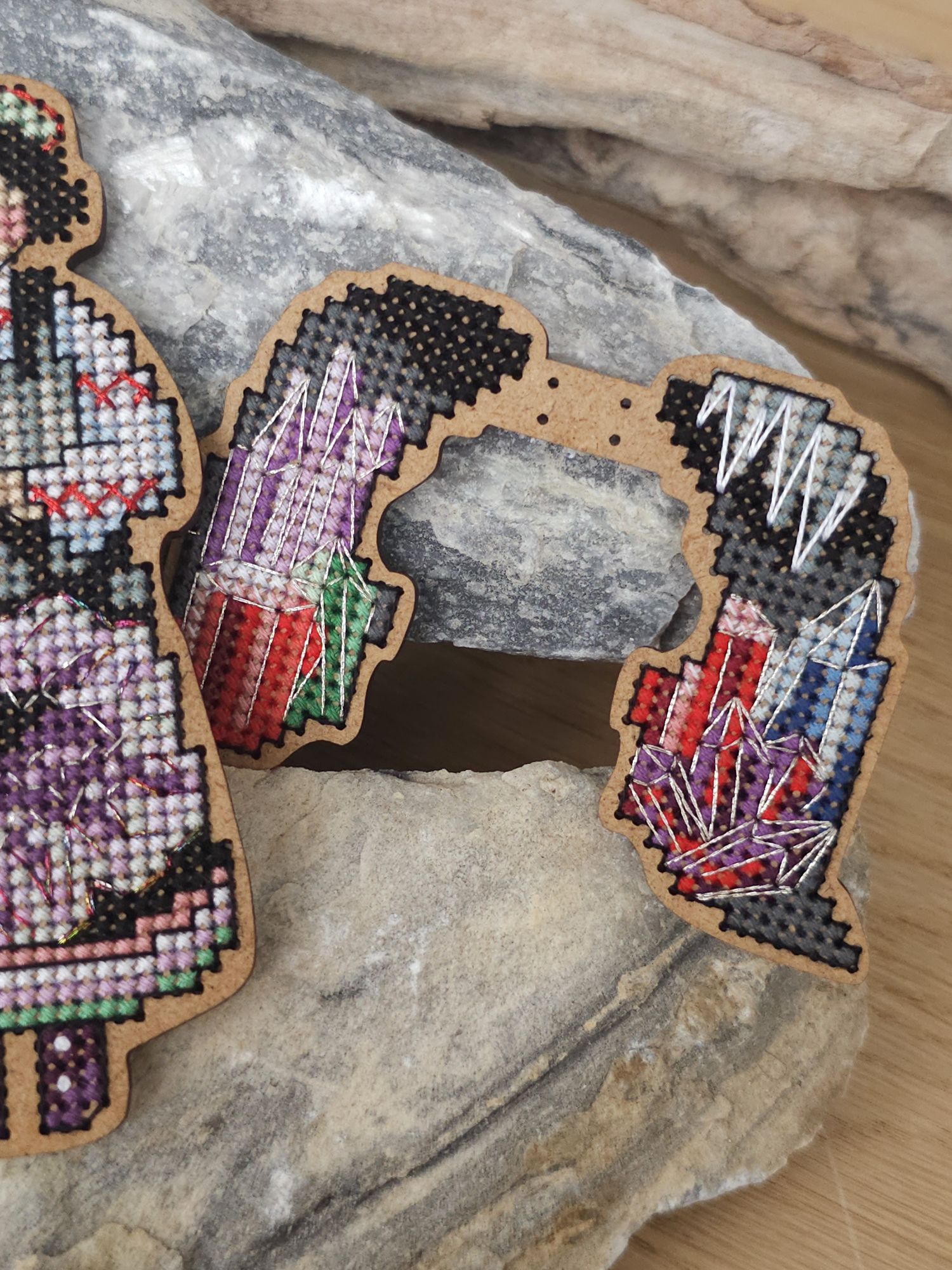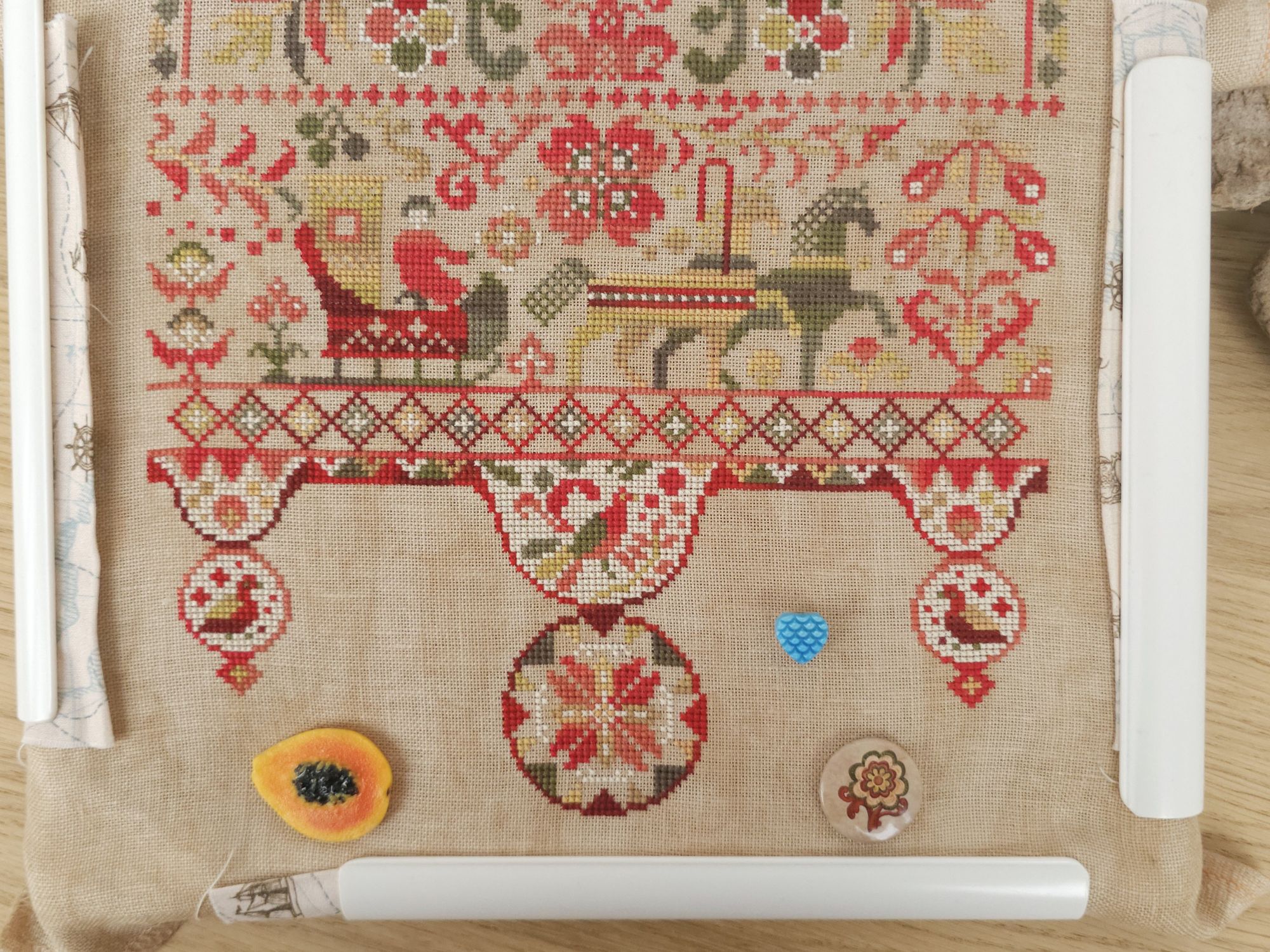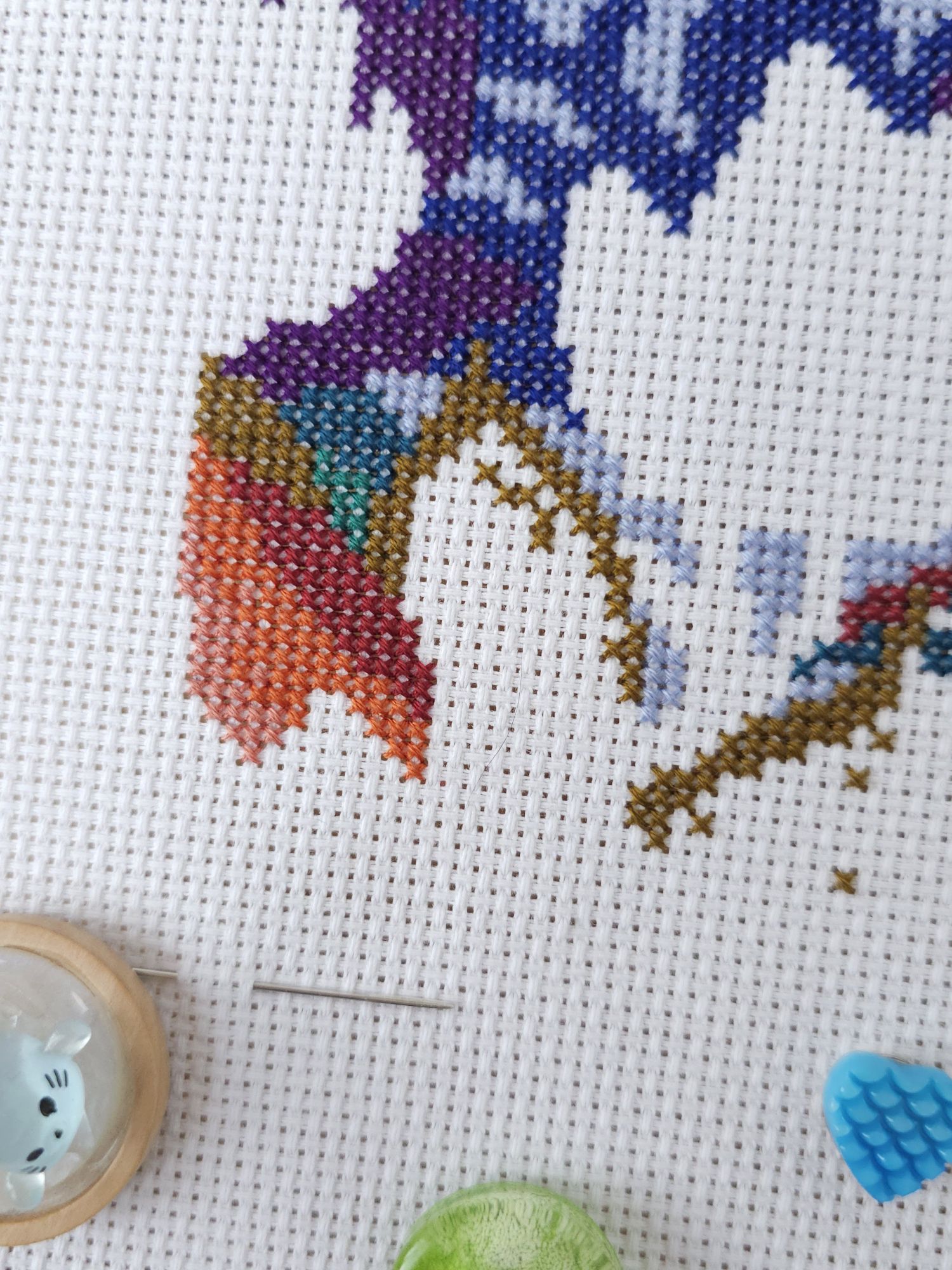 27 октября И снова здравствуйте. У меня опять отчет. Внезапно) И снова с финишем! Что-то я разошлась не на шутку. Вот бы подольше такое настроение продлилось. Хотя это вряд ли - ко мне из Димшопа еще РТОшки из новой коллекции едут Ну а пока: Совиный лес, Прялка - финиш! Ух как мне этого хотелось. И как упорно я шла к этому. Чуть невышиванца не словила, но вовремя отложила на пару дней и потом уже финальный рывок. И это при том, что мне очень нравится и то, что получилось, и процесс. Парадокс, однако! Я списываю на малое количество оттенков, которые не обладают "веселящим" эффектом посреди хмурой и темной осени, да еще под аккомпанемент болезни. При этом для прялки эти оттенки идеальны- эдакая потертая доска из сундука получилась. Правда с фото совсем беда. То ли оттенки эти такие сложные, то ли всему виной осенняя хмарь, но фото категорически не передают того, что я вижу перед глазами. Ни правильного баланса цветов, ни соотношения яркости. Оставлю пока как есть, чтобы гайку закрыть (как долго я к этому шла!), а потом буду думать-пробовать еще. +1 ярус, уникальный отсутствием симметрии и наличием сюжета: И финальный ярус фигурно-украшательный: Разворачиваем, стираем. гладим и вуаля: Для масштаба с мотком ниток:(это фото не в гайку) Ну в общем, я не только миниатюры шью порой Следующий процесс - новый, тот самый, что вклинился между ярусами прялки и спас от невышиванца. Хотела бы я сказать, что финиш, но это не совсем так. Евгения Колесникова, Ангел минералов - новый процесс! Соскучилась по этим ангелам. А минерального давно руки чесались в работу взять. Он по картинке мрачноват немного. Но почему-то мне казалось, что живьем все иначе. А камни я люблю, у сына так вообще коллекция большая и он их помнит все и периодически рассказывает интересности. Скрин от автора: Вышивка на деревянной основе, нитки по ключу. включая цветные металлики. В процессе вышивки поняла, что тут еще и явно жеода аметиста подразумевается (а аметисты я очень люблю), так что вообще все сомнения пропали. Крылья так вообще калейдоскоп ярких цветов, их которых серебристый бэк нарисовал красивые графичные кристаллы... А в аметистовой жеоде вообще многоцветный металлик в 1 и 2 нити - живьем смотрится здорово. На фотографиях блеск, конечно теряется. Но об этом я подумаю позже. Осталось ерунда - пришить шармик и собрать. Но это не мой случай. Мне опять категорически не понравился блестящий золотой шарм из набора. Как по мне он совершенно не монтируется с серебристым бэком на платье и крыльях. Поэтому, перелопатив сначала закрома, а потом и озон, я нашла то. что может подойти. Но приедет оно не раньше 7 ноября. Так что гайка пока будет краснеть, а я терпеливо ждать, подпрыгивая периодически от нетерпения И еще один процесс на сегодня. Следующий кандидат на финиш. У меня есть несколько дней, чтобы попытаться его закончить, пока посылочка от Александры едет из Ростовской области в Московскую РТО, Мост Сент-Джонс - продолжение Наконец-то взялась за него. Правда, предварительно, добыв перенабор. Так-то гайка от 2019го года. Отличный и немного читерский способ поправить статистику и повесить себе на грудь виртуальную медаль за победу над очередным долгостроем Такой кайф, однако. 14я канва еще нормального качества, яркие цвета, прямо душа и глаза радуются. Помню да, что главная засада этих мостов в бэке (и много, и эст