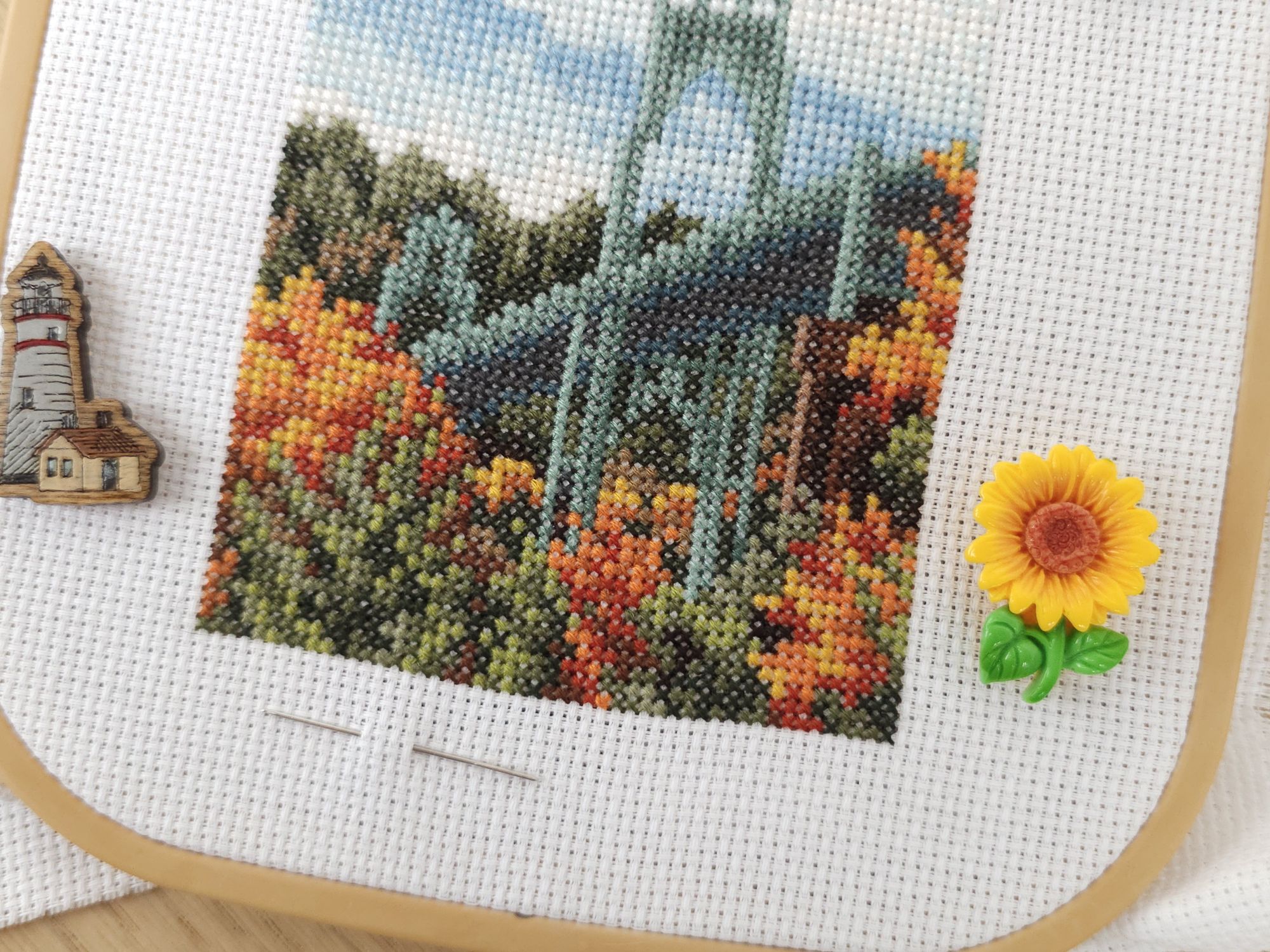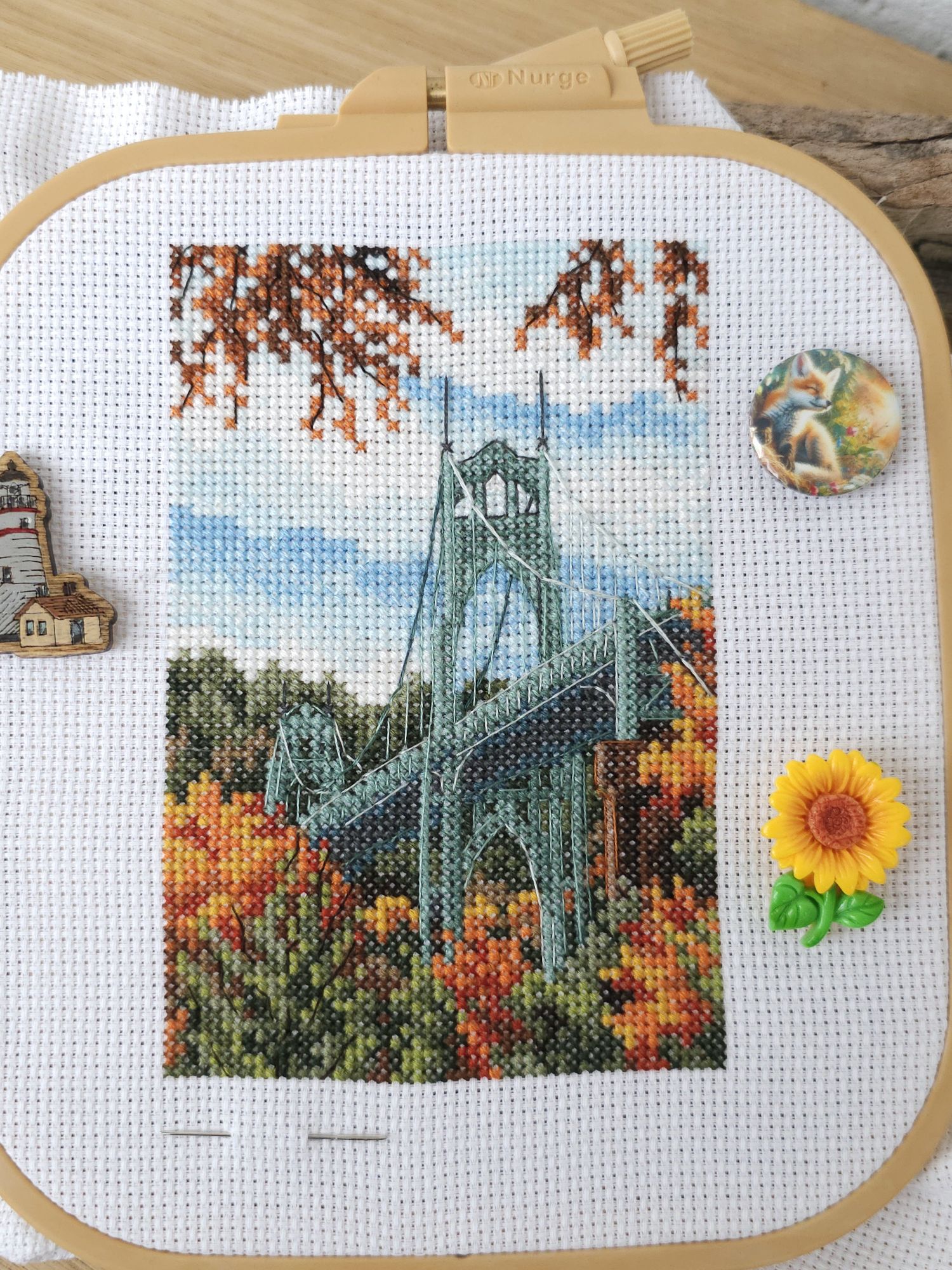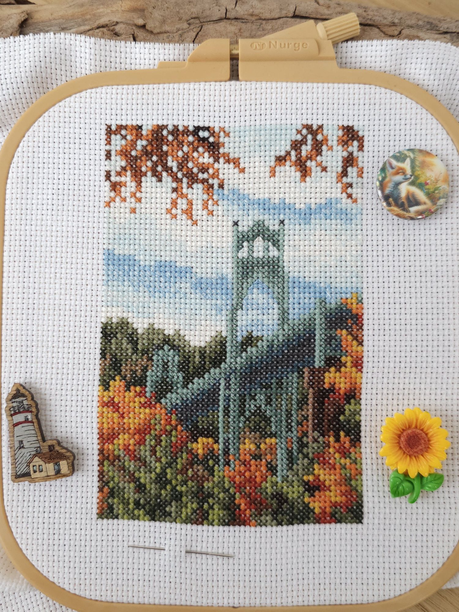 1 ноября Всем здравствуйте! Позвольте мне разнообразить томительное ожидание начала голосования в конкурсе своим отчетом Тем более, что ко мне заказ из Димшопа приехал и я хвастаться собираюсь)) Но сначала финиш. РТО, Мост Сент-Джонс - финиш! Я это сделала! Точнее сначала я в удовольствие дошила крестики. И хотя деревья, как обычно, не самый легкий элемент в вышивке, но близость финиша, небольшие размеры и умопомрачительные краски осеннего леса, которые я совсем недавно наблюдала в Домбае воочию и еще под впечатлением, скрасили мешанину. Крестиковое полотно вышло невероятно красивое. А дальше был бэк. Многоцветный, многочисленный и, главное, тут принципиально какие линии сверху, какие снизу, чтобы не нарушить визуальное восприятие и перспективу, а в схеме, конечно, про это ни слова. Приходилось все время смотреть на обложку и думать, думать, думать... Ох. Но я справилась. Не идеально (но перешивать косячок не стала, чуток подрихтовала только), но неплохо, я считаю. И этот мост выглядит с бэком много лучше, чем мой предыдущий (Пешеходный мост на озере Остин), там одни линии бэка и видно. Этот мне даже очень нравится. Мелькнула даже мысль, не оформить ли его (очень уж тут осенние краски красивые). Но все же я рада, что пару оставшихся у меня мостов я еще месяц назад разобрала на нитки (еще один плюс для меня наборов с dmc) Ночью я закончила мост, а утром получила смску от СДЭКа - приехал мой заказ от Саши из Димшопа Да, да, не удивляйтесь, в век маркетплейсов покупать у Саши бывает не менее выгодно (каждая позиция в моем заказе с учетом личной скидки была дешевле, чем на МП, я сравнивала в моменте. И даже доставка не перекрыла выгоду). Я уж молчу про то, что это в разы приятнее))) Короче, мои покупки. Все по мотивам посещения осенней Формулы рукоделия. То, что за месяц не отпустило и то, что просится в руки прямо сейчас или в ближайшее время РТОшки - это просто лекарство от хандры в такую мрачную погоду, которая царит последнее время за окном. Про каждую потом еще немного напишу, когда начинать буду. Люпины так вообще дань моей щемящей ежесекундной тоске по горам с самой первой секунды, как я от них уезжаю А зимний пейзаж от Панны мне очень на выставке понравился. А когда недавно фотографии свои просматривала, то мне в голову пришла одна идея, которую я из головы выбросить не смогла и надеюсь реализовать этой зимой) А дальше логичное продолжение - новый процесс RTO, C445, Откровение цвета (этот) - новый процесс! Будет: 9*13.5 см на 14й аиде. О, как я грезила и бредила этой миниатюрой последнюю неделю или две. Я чуть ли не вышивала ее во сне. Объяснению это не очень поддается. Ну а с другой стороны вся эта коллекция не про смысл, а про впечатление, про экспрессию, про цвет. А в дополнение еще и дизайнер - Екатерина Костыгова. Этому дизайнеру РТО я готова петь оды и признаваться в любви бесконечно. И, конечно, старт был незамедлительным. Кайф от каждого крестика непередаваемый, восторг от каждого цветового блока и того, какой эффект они создают, соприкасаясь друг с другом - не передать никакими словами. Разве что междометиями И хотя вышито пока не так и много, но это просто... то, ради чего стоит вышивать! И еще один старт. Осенний запланированный) Гаптуллина Анна, Мышка и тыковка (эта) - новый процесс! Прошлой осенью я купила пару очаровательных тыквенных схем, одну из которых вышила тог