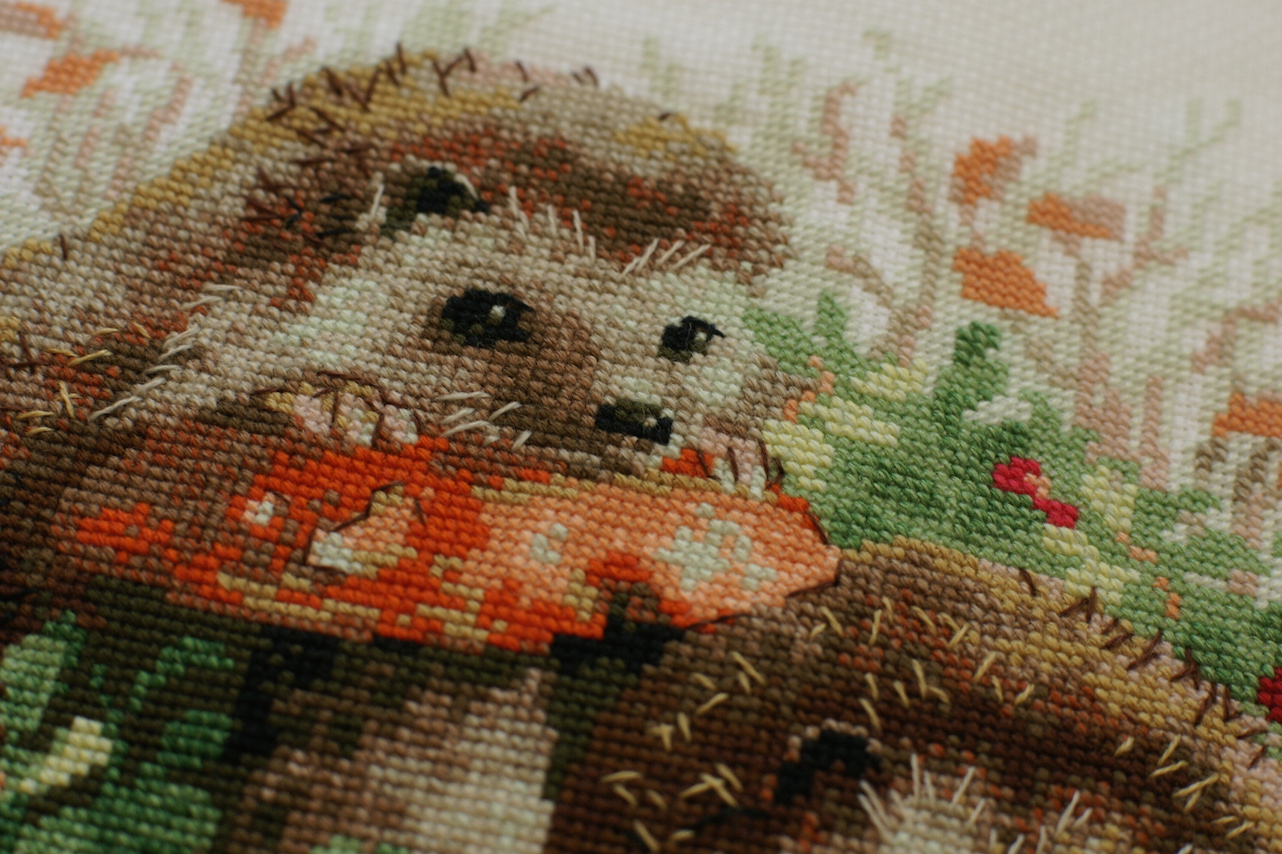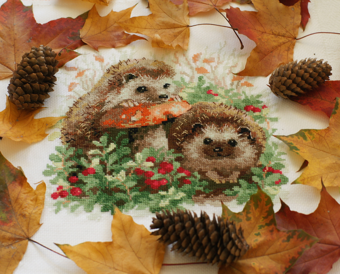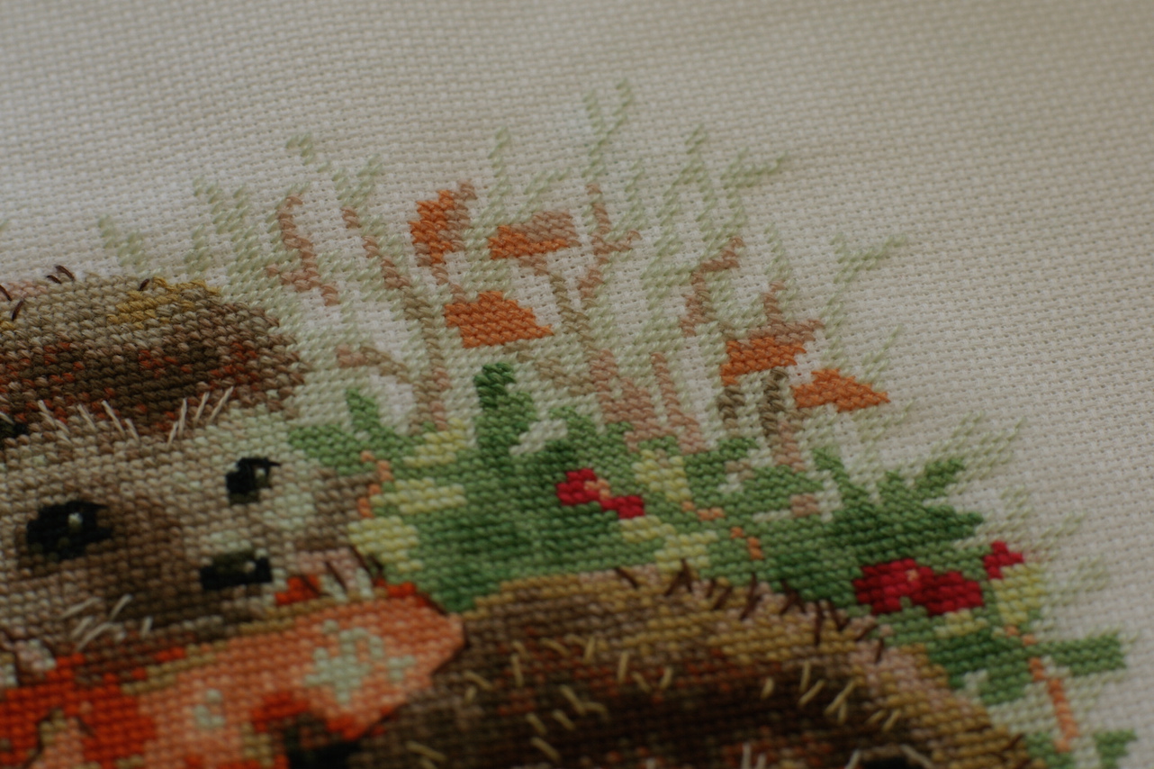 20 сентября 2015 Всем привет! Позвольте и мне внести свою лепту в сегодняшнюю череду интереснейших воскресных отчетов Надеясь, что смогу поддержать марку, представляю вашему вниманию свой "отчетный концерт". Центральные персонажи сегодняшнего отчета - это Ежики: я их дошила!!!!! Итак, встречайте, Ежики от Риолис - спецзаказ Насти аж с прошлой осенней Формулы Рукоделия! Впечатления: они действительно симпатичные, схема проработана хорошо, вышивать удобно (с точки зрения расположения крестиков друг относительно друга), ниток, как всегда, с избытком. Но!..ужасная схема!!! Она слишком яркая и цвета в массе темные и весьма ядовитые. Кроме того цвета клеток не соответствуют цветам ниток. Я понимаю, что два близких оттенка зеленого неудобно обозначать в соответствии с цветами ниток, но зачем же обозначать темно зеленый цвет ниток светло-зелеными квадратиками, а светло-зеленые нитки наоборот - темными квадратиками?! Дошивая последние 300-400 крестиков у меня оставалось всего 2 цвета, но и то я постоянно путалась и приходилось напрягаться, думая, какой же символ я сейчас шью и искать это место на схеме. Устали глаза, устала рука. Сделав последний крестик, не было даже никаких эмоций... Вот и думай после этого...защита от пиратства...я после такой защиты теперь 100 раз подумаю, прежде чем купить новинку от Риолиса (старинки из закромов посмотрела - там вроде все существенно лучше). Со страхом думаю, что у меня еще Герберы не дошиты... Ну и фотографии для процесса: Далее по списку: - Свобода (Е.Мешкова) Здесь прибавление в крестиках совсем незначительное, зато с сюжетной точки зрения очень даже - бисерные Котята от Батерфляй Шью в удовольствие и не спеша. И учусь фотографировать бисер (уважаемые администраторы, добавьте, пожалуйста, в гаечку только одно их этих фото): Появились новые цвета и тут же пришло понимание того, что мне этот процесс очень нравится именно потому, что 1) не надо смотреть в схему и 2)цветов немного и можно не сильно заморачиваться с организацией процесса. Поэтому к выбору дальнейших бисерных наборов буду подходит осторожно, а на бисерную часть стенда Золотых Ручек смотреть как на музей. Ну или как на объект фотосъемки (Марина Маняша, я помню твою просьбу! ) - Лошади у ручья от Дим Давно не показывала, а между тем готово небо и немного кустов, вырисовывается силуэт первой лошади: было: стало: Бесконечно люблю этот процесс, каждый полукрестик приносит удовольствие и наслаждение, а сам процесс уже не раз выступал в роли экстренного успокоительного. Честно, даже не очень хочется с ним спешить. Правда на стене очень хочется видеть - "не мой" процесс: Дим, "Апчхи!" Помните, я говорила, что Настя взялась вышивать знаменитого димовского Апчхи? Естественно, ей быстро все надоело. Отчасти потому, что Леха не дает уделить ей безотрывное внимание хотя бы в течение получаса (а сама она пока не справляется). Отчасти потому, что начался садик, танцы и т.п. и вышивка потеряла свое значение в качестве экзотического развлечения. Но так или иначе, а крестиков 100 суммарно она сделала...Плюс то, что помогала я. И вот сегодня, открыв ящик с начатыми процессами, я увидела эти грустные глаза... Я не могла оставить их там в одиночестве и вот, благодаря любимой дочке, у меня еще один "красный" процесс в гаечке... Из остального: Блюз шью понемногу, но т.к. с сюжетом там проблемы, то прибавле