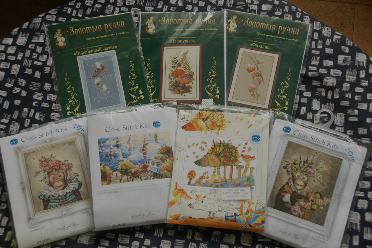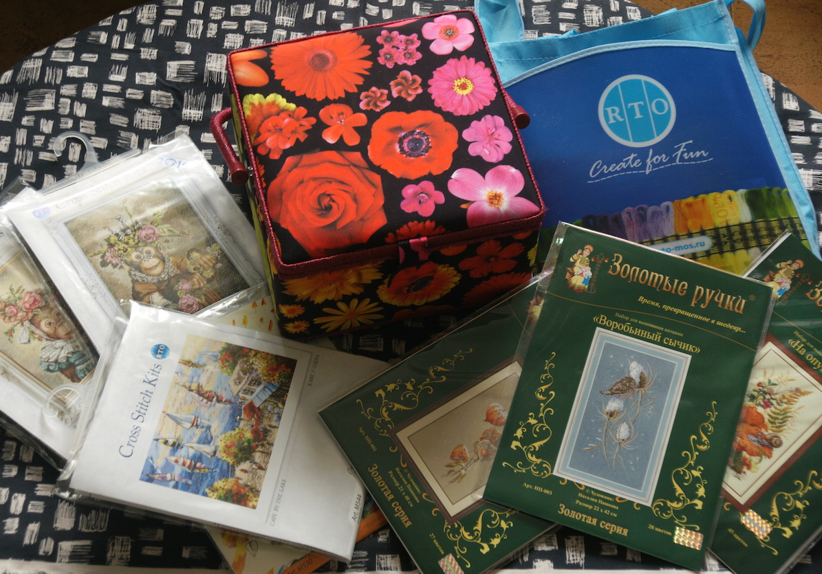 27 сентября 2015 Всем привет! Сегодня вместо прогулок под последним осенним солнышком или хотя бы капитальной уборки (на следующей неделе у Настюши ДР) я болею и даже вышивать не в состоянии... Зато писать пока могу, а поэтому хочу рассказать вам о... Нет, не о текущих процессах, хотя продвижения там есть. Сегодня, конечно же, о посещении Формулы Рукоделия и его последствиях Итак, утро субботы, нетерпение зашкаливает и больше всего у...Насти!!! Удивительно и невероятно приятно, что твое увлечение интересно твоим близким! Едем все вчетвером: час на электричке, несколько остановок на трамвае и 15 минут пешком - и мы на месте! На сей раз я расскажу вам о впечатлениях здесь, а не в теме про выставку, потому что мое мнение- это только мое мнение и вы это прекрасно понимаете, а аргументировать и кому-то что-то доказывать нет настроения. Фото с выставки почти не делала: их уже столько и они весьма удачны (особенно удались, как мне кажется, в этот раз у Яны Бебре). Итак... в семейном походе на выставку есть и плюсы и минусы: погулять долго, особенно по хэндмейдовым рядам, покопаться в пуговичках и шармиках почти без шансов - детки все таки маленькие и толпу долго не выносят, но зато можно бурно пообсуждать увиденные дизайны и увидеть что-то немного с другого ракурса. РТО...мало того, что я их верный поклонник, так еще и дизайны из нового каталога ну очень мне понравились...Поэтому посещение их стенда было обязательным и очень желанным. Стенд в этот раз потрясающий (ах, до сих пор с ужасом вспоминаю их стенд весной!) Подтвердилось очень много хочушек, а вот Розы разочаровали (а ведь я готова была их купить!): по мне темноваты, слишком много синевы и я бы сделала их поменьше. Гортензия очень красивая, но для меня слишком "гладкая" что ли - не зацепило настолько, чтобы вышить. Крыши понравились: кто-то говорит, что они темноваты, но мне так не показалось. Просто висят они в самом низу и на фото действительно получаются потемнее. На мой вкус, если бы они были светлее, то был бы эффект "передержанной фотографии". Очень понравились и рано или поздно скорее всего попадут в мои закрома: новый рыжий кот (там, где девочка смотрит в окно и на окне кораблик), пейзаж с лодками (тот, что не такой яркий, с голыми деревьями), девочка с оленем и, безусловно, растаманская обезьяна (тут Женя даже раздумывать запретил! ). Не обошлось без покупок, но об этом чуть позже. Мы так увлеченно все вместе обсуждали дизайны, что даже попали в объектив фотографа РТО, так что возможно засветимся в их отчете, особенно огромные глаза Насти, когда она доставала билетик беспроигрышной лотереи и получала выигранную рукодельную ртошную шкатулку! Золотые Ручки - тут мы забрали забронированные наборы, полюбовались на отшивы: это безумно красиво. Что до бисера - ни одно фото не передает реального ощущения и восприятия. Алиса: Покровка удивительная, добавлена в список желаний безоговорочно (первый, кстати, дизайн такого стиля в моем списке), даже Жене она очень понравилась. Марья Искусница: понравились синие коты на крыше, осенний пейзаж (удивительная проработка с умеренной мешаниной), котенок с барсуком умилили. На стенд Риолиса я после Ежиков вообще смотреть не могла. Нова Слобода: необычно, интересно, но, скажем, часы с кошками на фото мне нравились больше, чем вживую. В целом, как это ни удивительно, но очень много дизайн