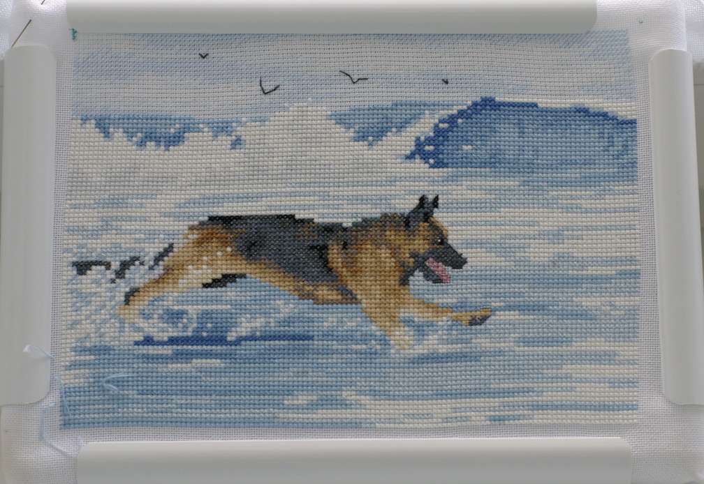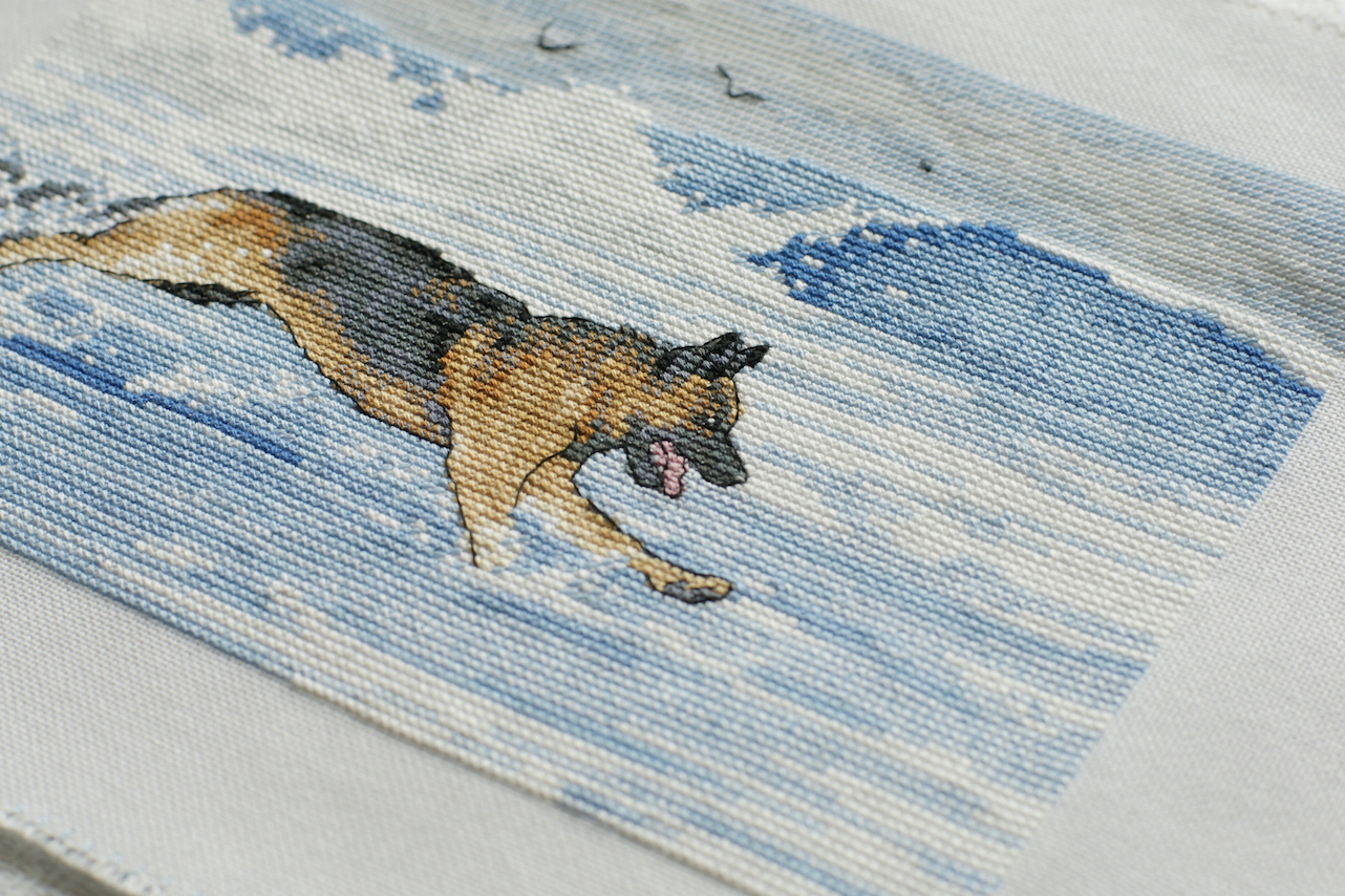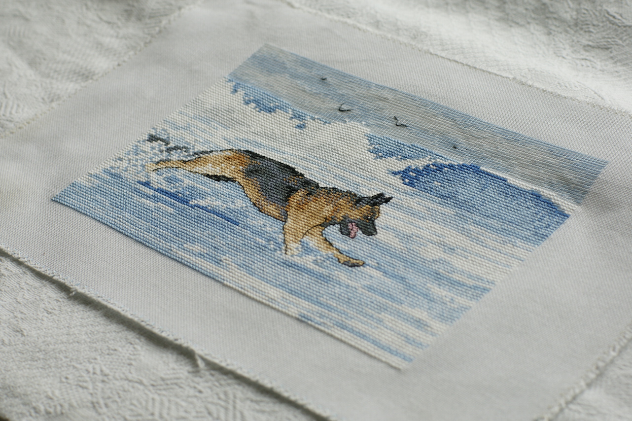 25 октября 2015 Всем привет! Я сегодня с повинной отчетом. Честно говоря, показать почти нечего и именно поэтому я, вообще-то, намеревалась сегодня профилонить. Но есть одно Но - Собака... я ее ожидаемо дошила. Ну а раз дошила - как не позеленить гаечку? Ну в общем, с нее и начнем... Свобода по схеме Е.Мешковой - процесс завершен! окончание крестиковой части: ну и отбэченая, постиранная и поглаженная: Смотрите какая целеустремленность и стремительность: Процесс доставил необыкновенное удовольствие. Схема продумана, цвета приятные, бэка немного и он очень логичен, а результат... живой! Настоящая волна справа: еще мгновение и она перевернется и с шумом накатит на берег. Настоящая собака, которая явно наслаждается морем, свободой и движением. Настоящее ощущение свободы. И только одно огорчает - погода сегодня очень пасмурная и красивых фото не получилось Ну и еще одно фото для настроения: Далее, собственно, повинная...раз уж пришла... 2 новых процесса Процесс 1: Алисена 994, Мышь... Еще в конце зимы я получила от Оли Сейко остатки сразу от двух одинаковых наборов. Таким образом о нитках беспокоиться не приходилось, оставалось подобрать основу. Мне хотелось винтажного льна...но его нигде не было! Почти начала шить на Линде Ivory, но что-то меня в тот момент отвлекло. К лету я все же добыла заветный лен и с этого момента я боролась с собой, чтобы не начать немедленно... зачем? - до сих пор не понимаю... Вот и на этот раз "размножун" меня победил, воспользовавшись осенней хандрой. Итак, нитки оригинальные из набора (анкор), основа: Лен кашель цвета Vintage Dune Хотела показать вам уже завершенный процесс, но не сложилось...поэтому показываю бесхвостую Мышь, сидящую на обрыве: Стрекоза, кстати, с блестящими крылышками: вышивается беленькой перламутровой ниточкой, которую ну совершенно не видно в процессе! Но это все ерунда.... знаете, в каком месте я психанула? Бэк! У алисены он совершенно убитый несчетный. И хоть его здесь немного, но каждый раз хотелось швырнуть пяльца куда-нибудь подальше. Это при том, что к бэку я отношусь абсолютно спокойно, да и шью я все же на льне, а не на аиде. Женя кстати, вспоминая своего Гнома, сказал про тот бэк тоже самое. Но есть у этого процесса 2 неоспоримых плюса: сюжет и непередаваемое ощущение вышивки на льне. Надеюсь, что в следующий раз я эту гаечку позеленю... Процесс 2: ожидаемо надкусанный Зверь от КК...и хоть вышито совсем немного, но мне очень нравятся, как оттенки ложатся друг к другу и сочетаются с канвой. Да и шансов забросить надкус с красной гаечкой у меня будет значительно меньше. Короче, показываю "для порядка" Kustom Krafts, Solitary Watch (Отшельник или Одинокий наблюдатель): сейчас (здесь уже 4 оттенка!): (Таня, Валя, добавьте, плиз, в гаечку только одно из этих фото, процесс обещает быть длинным) А еще я давно подумывала о том, что неплохо было бы сшить чехол для снапов. Но хотеть - это одно, а сшить - совсем другое... И этот процесс стал первым, который сподвигнул меня, наконец, реализовать задумку. Вот что из этого вышло (как же меня сегодня расстроили фото, но переделывать уже некогда... ) Не могу сказать, что меня все устроило, но сейчас проведу тестирование, а следующий буду шить с учетом результатов тестирования. На этом собственно все. Сычика в конце недели взяла "в оборот", но прибавка совсем незначительная, так что показывать не буду. Кстати, после всех этих 