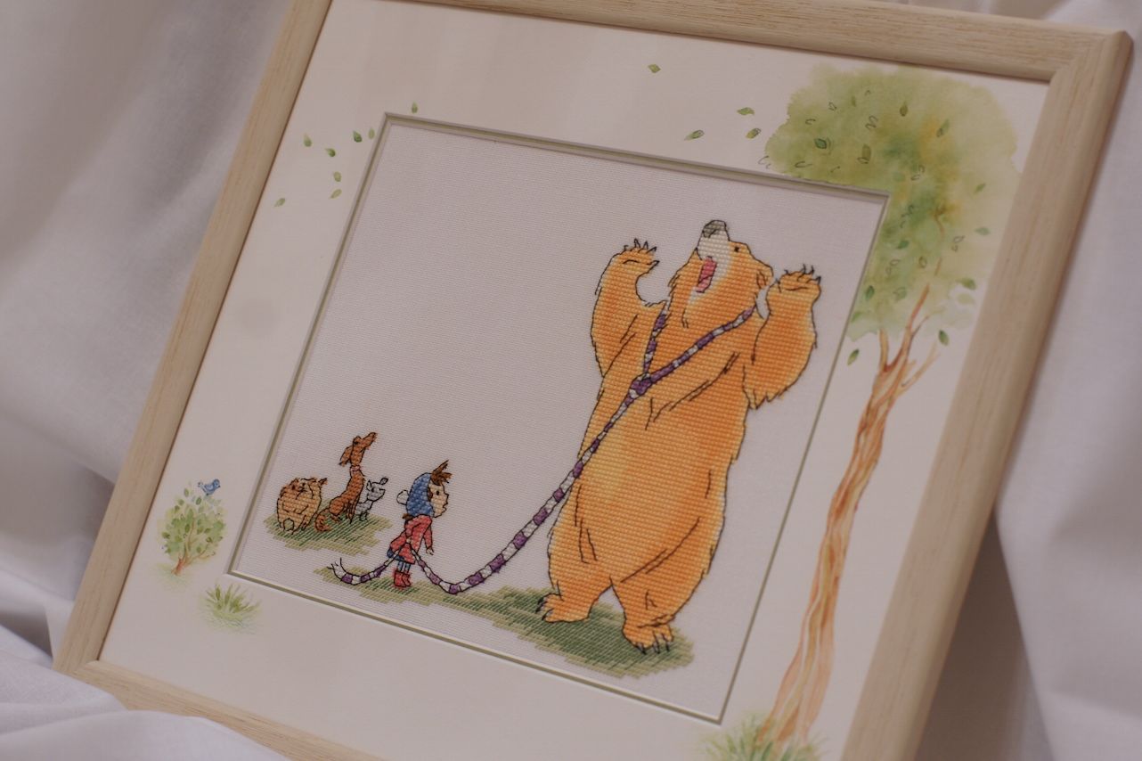 13 декабря 2015 Что же там еще? А, конечно, работа, которая дольше всех ожидала оформления. Второй мишка из забавной серии Е.Мешковой по иллюстрациям Адама Стоера с названием "Сидеть!" Оформлен в том же стиле, что и первый мишка, который мчится в поезде. Причем по настоятельной просьбе Жени, с дорисовкой. Мы шутим, что из сегодняшних работ эта у нас для папы Дорисовка ненавязчивая, очень симпатичная и с успехом придает завершенность немного лысому (в плане фона) дизайну. И вот знаете, если на чистоту, то этот дизайн я вышивала скорее как парный (т.е. сюжет с мишкой в поезде мне был более симпатичен). А сегодня, поставив их рядом для фотосессии, я поняла, что этот мишка мне нравится даже больше! Вот что значит профессиональное оформление! Вот она, моя парочка: Теперь вот думаю...может нужен третий дизайн для полноты картины? Что скажете? Ну и наконец, Новогодние шары по схеме А.Петуновой Оля, спасибо тебе большое, без тебя бы этот праздник не состоялся!!! К сожалению, передать всей магии багета и сочетания его с паспарту и с вышивкой при имеющемся освещении не удалось. Буду снова уповать на солнышко и обязательно попробую еще. А пока... празднично сверкающий (но не как китайская дешевая синтетика) неоднородно красный багет, верхнее тканевое паспарту, удачно гасящее лишнюю яркость и контрастность, два нижних паспарту, чудесным образом повторяющие удивительно-неуловимые оттенки вышивки... и ощущение приближающего праздника, наполненного волшебством. На этом все. Кажется. Осталось развесить новых жителей по стенам. Всех, кроме Ежиков - они-то давным давно висят в детской Пока-пока! Всем удачи и побольше положительных эмоций!! svetles, Сэйко, marysolga и 35 других сказали спасибо Поделиться сообщением Ссылка на сообщение